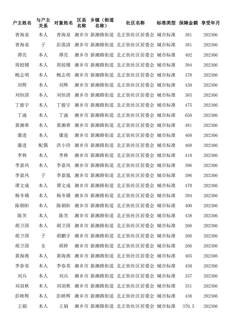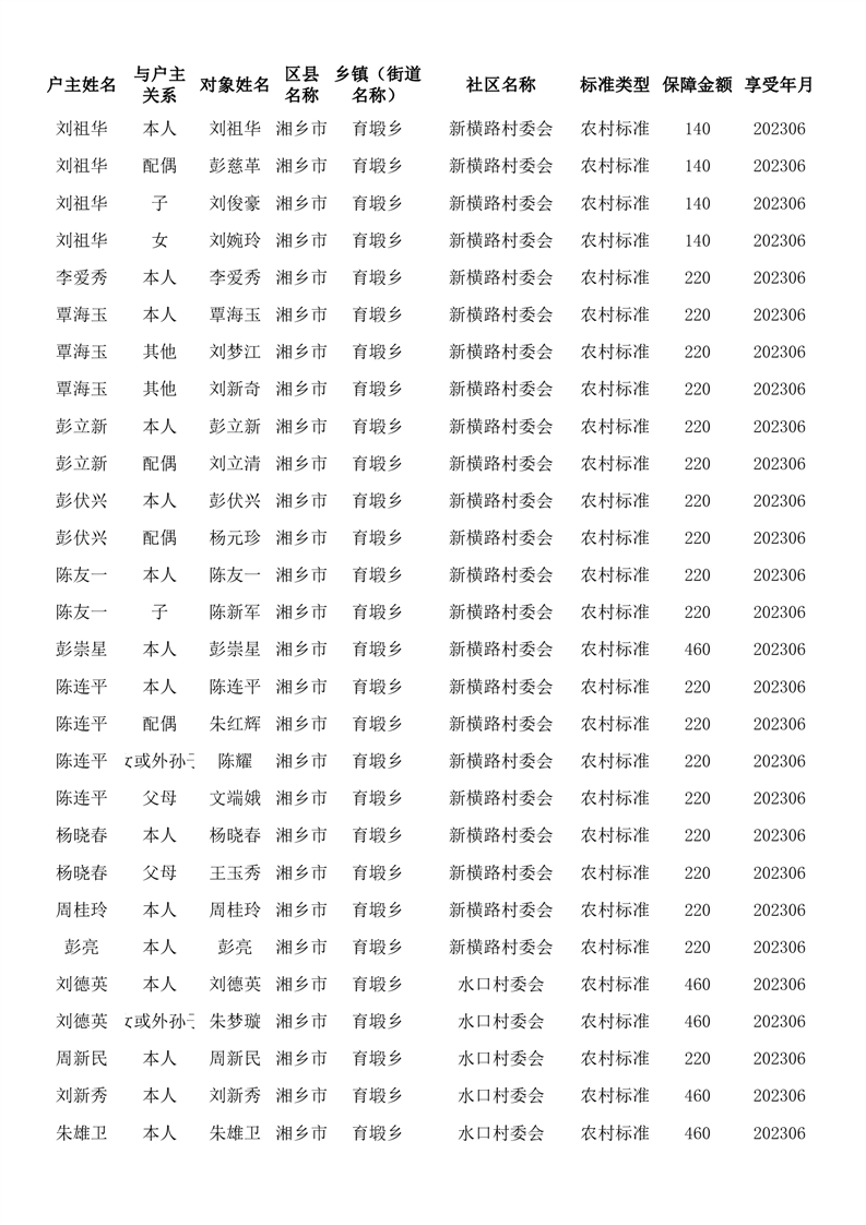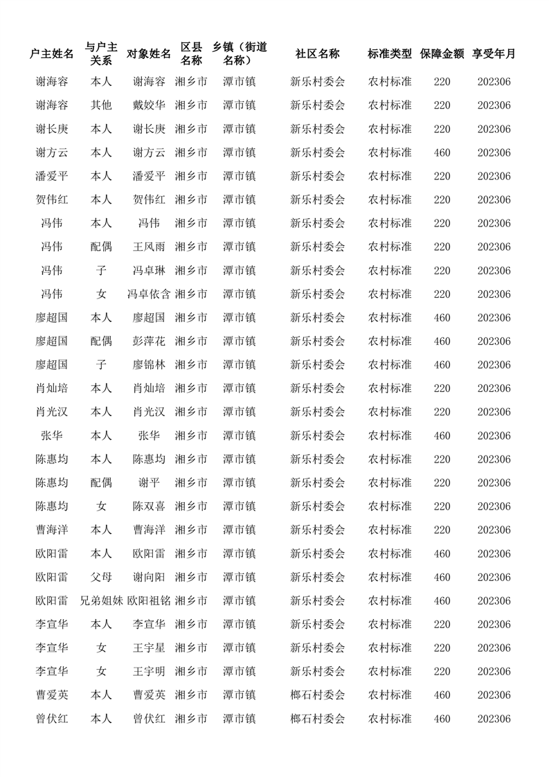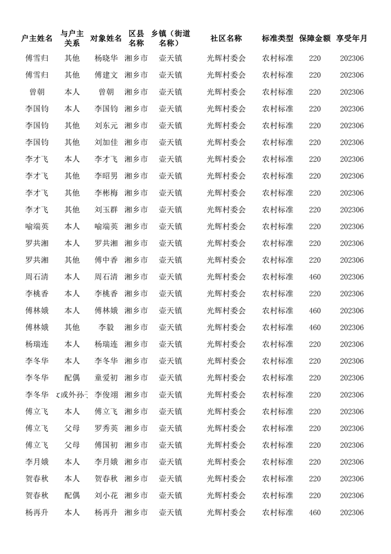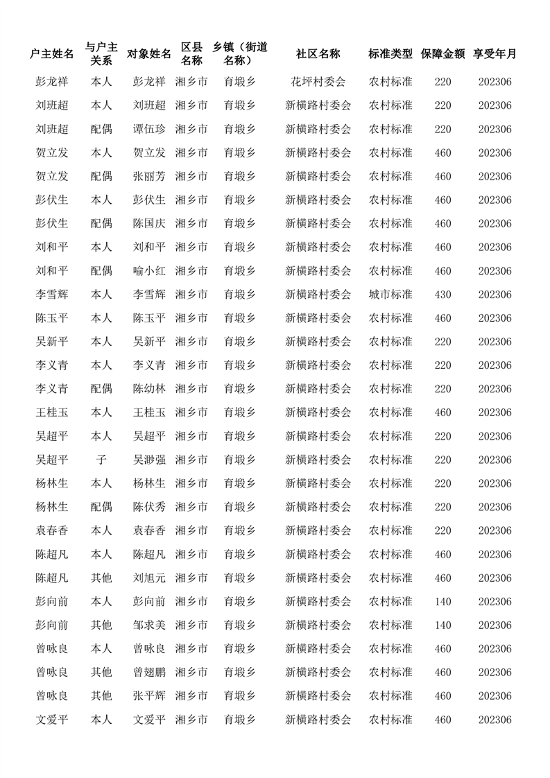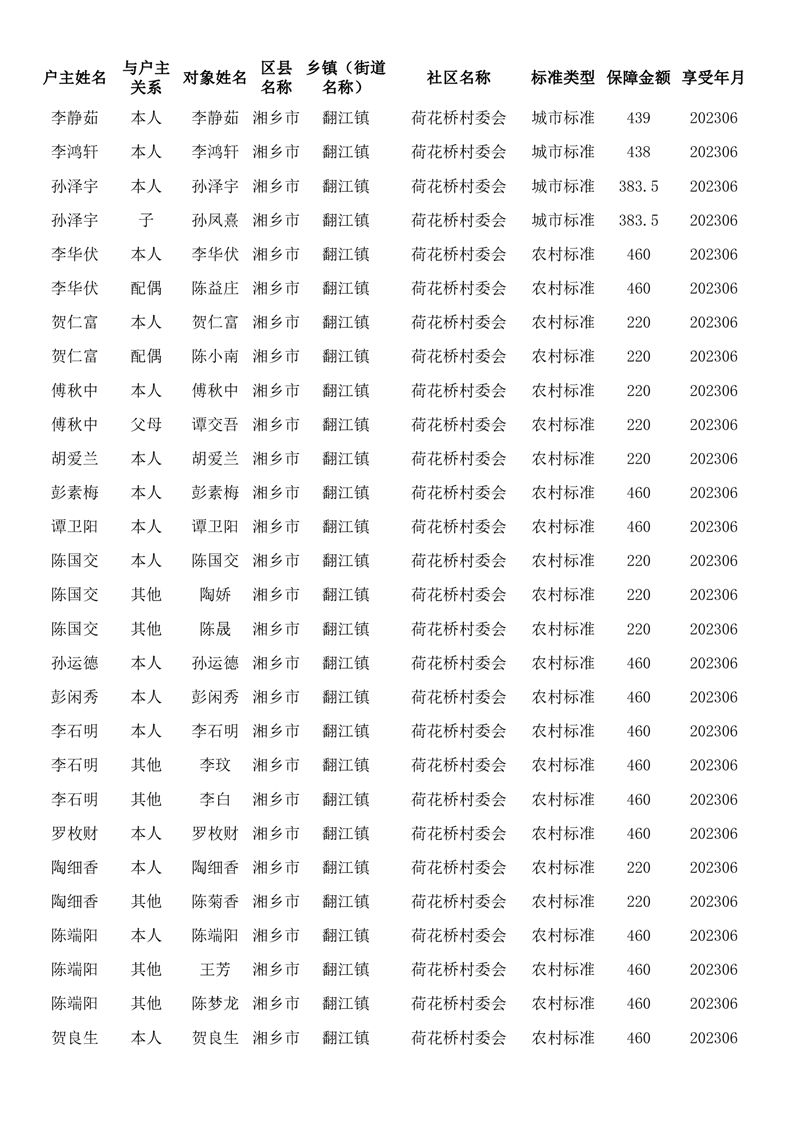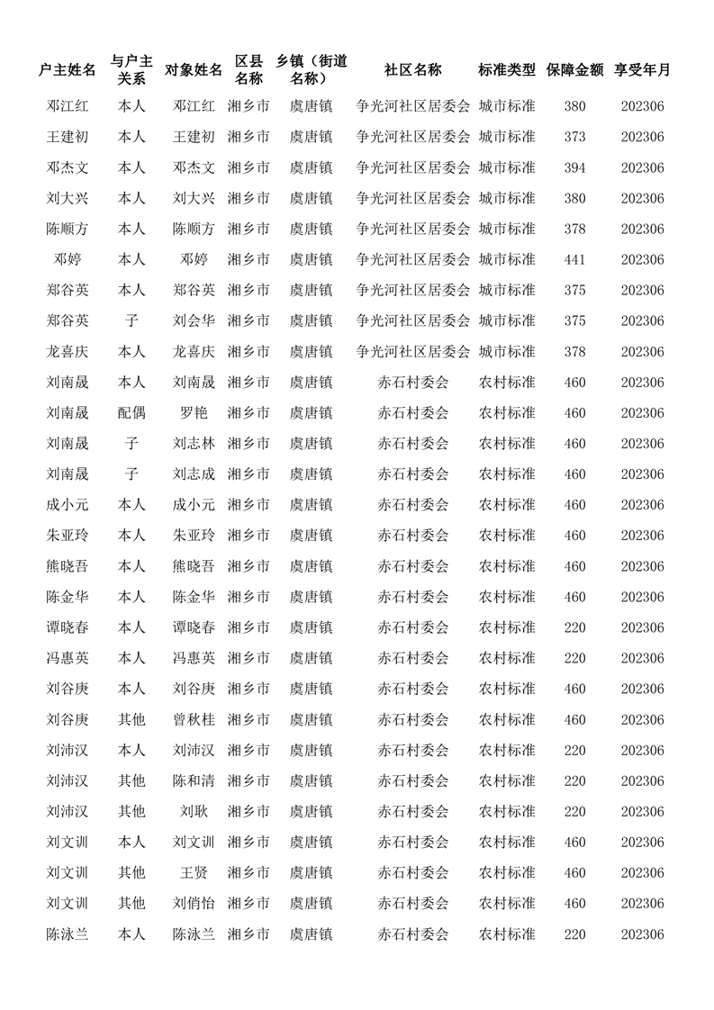 湘鄉(xiāng)市2023年6月城鄉(xiāng)低保救助對象審批匯總表