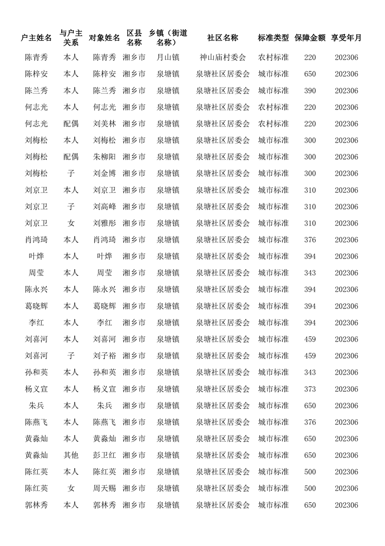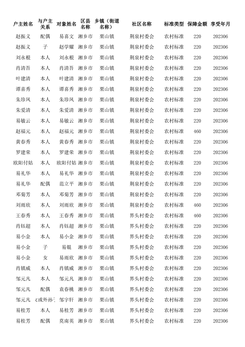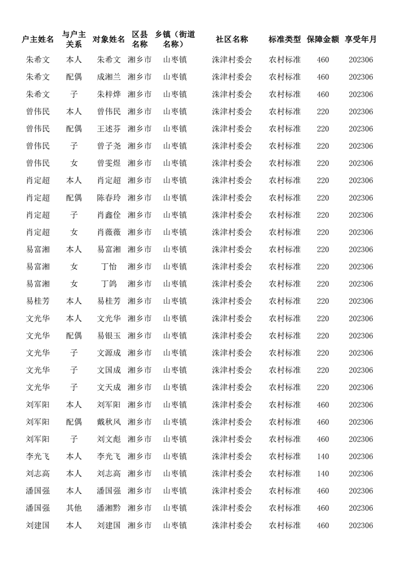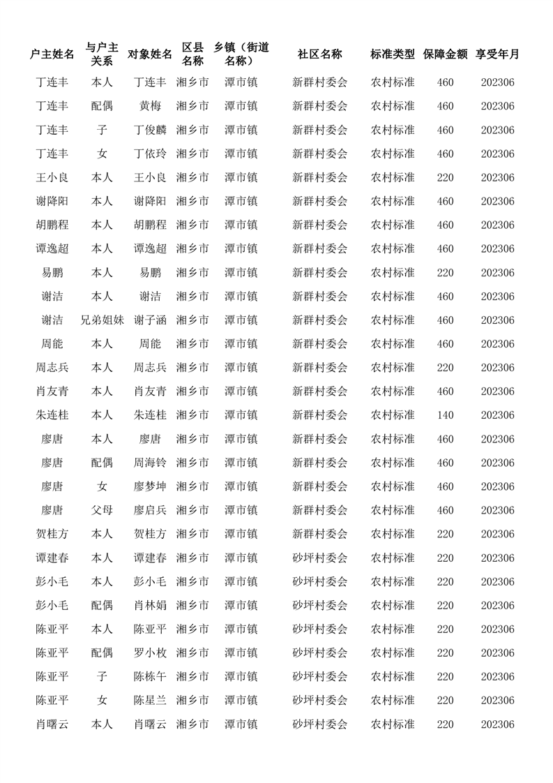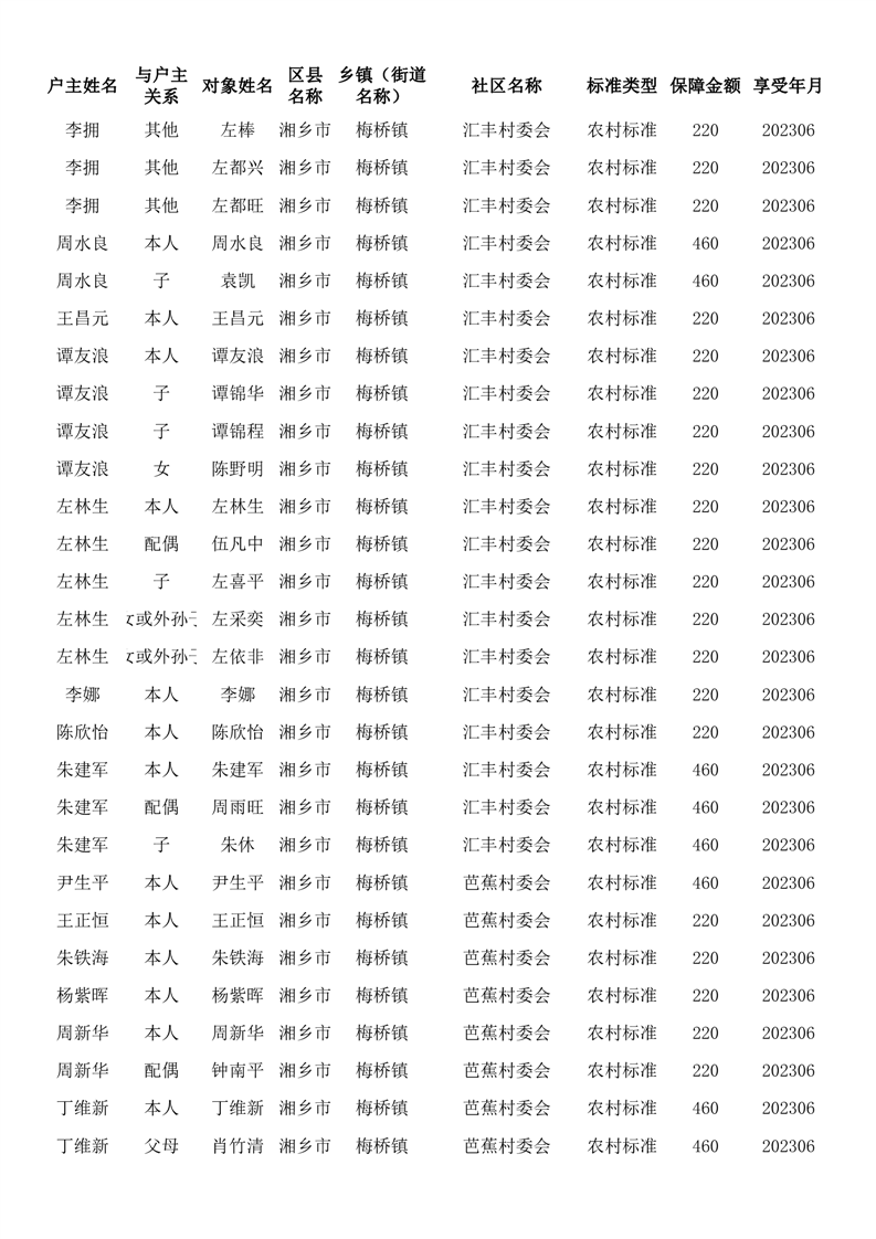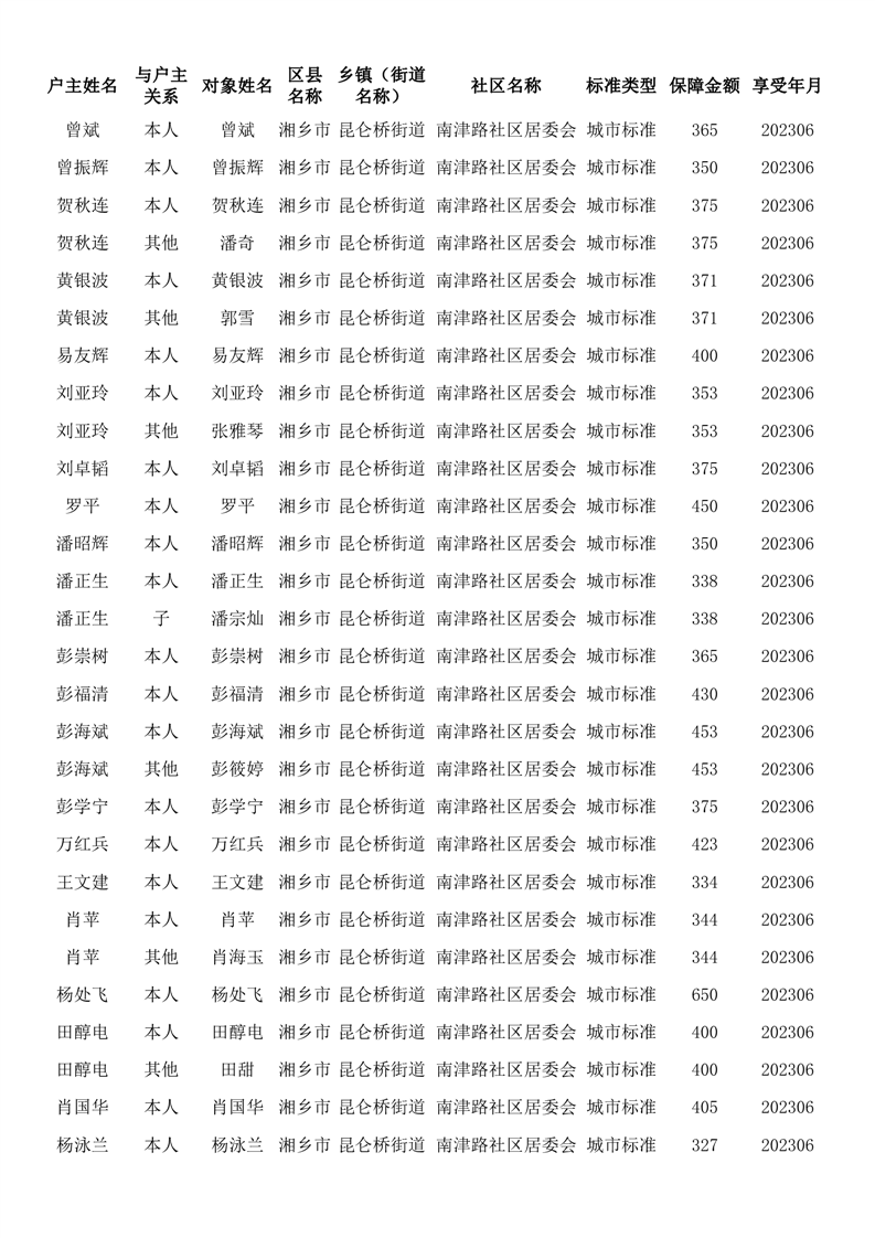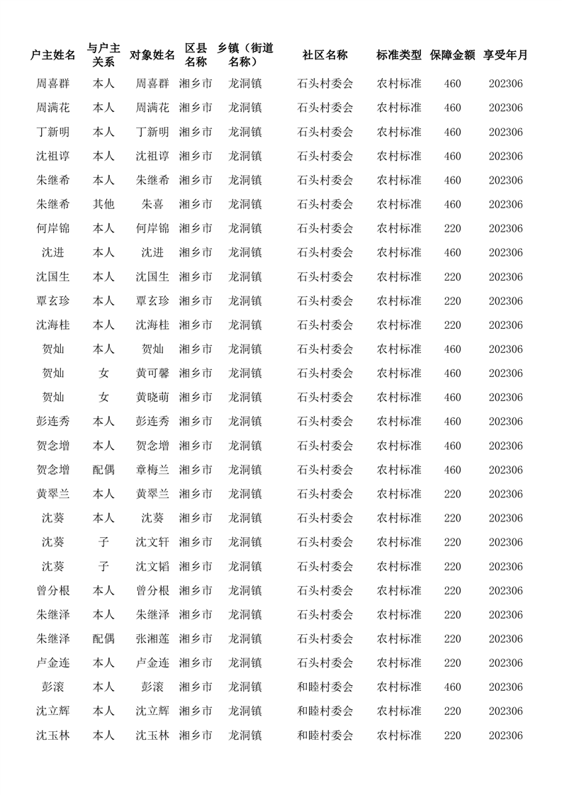 湘鄉(xiāng)市2023年6月城鄉(xiāng)低保救助對象審批匯總表