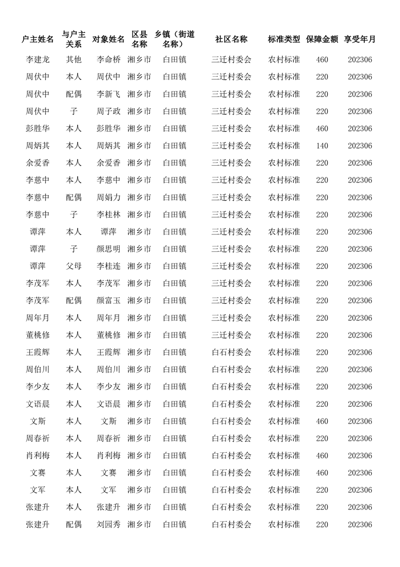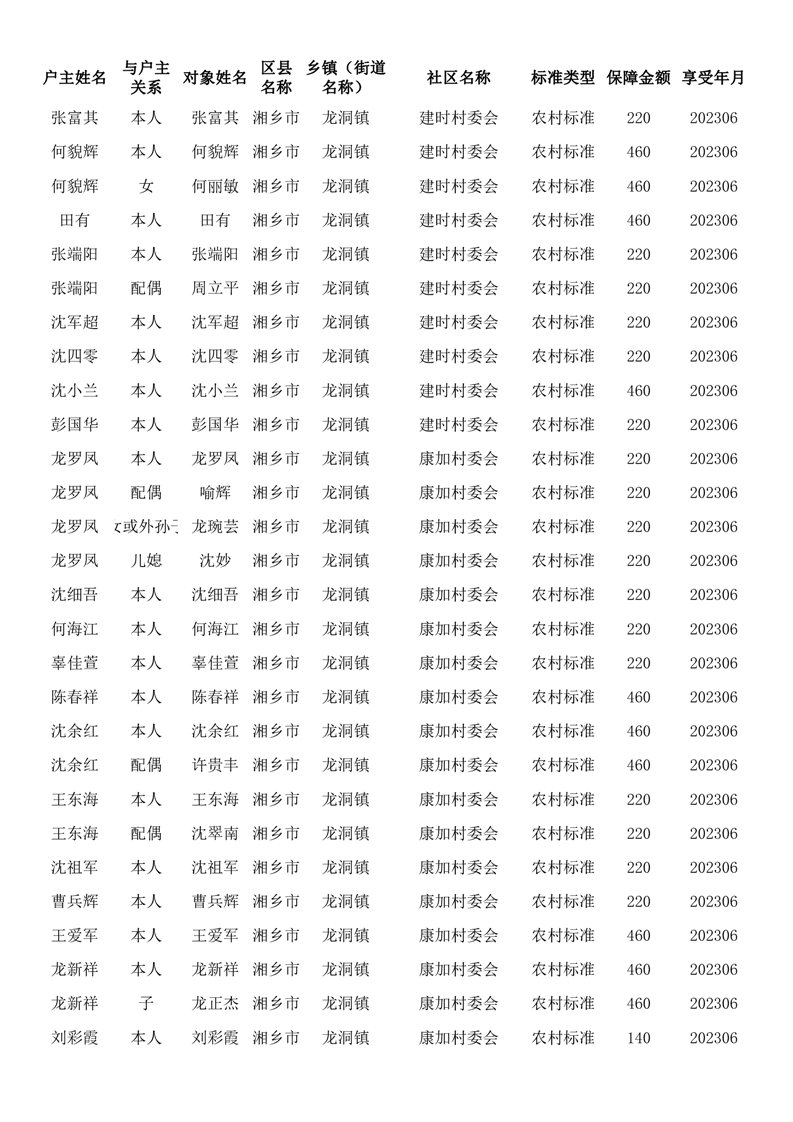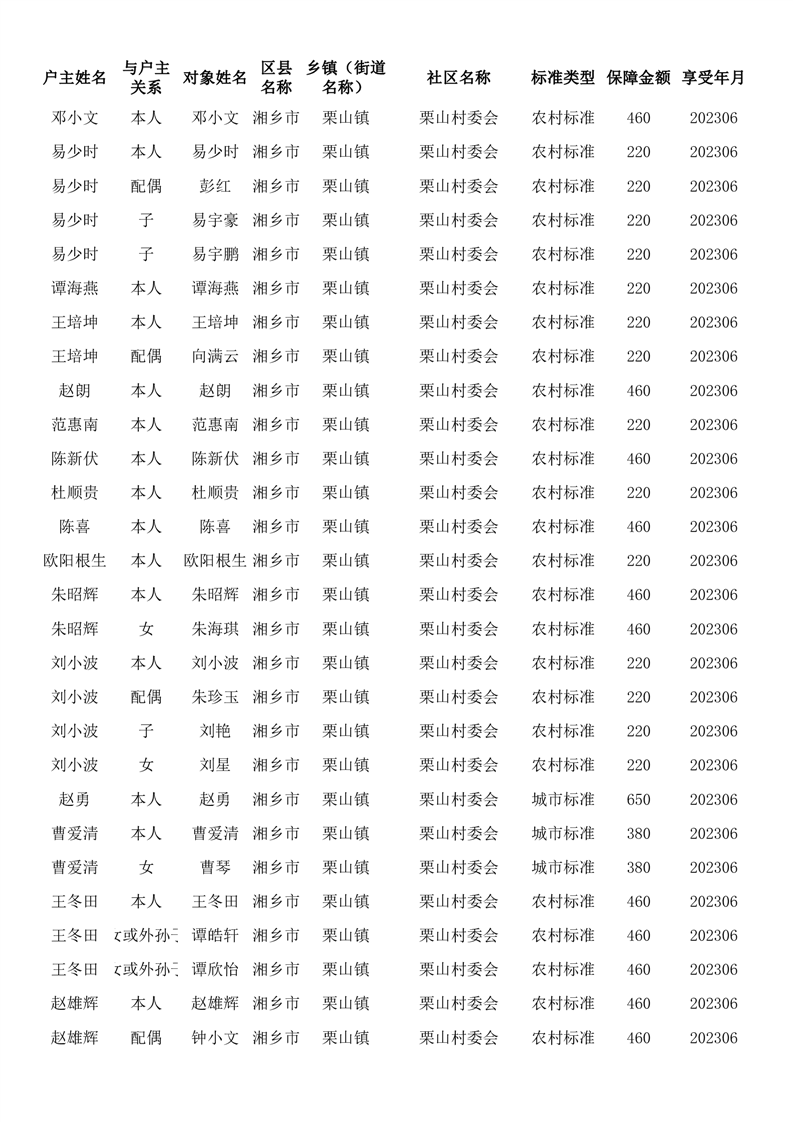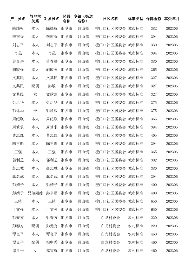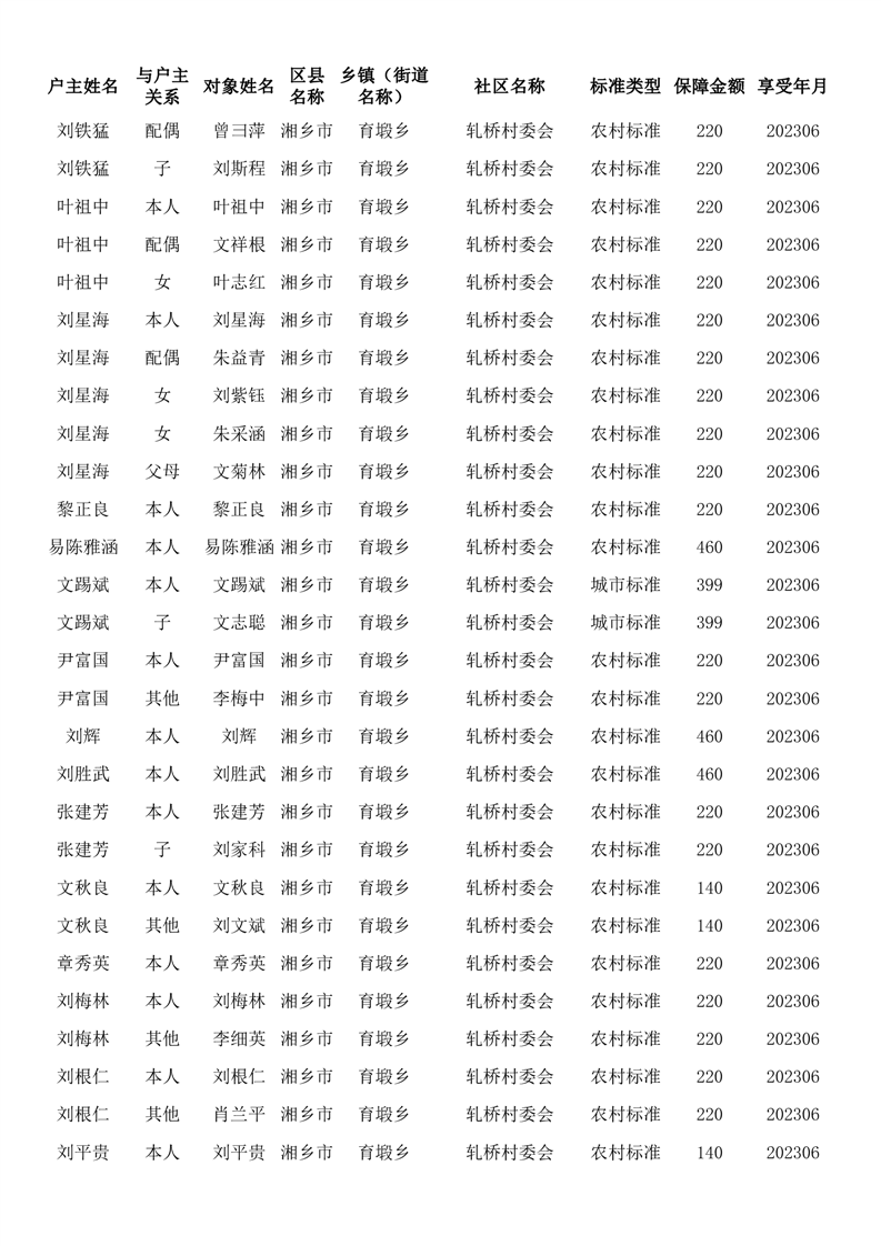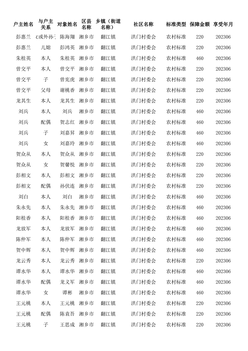 湘鄉(xiāng)市2023年6月城鄉(xiāng)低保救助對象審批匯總表