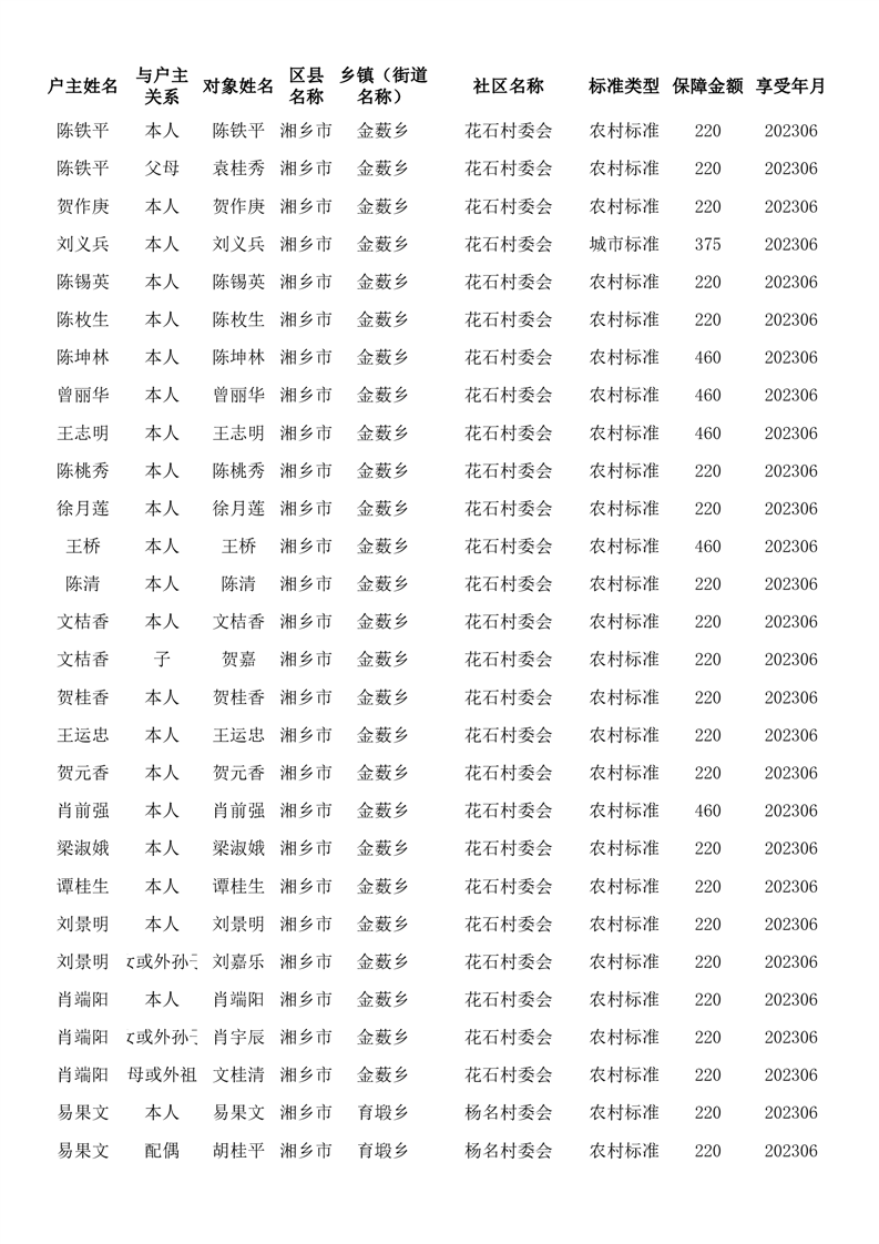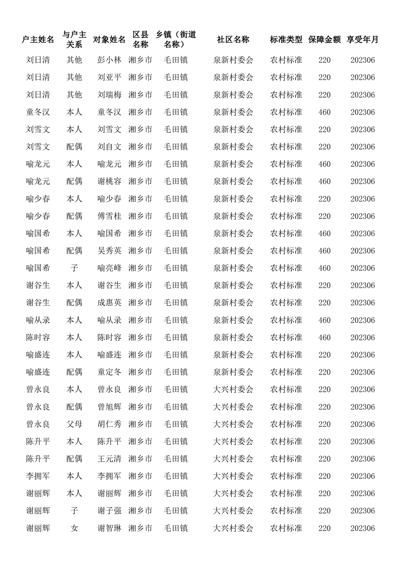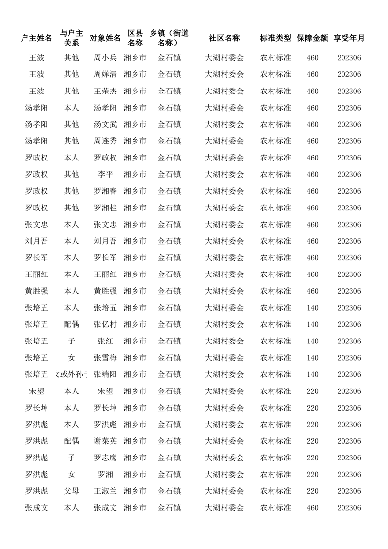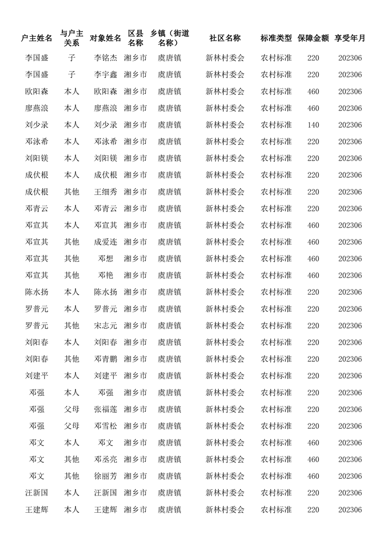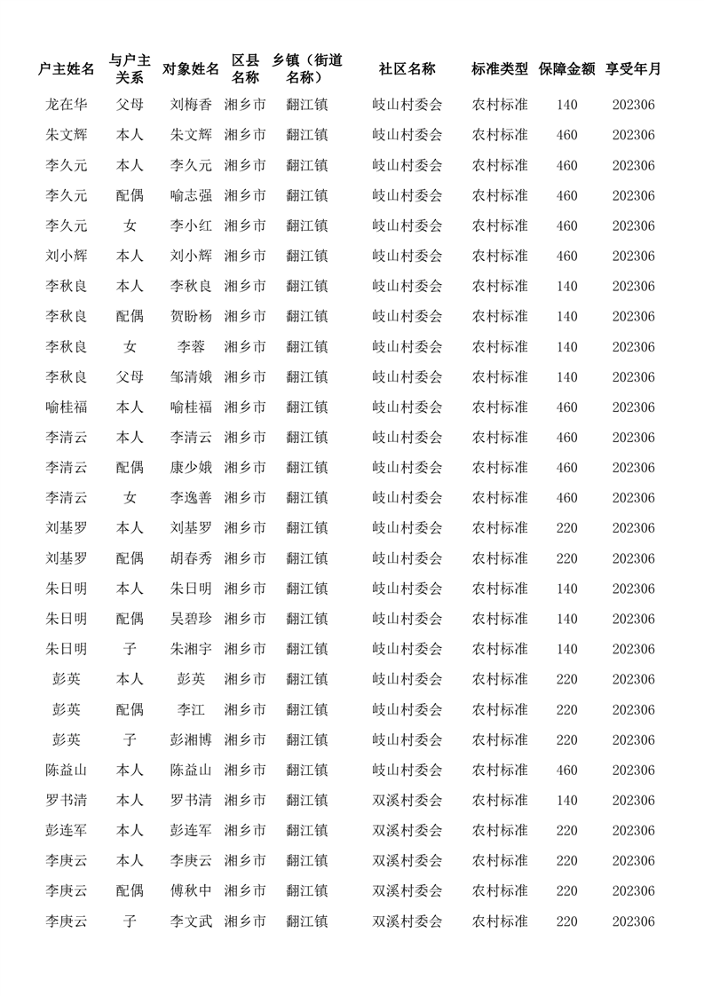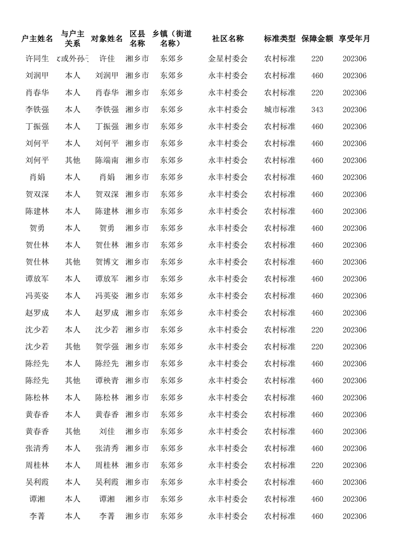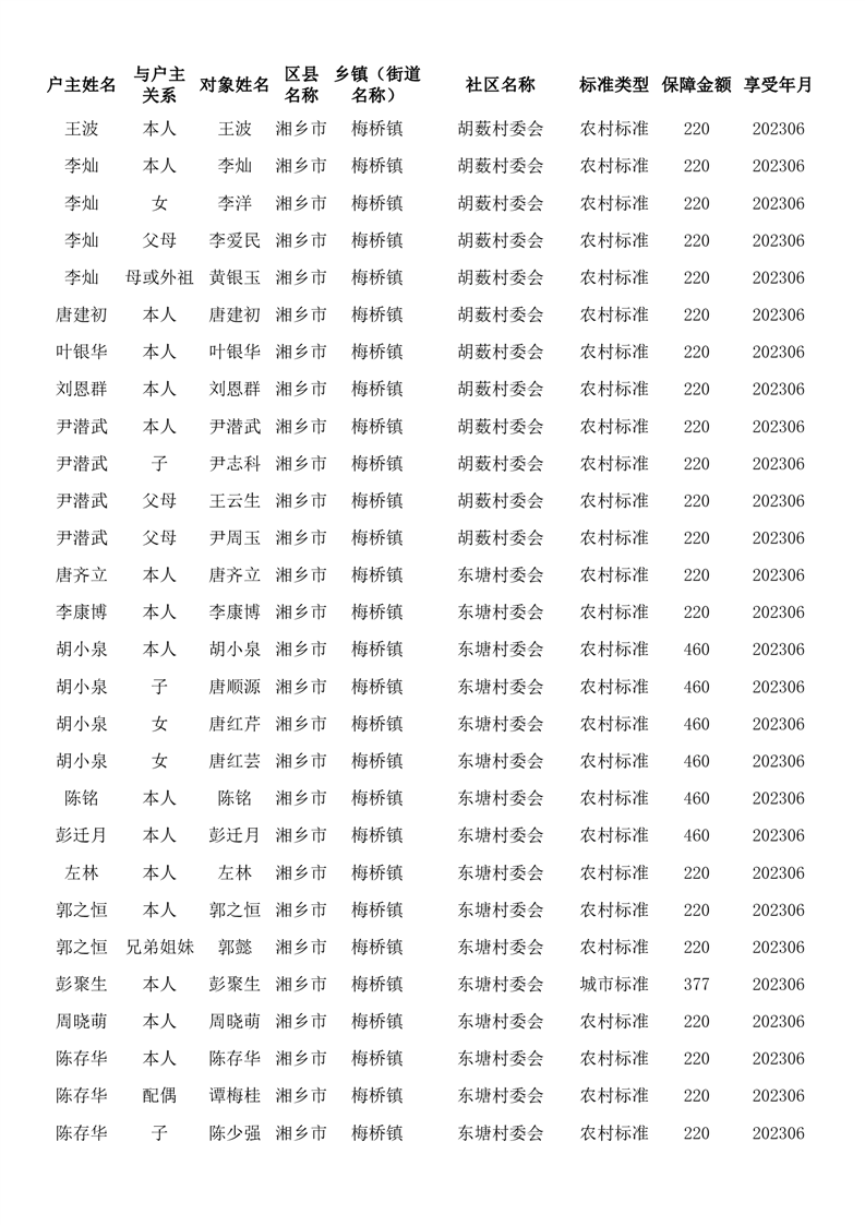 湘鄉(xiāng)市2023年6月城鄉(xiāng)低保救助對象審批匯總表