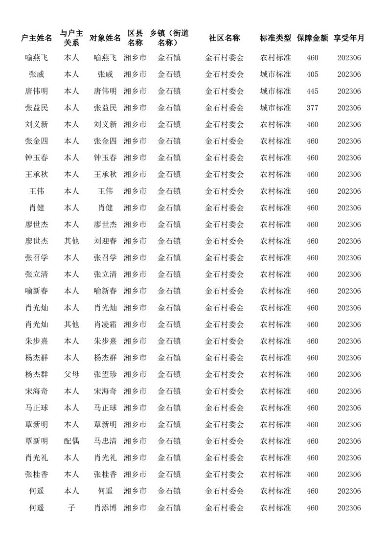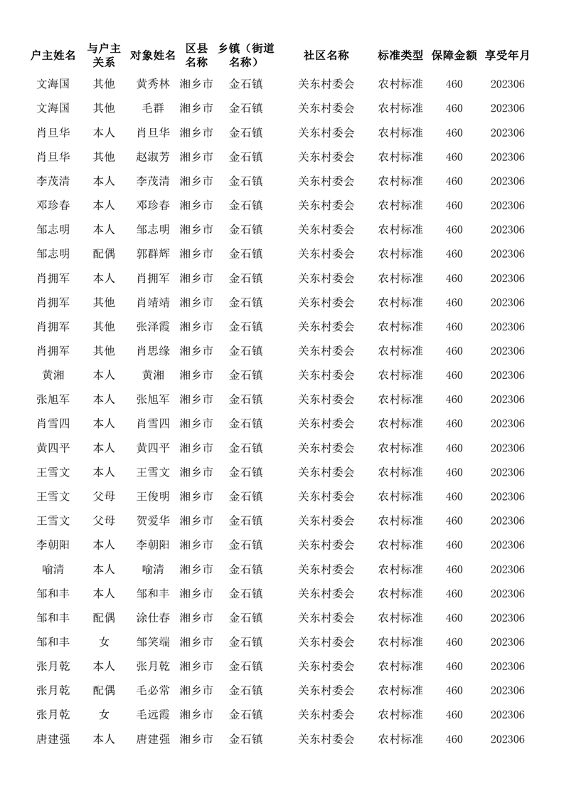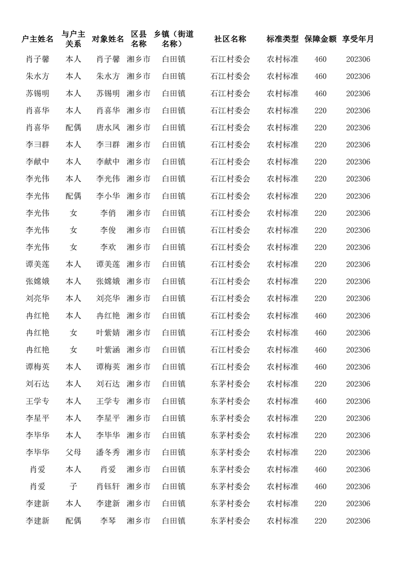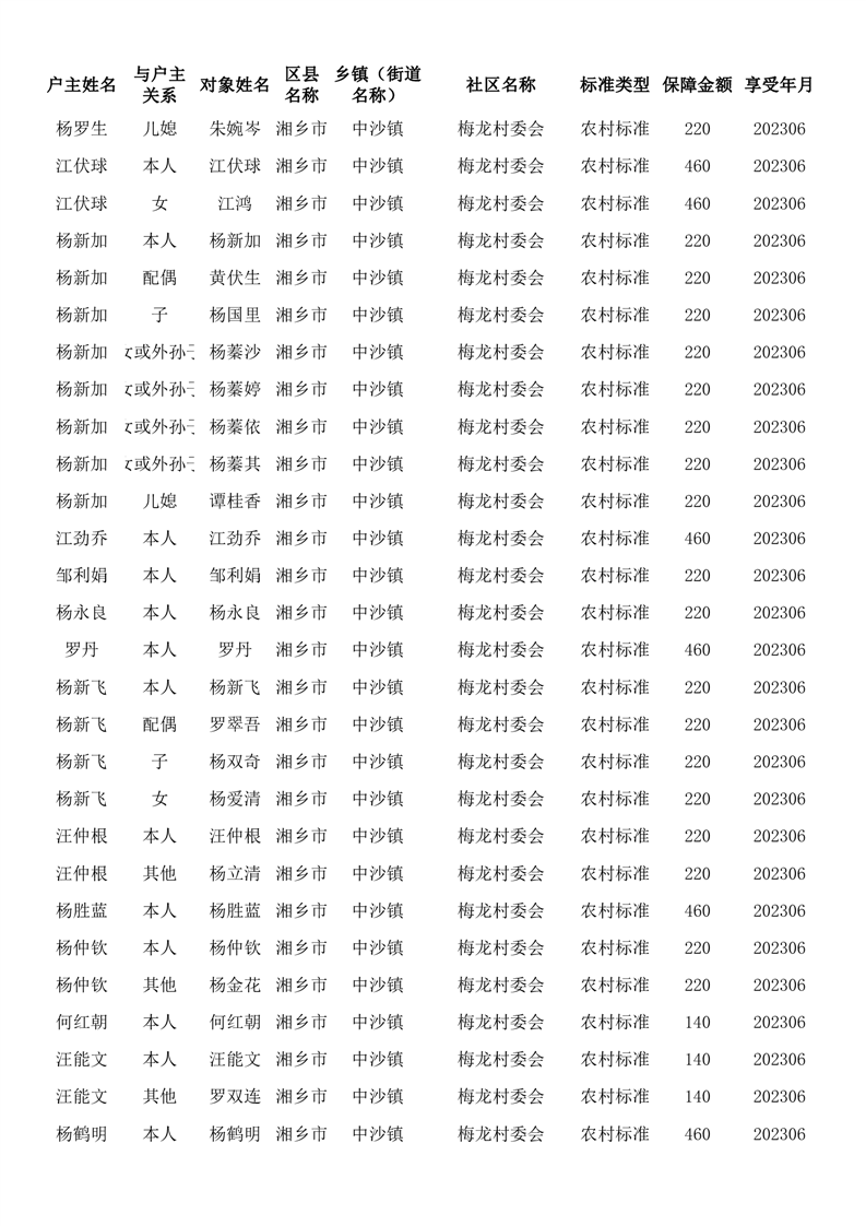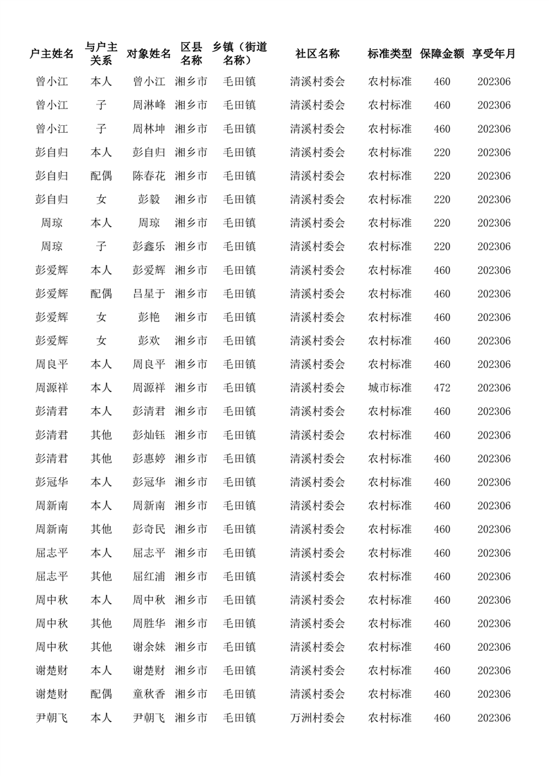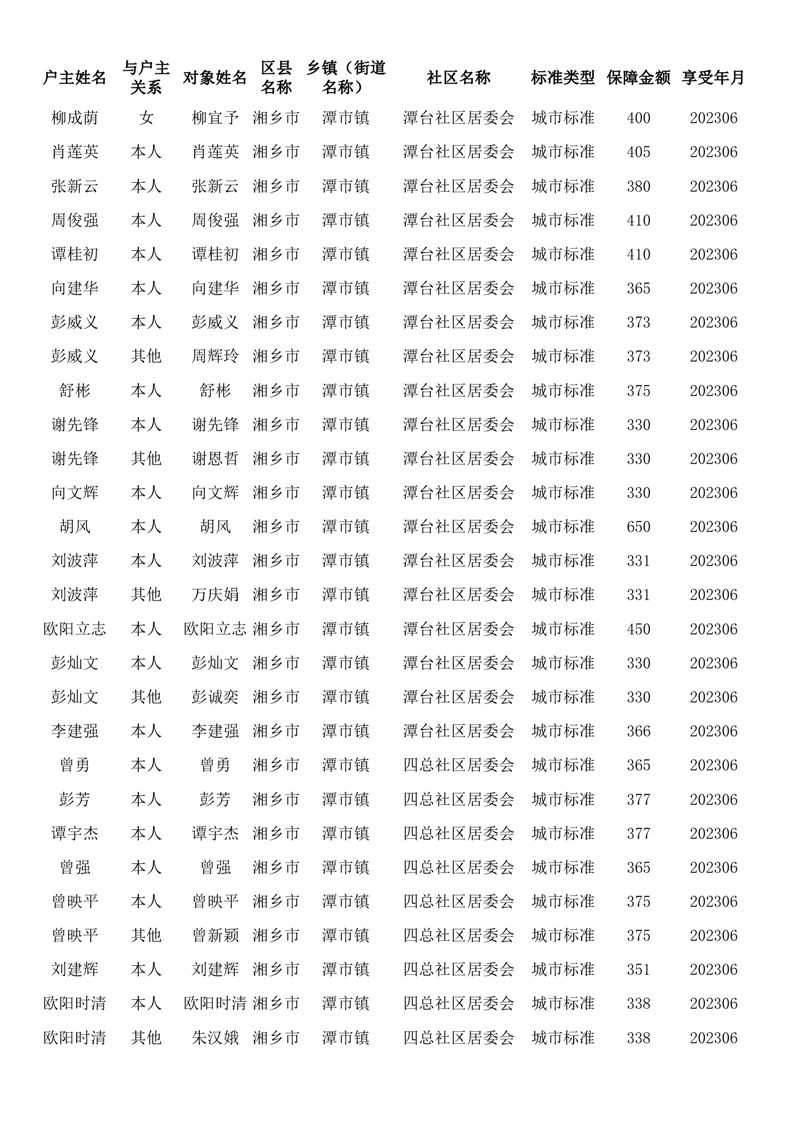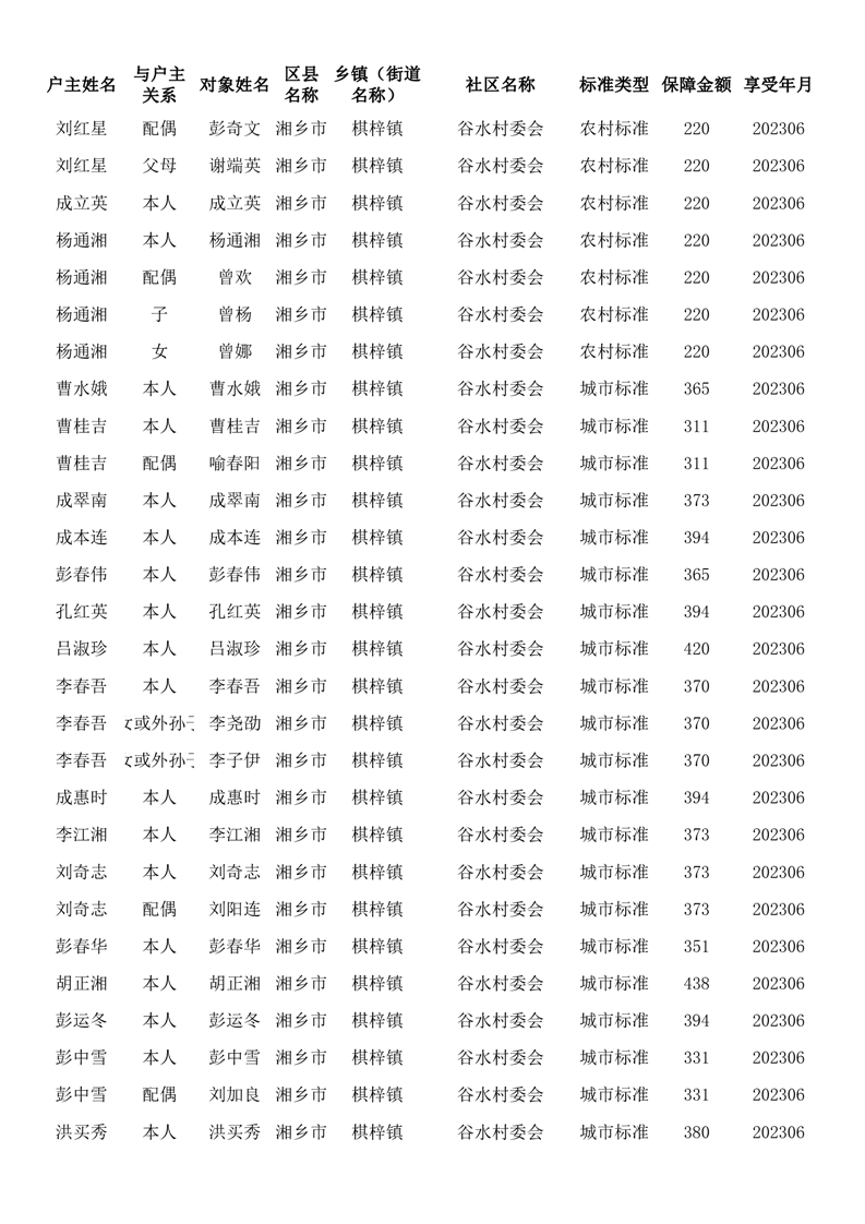 湘鄉(xiāng)市2023年6月城鄉(xiāng)低保救助對象審批匯總表