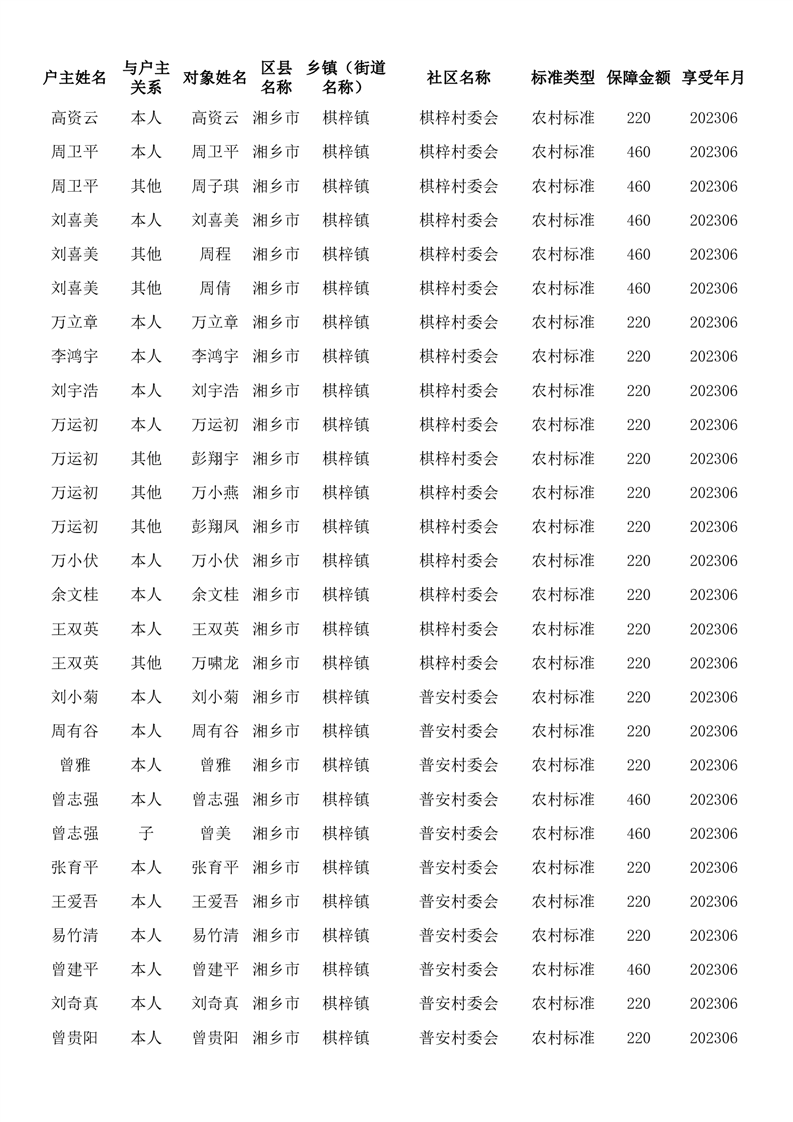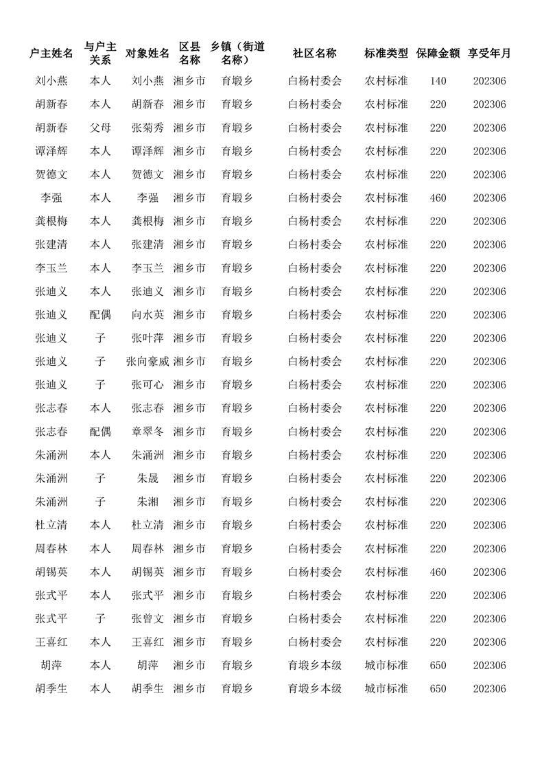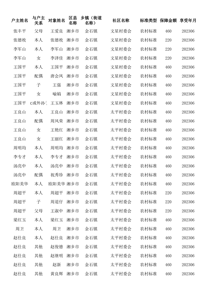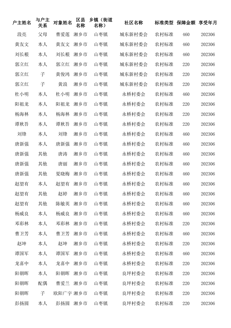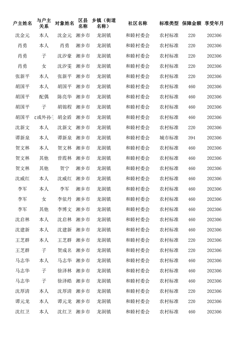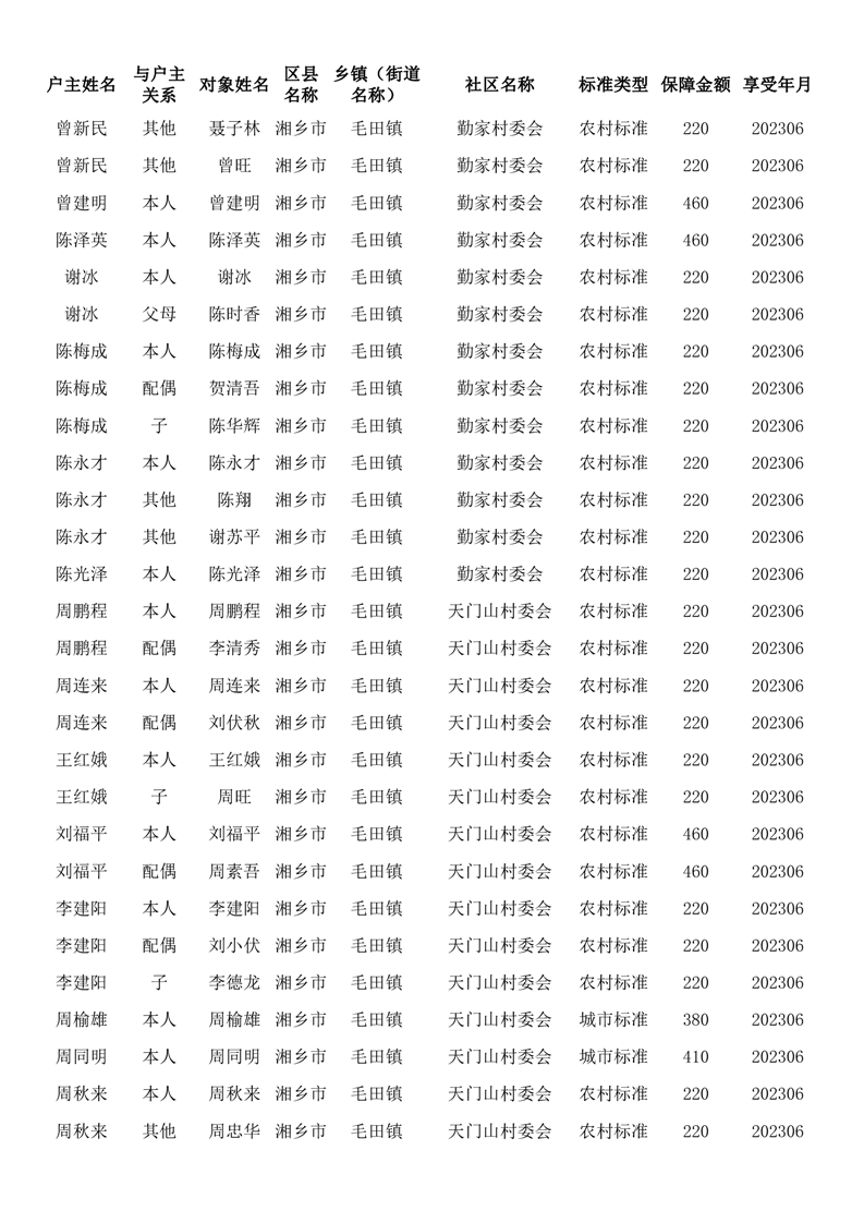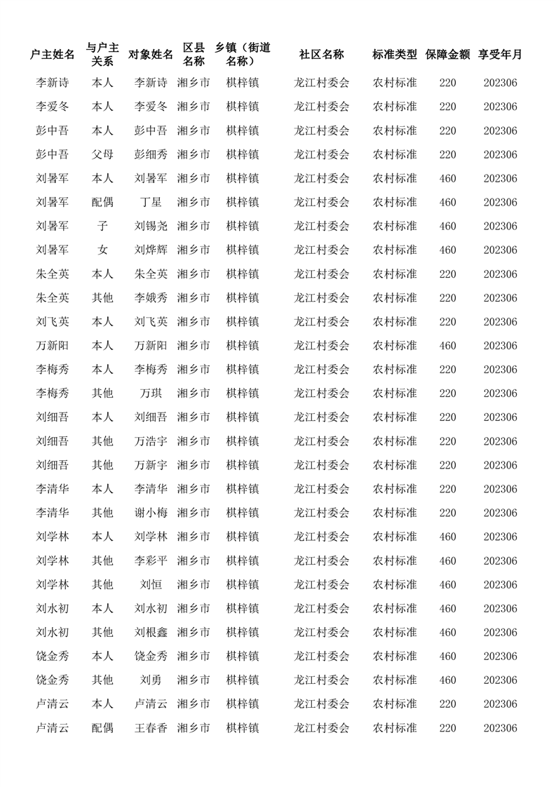 湘鄉(xiāng)市2023年6月城鄉(xiāng)低保救助對象審批匯總表