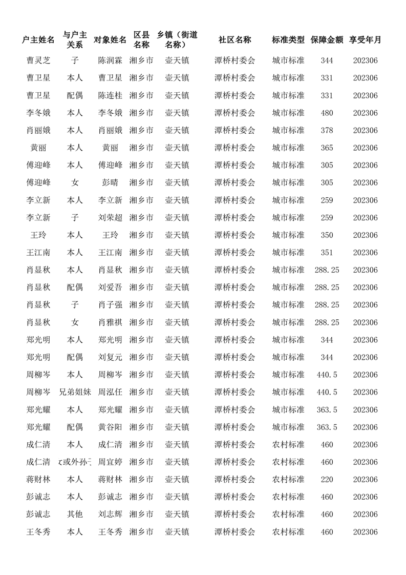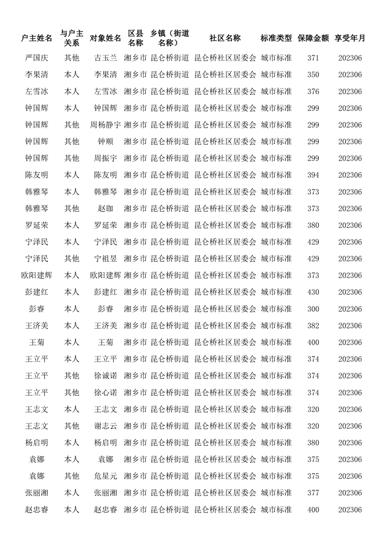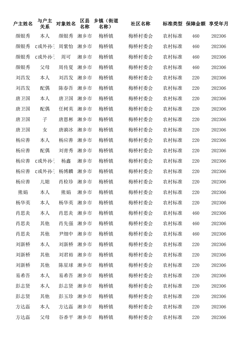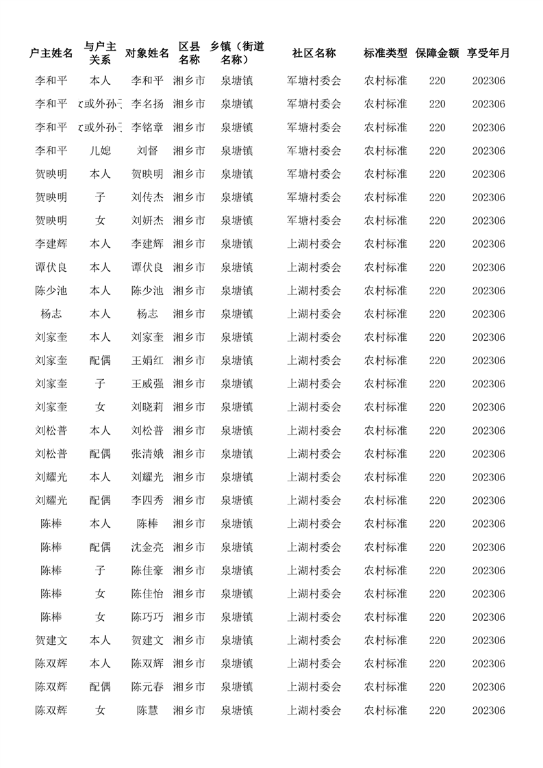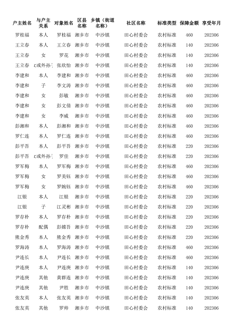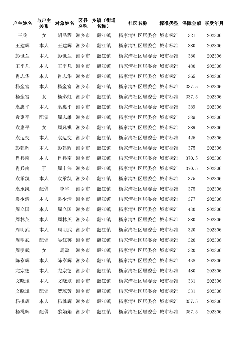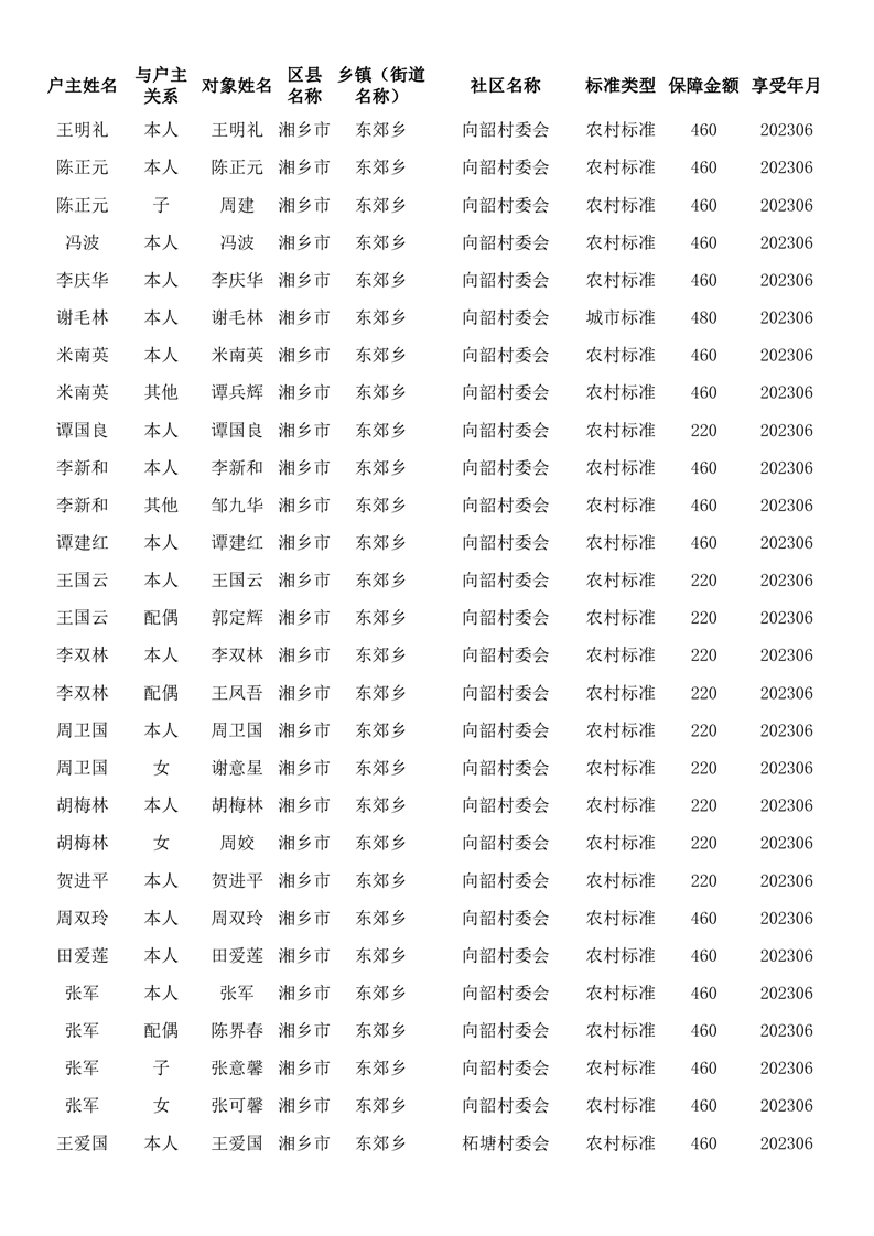 湘鄉(xiāng)市2023年6月城鄉(xiāng)低保救助對象審批匯總表