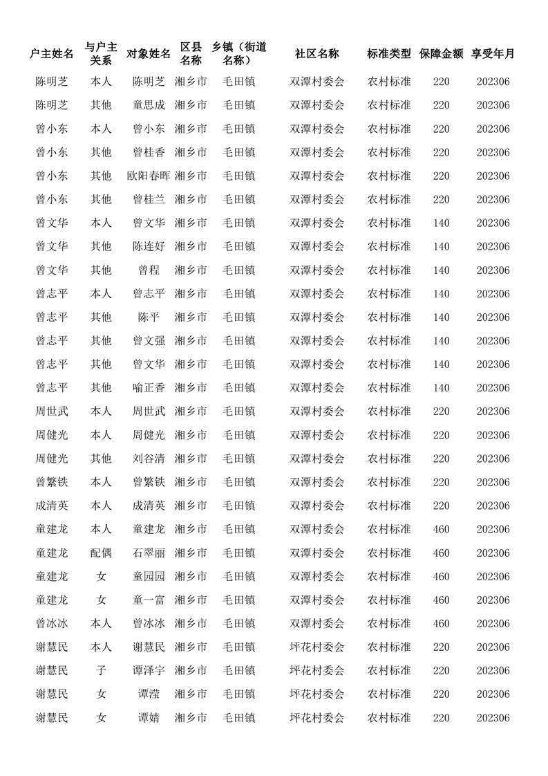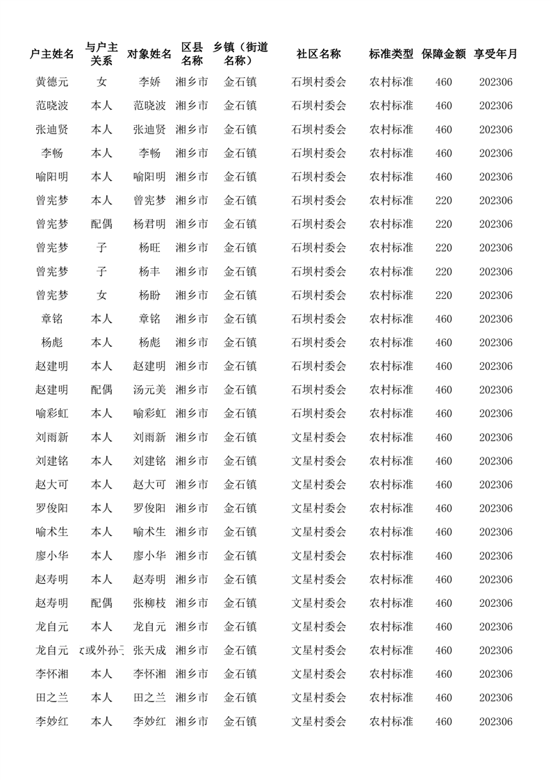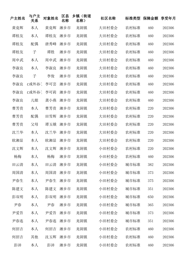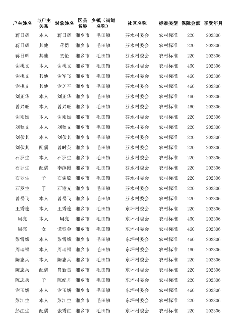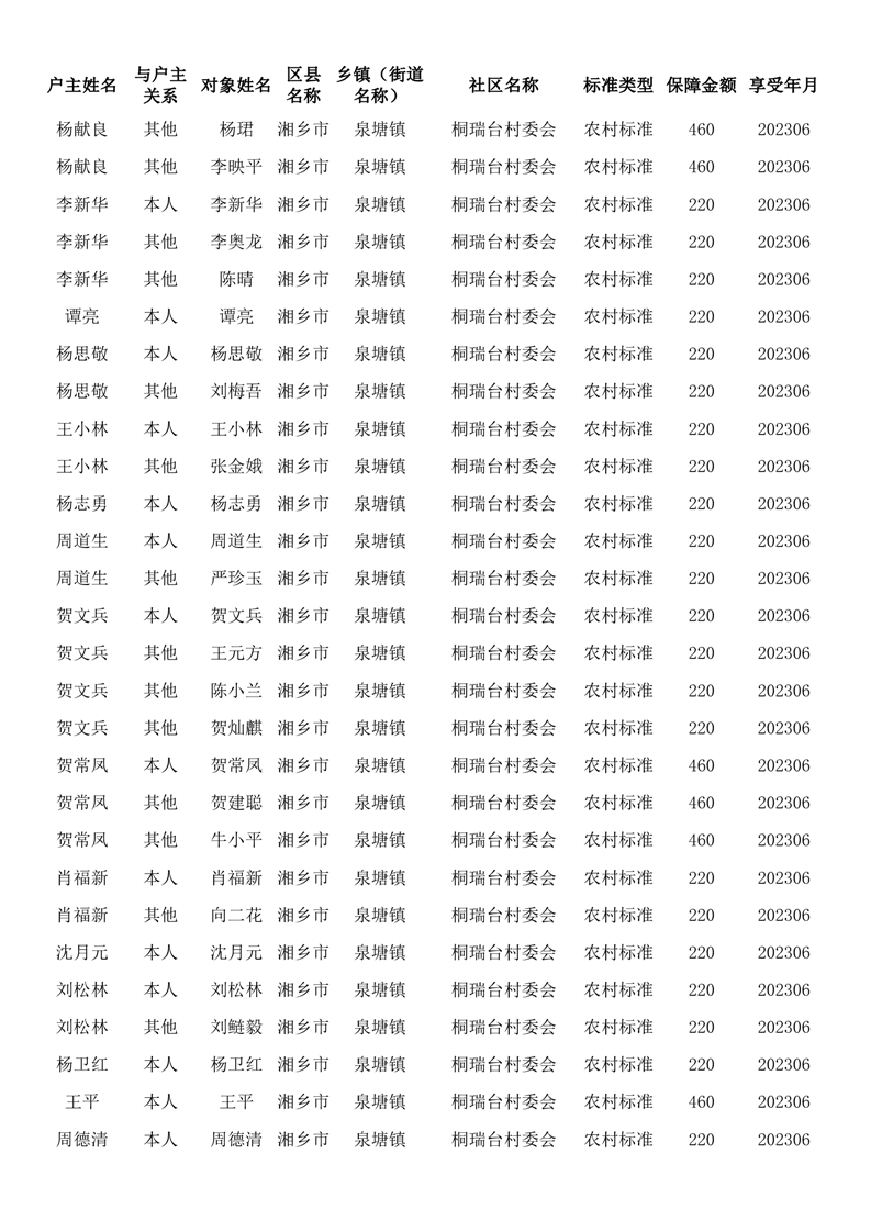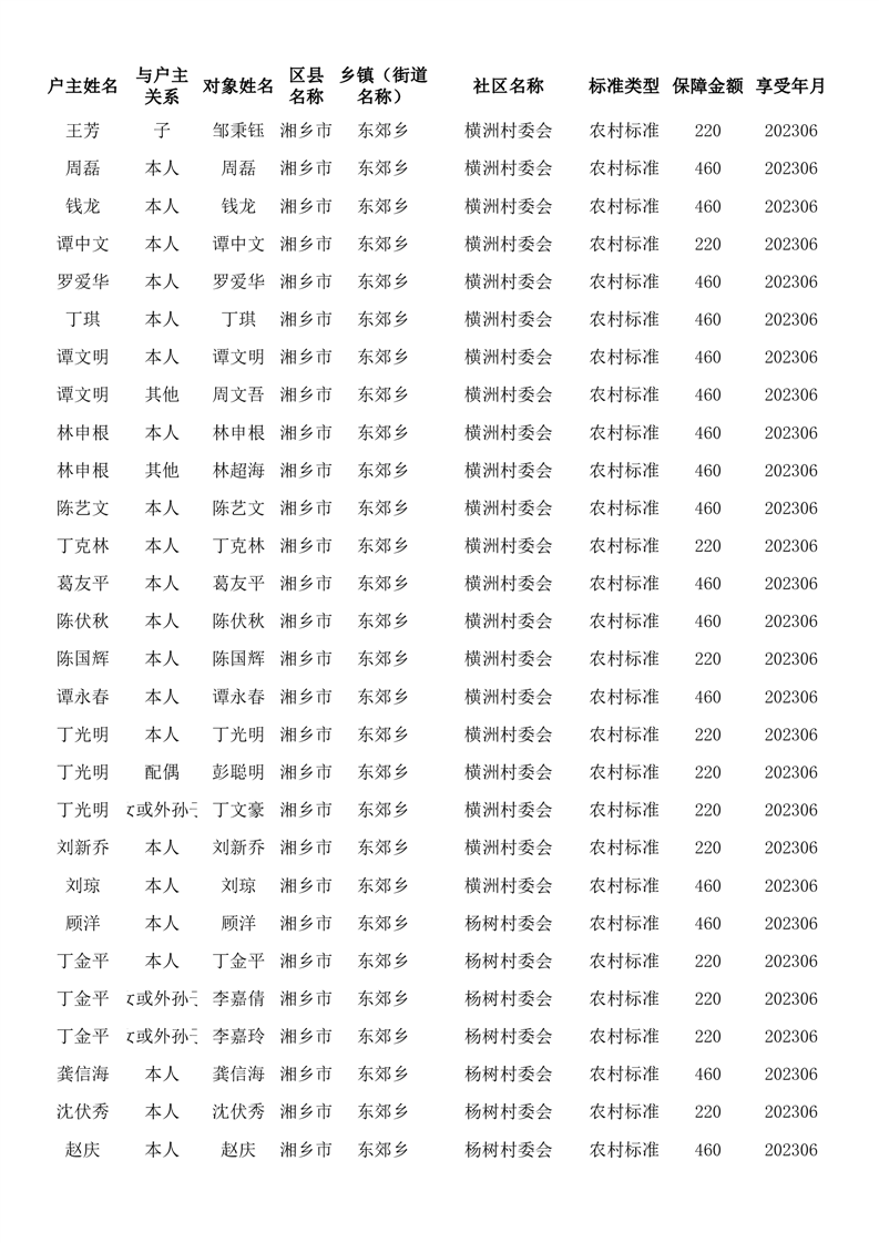湘鄉(xiāng)市2023年6月城鄉(xiāng)低保救助對象審批匯總表