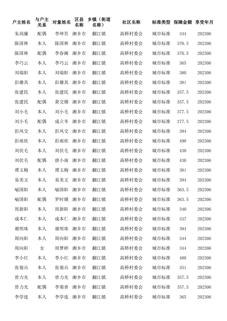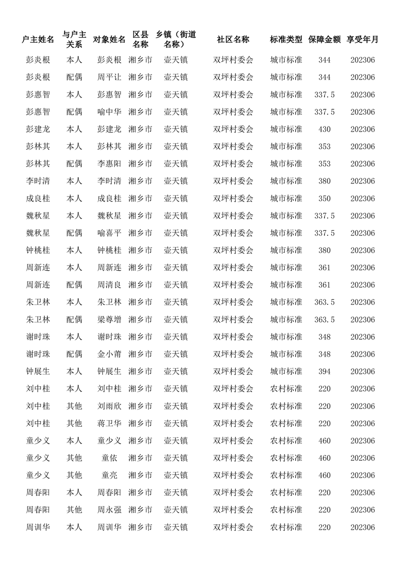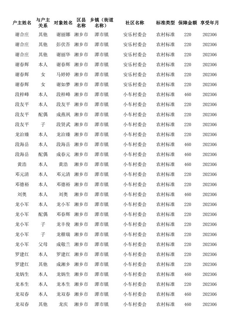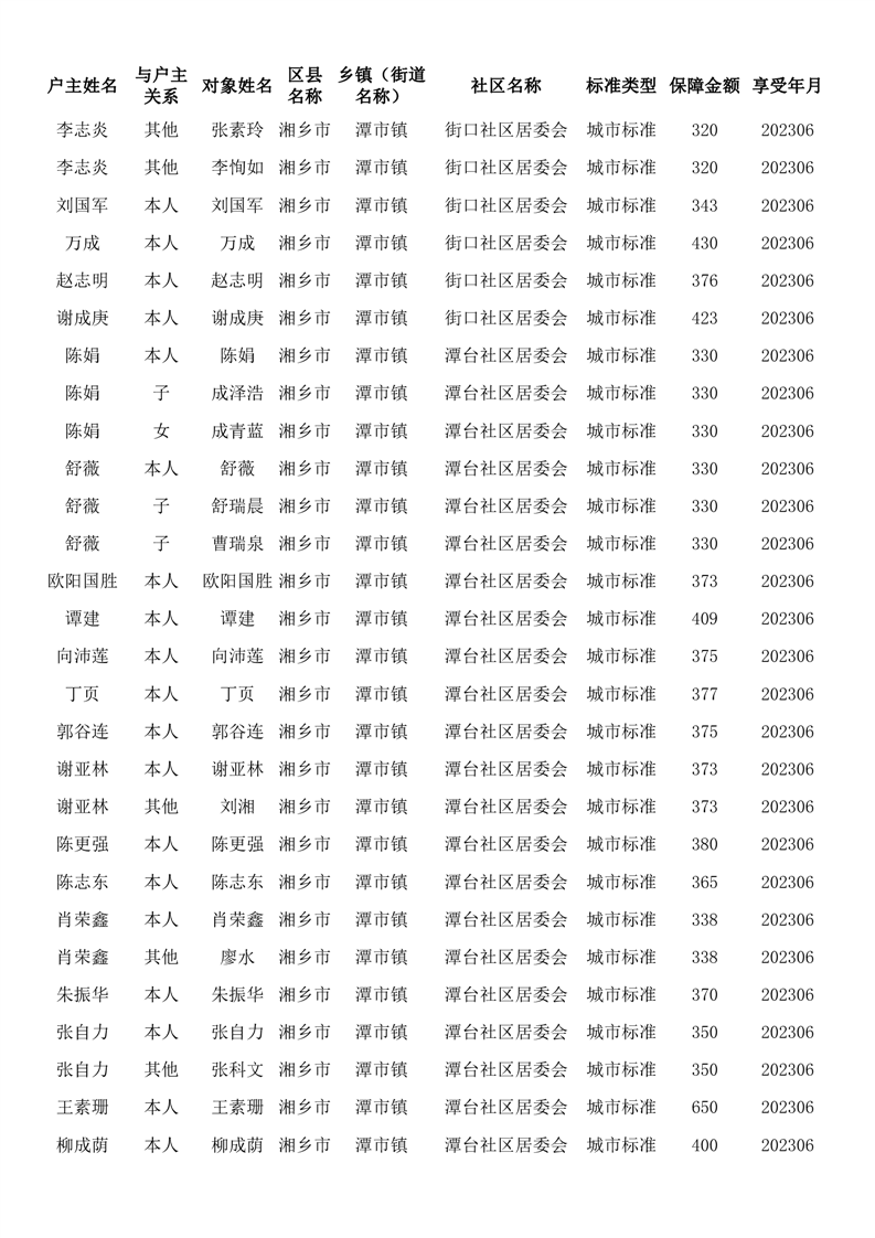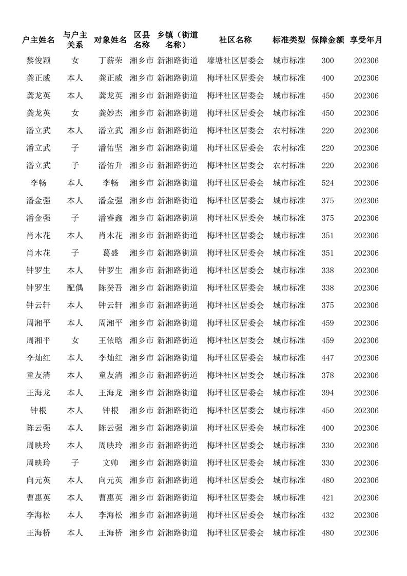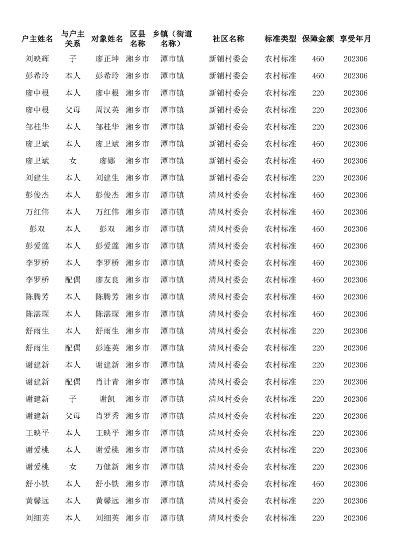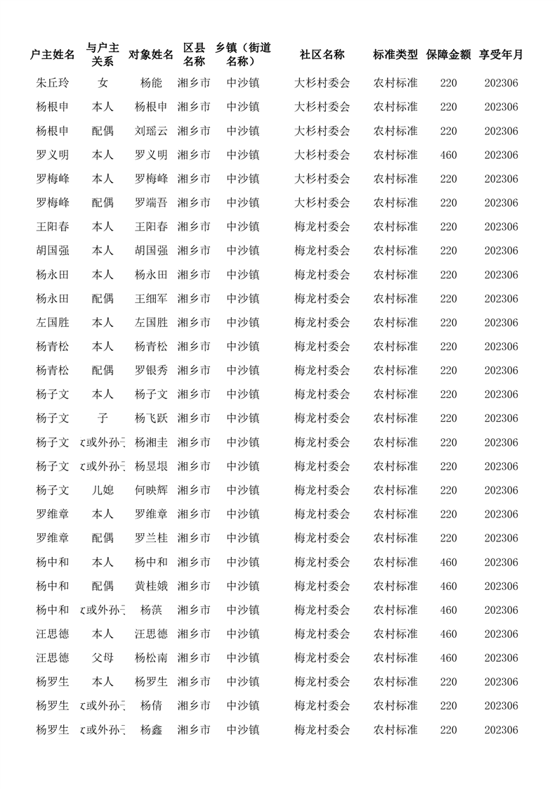 湘鄉(xiāng)市2023年6月城鄉(xiāng)低保救助對象審批匯總表