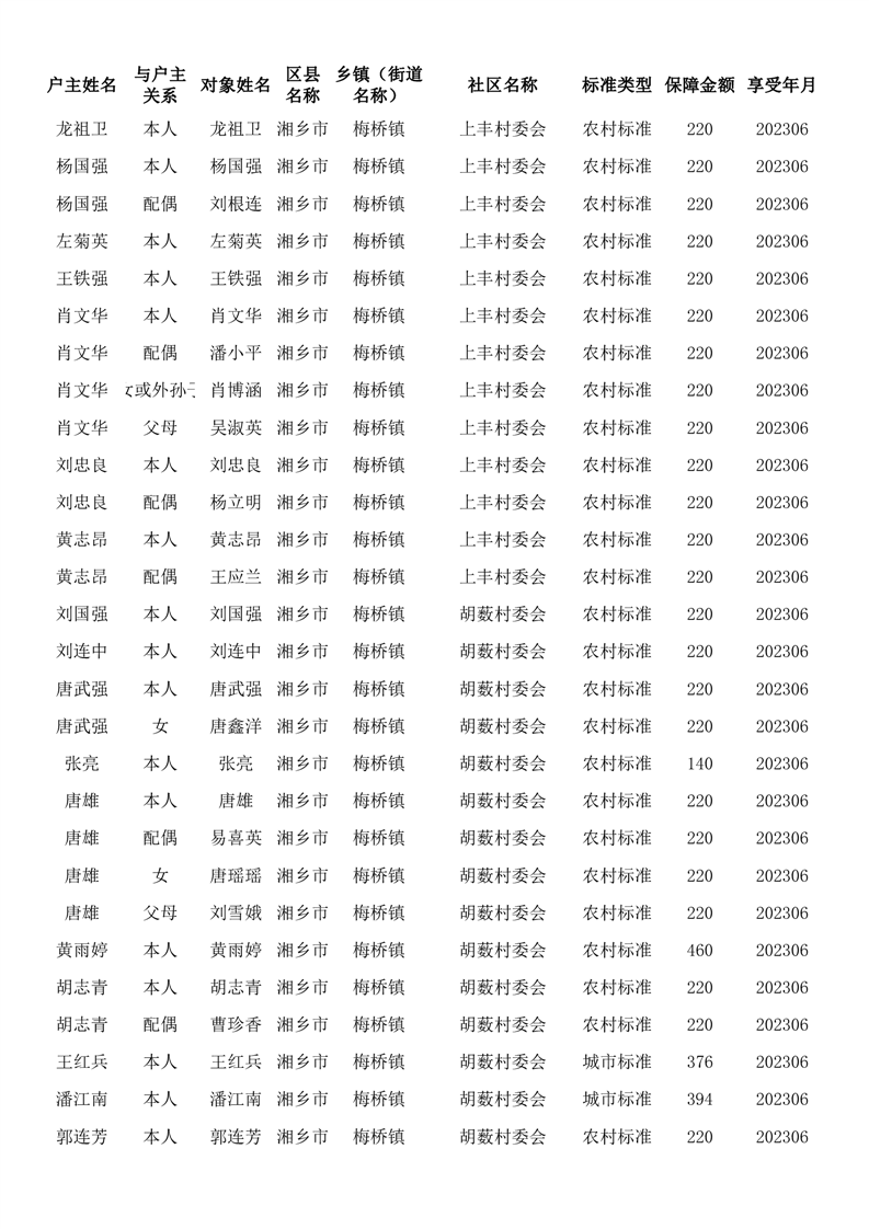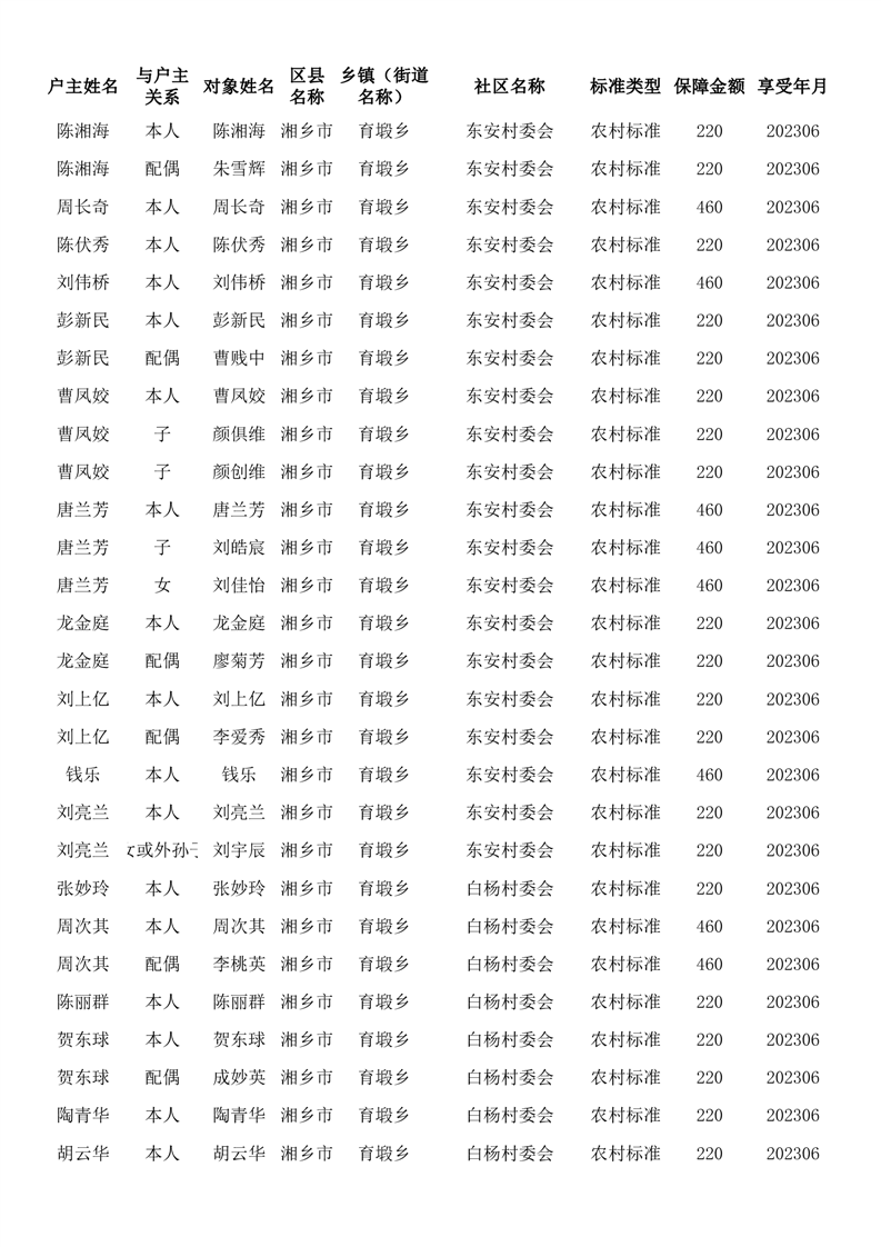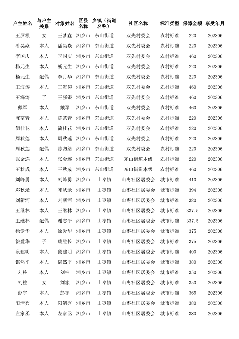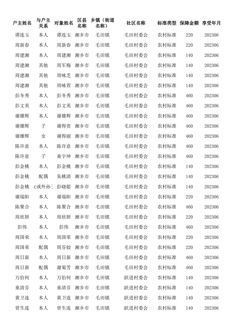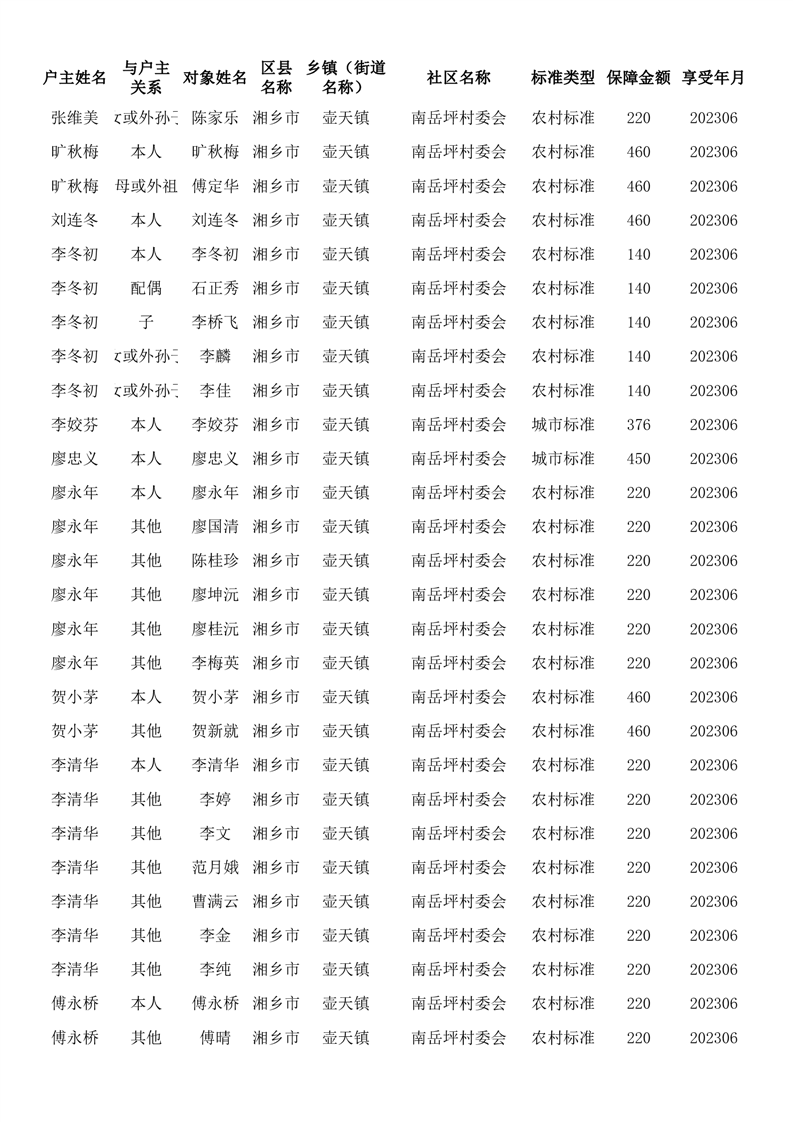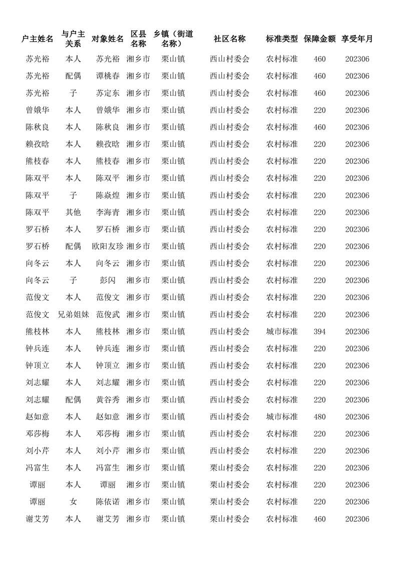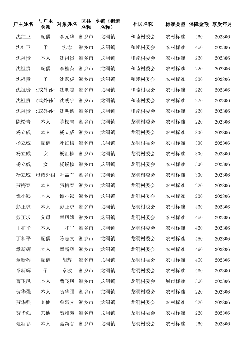湘鄉(xiāng)市2023年6月城鄉(xiāng)低保救助對象審批匯總表