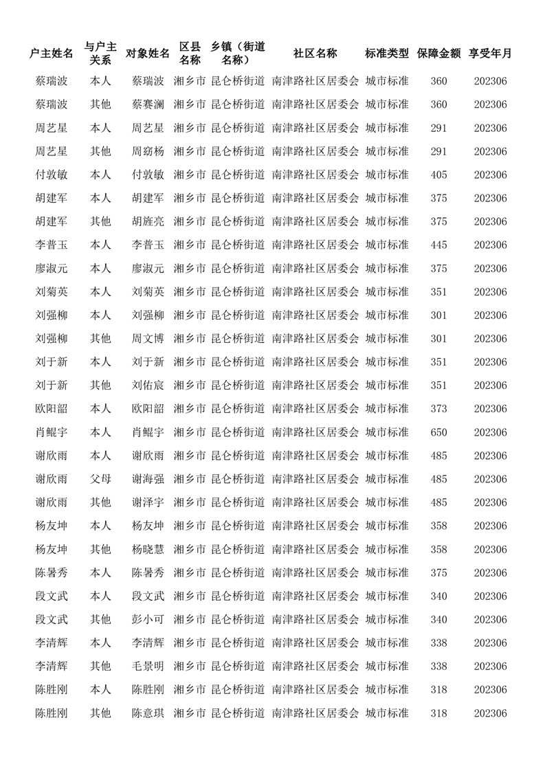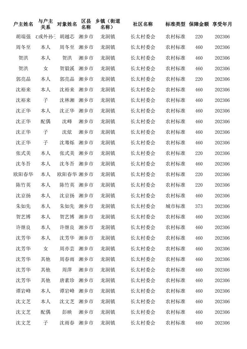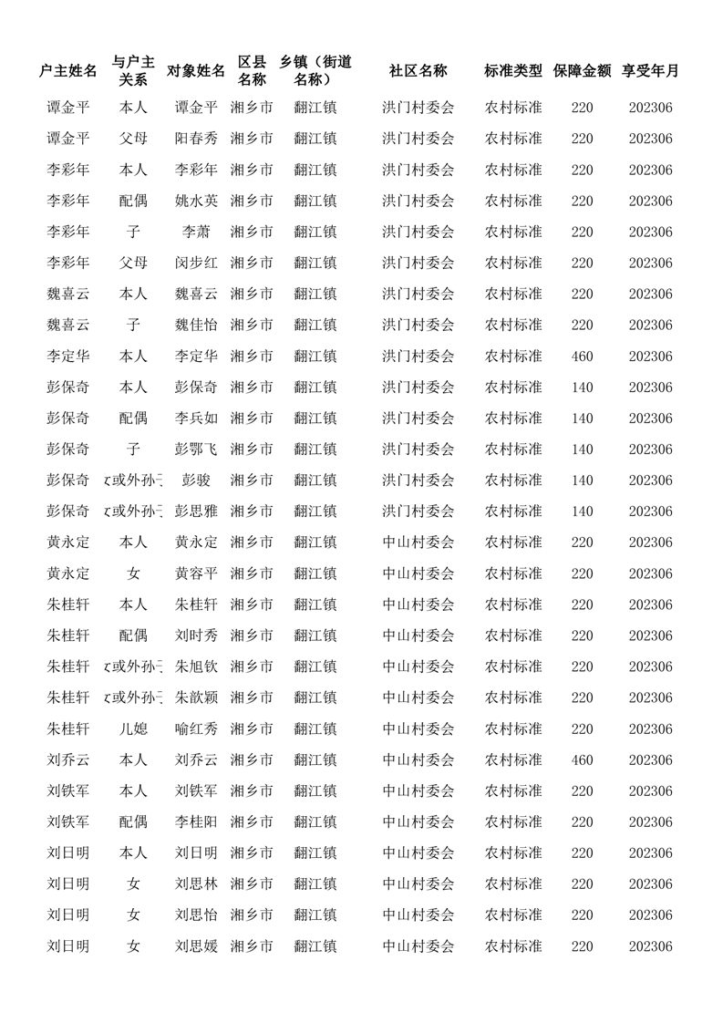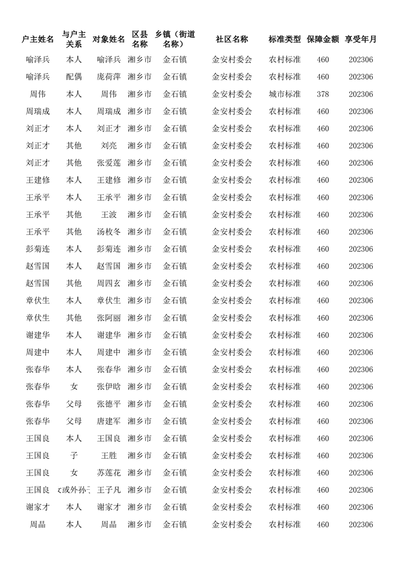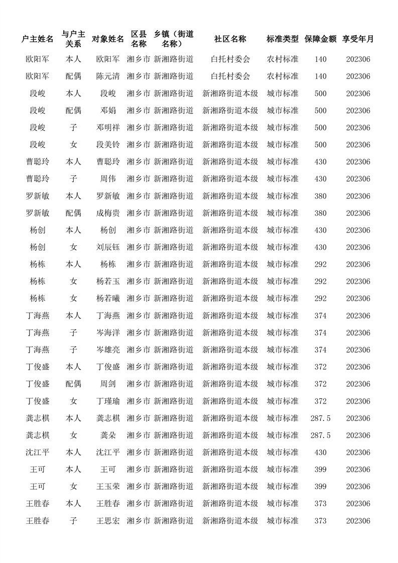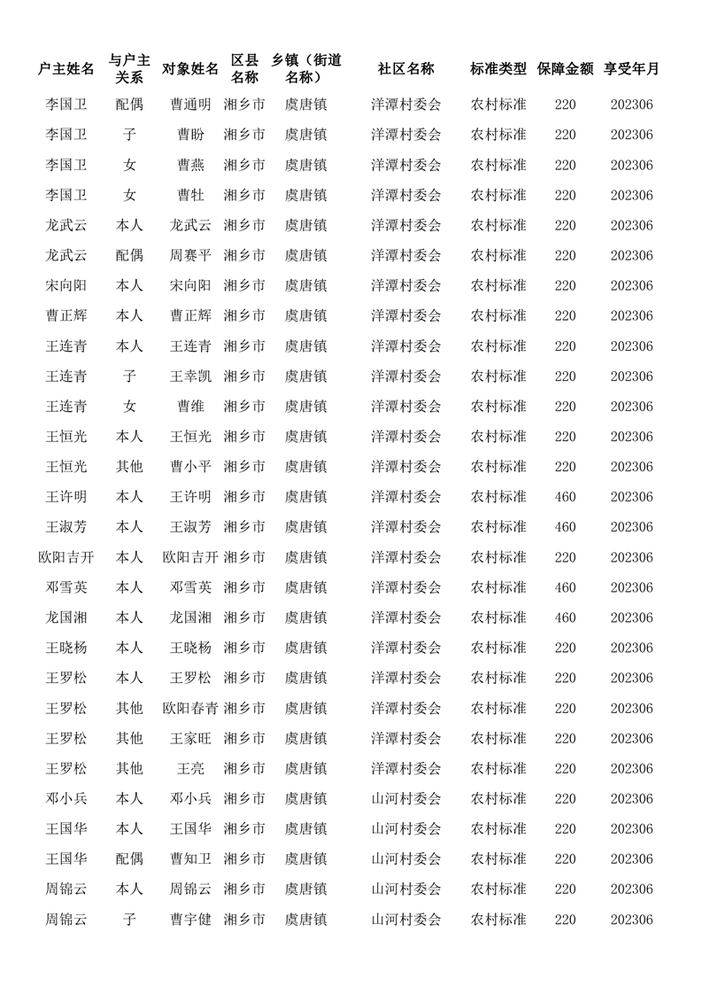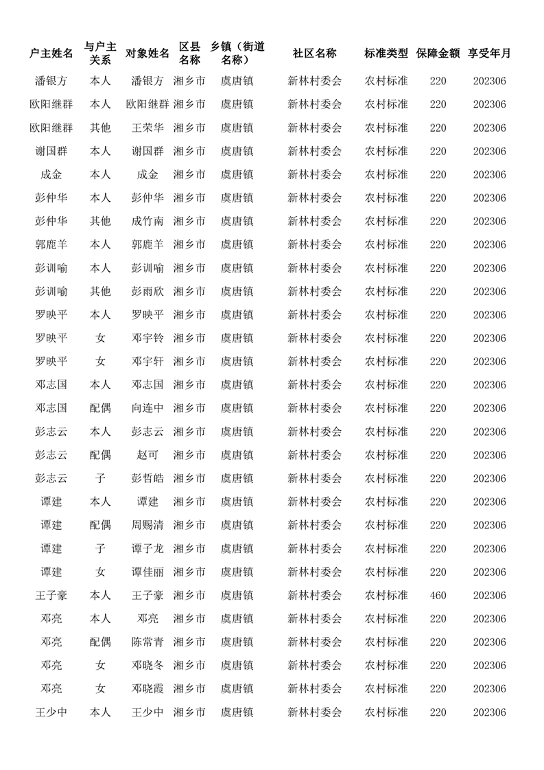 湘鄉(xiāng)市2023年6月城鄉(xiāng)低保救助對象審批匯總表
