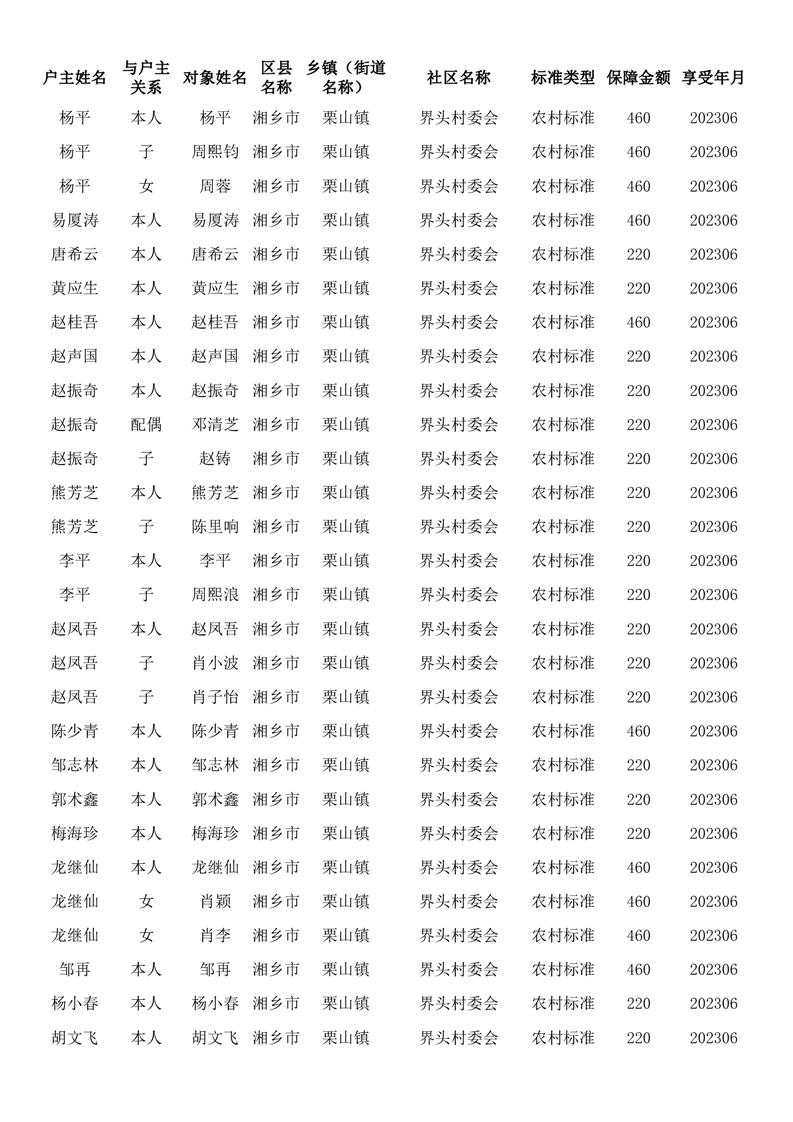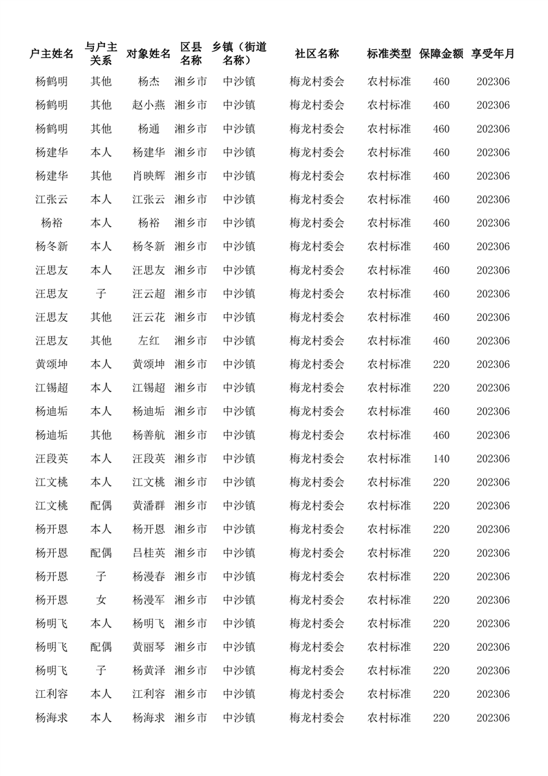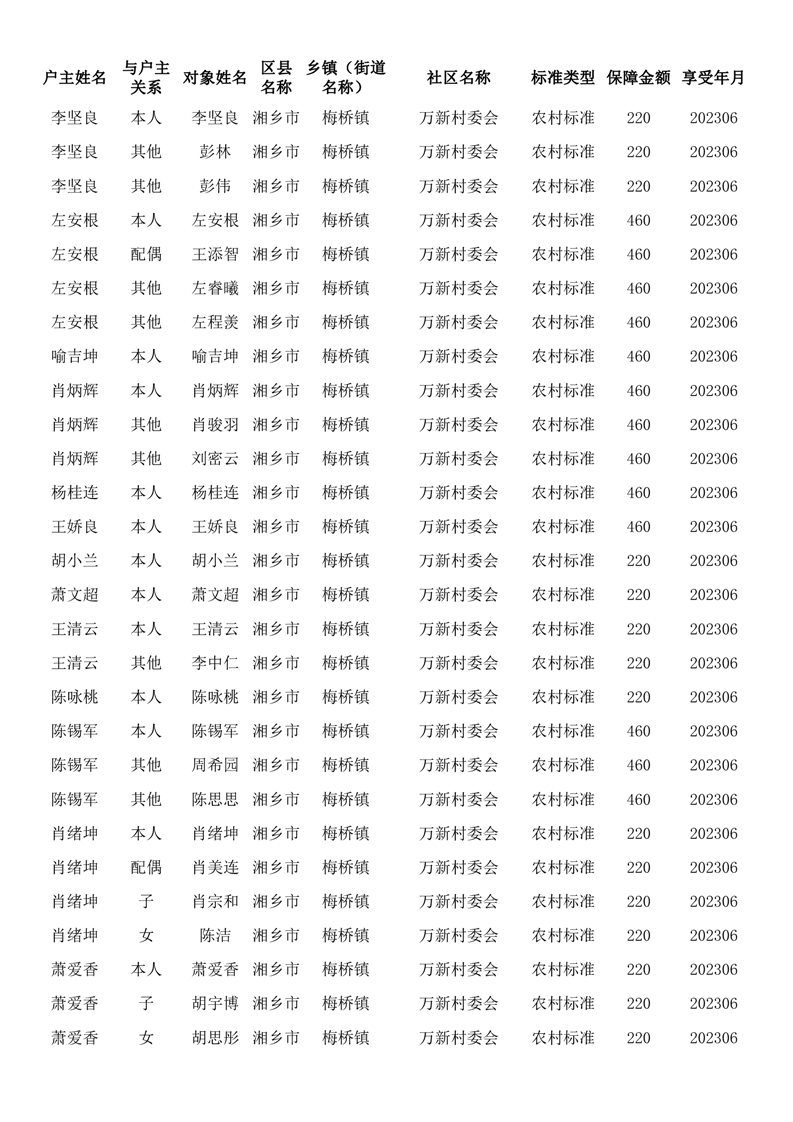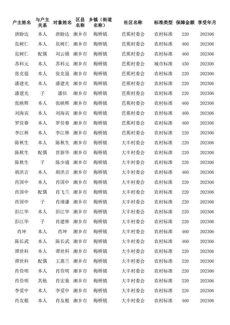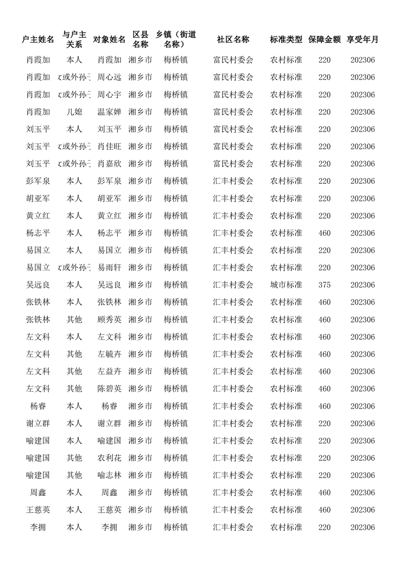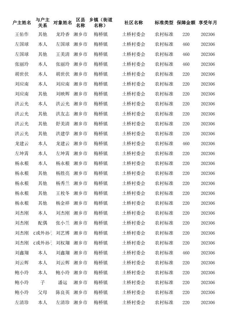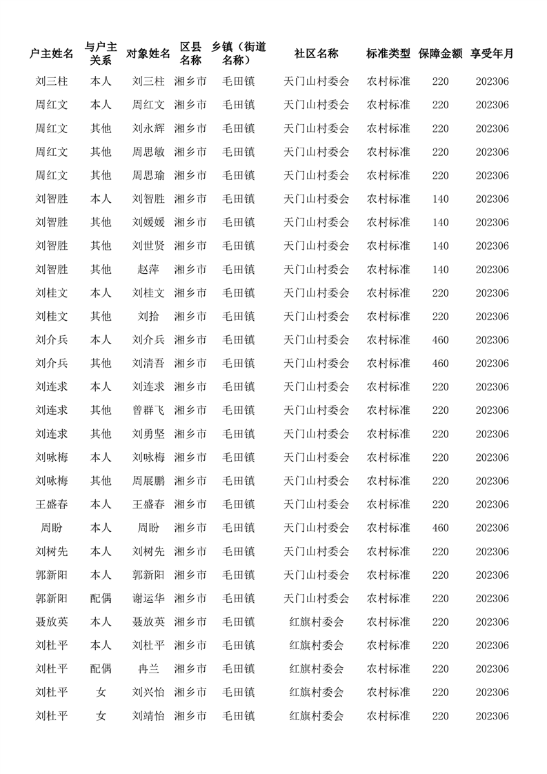 湘鄉(xiāng)市2023年6月城鄉(xiāng)低保救助對象審批匯總表