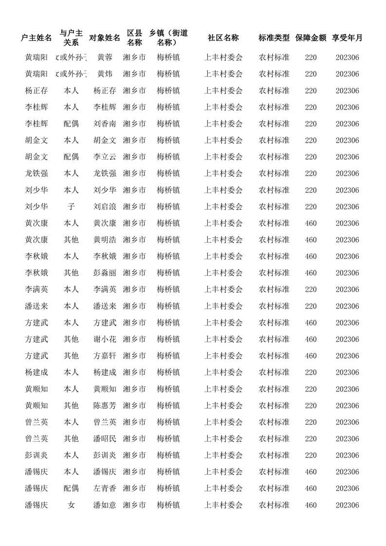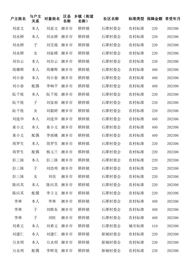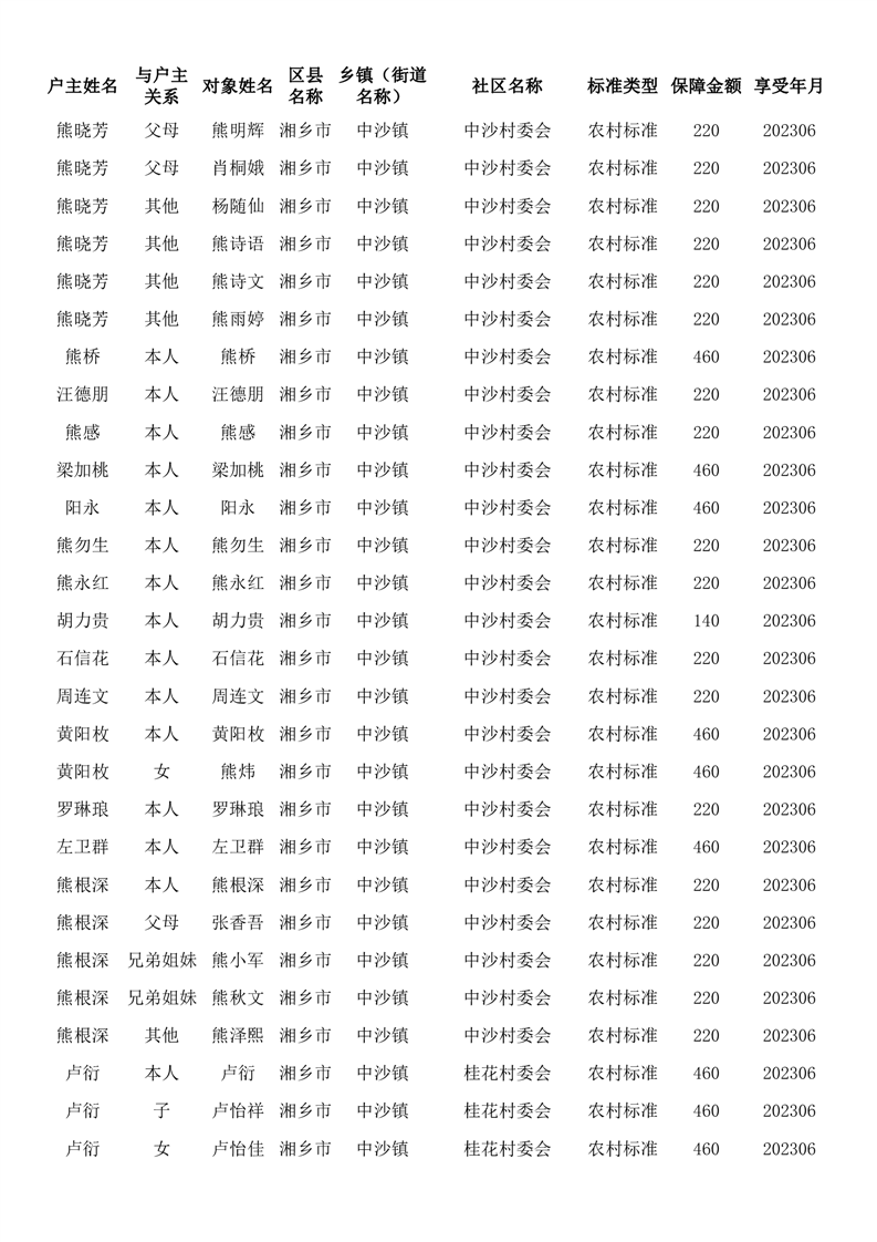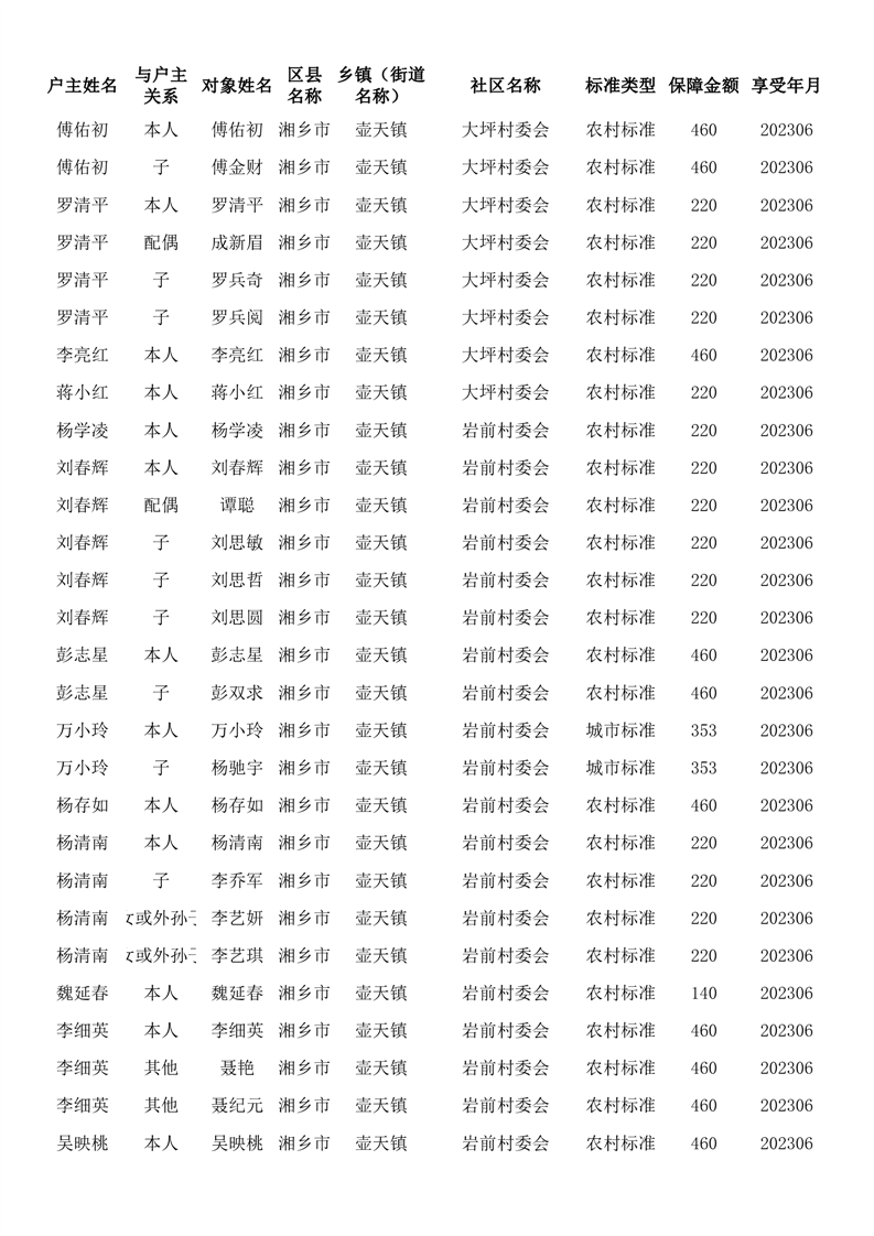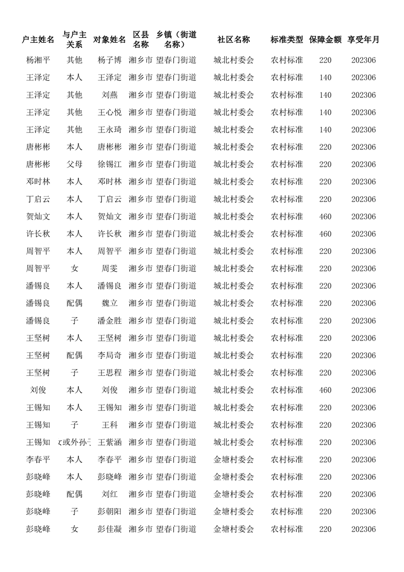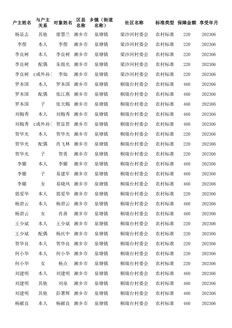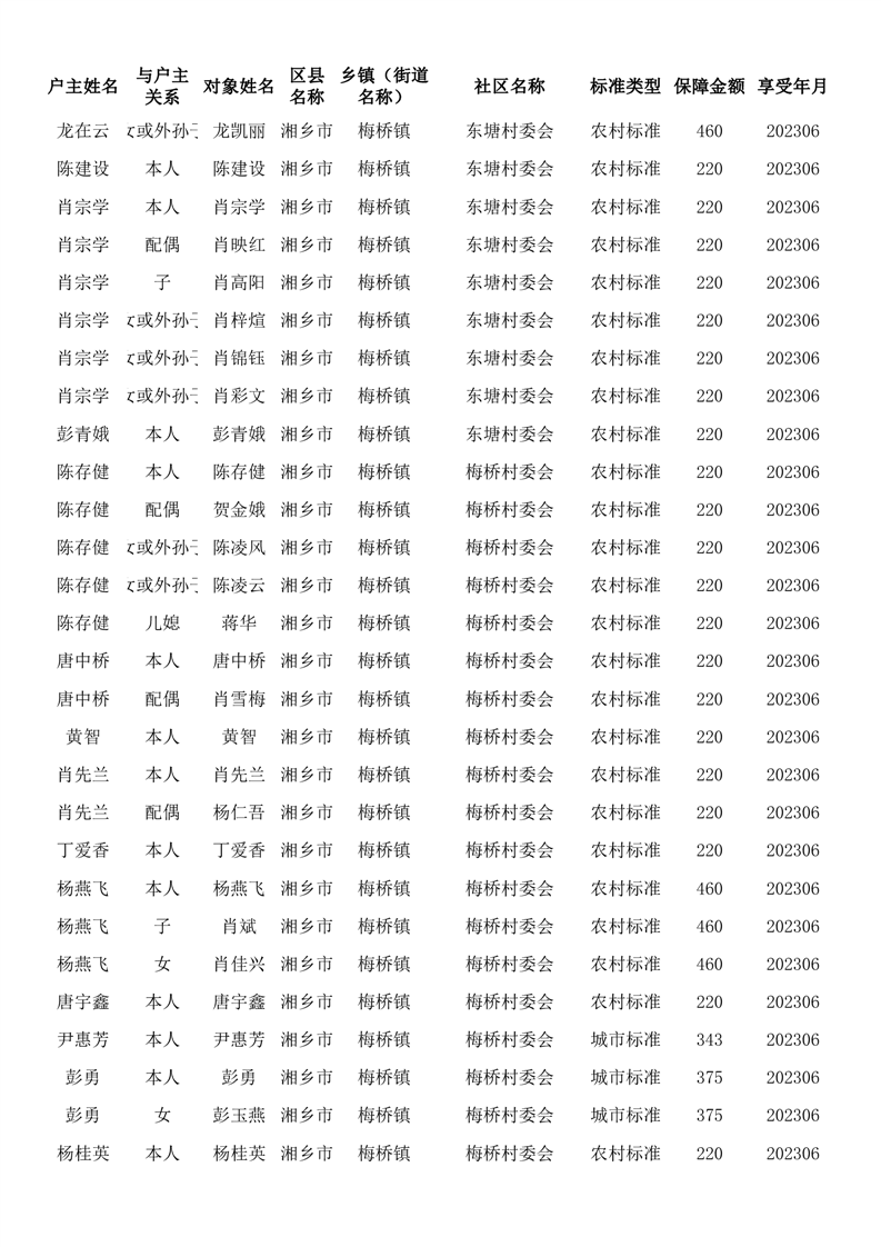 湘鄉(xiāng)市2023年6月城鄉(xiāng)低保救助對象審批匯總表