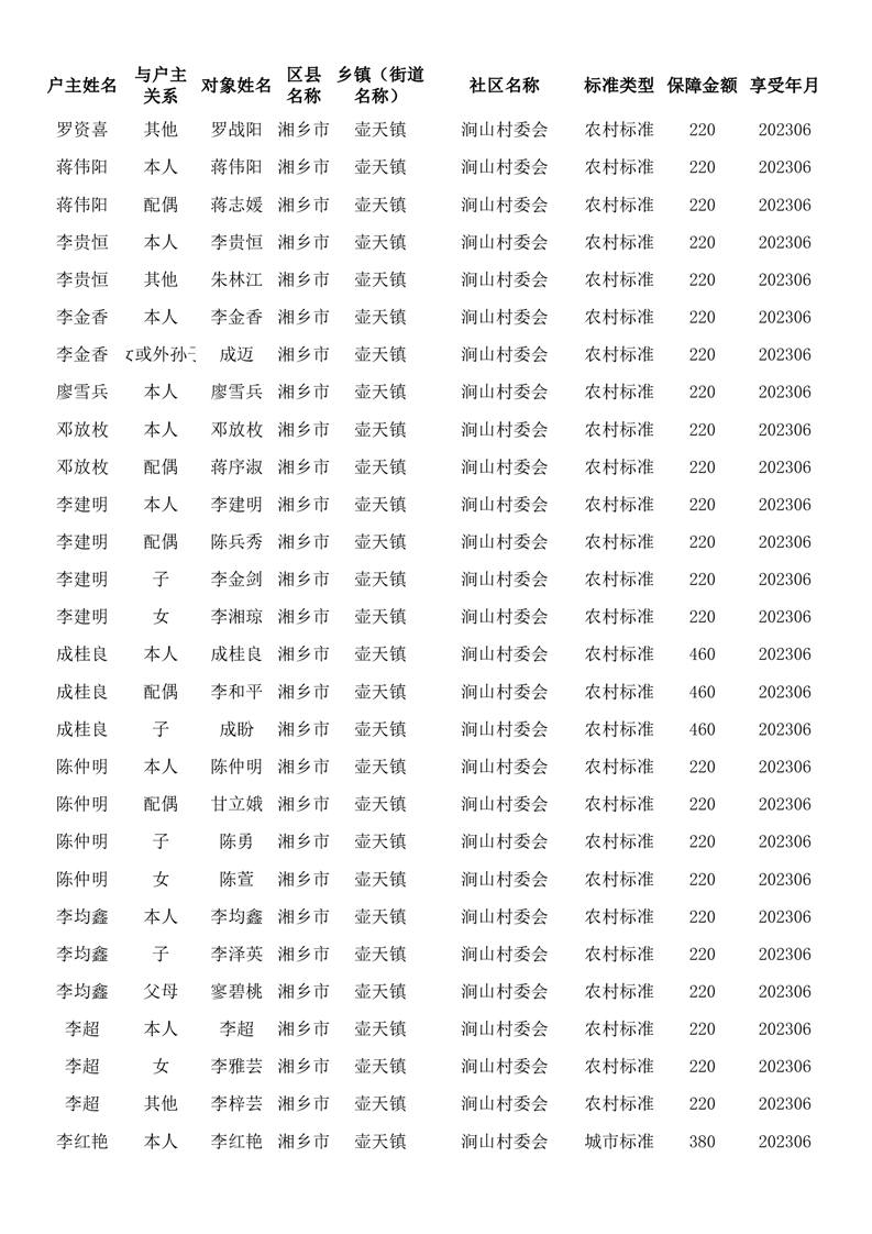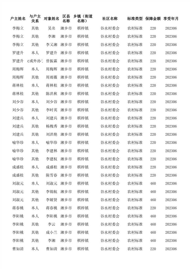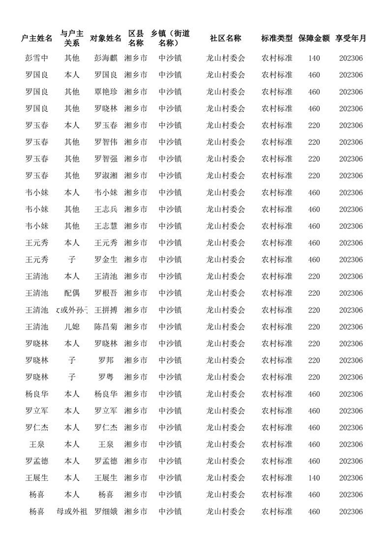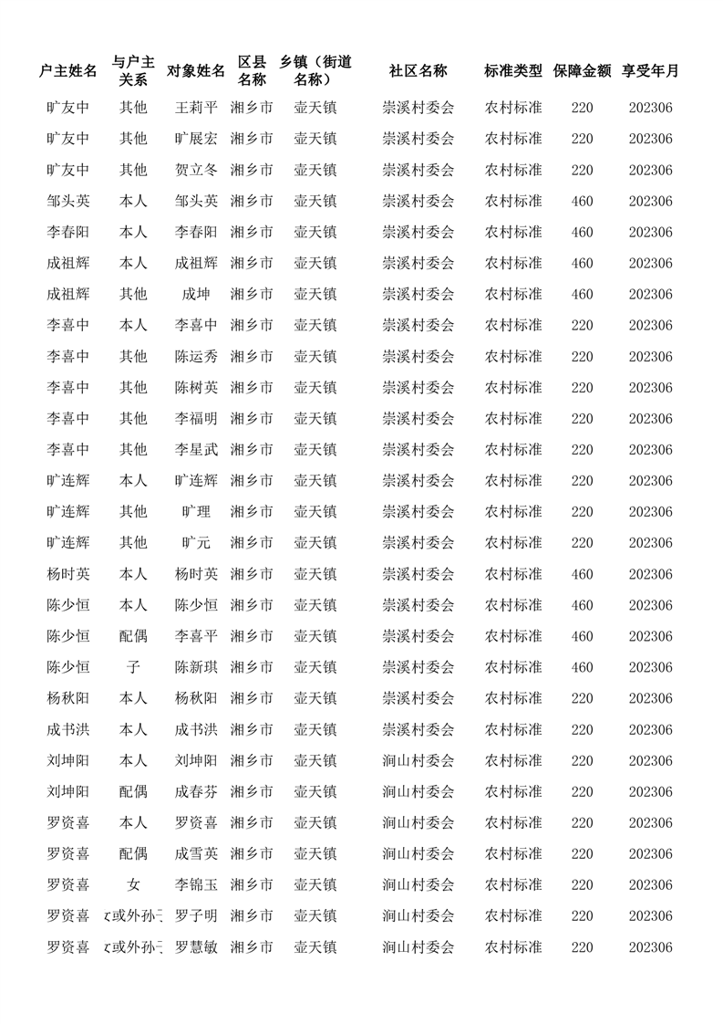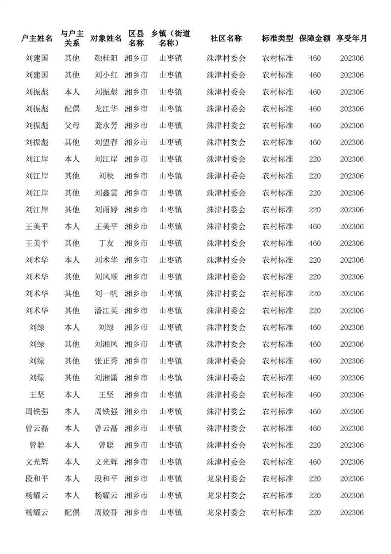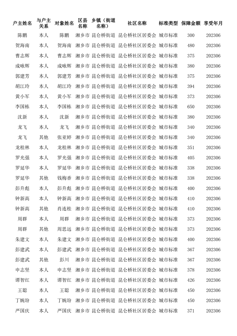 湘鄉(xiāng)市2023年6月城鄉(xiāng)低保救助對象審批匯總表