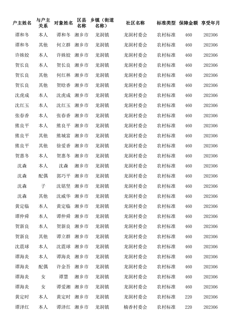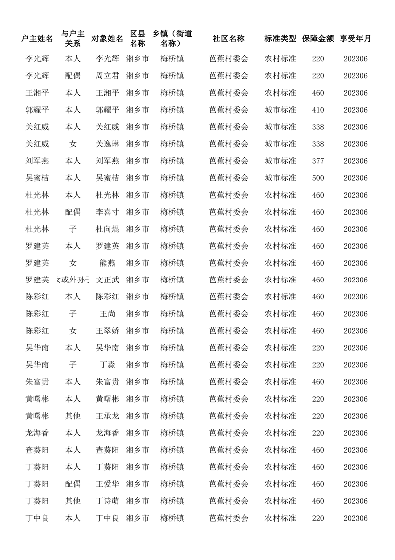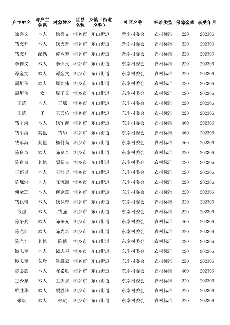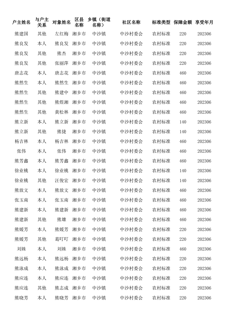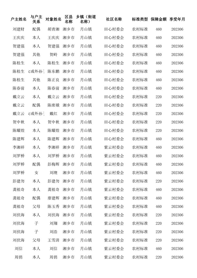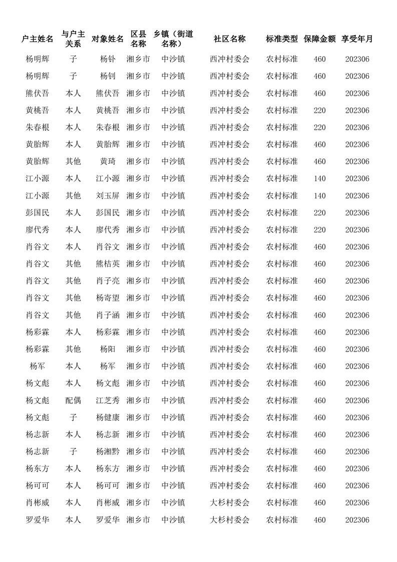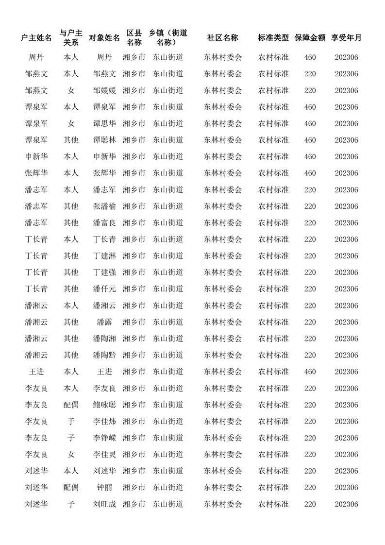 湘鄉(xiāng)市2023年6月城鄉(xiāng)低保救助對象審批匯總表