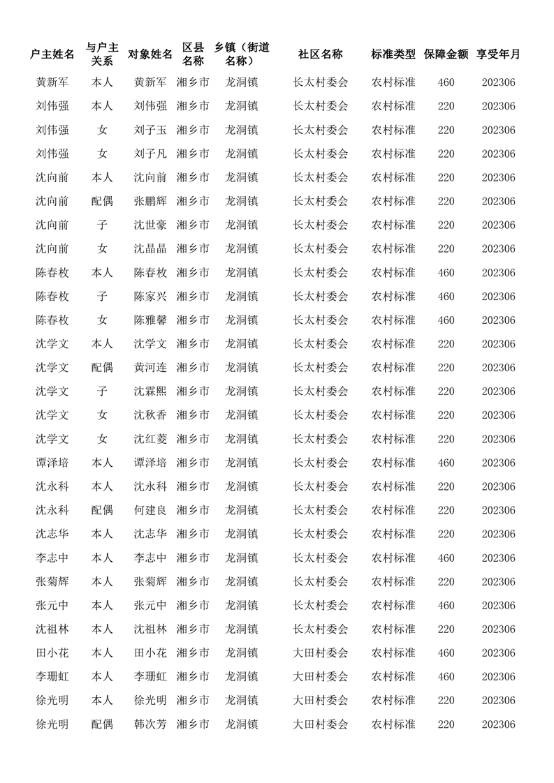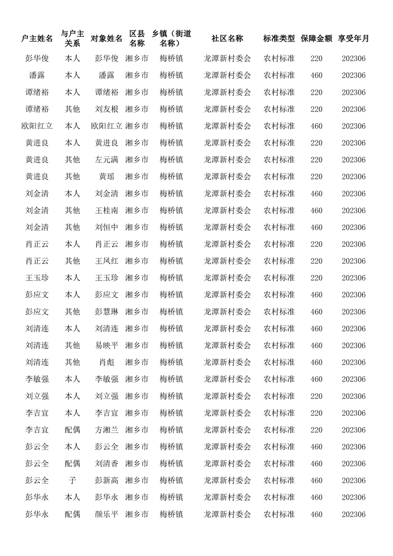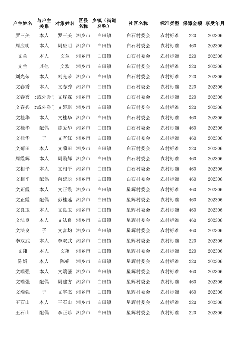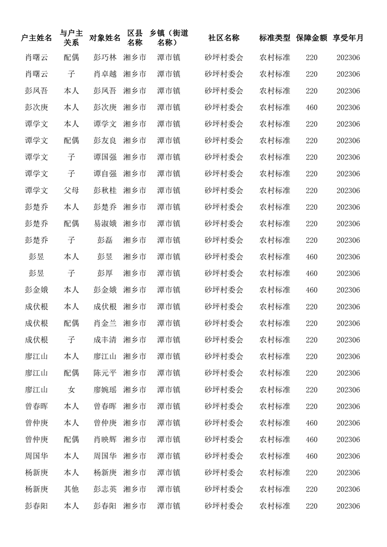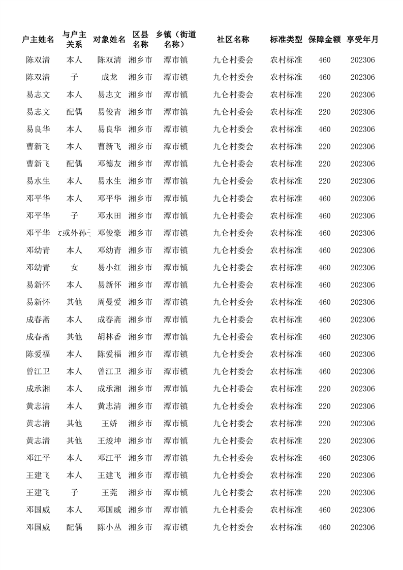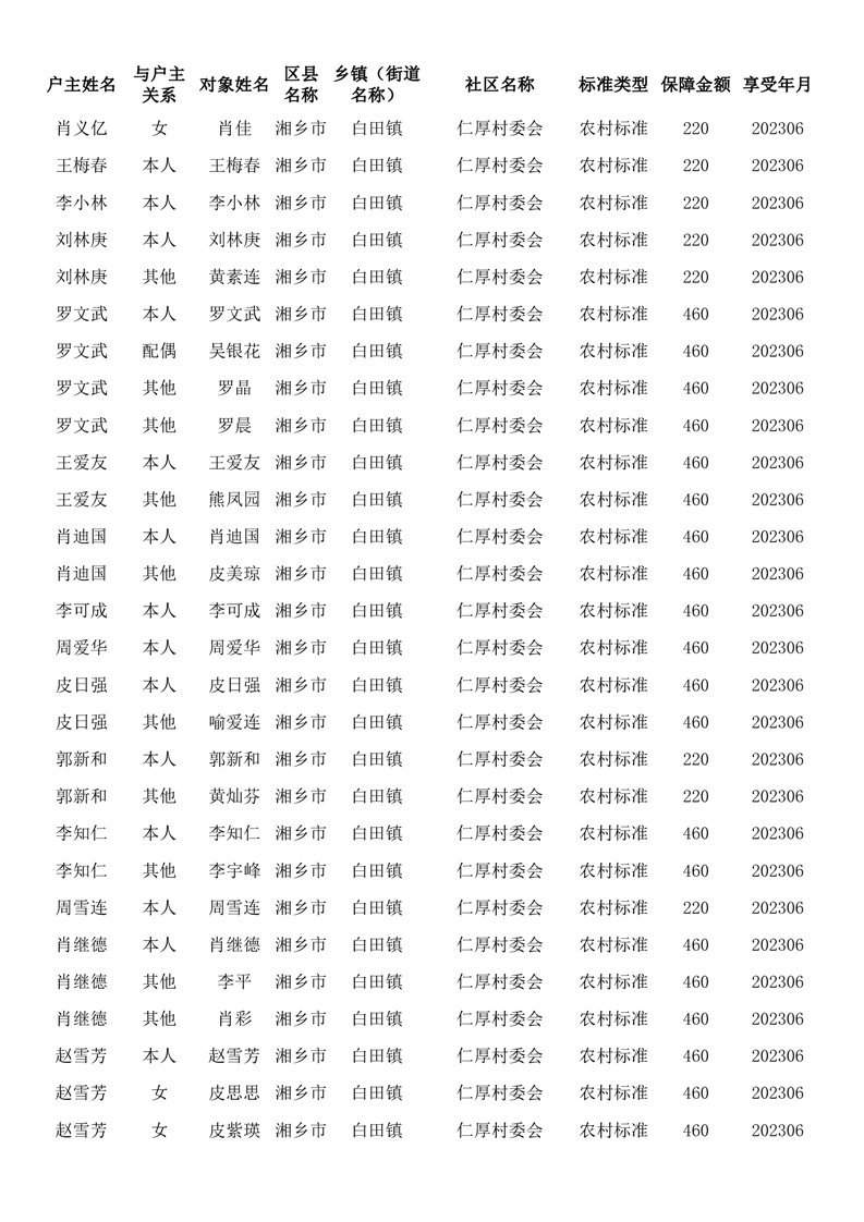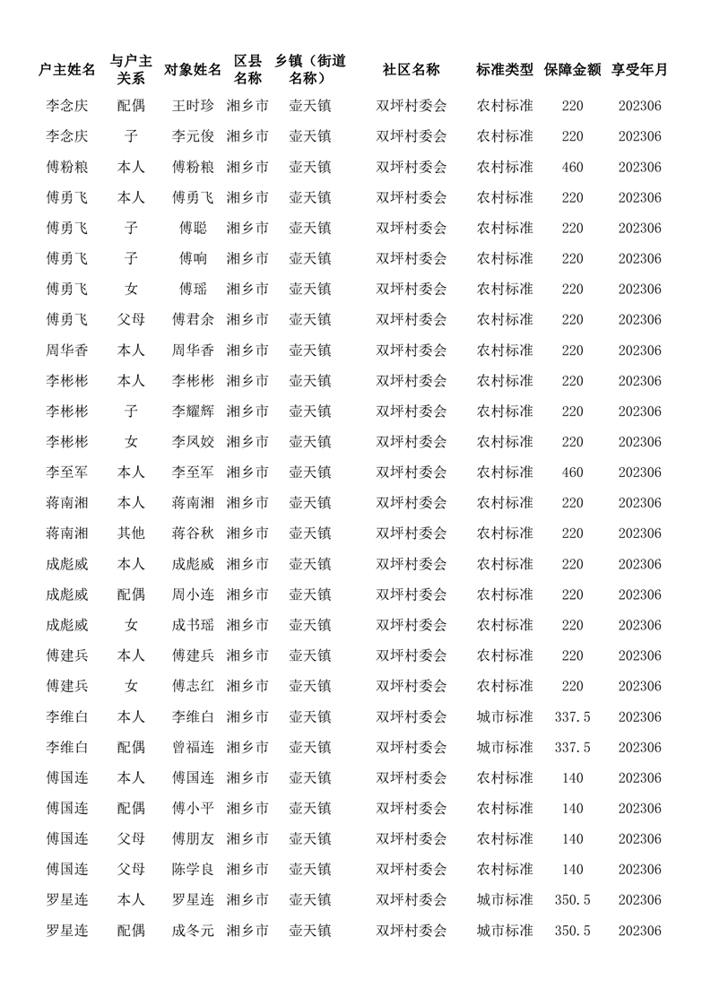 湘鄉(xiāng)市2023年6月城鄉(xiāng)低保救助對象審批匯總表