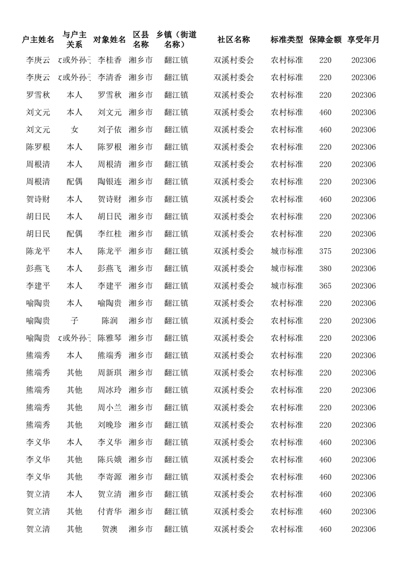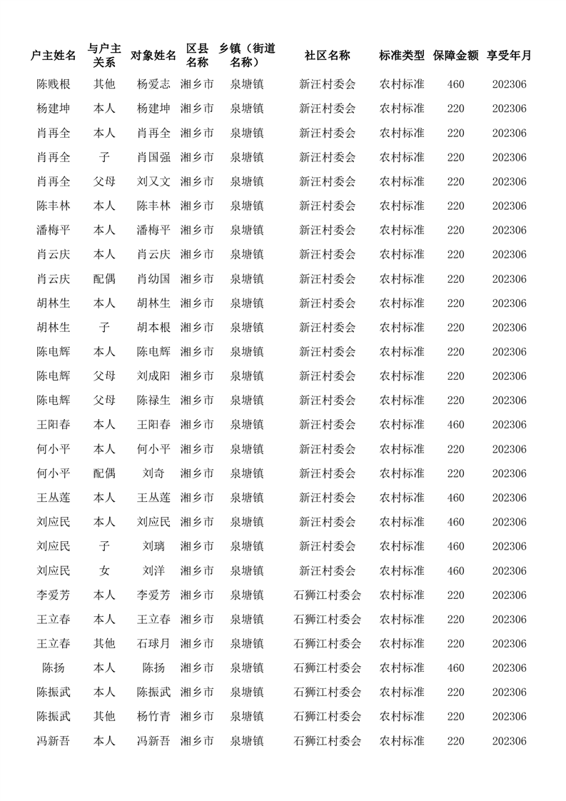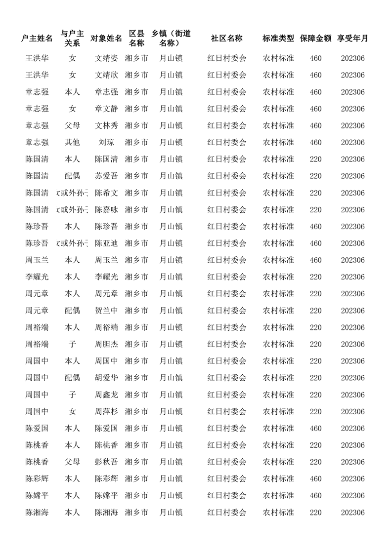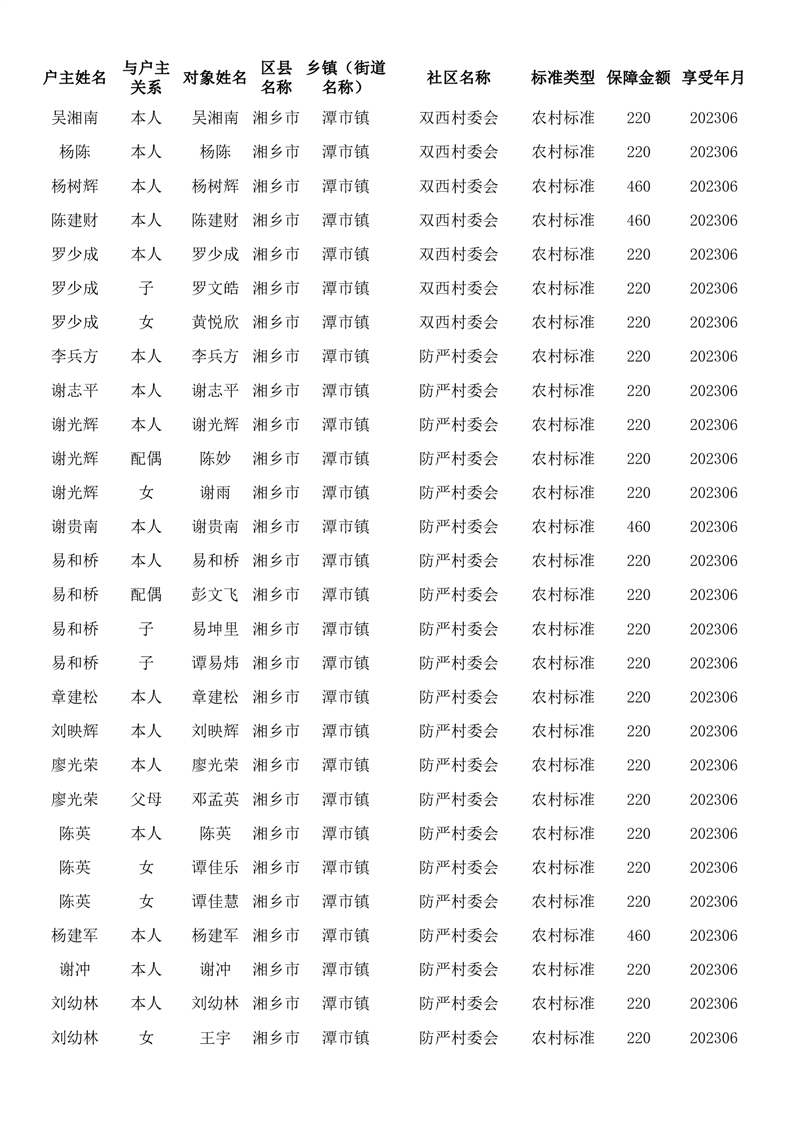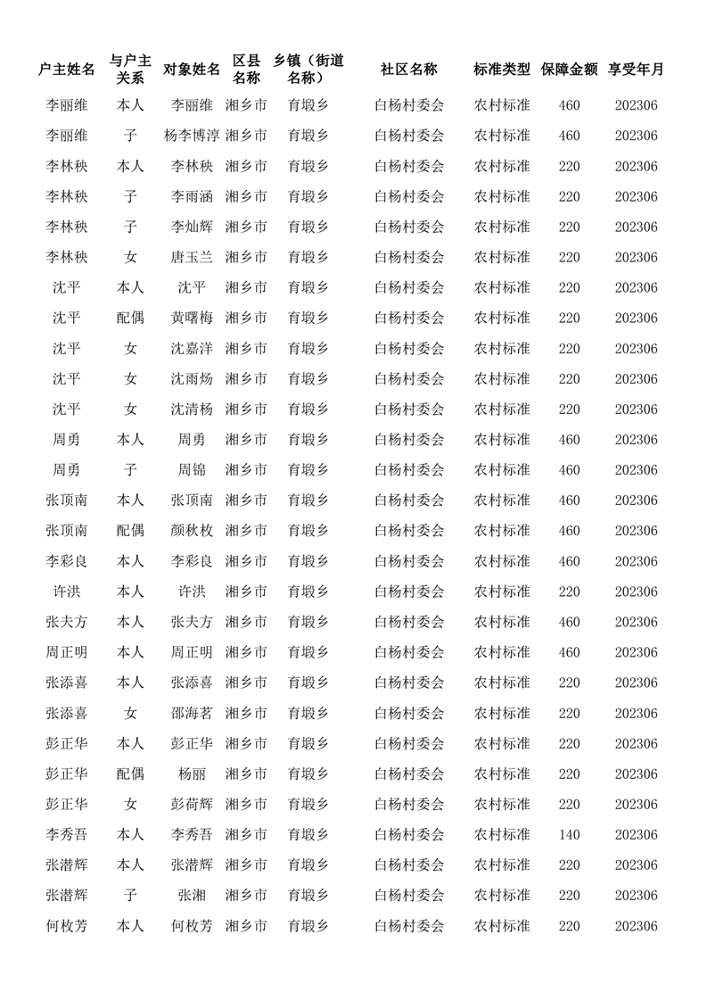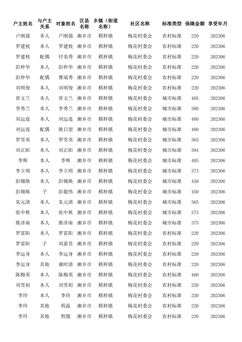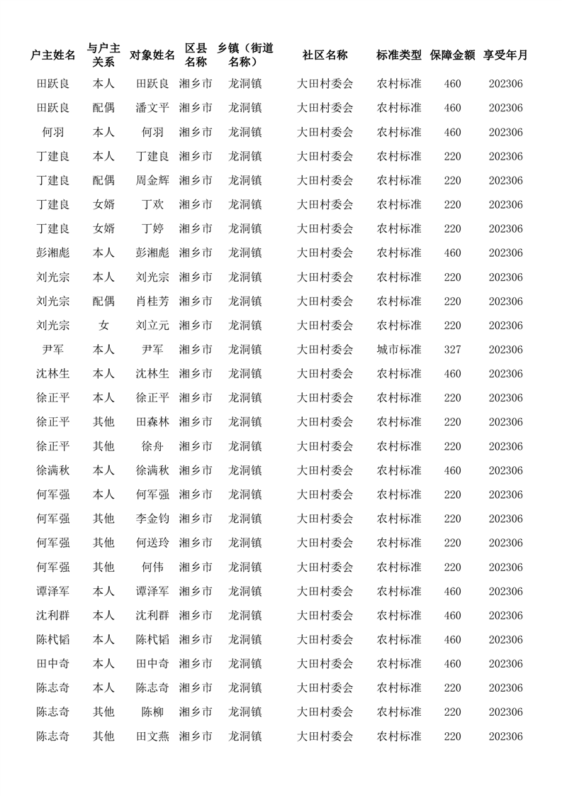 湘鄉(xiāng)市2023年6月城鄉(xiāng)低保救助對象審批匯總表