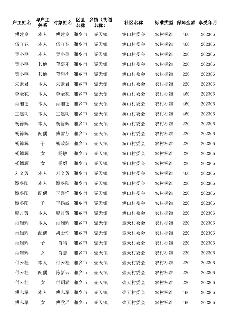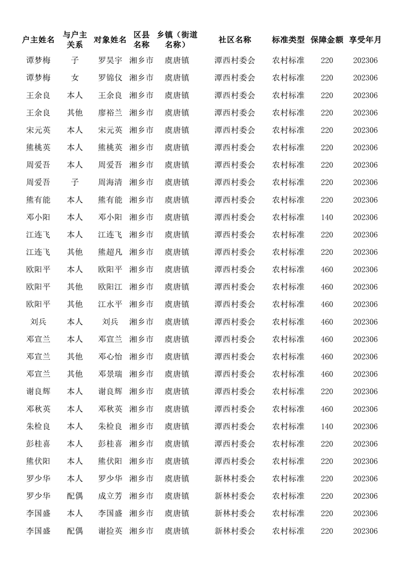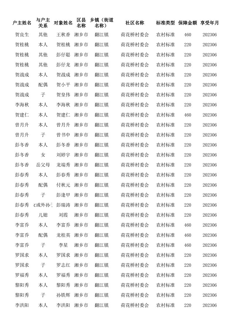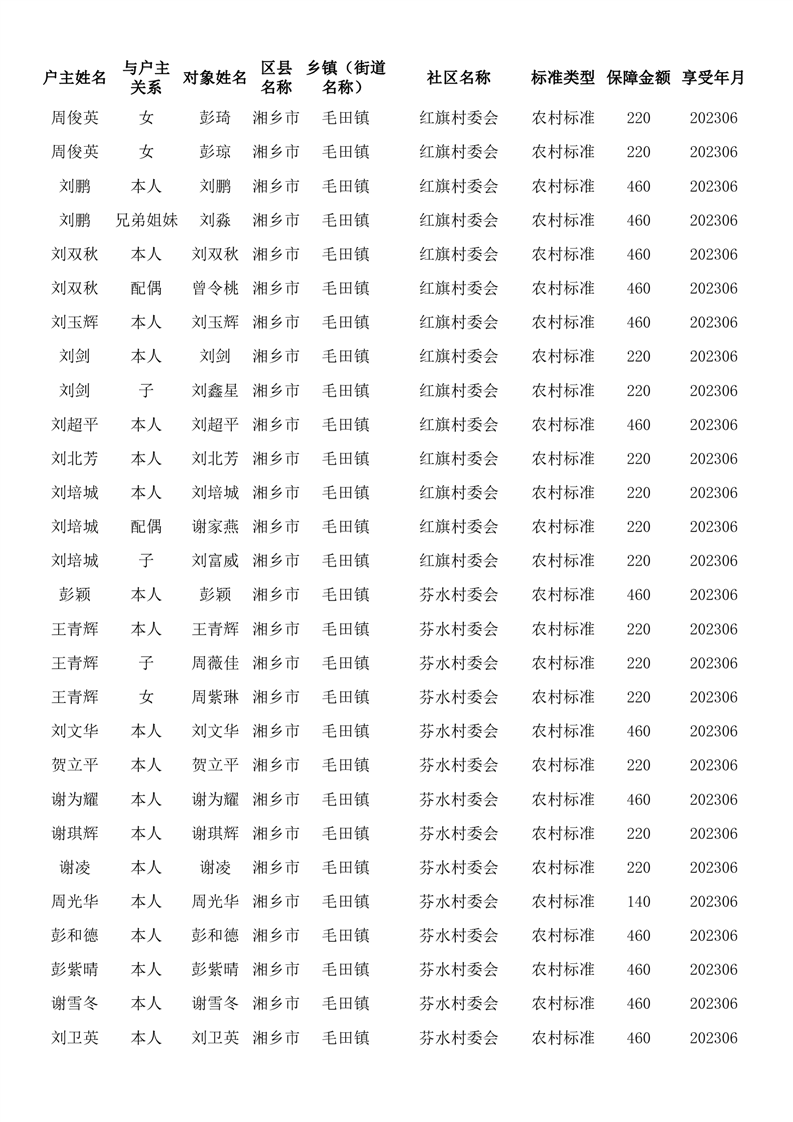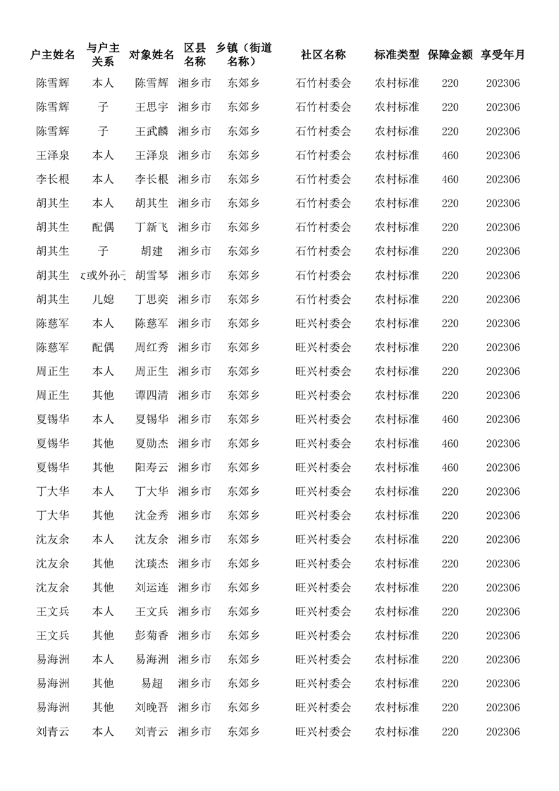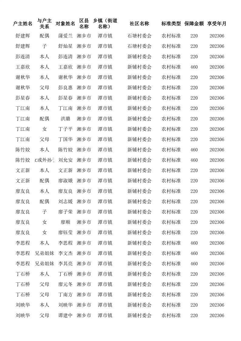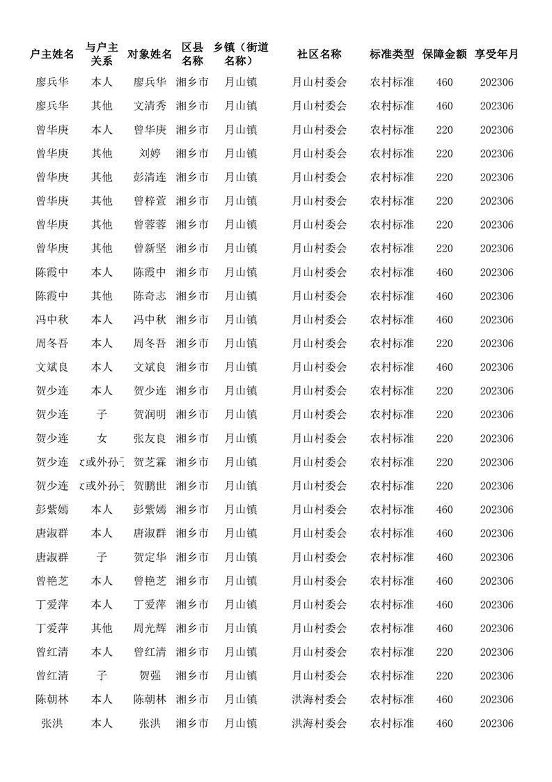 湘鄉(xiāng)市2023年6月城鄉(xiāng)低保救助對象審批匯總表