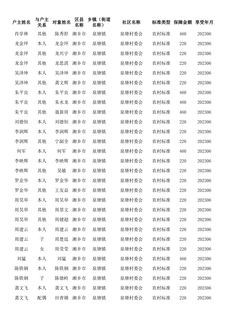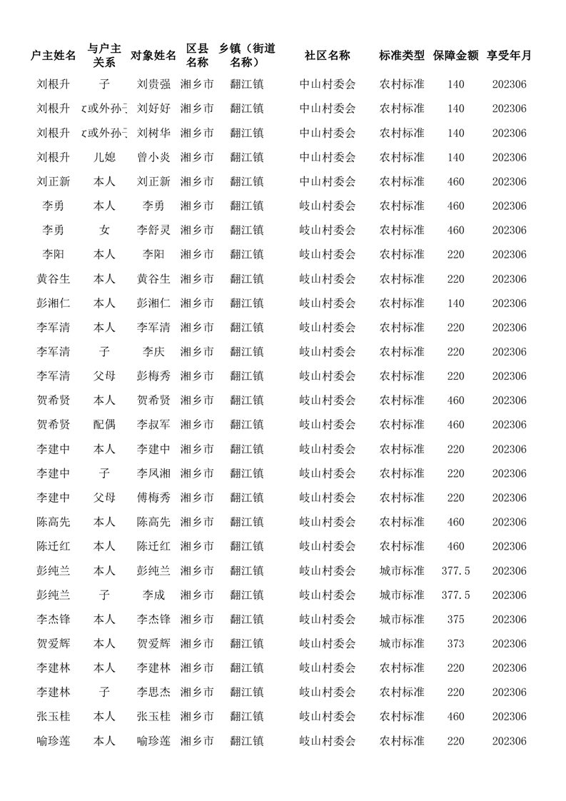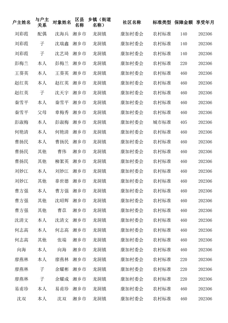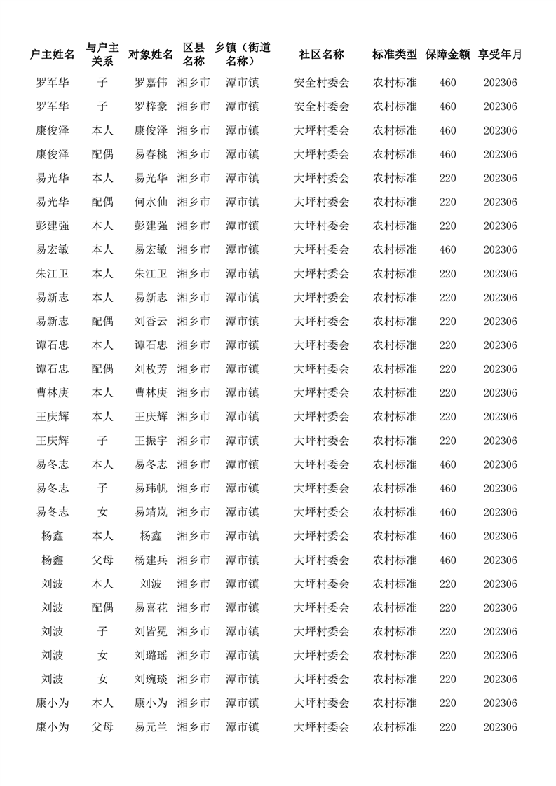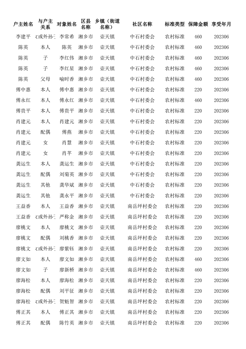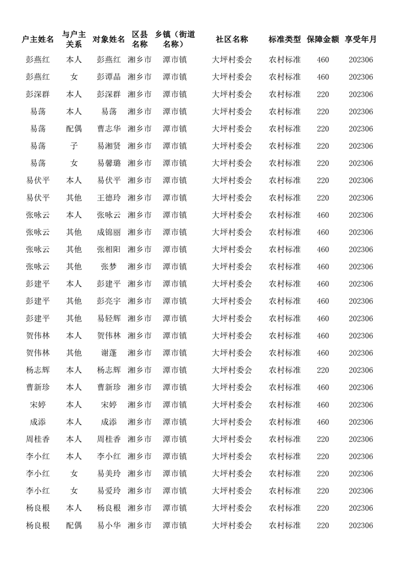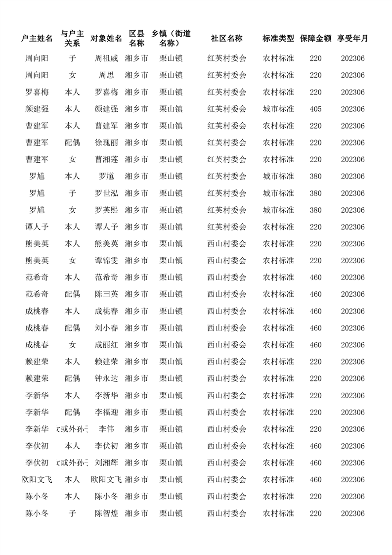 湘鄉(xiāng)市2023年6月城鄉(xiāng)低保救助對象審批匯總表