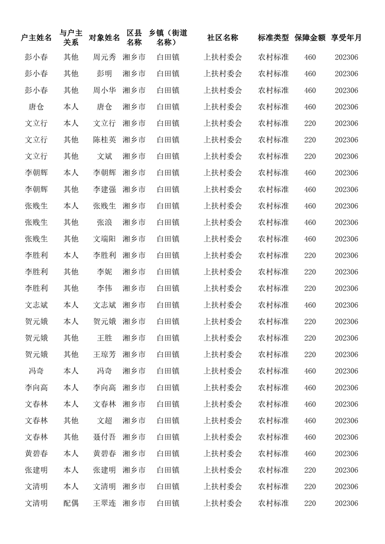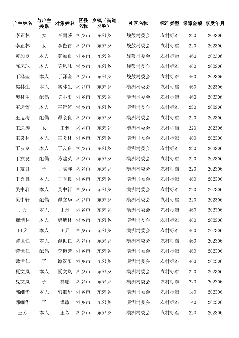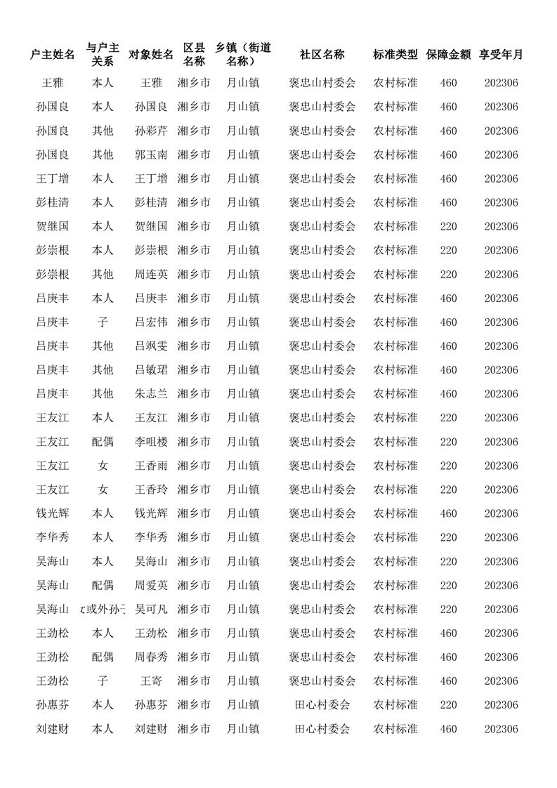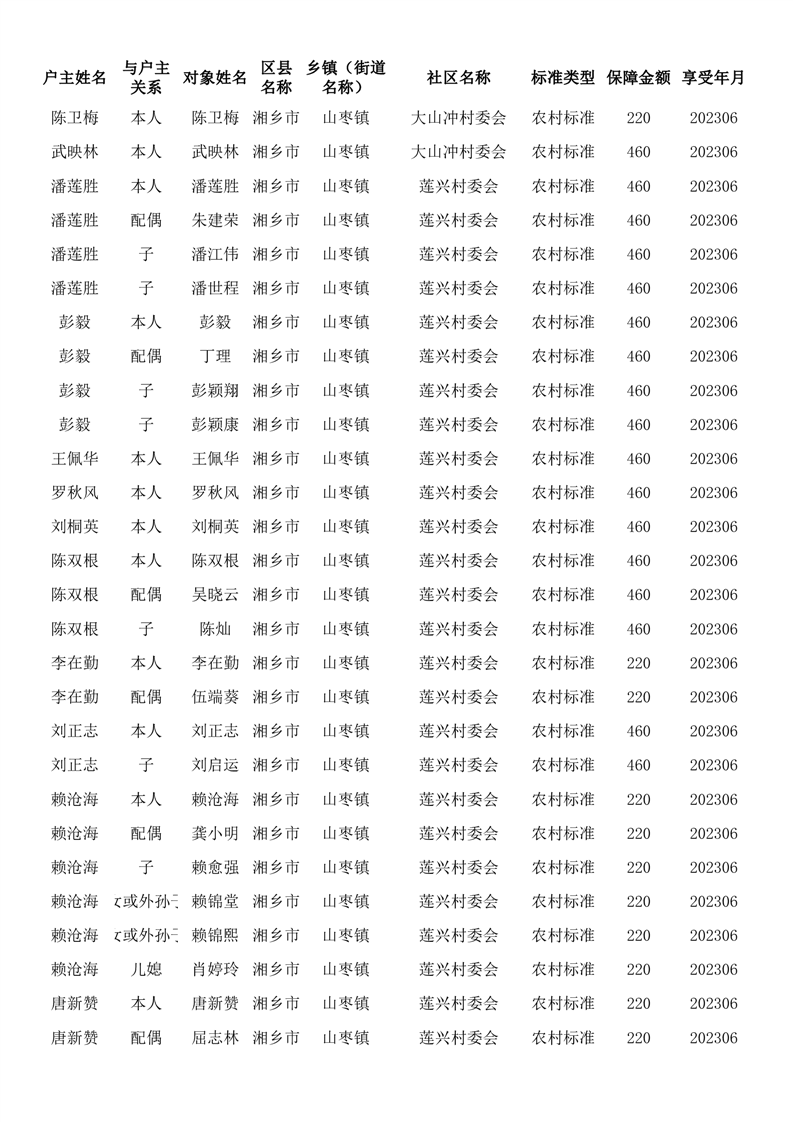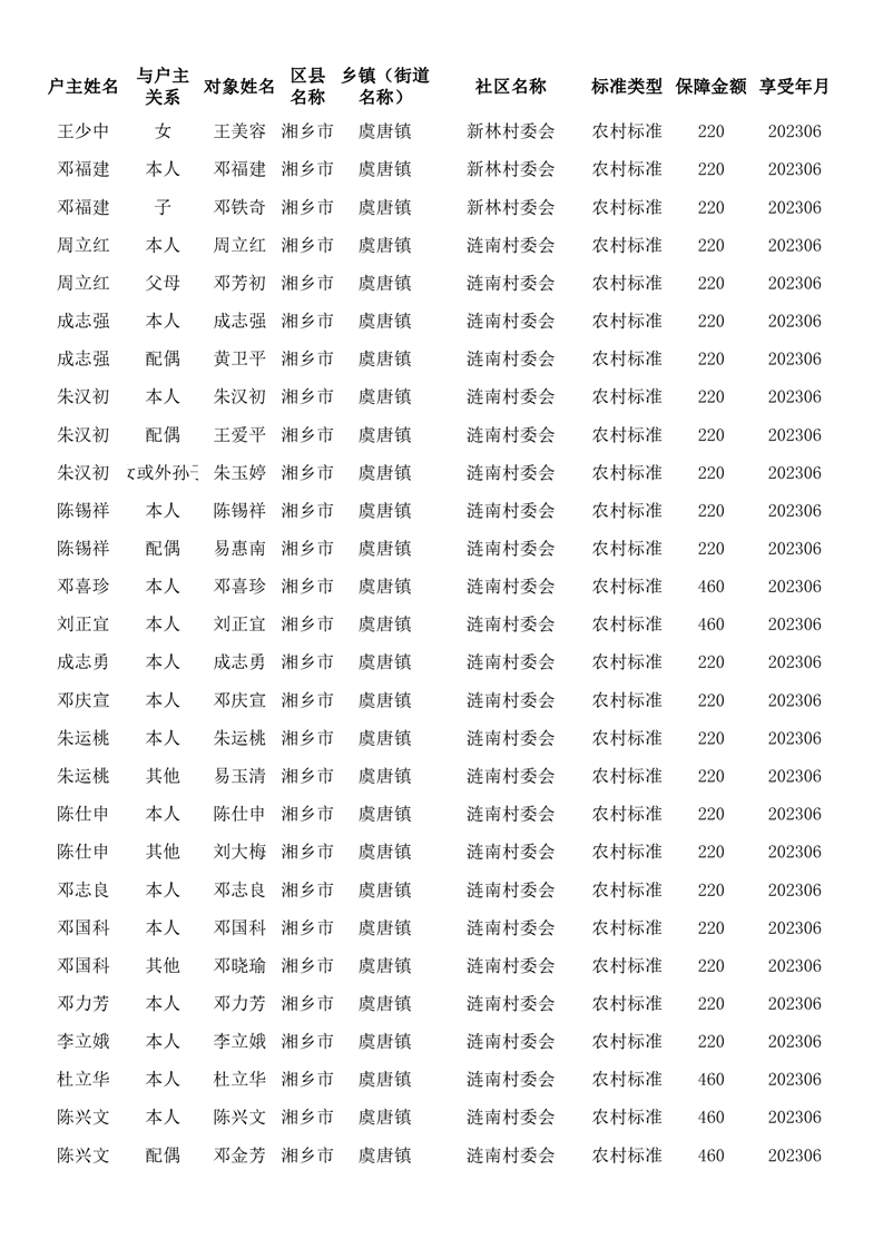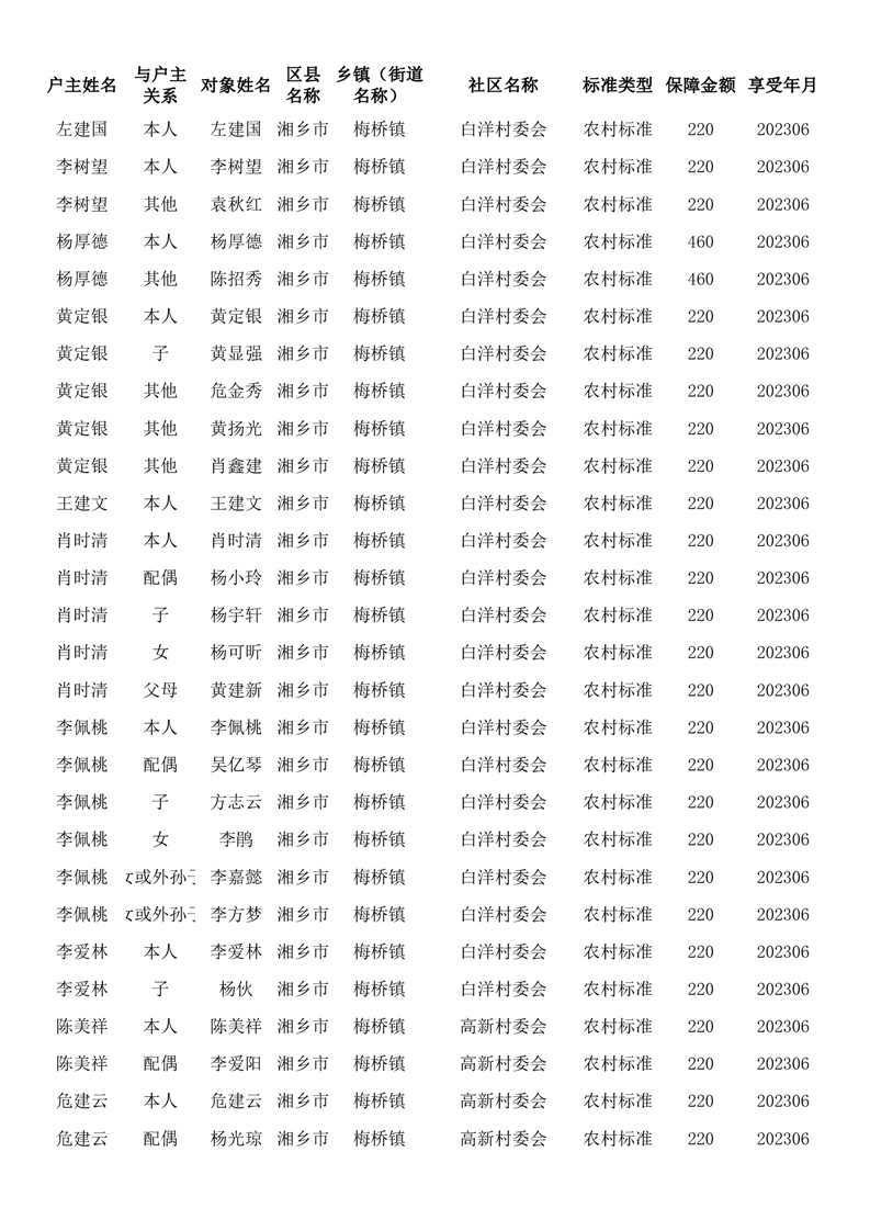 湘鄉(xiāng)市2023年6月城鄉(xiāng)低保救助對象審批匯總表