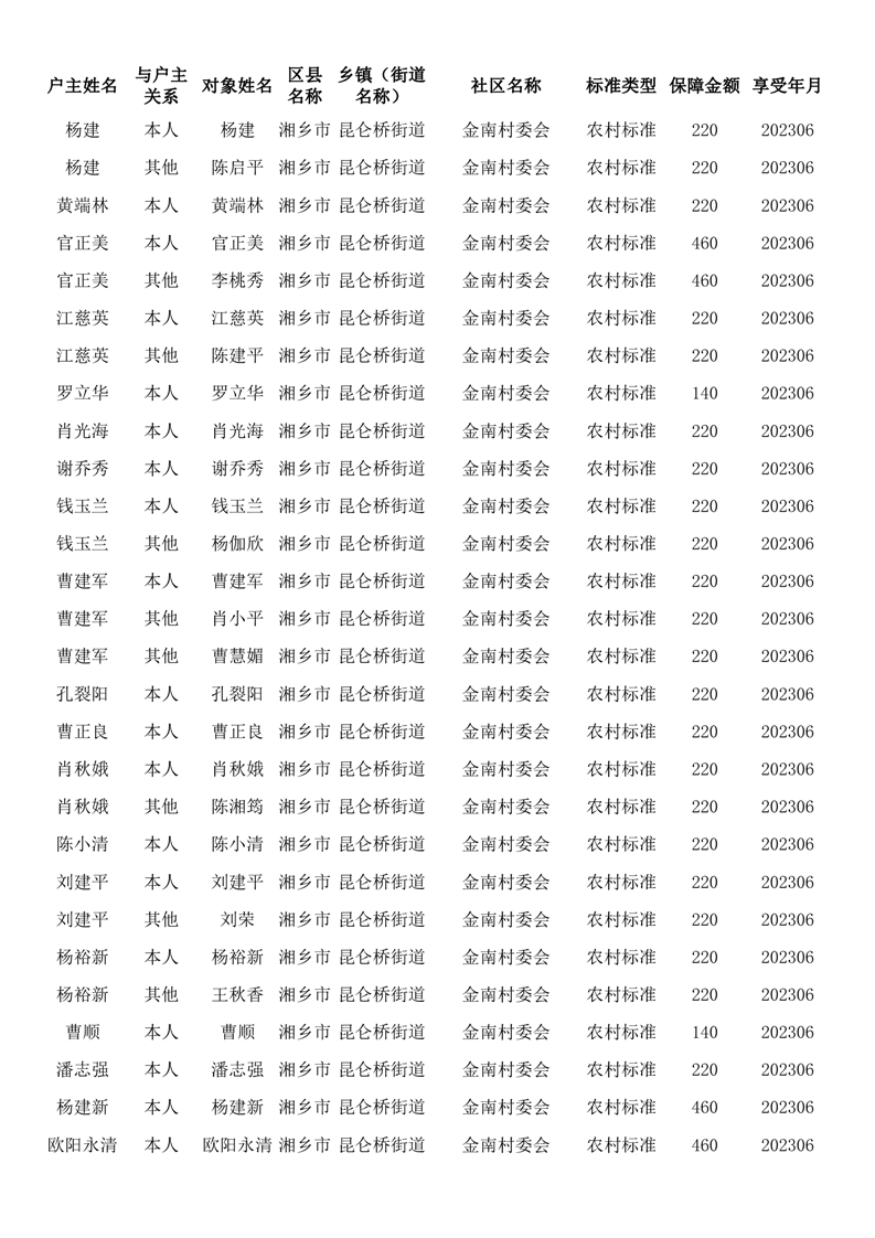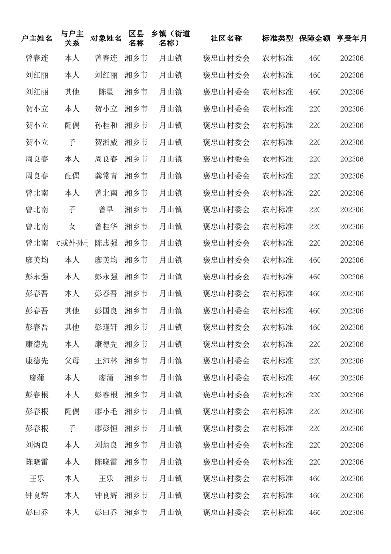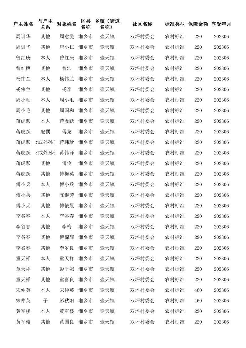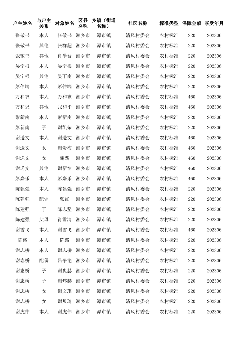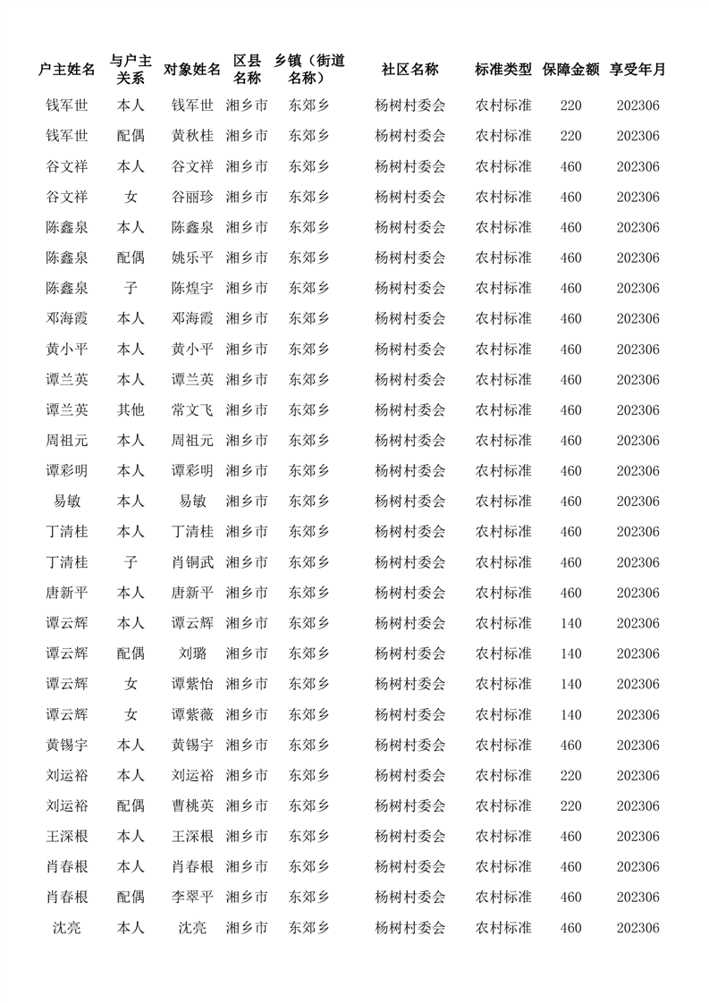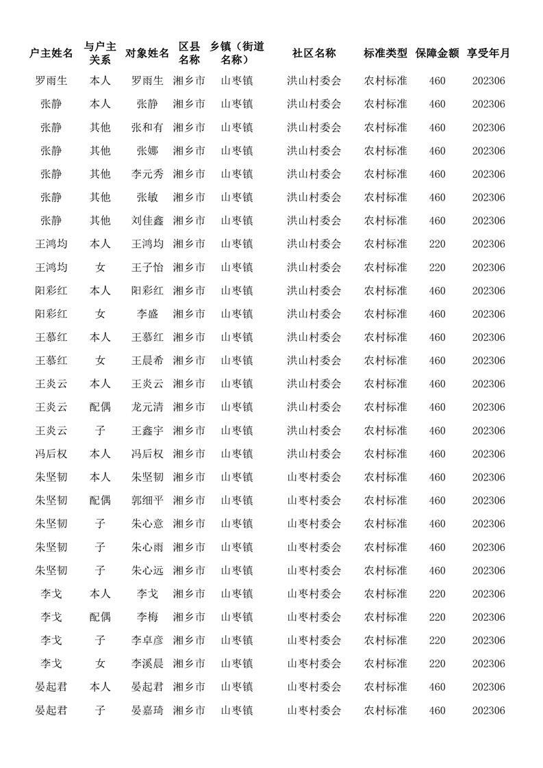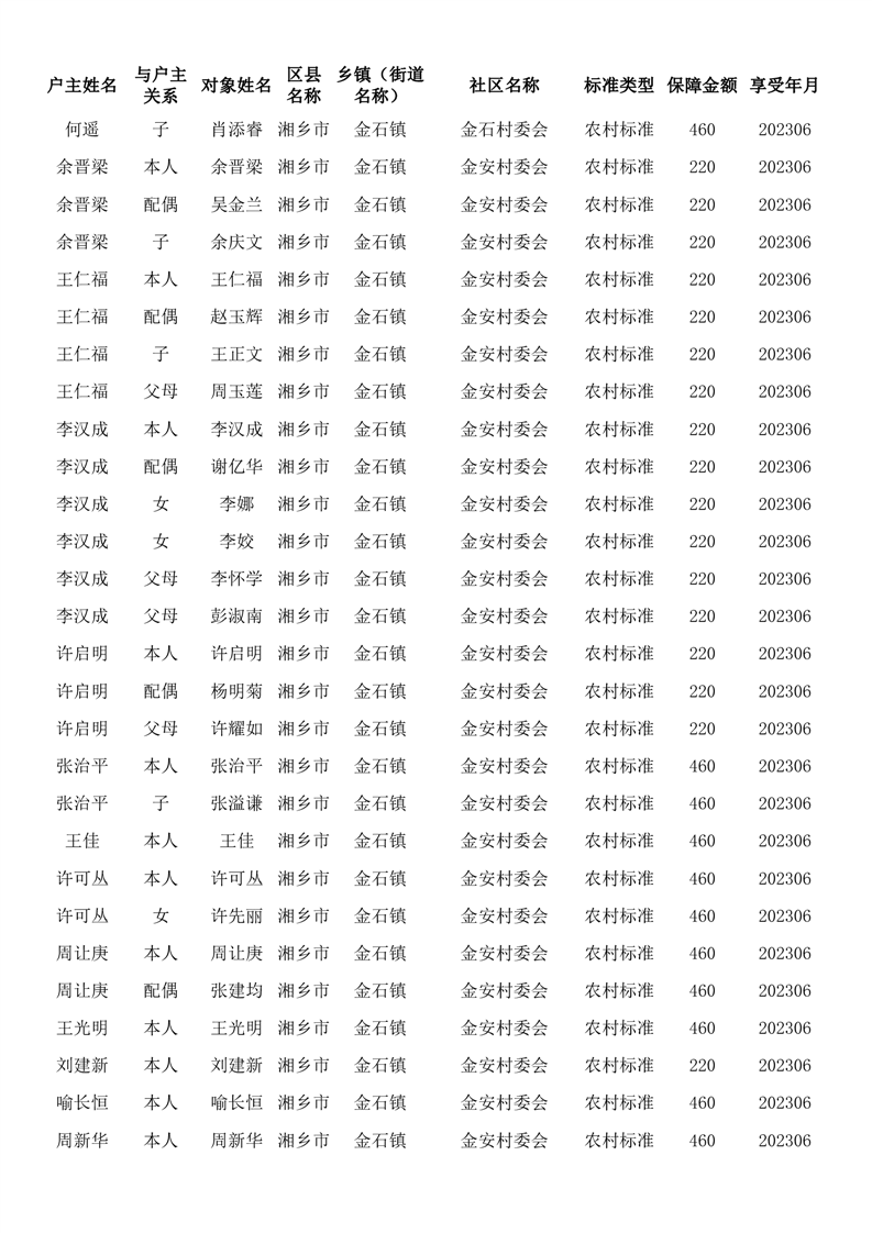 湘鄉(xiāng)市2023年6月城鄉(xiāng)低保救助對象審批匯總表
