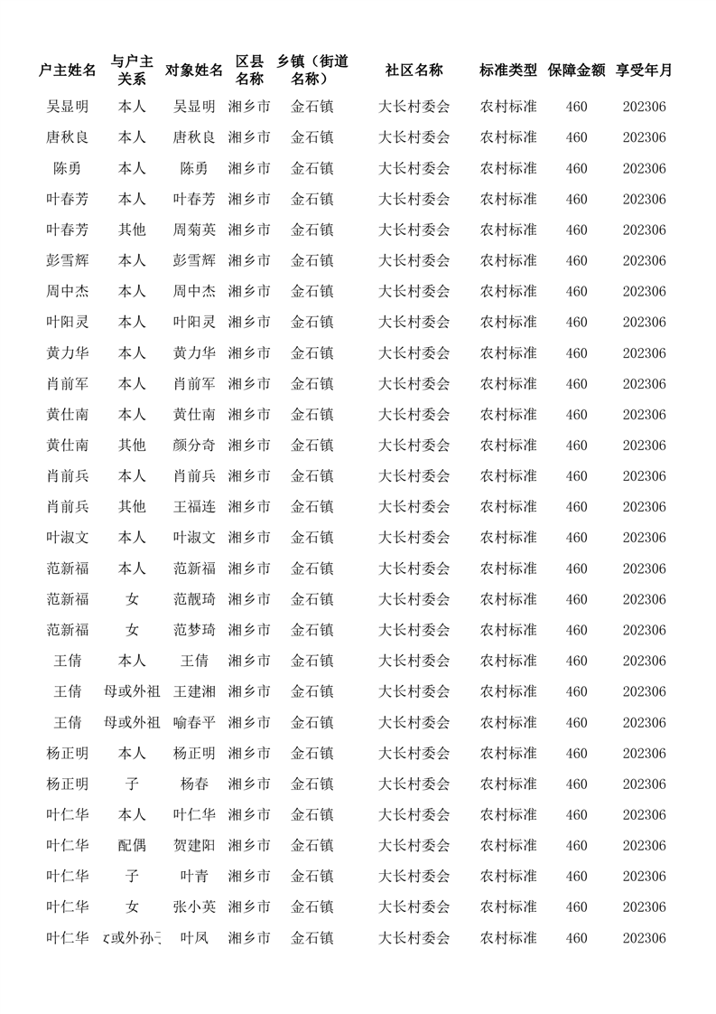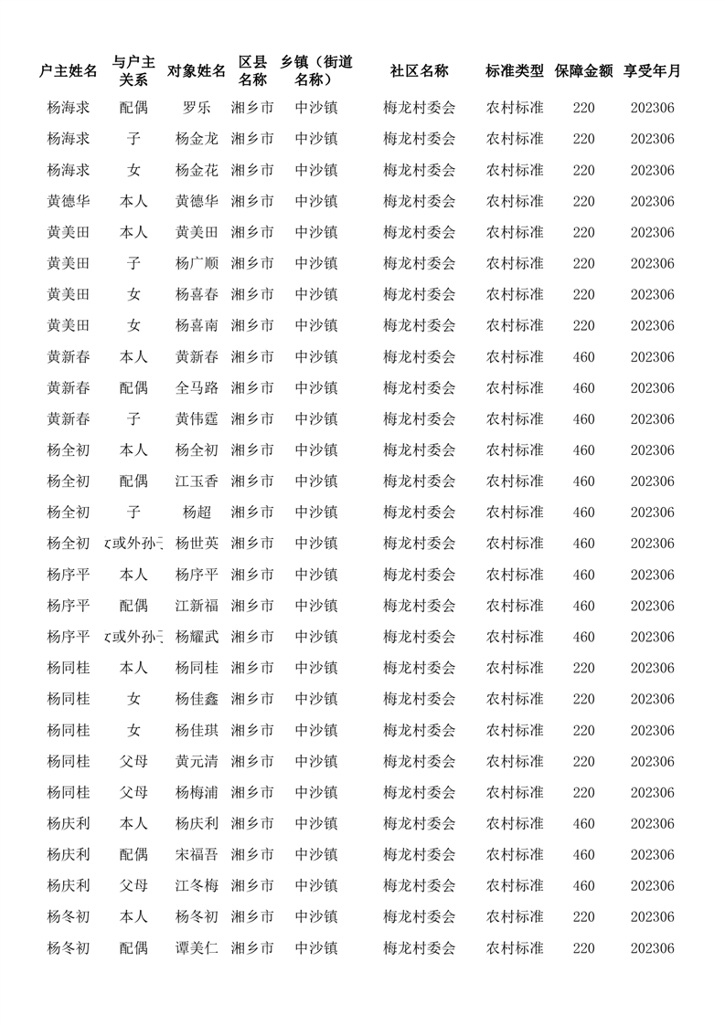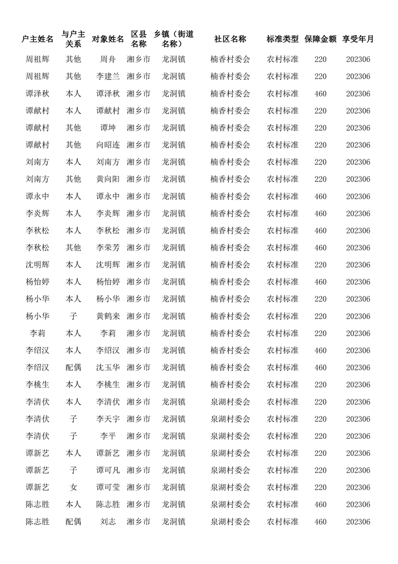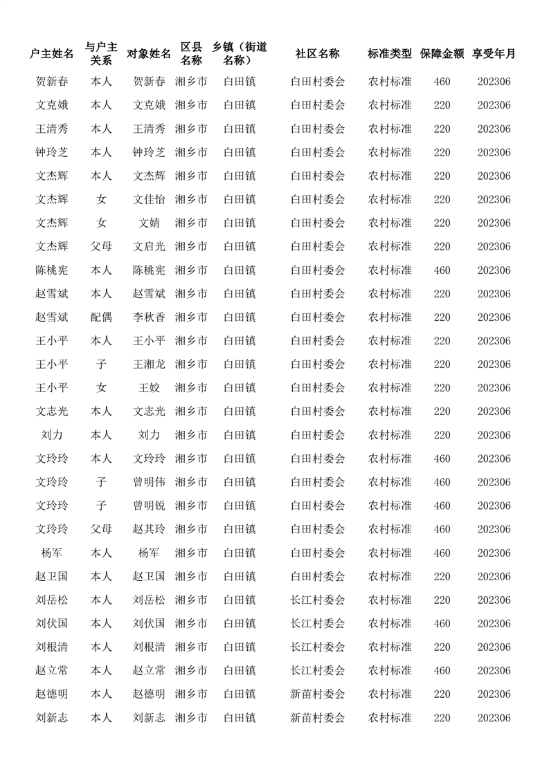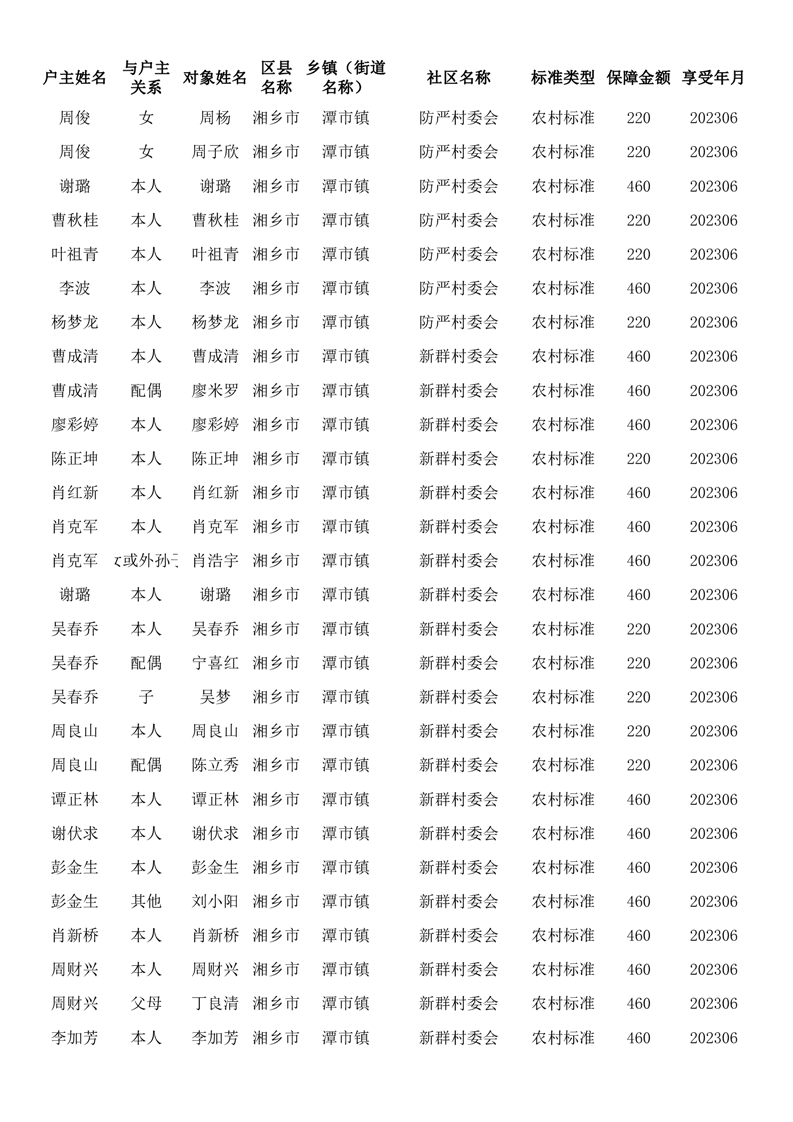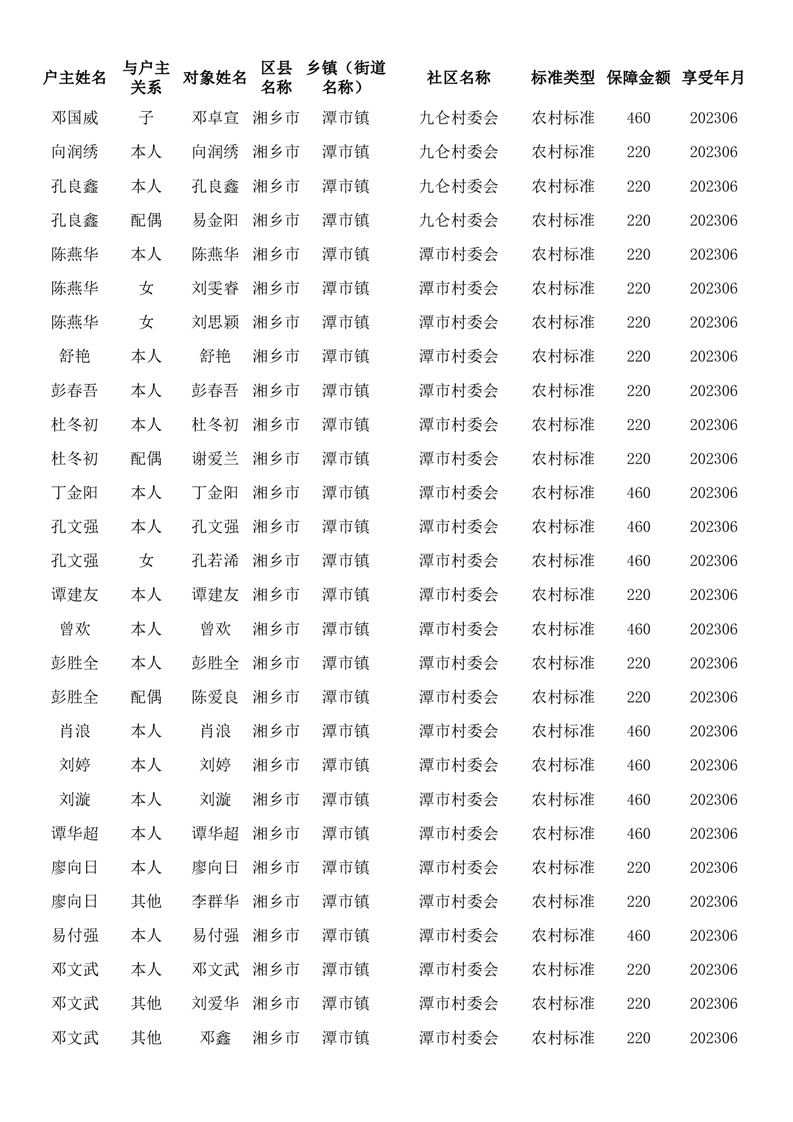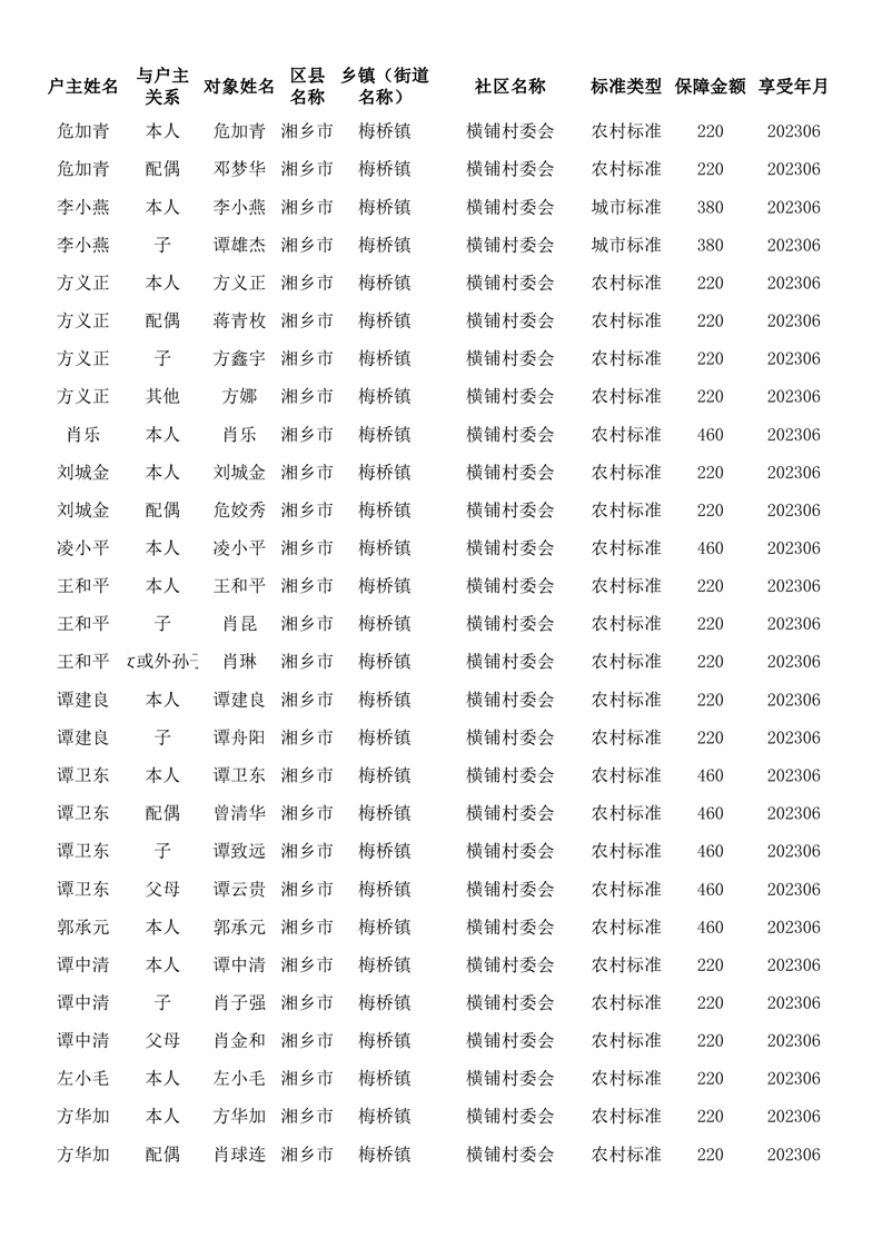 湘鄉(xiāng)市2023年6月城鄉(xiāng)低保救助對象審批匯總表