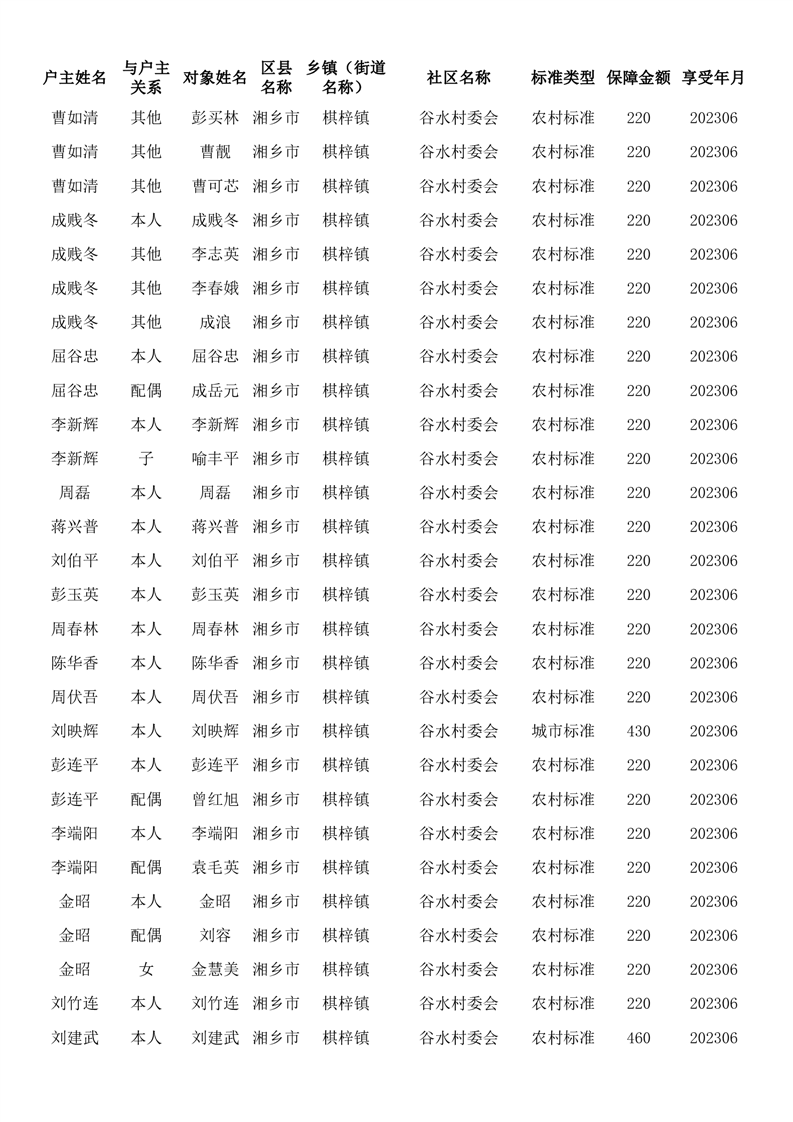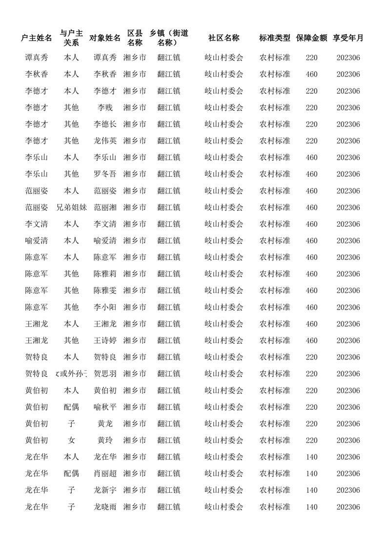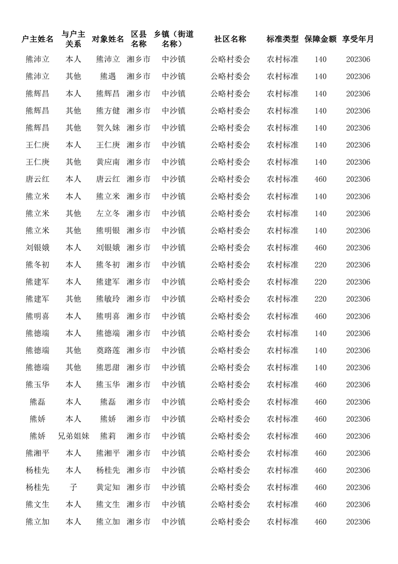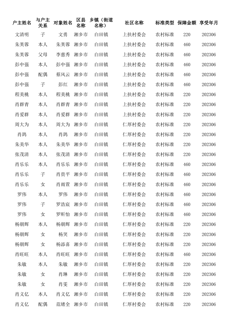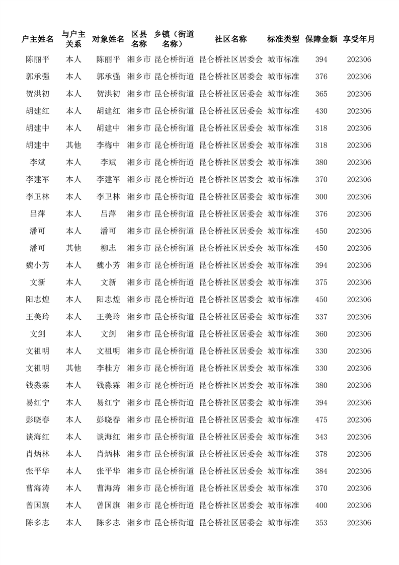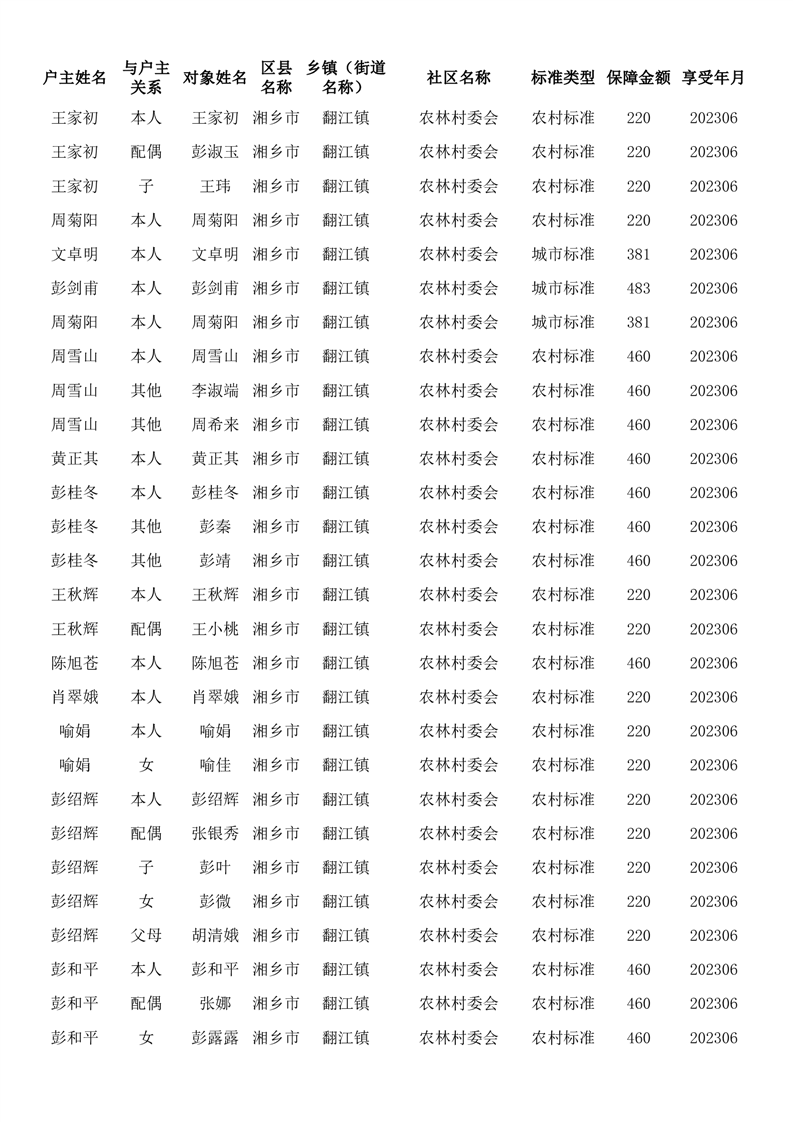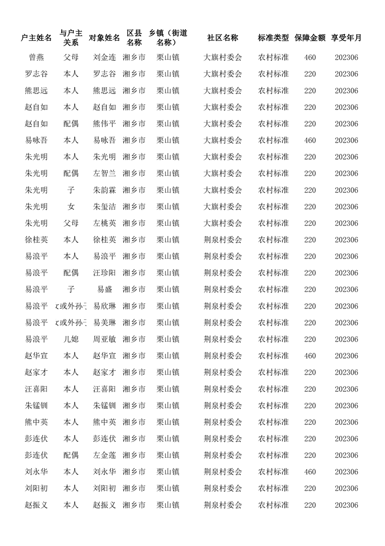 湘鄉(xiāng)市2023年6月城鄉(xiāng)低保救助對象審批匯總表