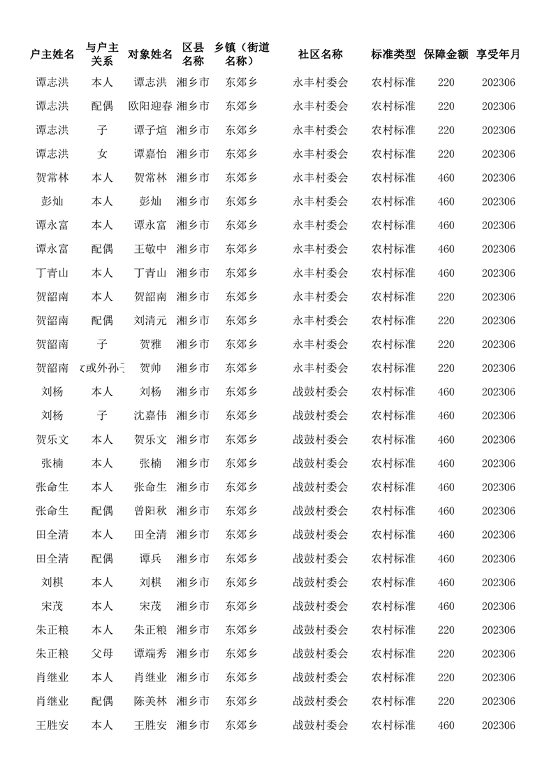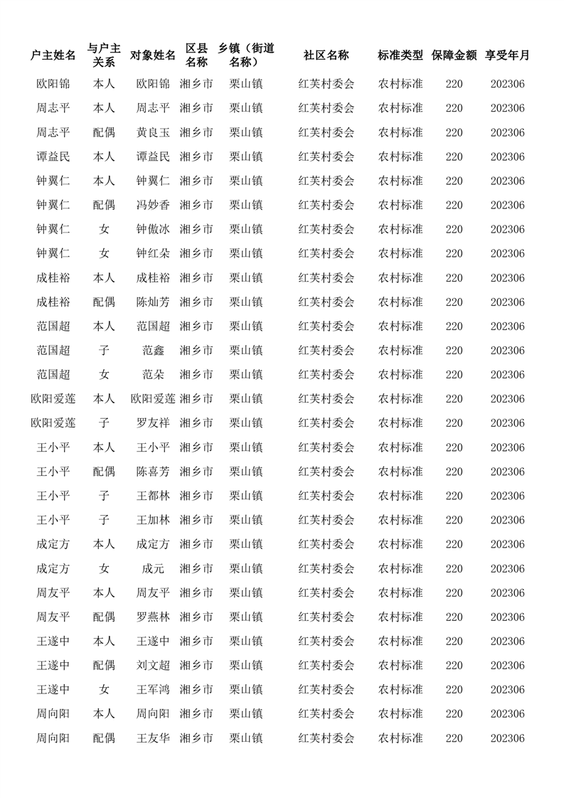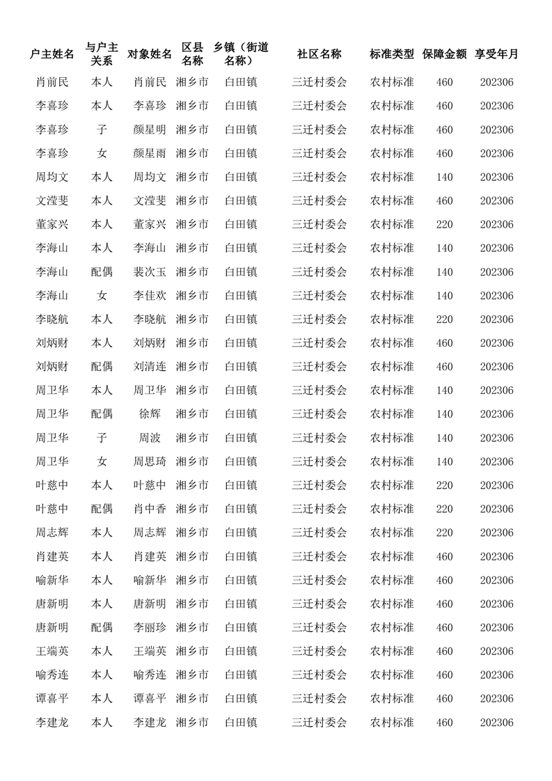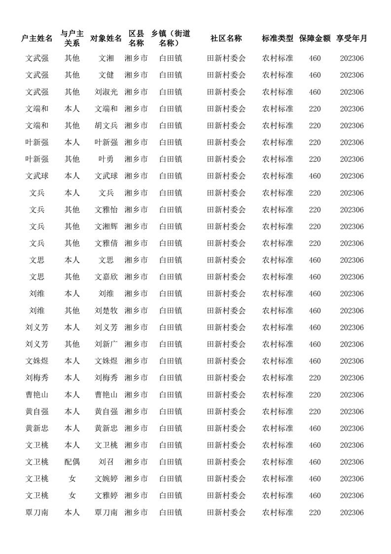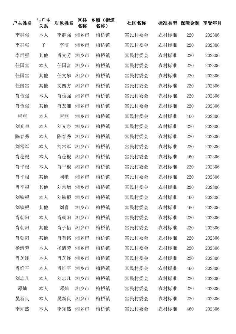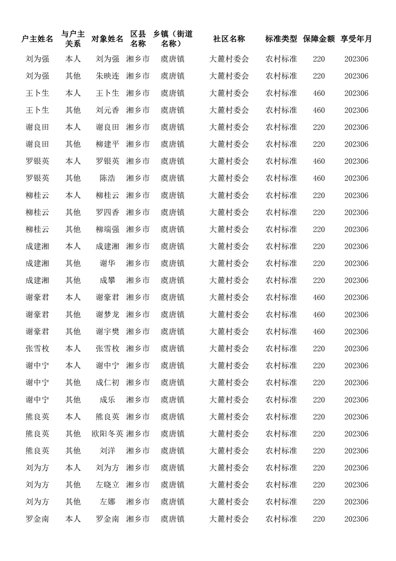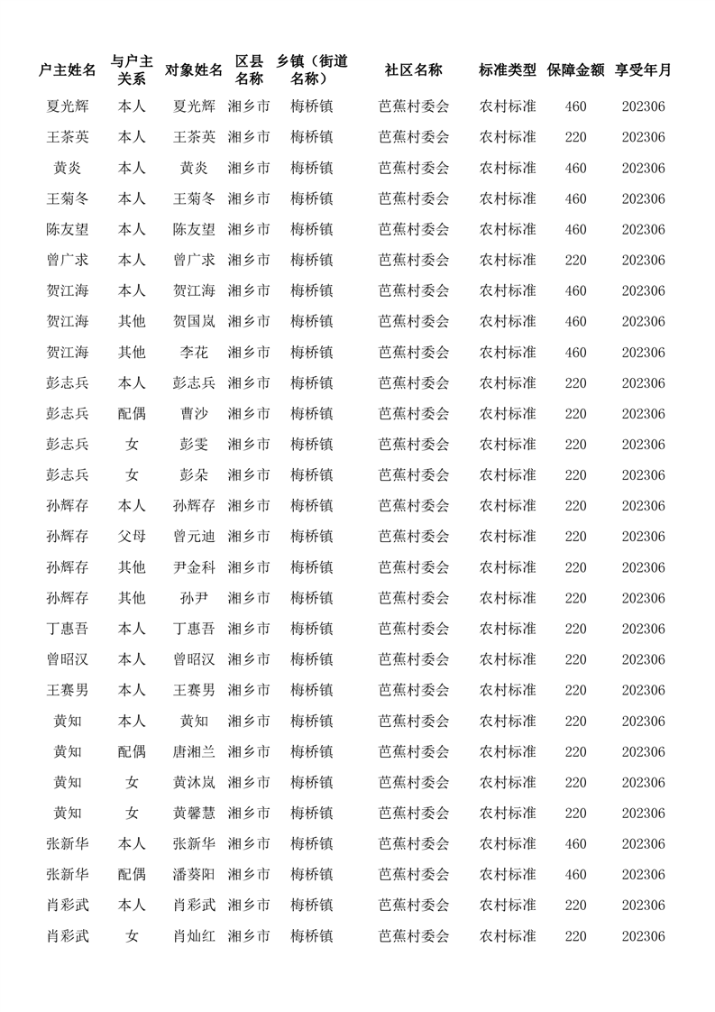 湘鄉(xiāng)市2023年6月城鄉(xiāng)低保救助對象審批匯總表