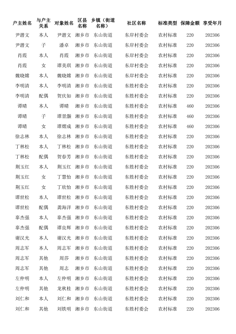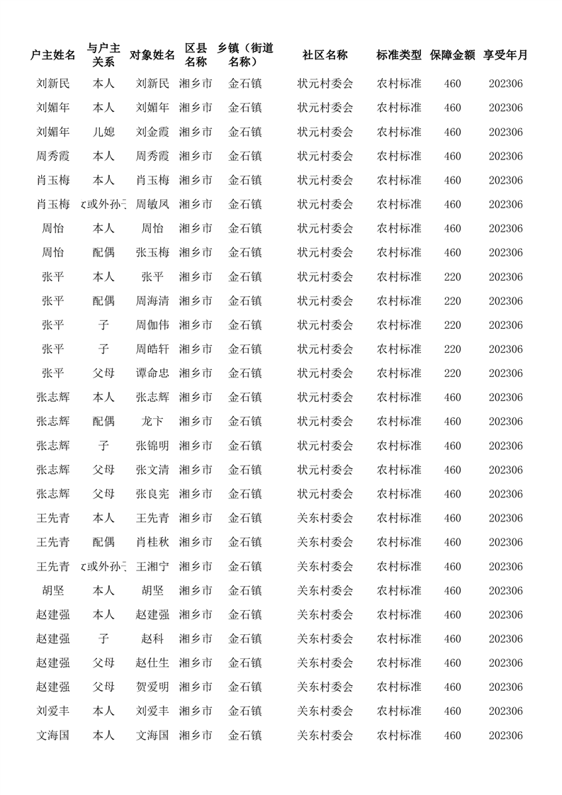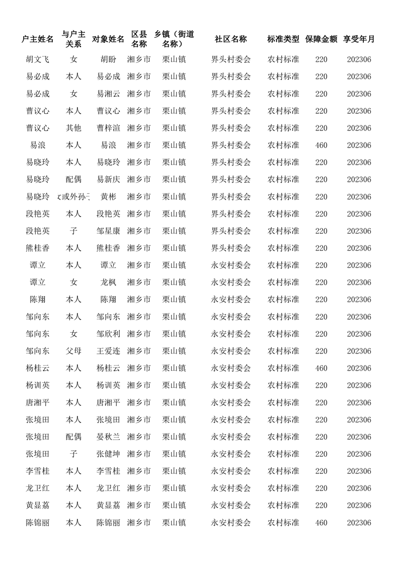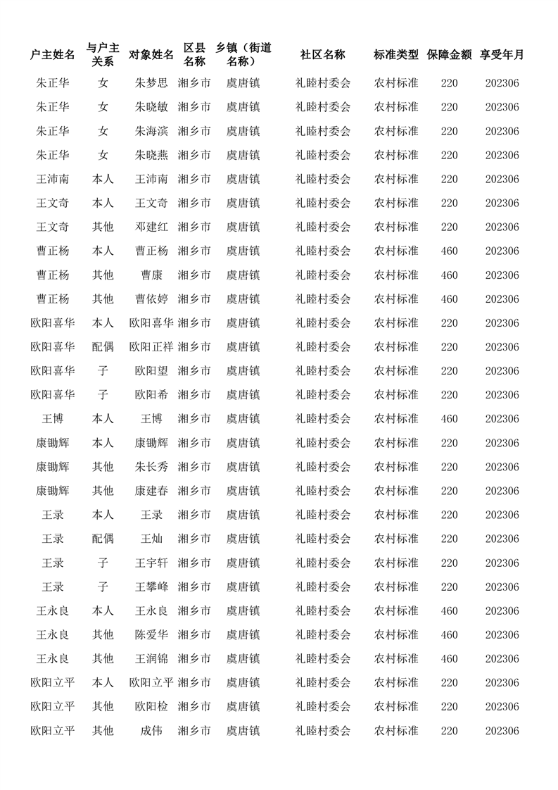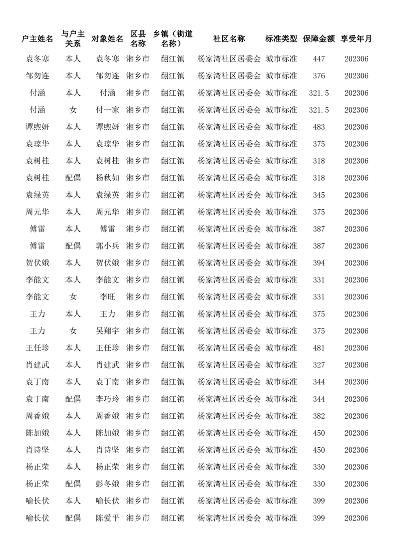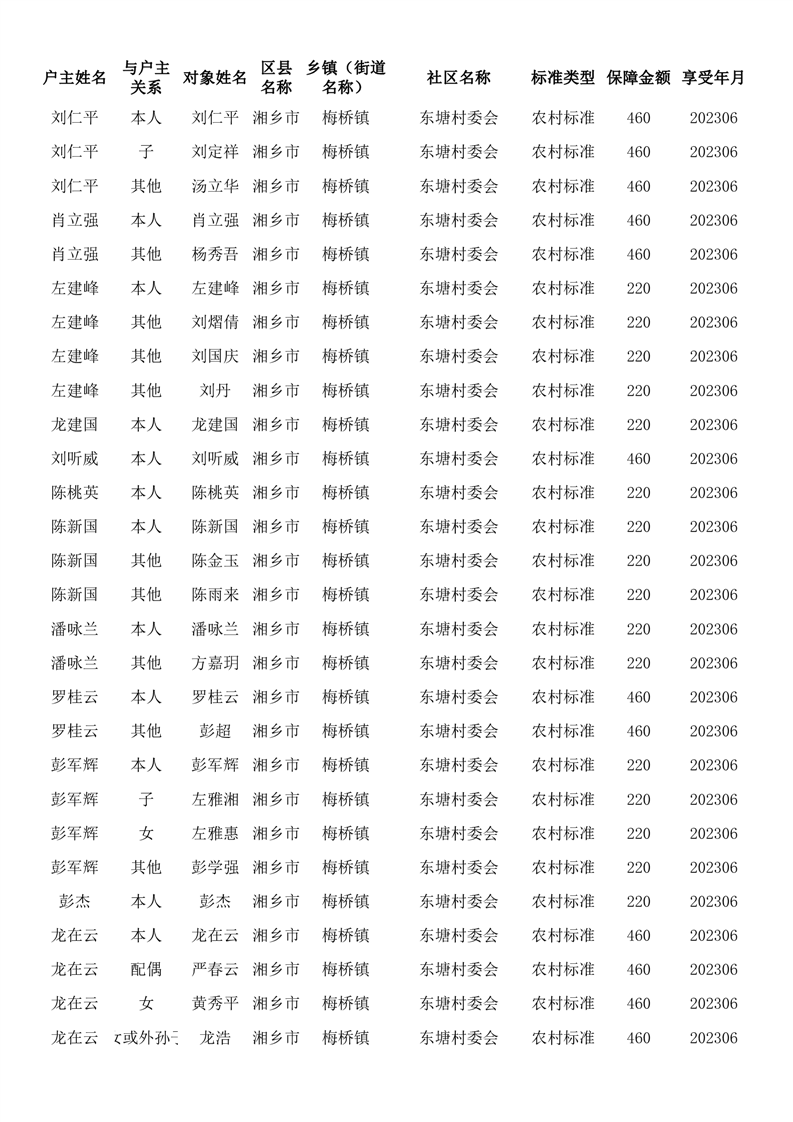 湘鄉(xiāng)市2023年6月城鄉(xiāng)低保救助對象審批匯總表