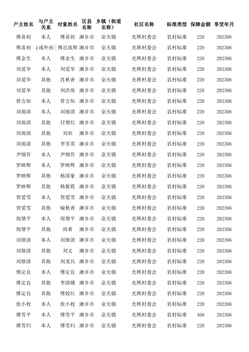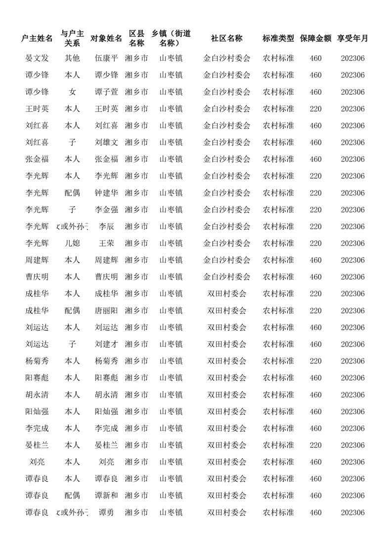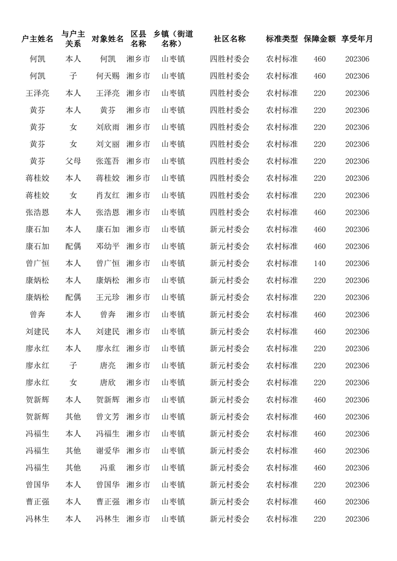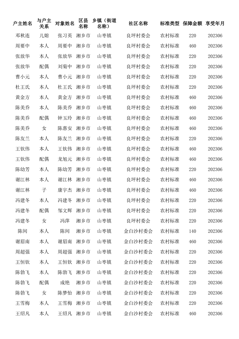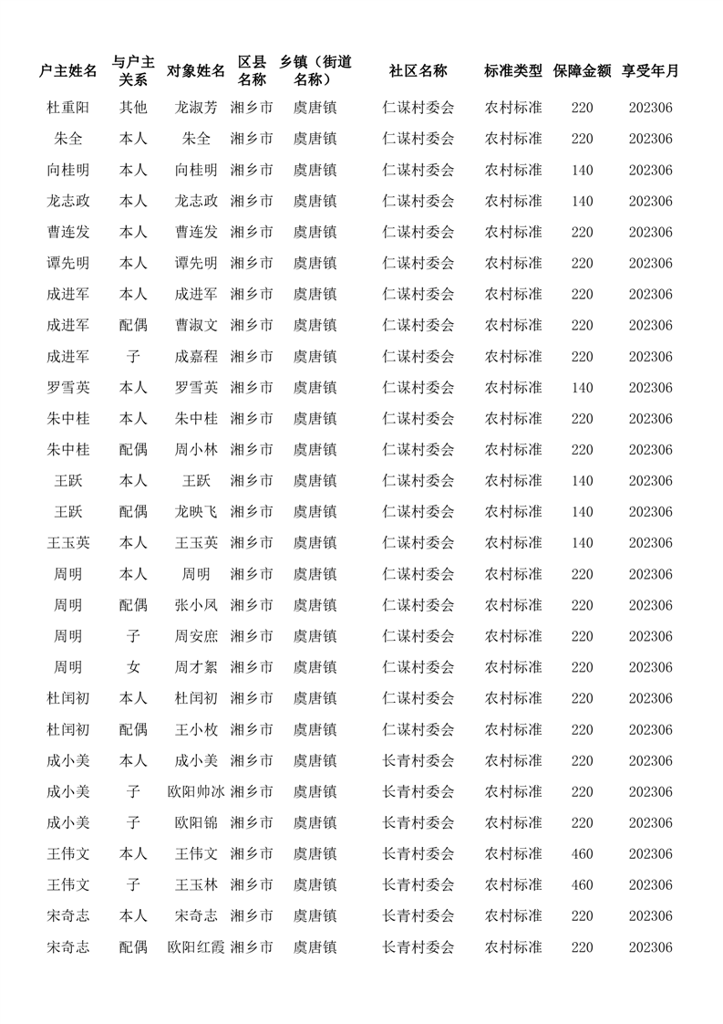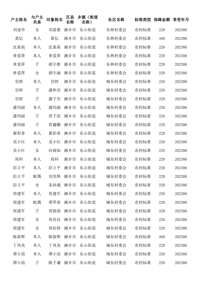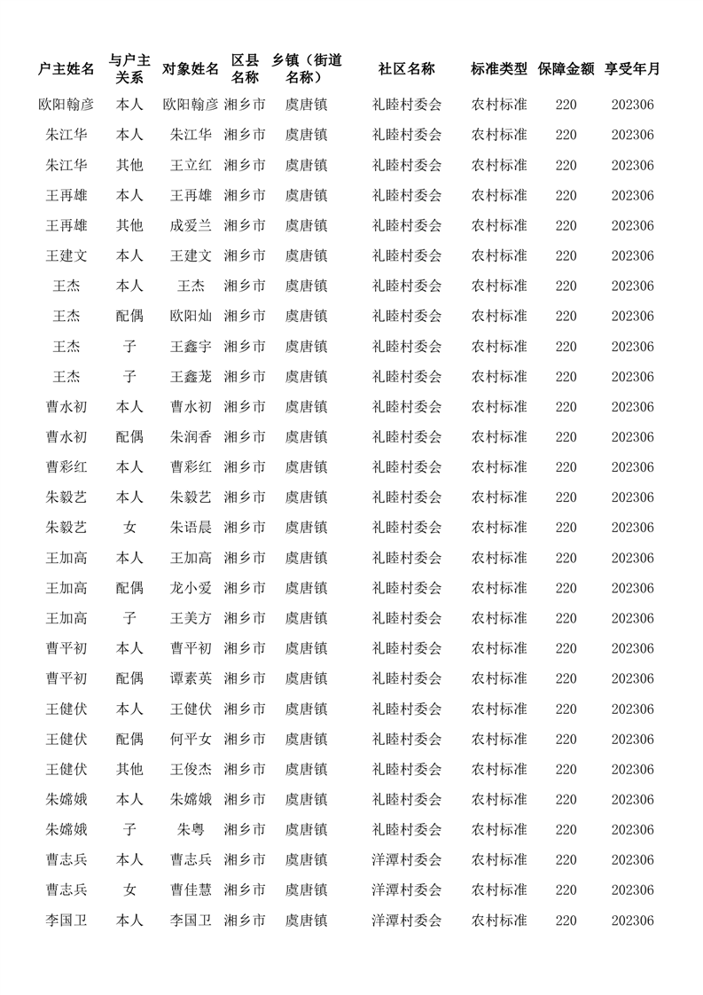 湘鄉(xiāng)市2023年6月城鄉(xiāng)低保救助對象審批匯總表