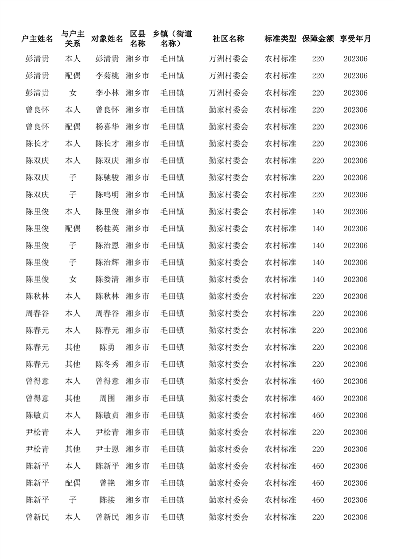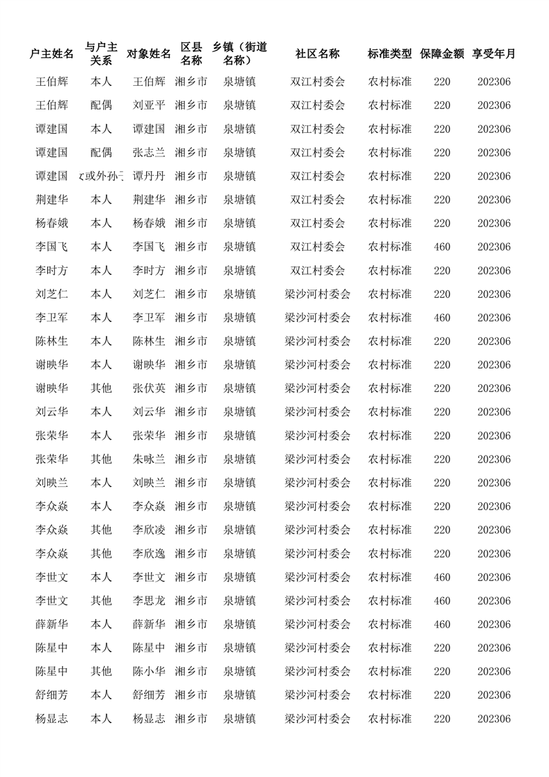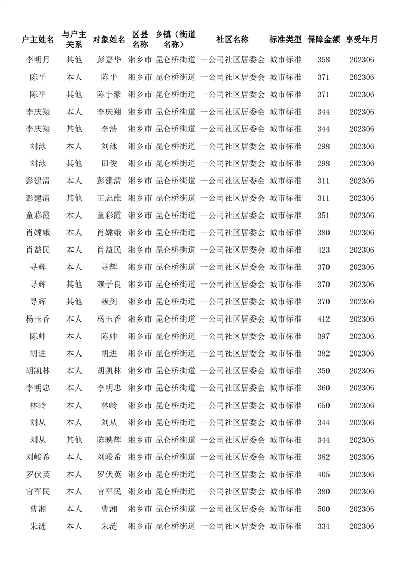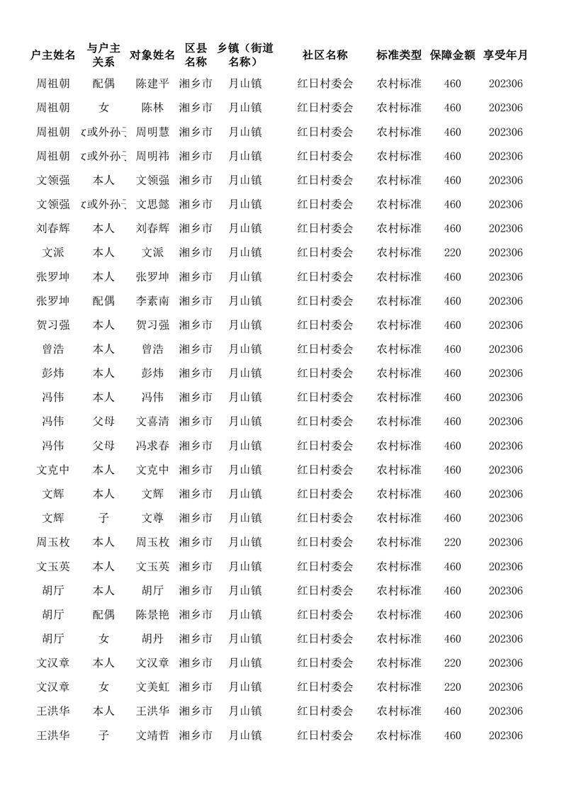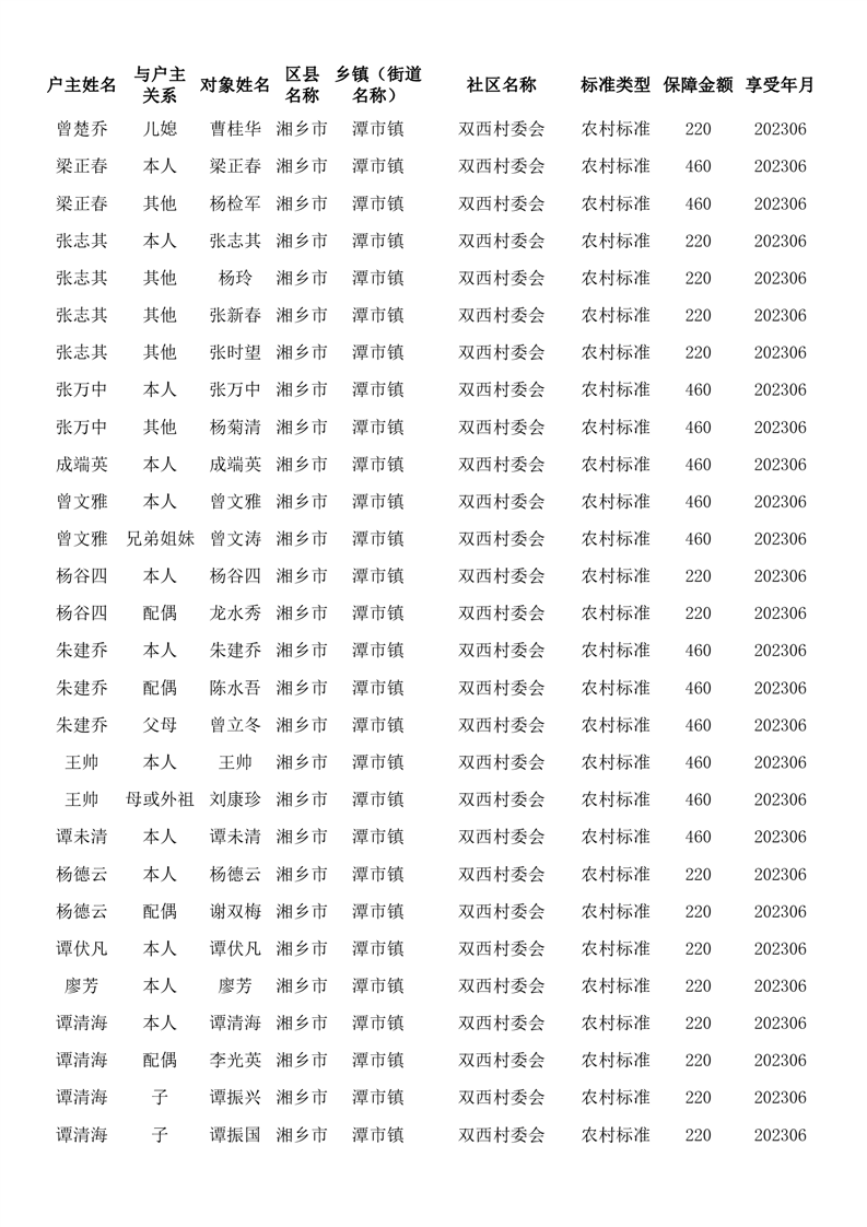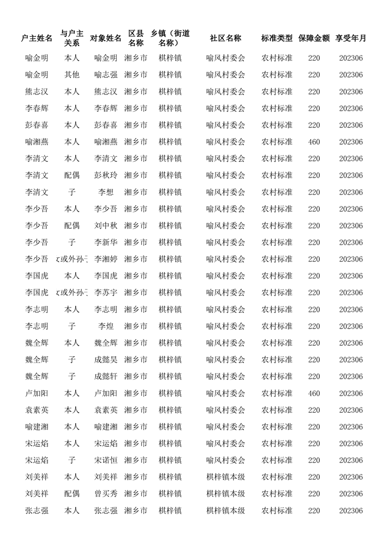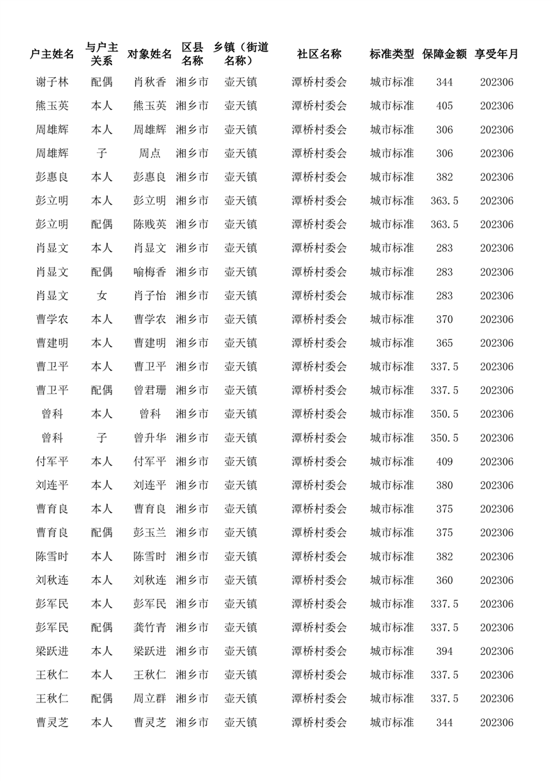 湘鄉(xiāng)市2023年6月城鄉(xiāng)低保救助對象審批匯總表