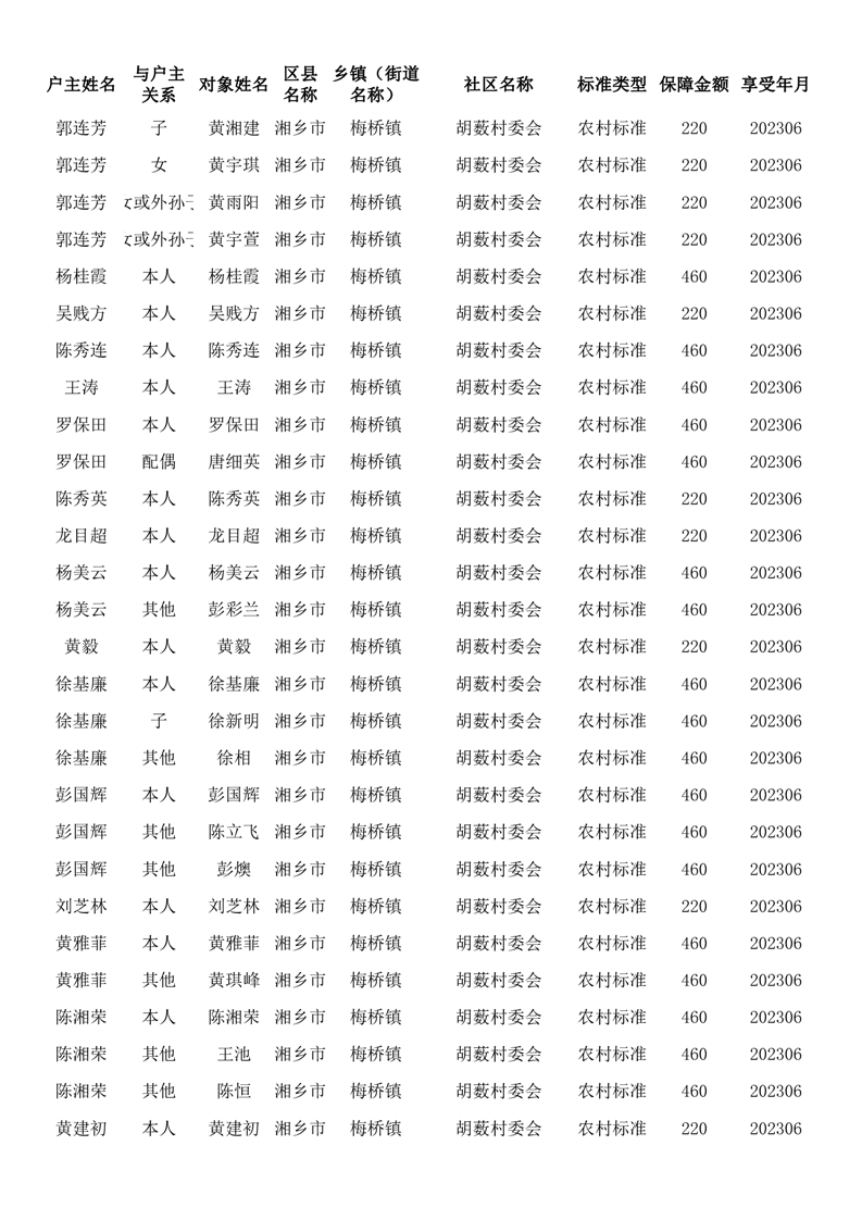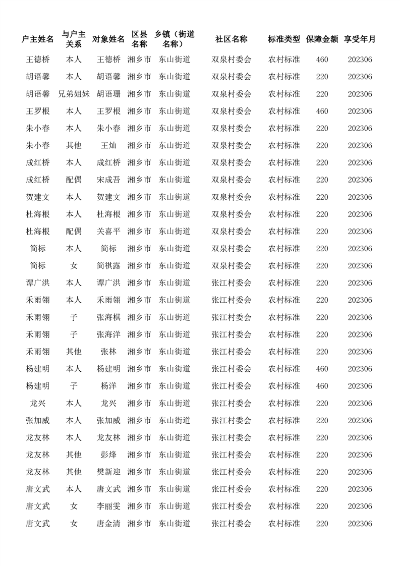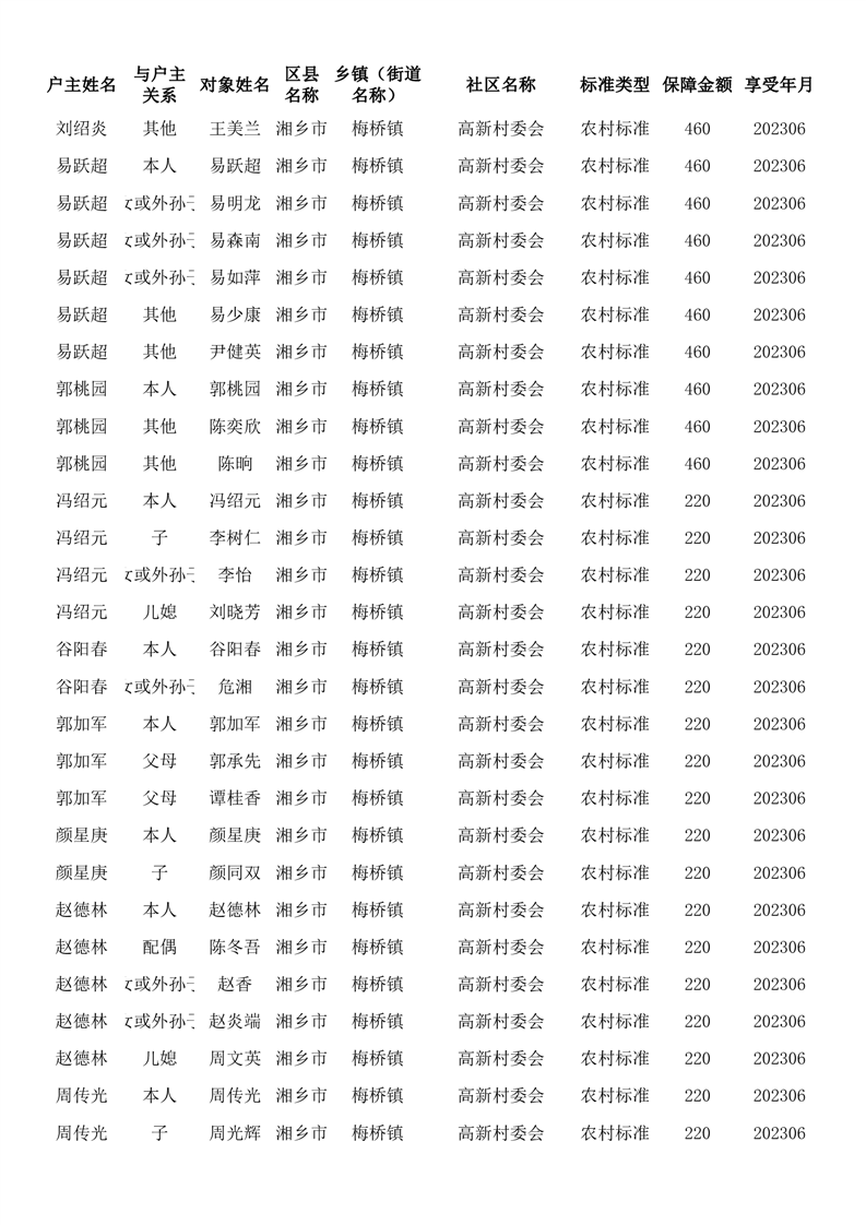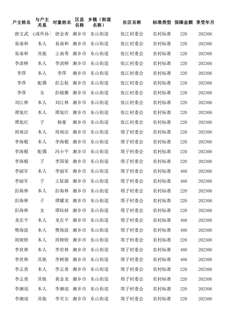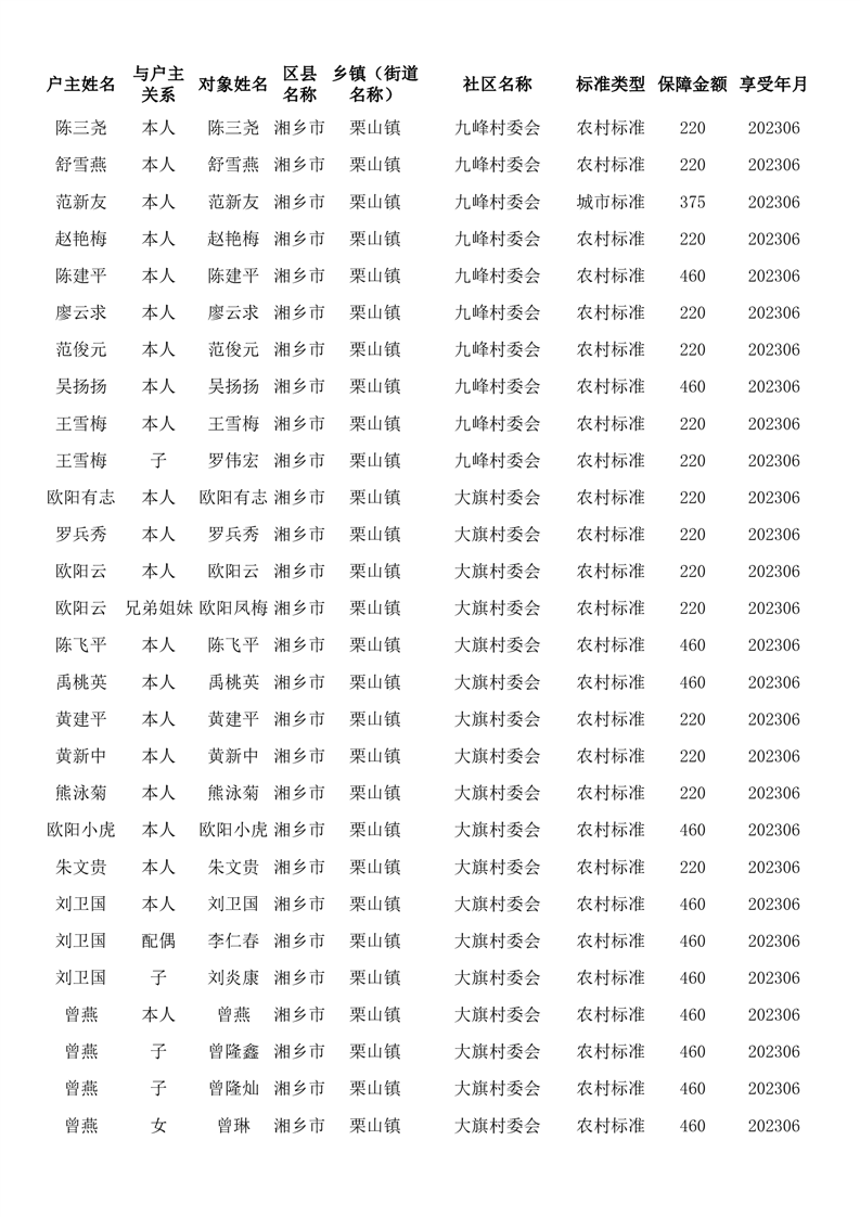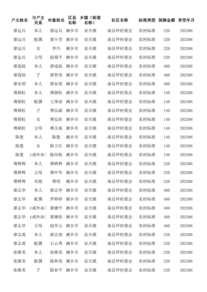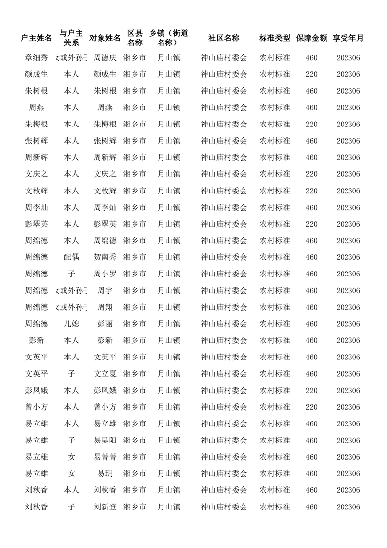 湘鄉(xiāng)市2023年6月城鄉(xiāng)低保救助對象審批匯總表