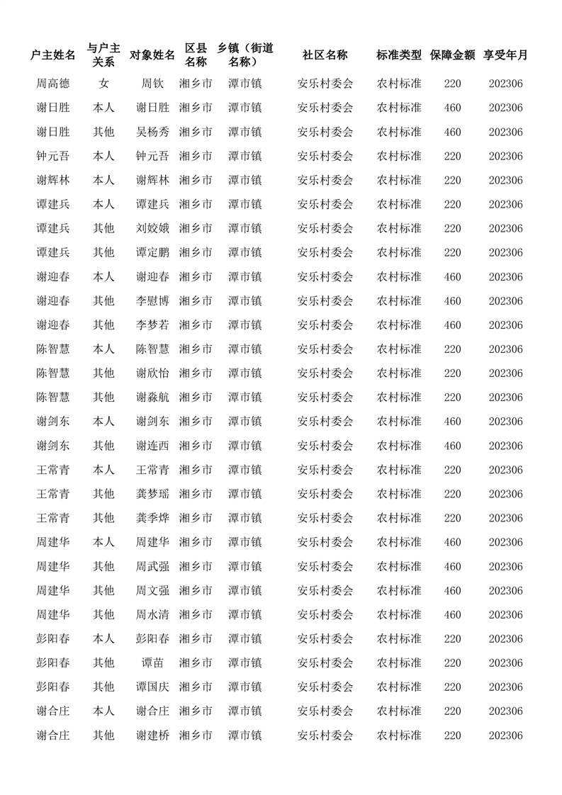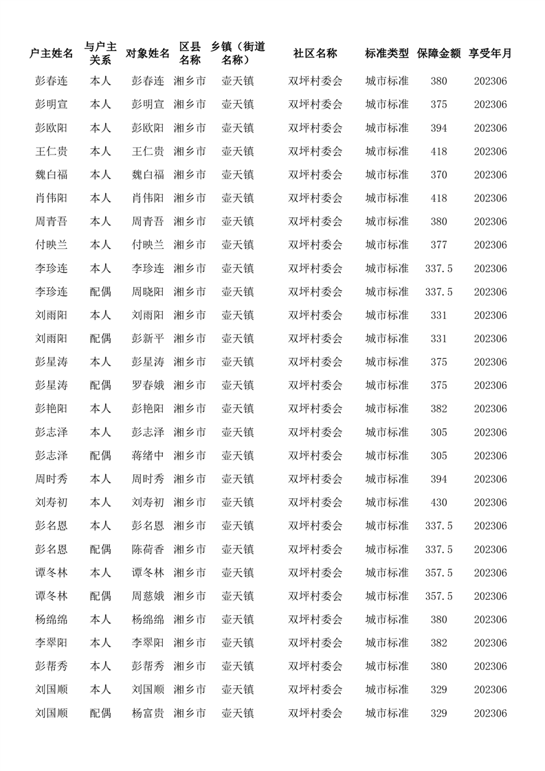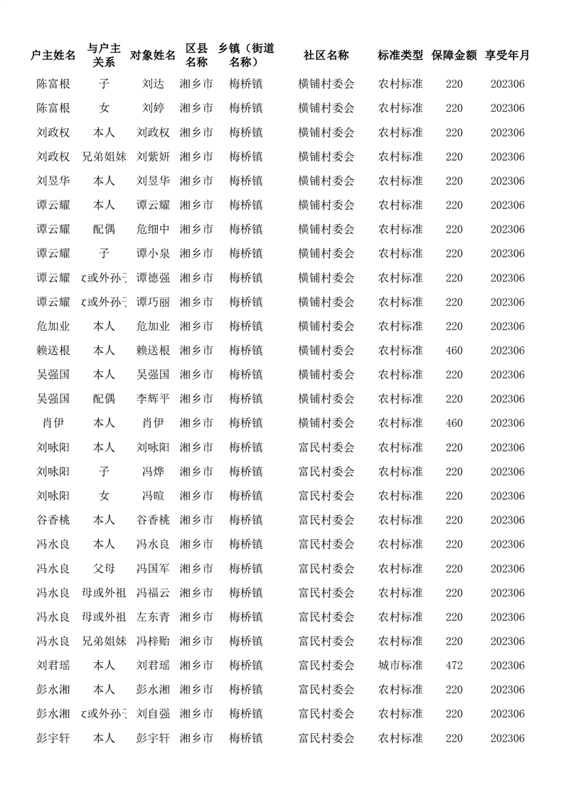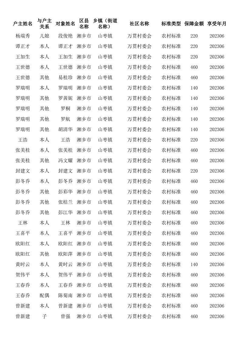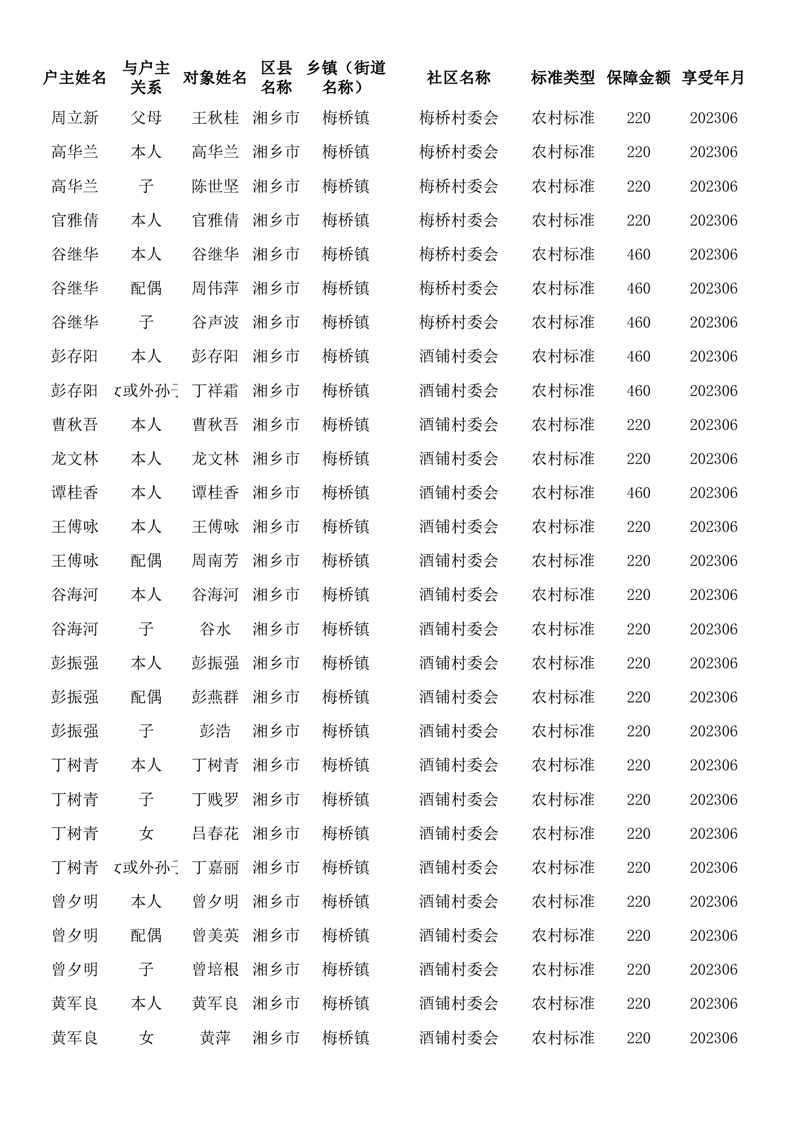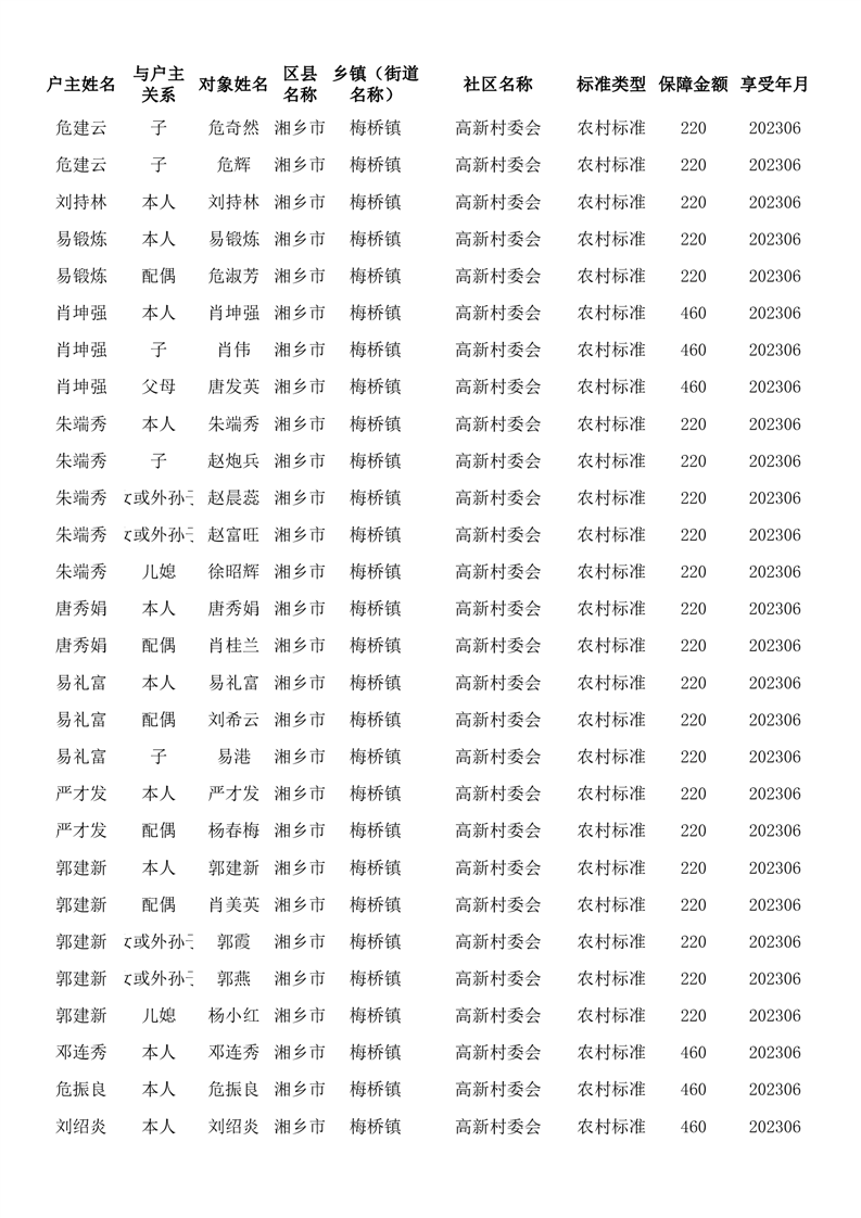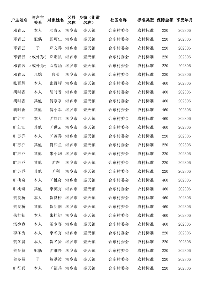 湘鄉(xiāng)市2023年6月城鄉(xiāng)低保救助對象審批匯總表