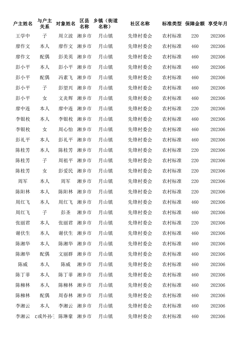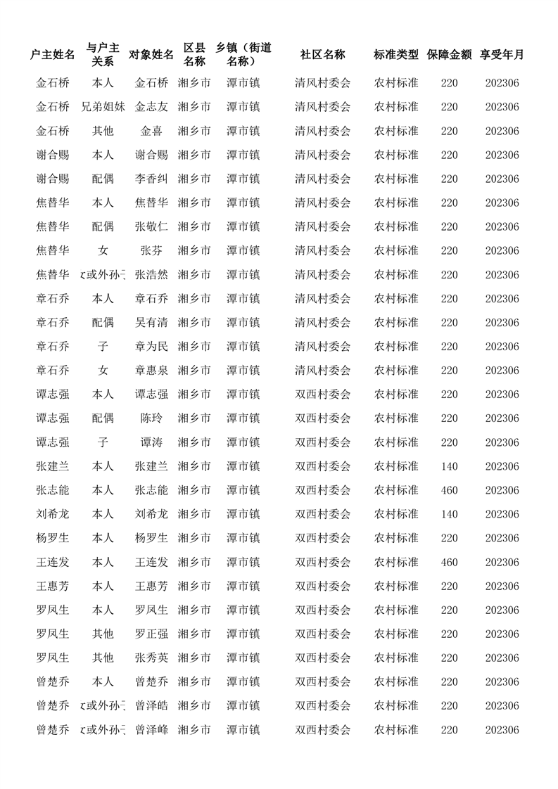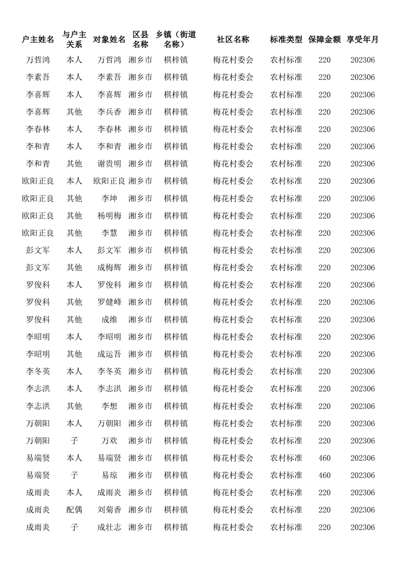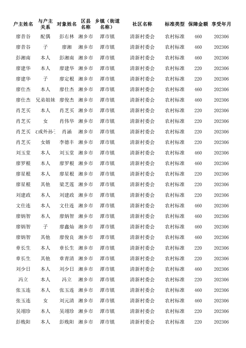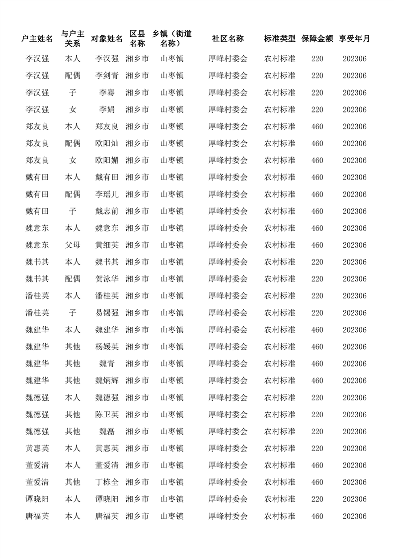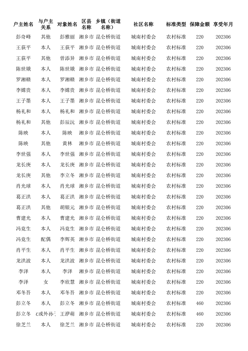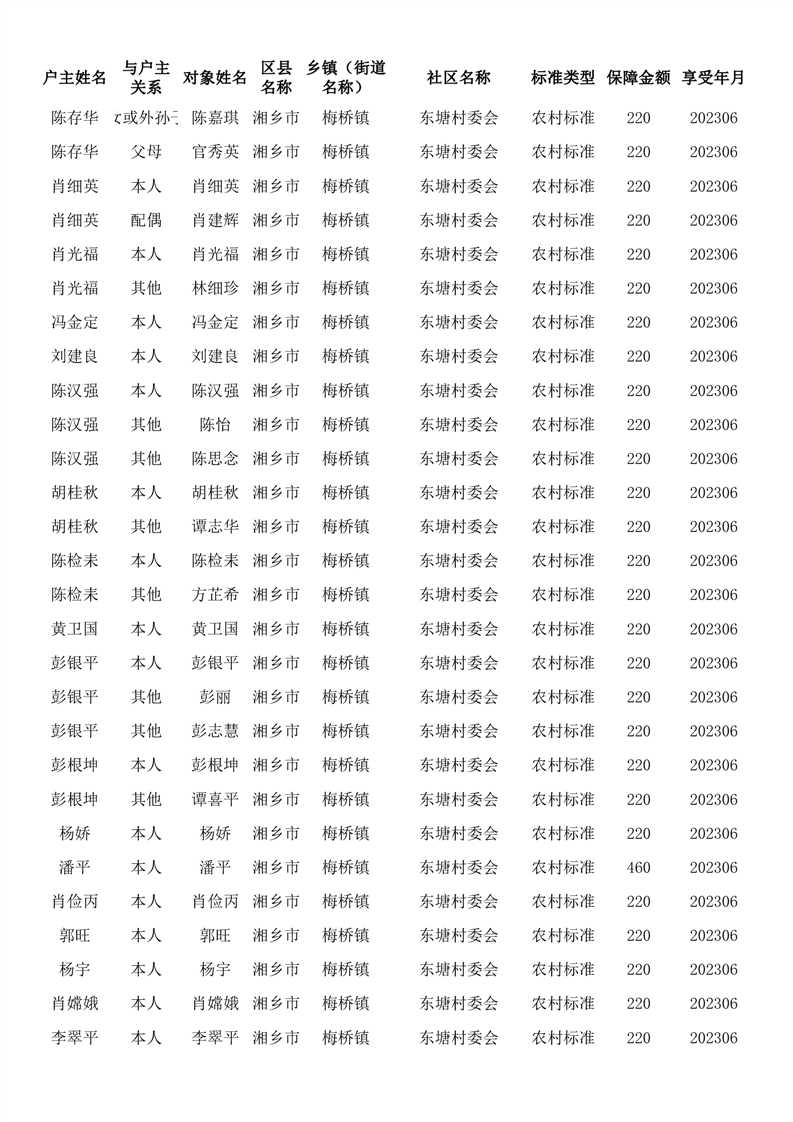 湘鄉(xiāng)市2023年6月城鄉(xiāng)低保救助對象審批匯總表