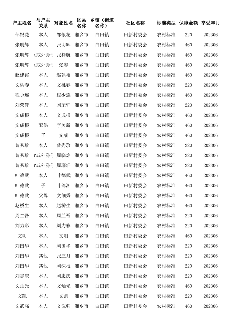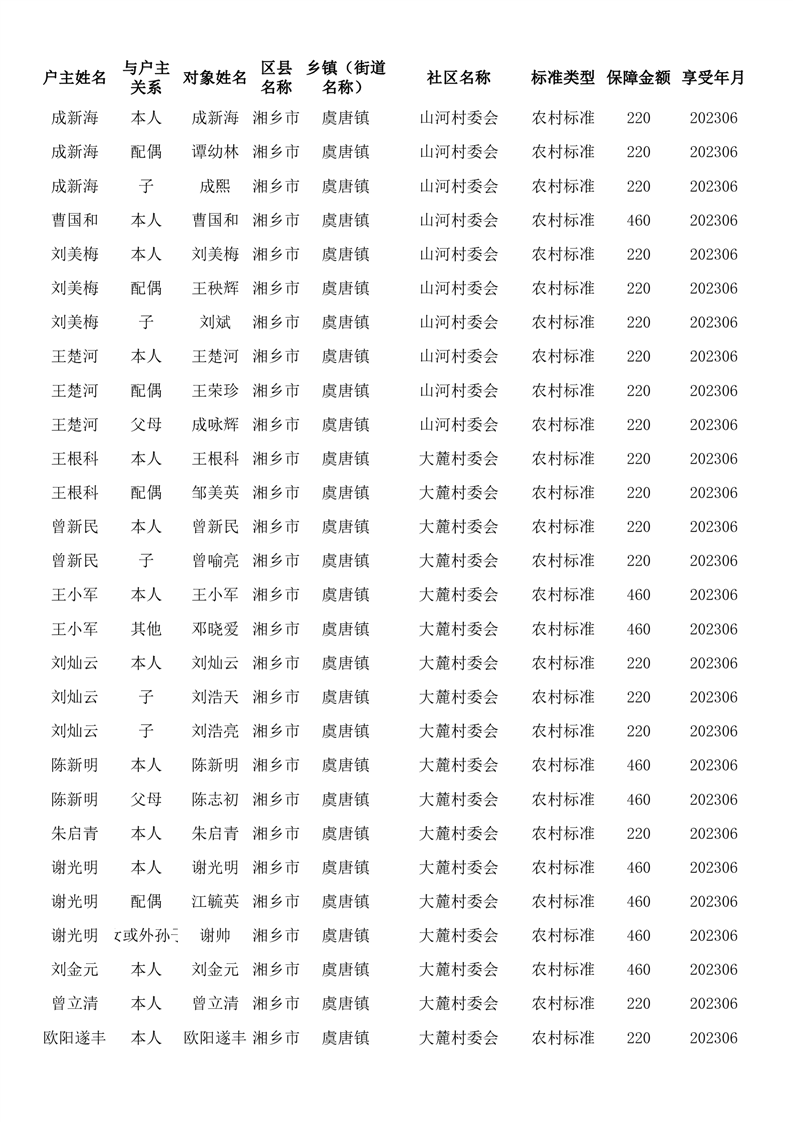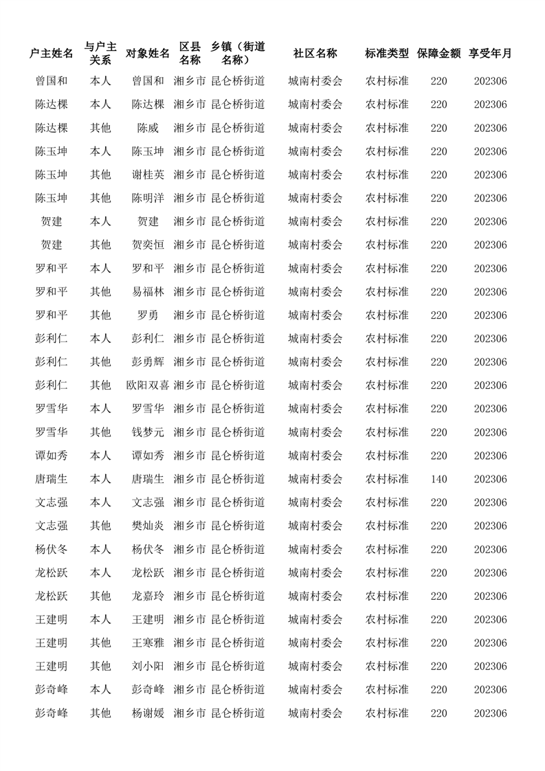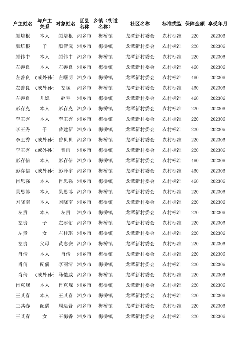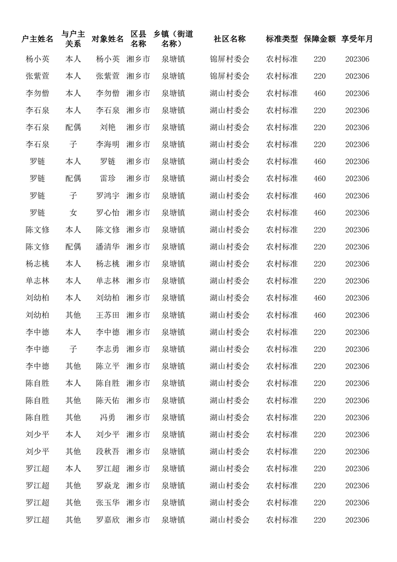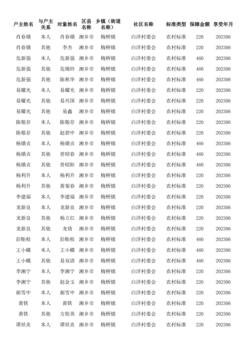 湘鄉(xiāng)市2023年6月城鄉(xiāng)低保救助對象審批匯總表