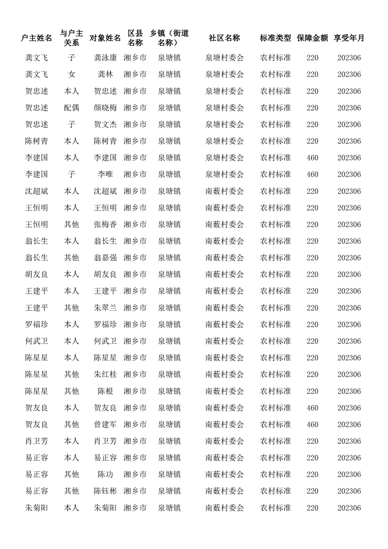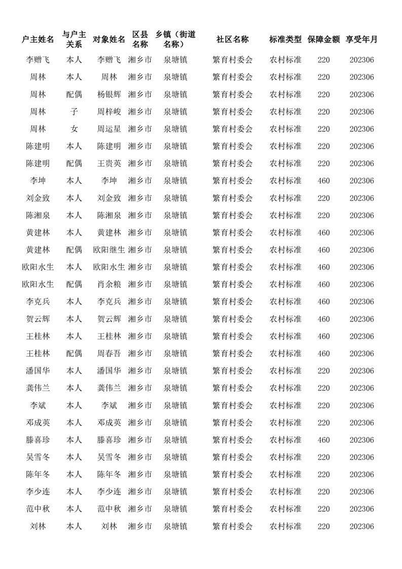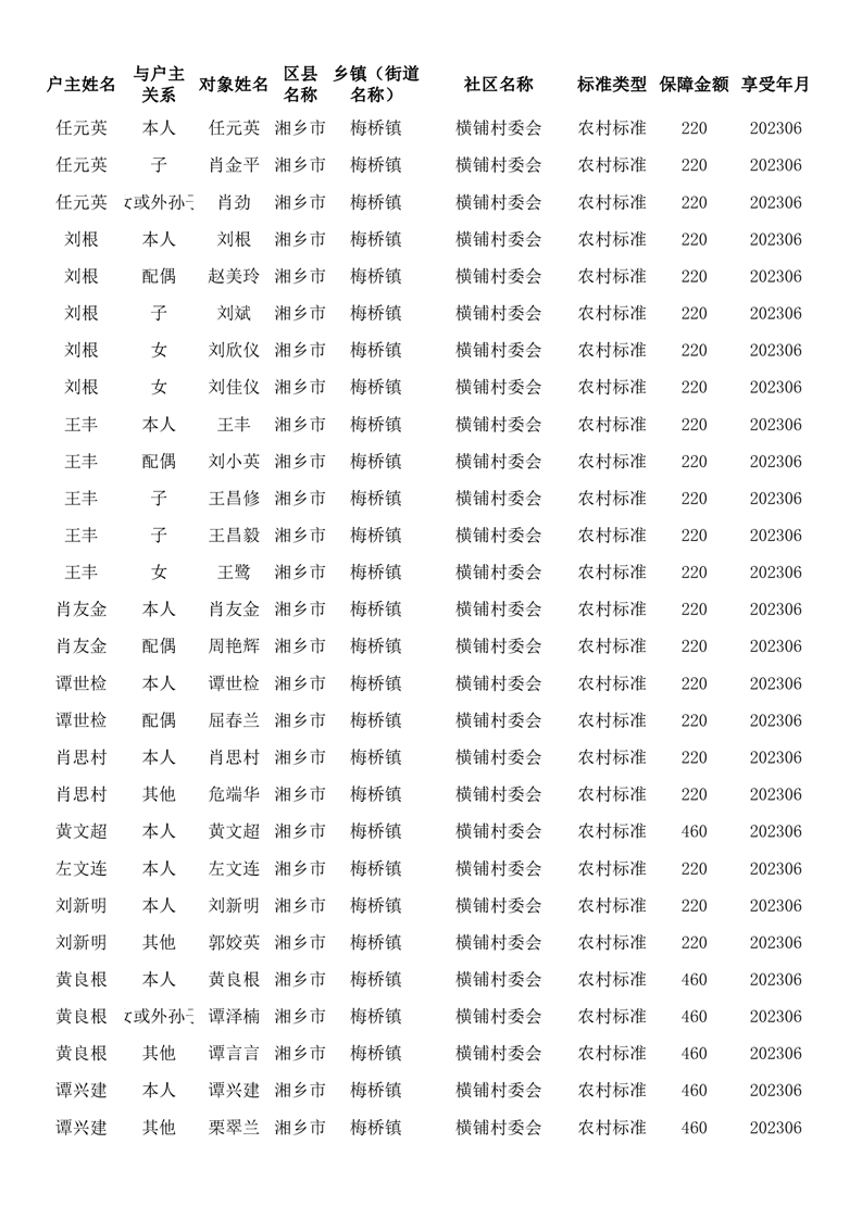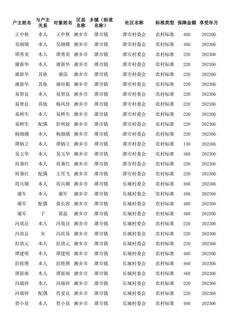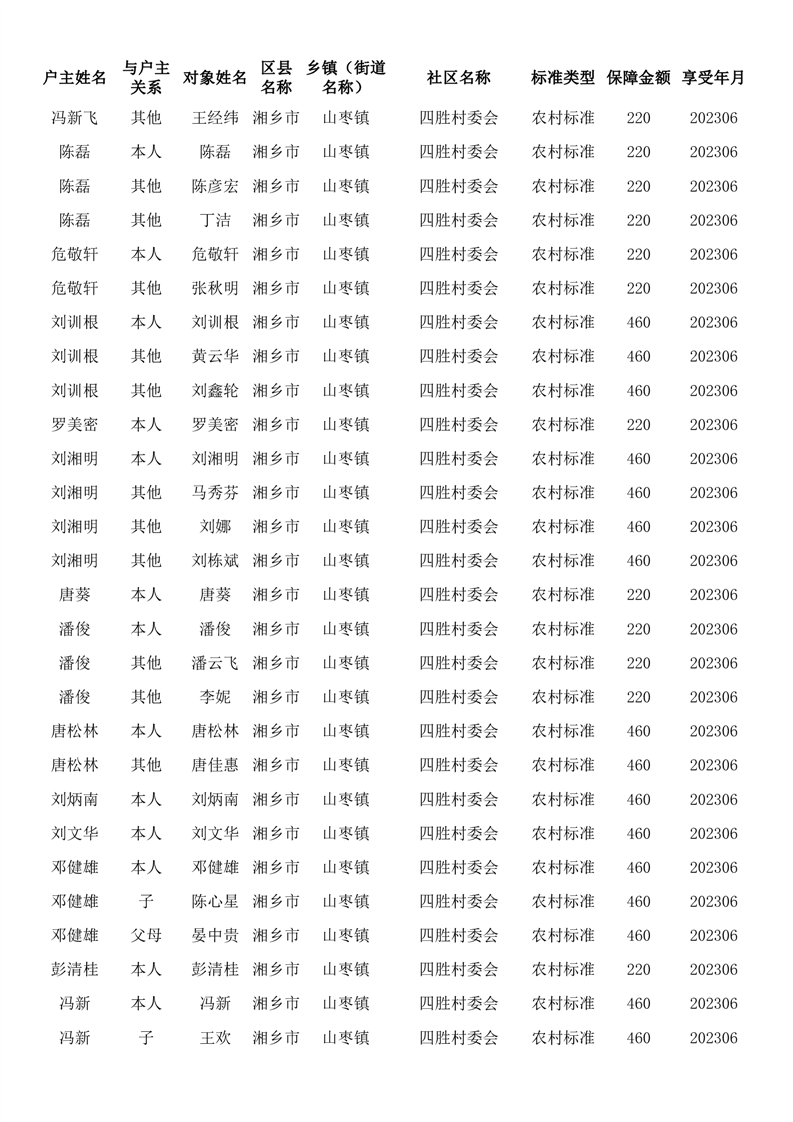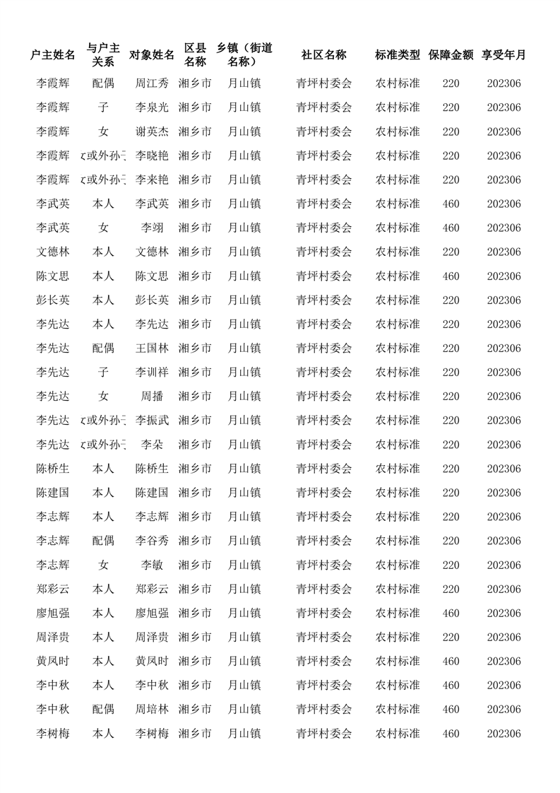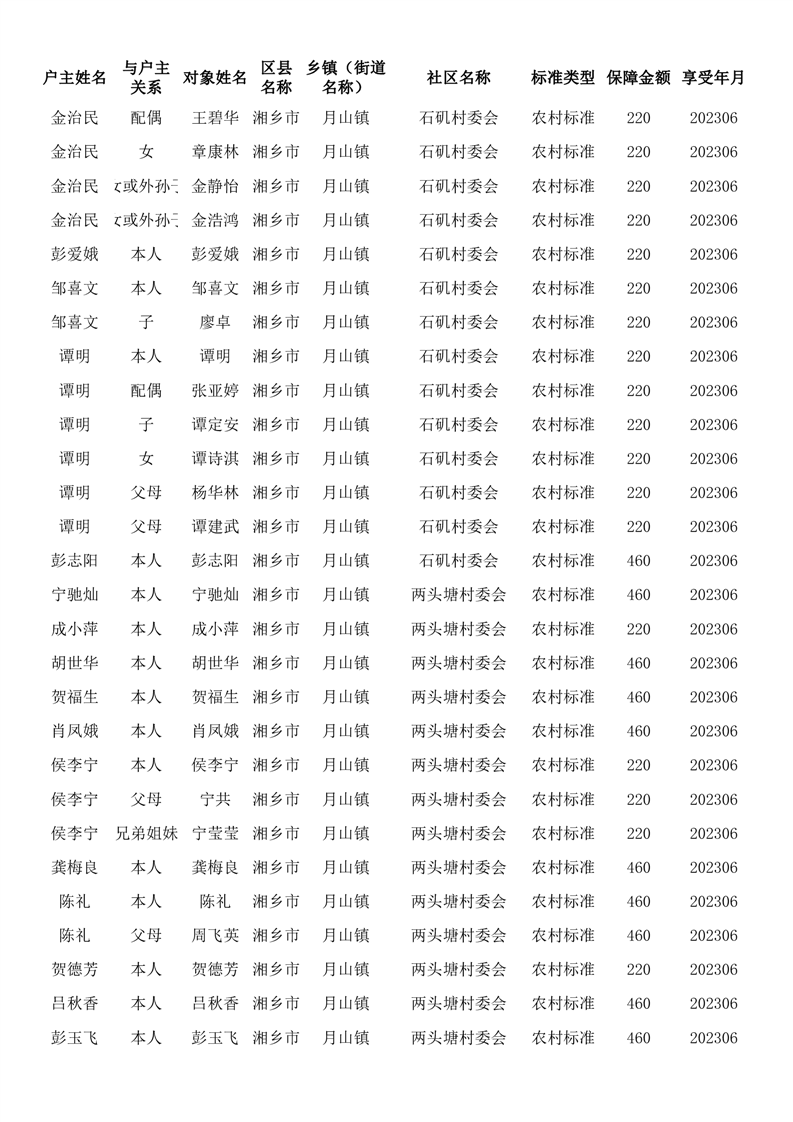 湘鄉(xiāng)市2023年6月城鄉(xiāng)低保救助對象審批匯總表