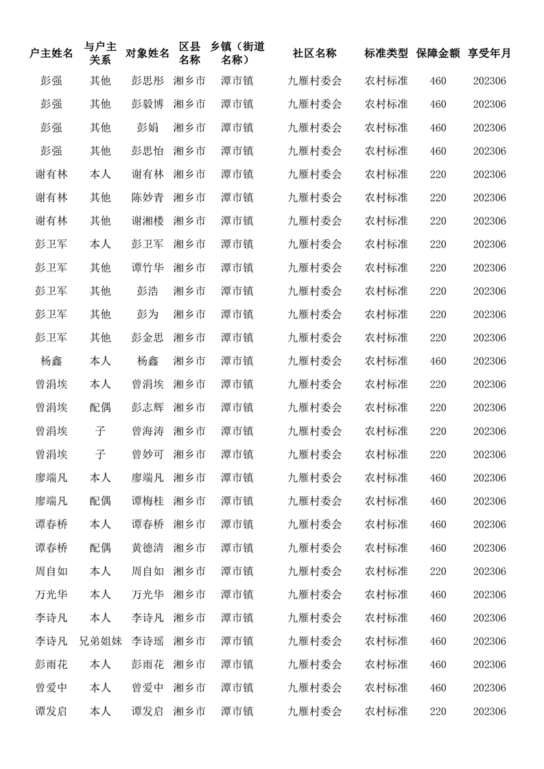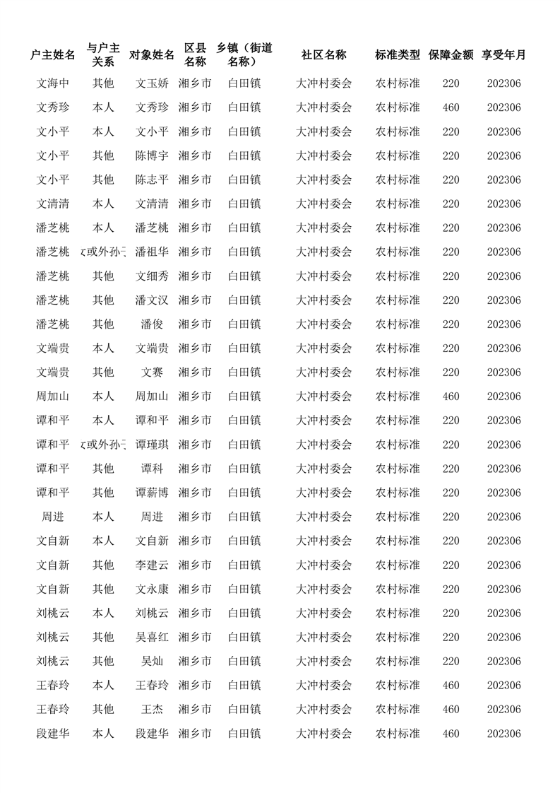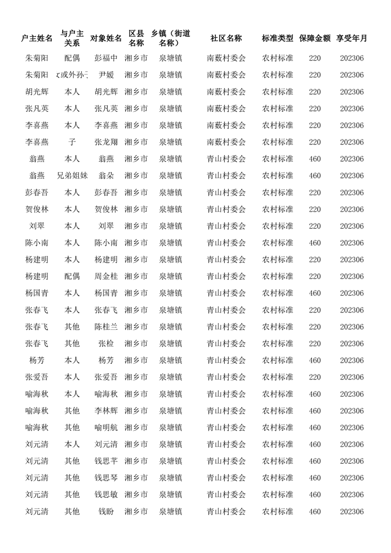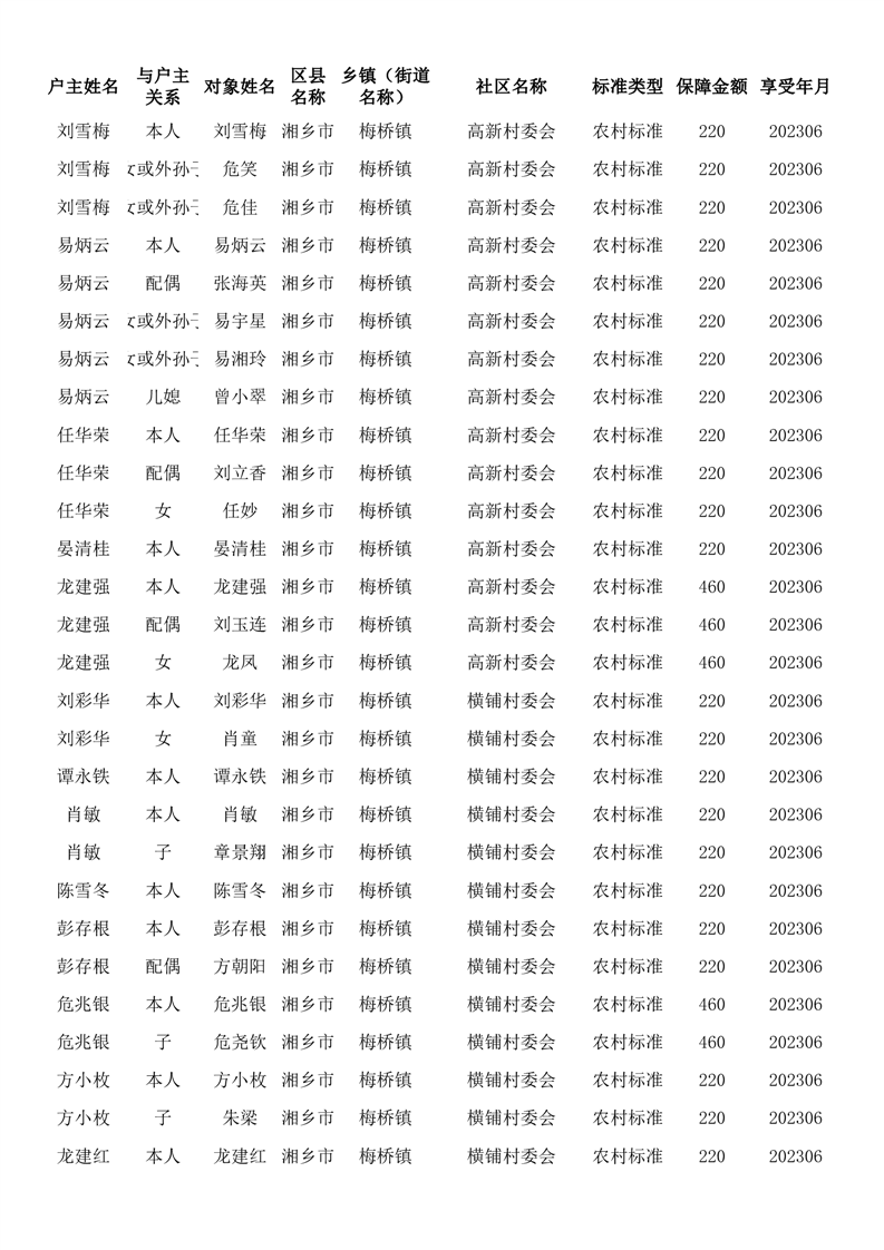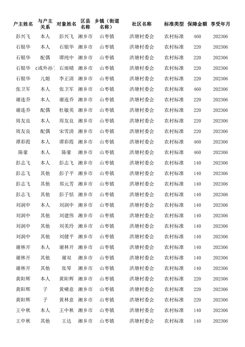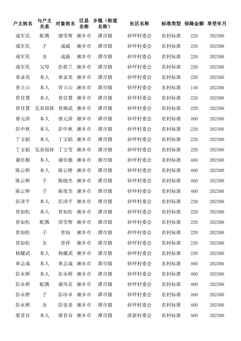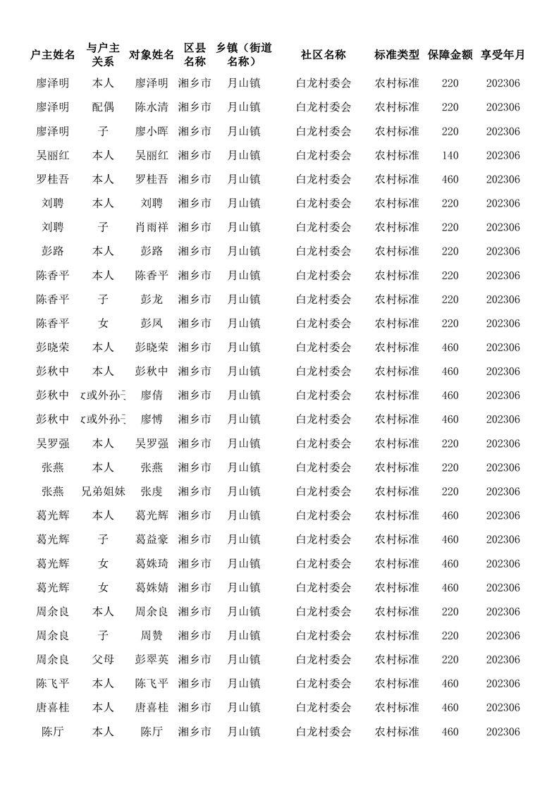 湘鄉(xiāng)市2023年6月城鄉(xiāng)低保救助對象審批匯總表