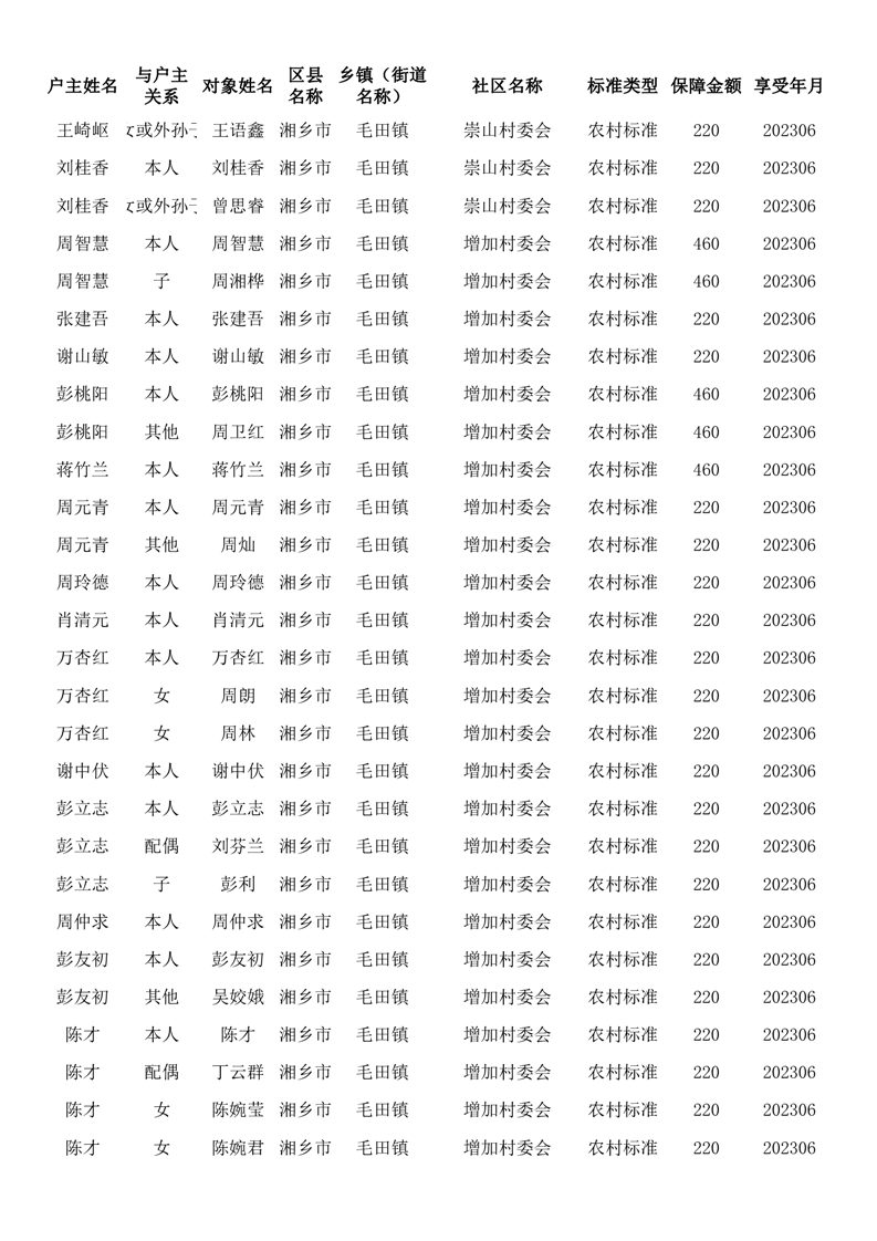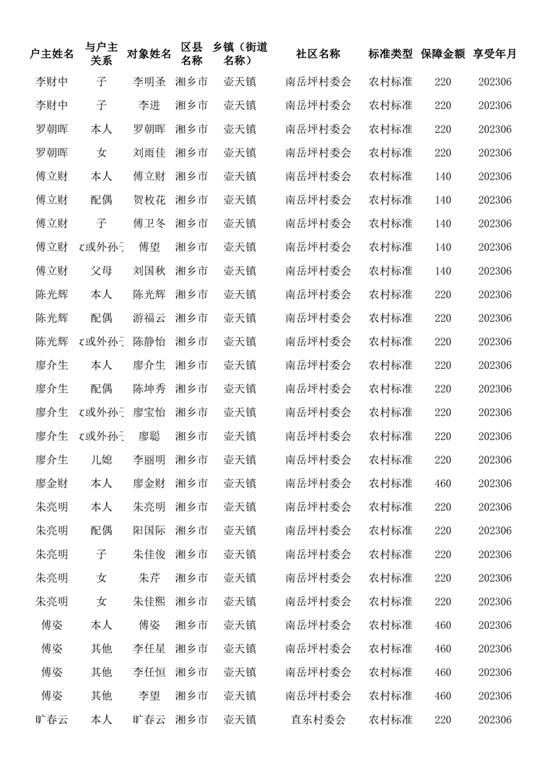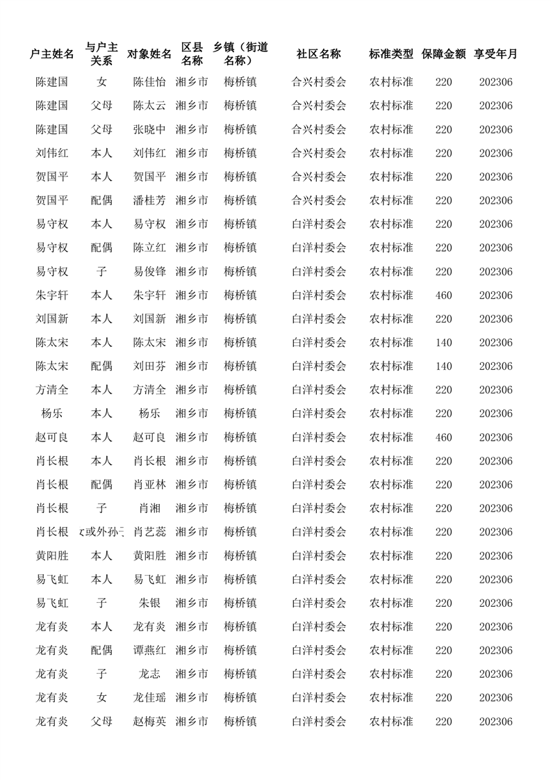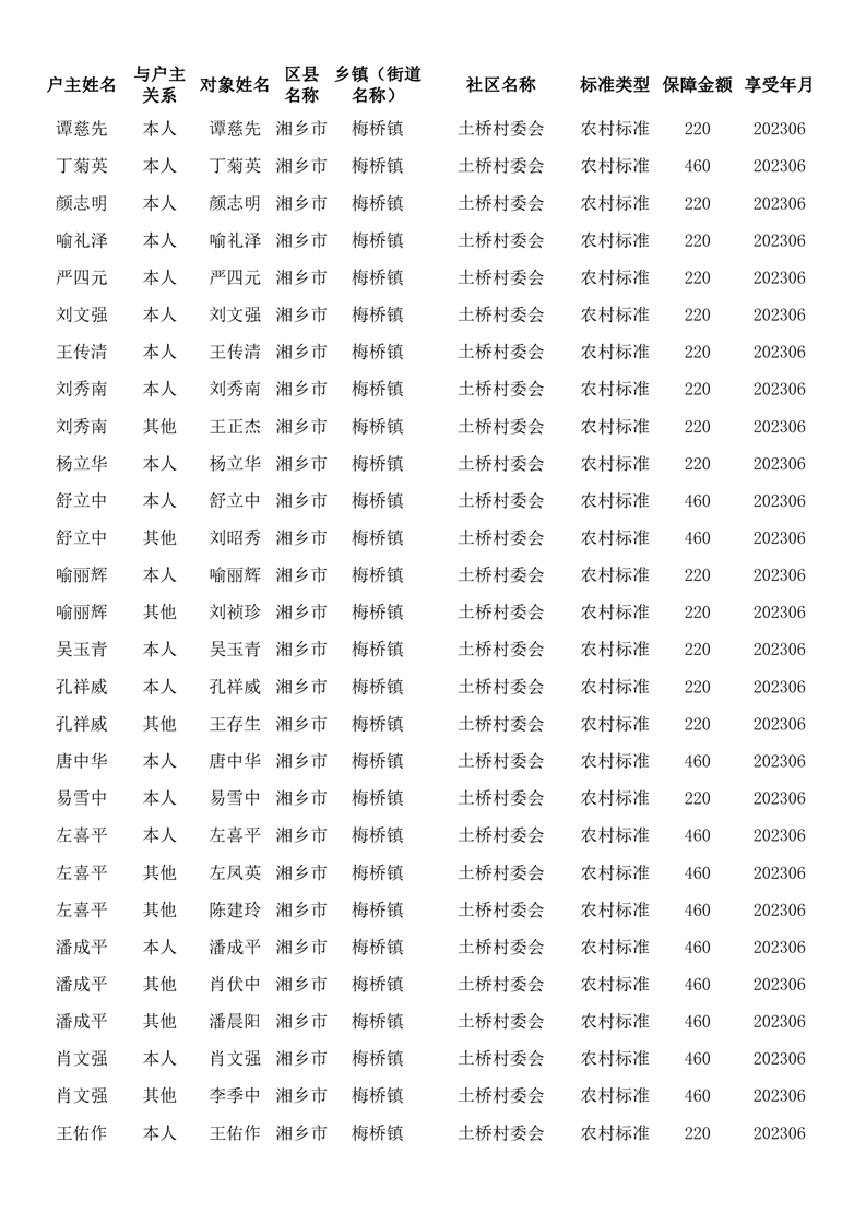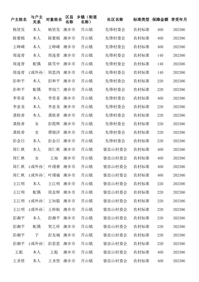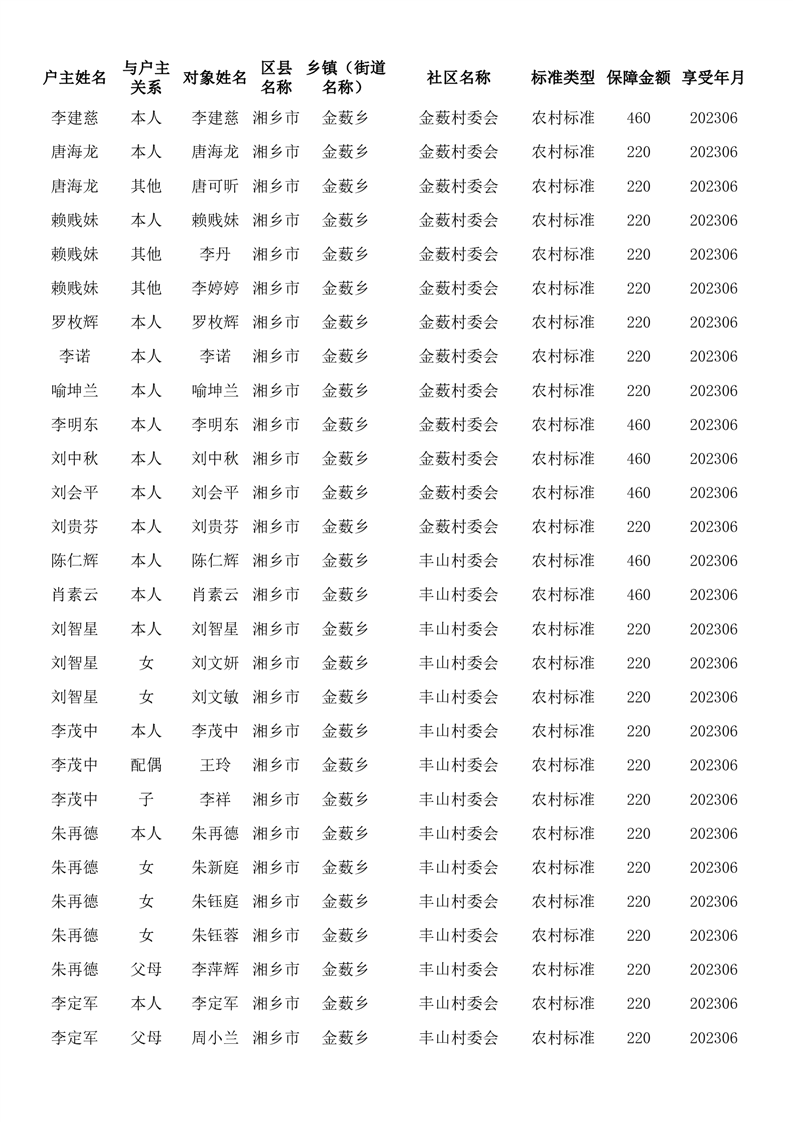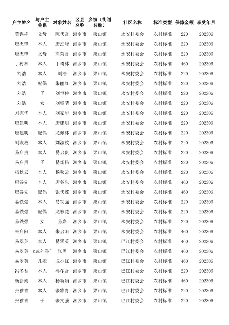 湘鄉(xiāng)市2023年6月城鄉(xiāng)低保救助對象審批匯總表