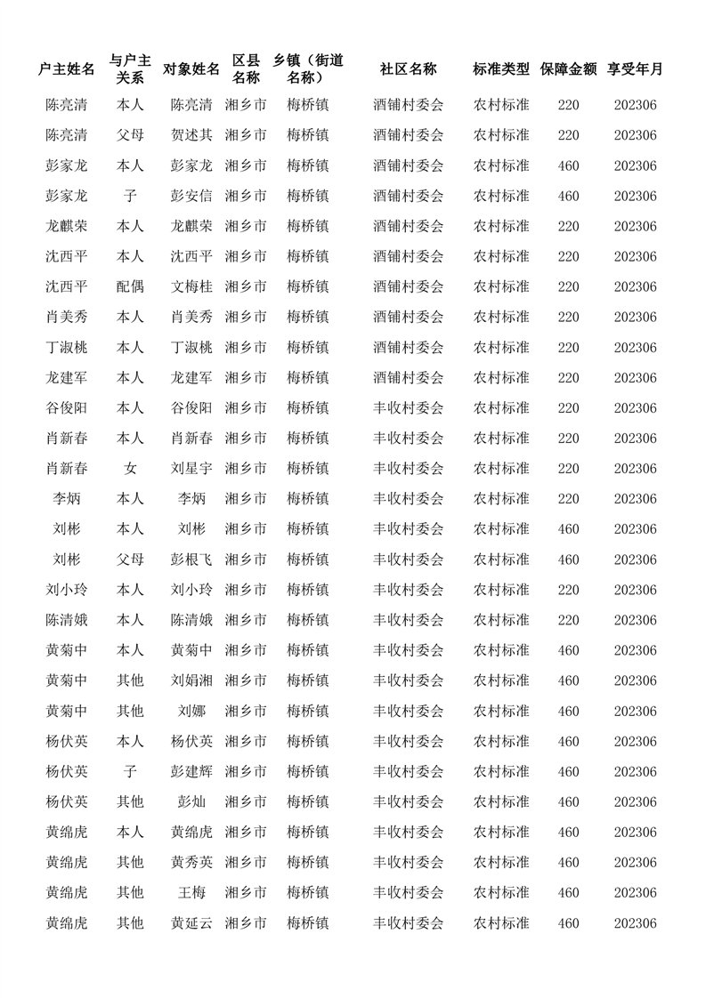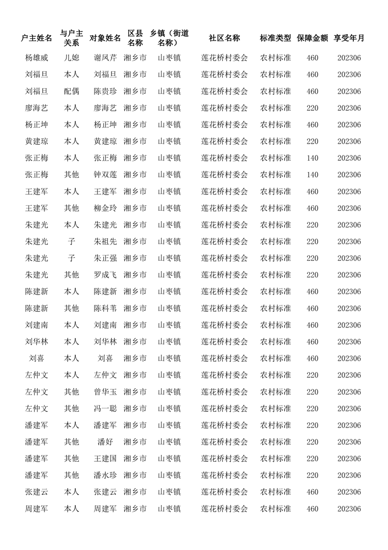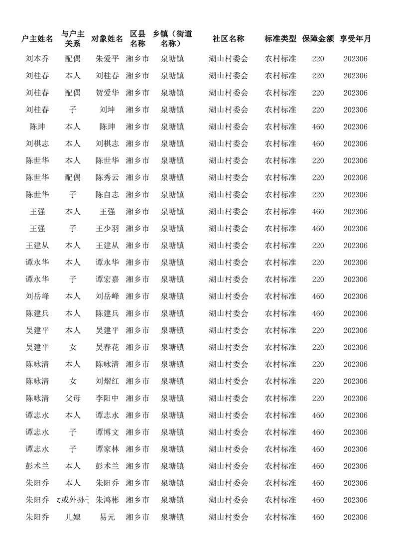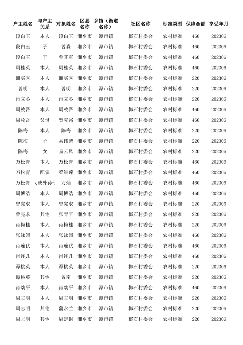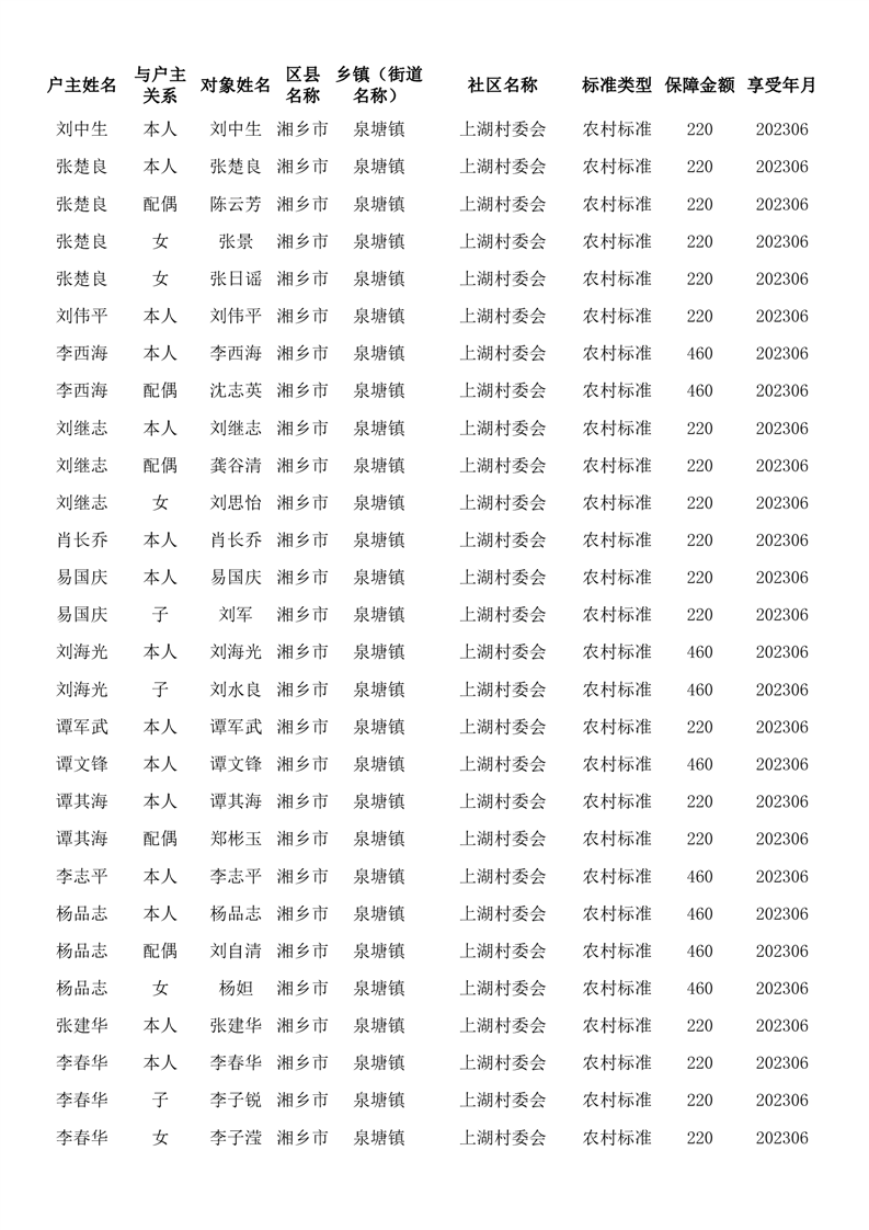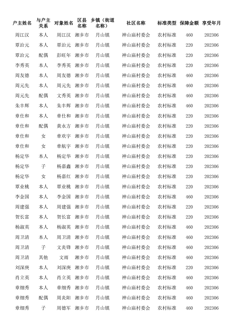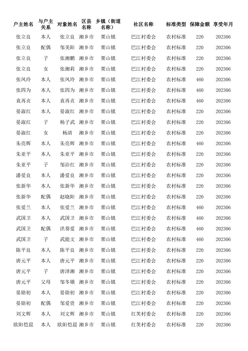 湘鄉(xiāng)市2023年6月城鄉(xiāng)低保救助對象審批匯總表