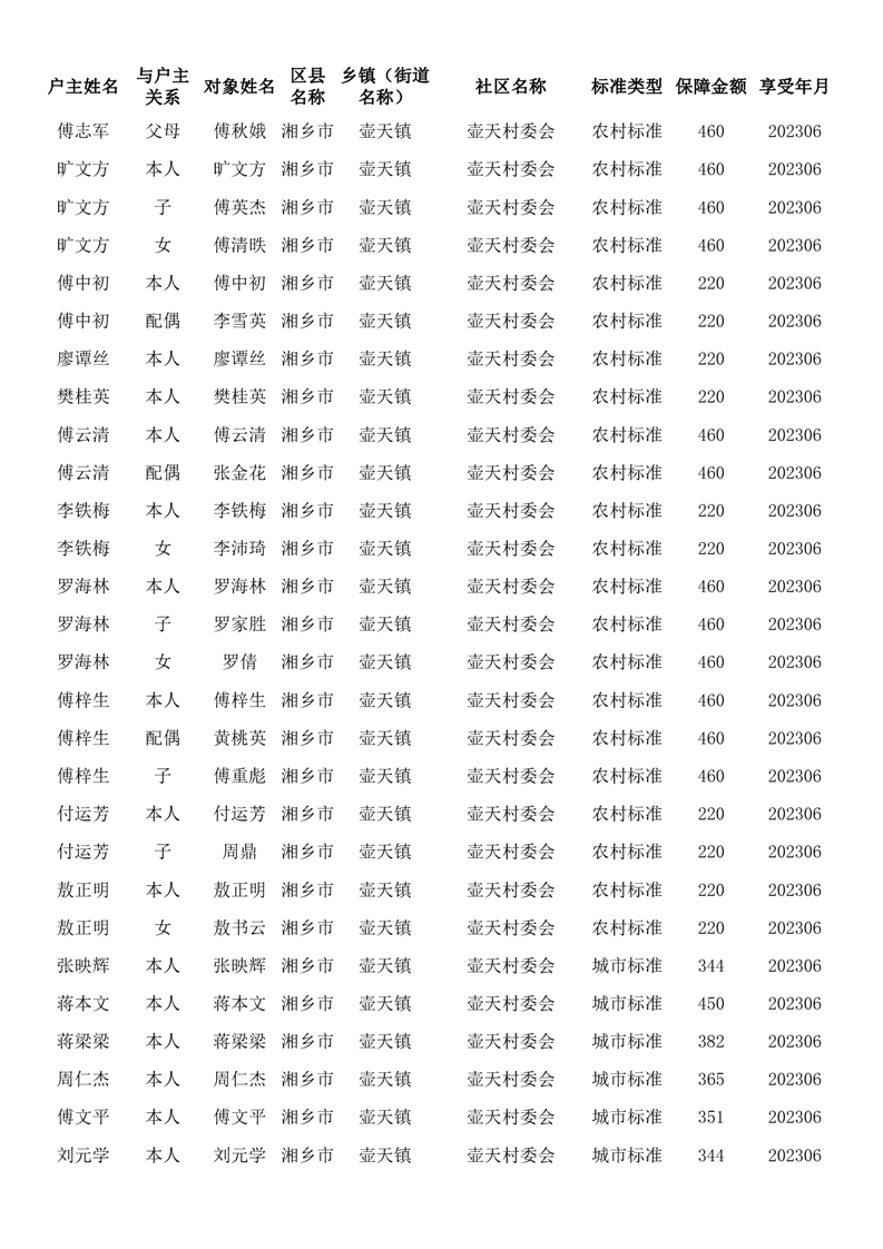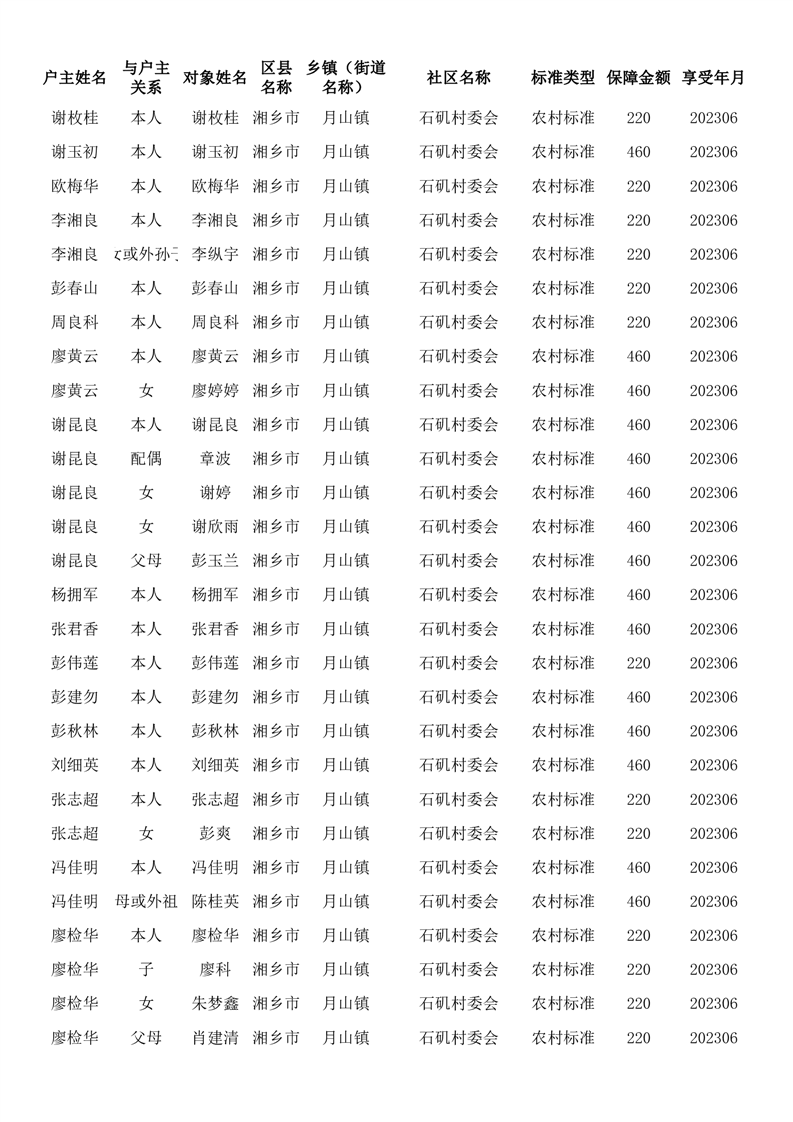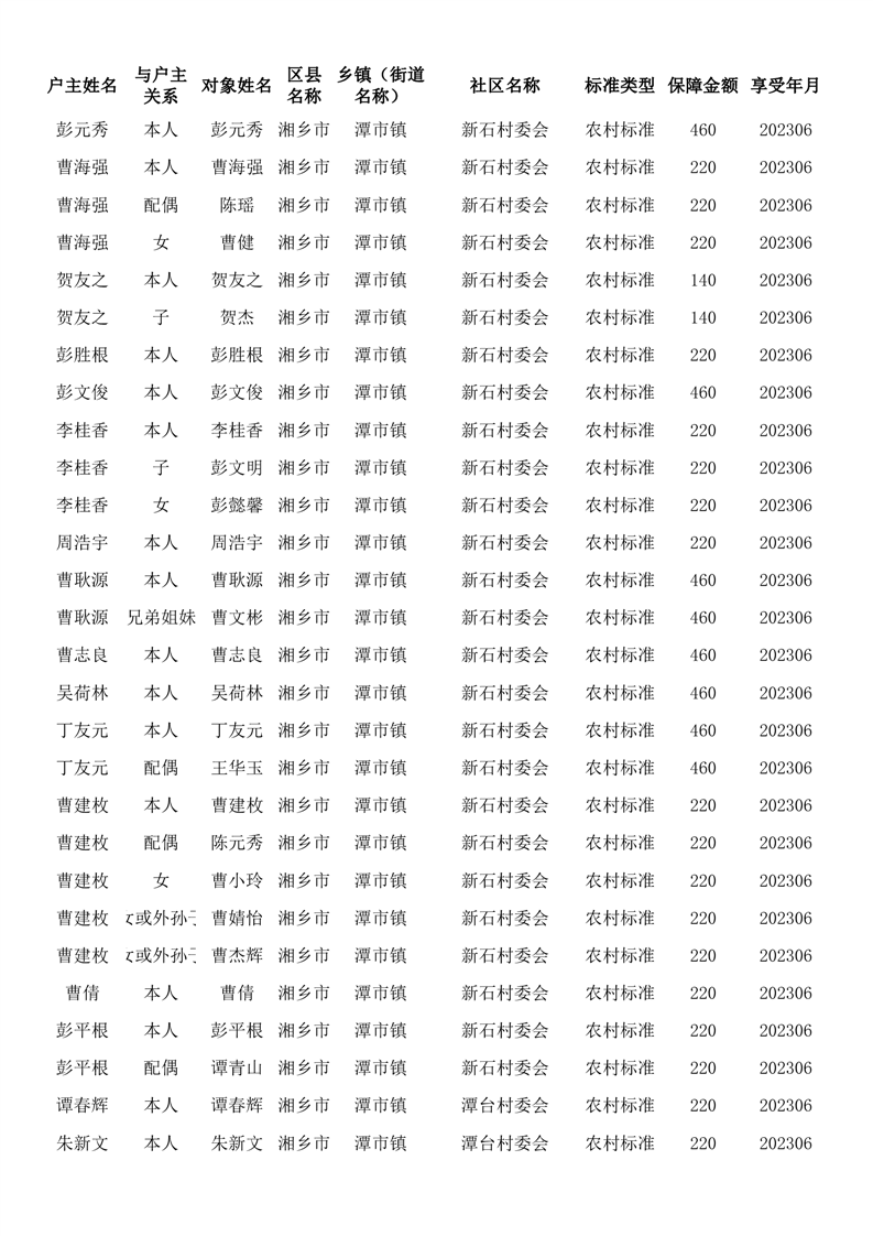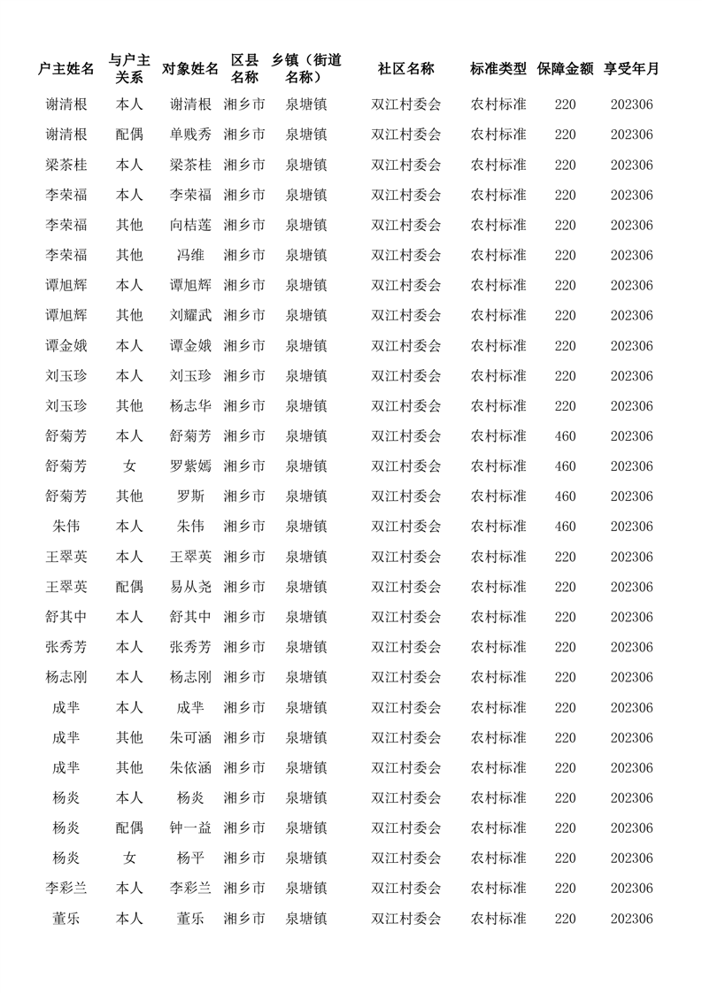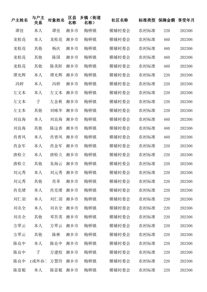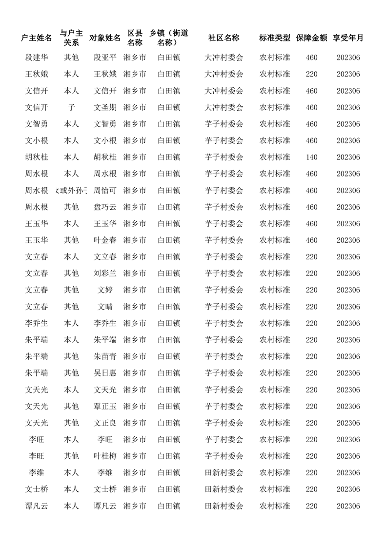 湘鄉(xiāng)市2023年6月城鄉(xiāng)低保救助對象審批匯總表
