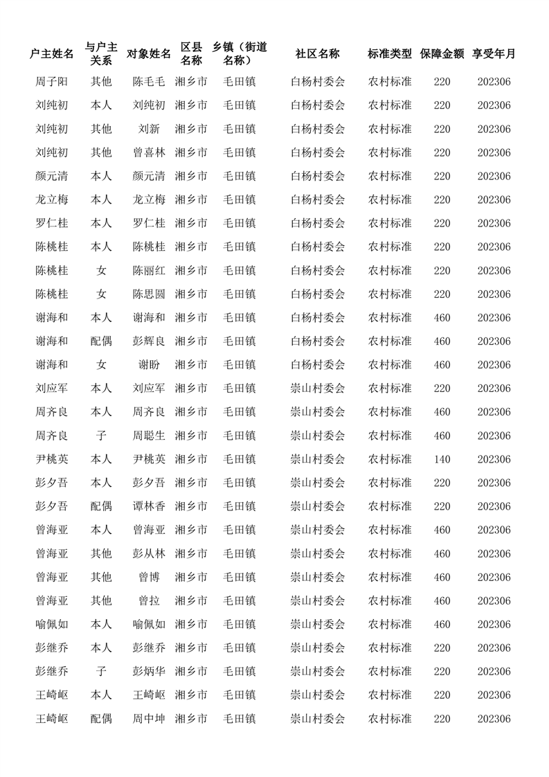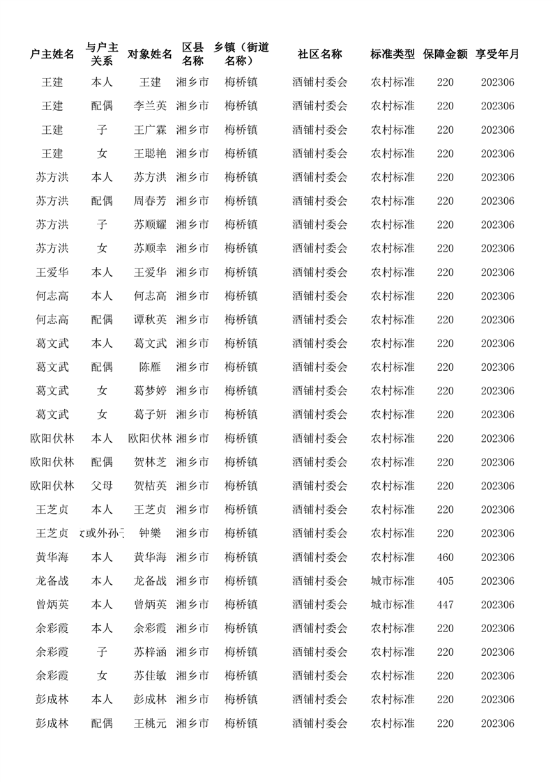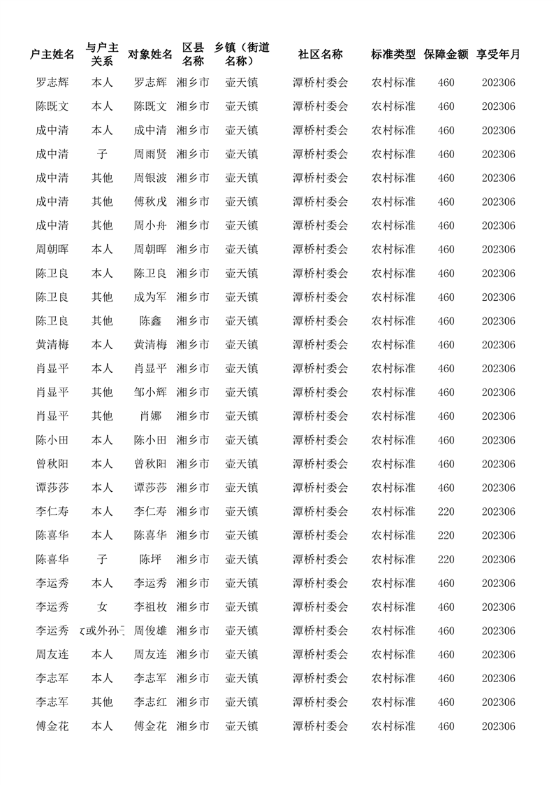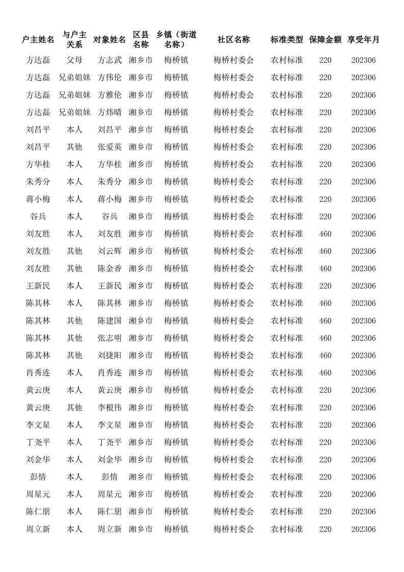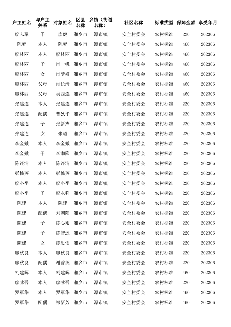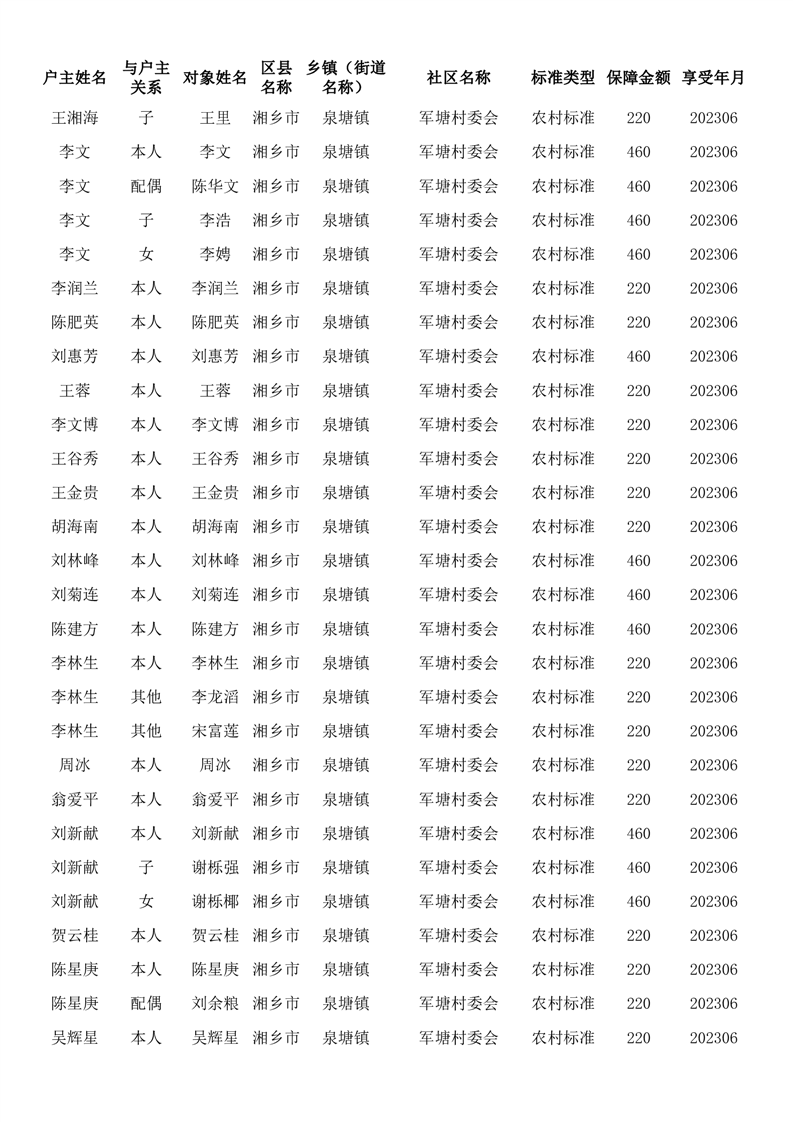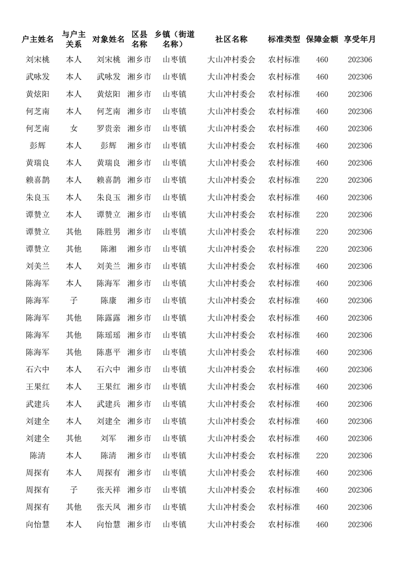 湘鄉(xiāng)市2023年6月城鄉(xiāng)低保救助對象審批匯總表