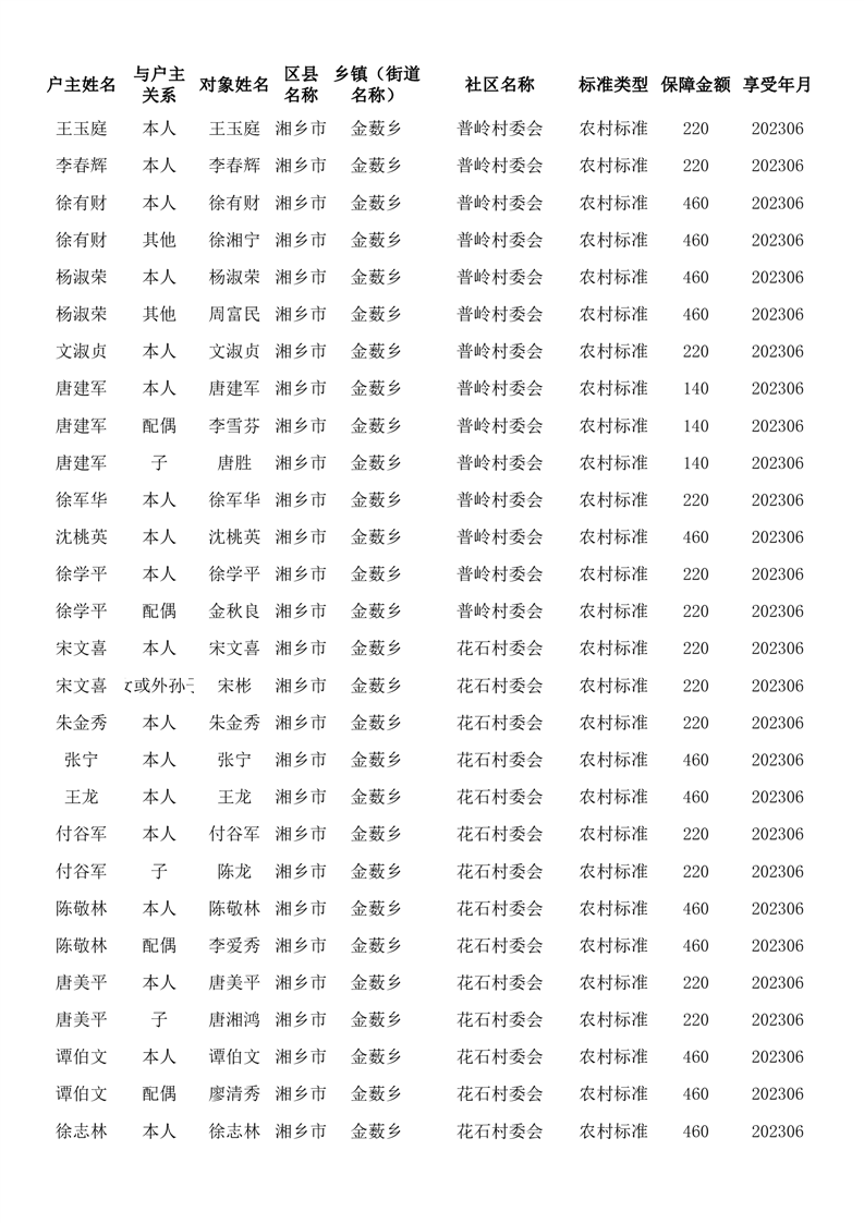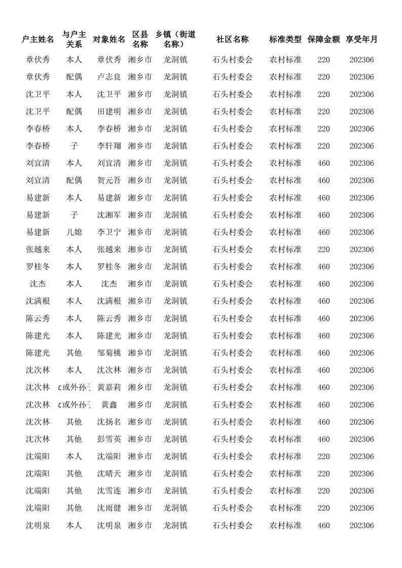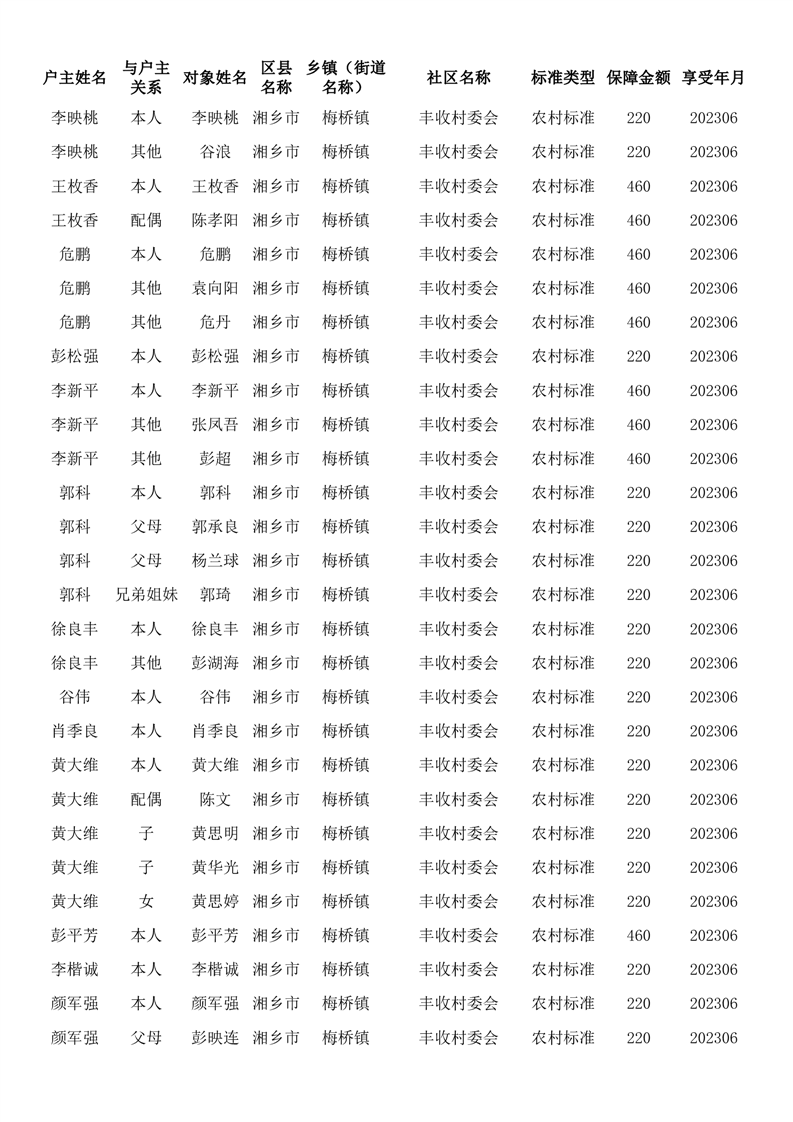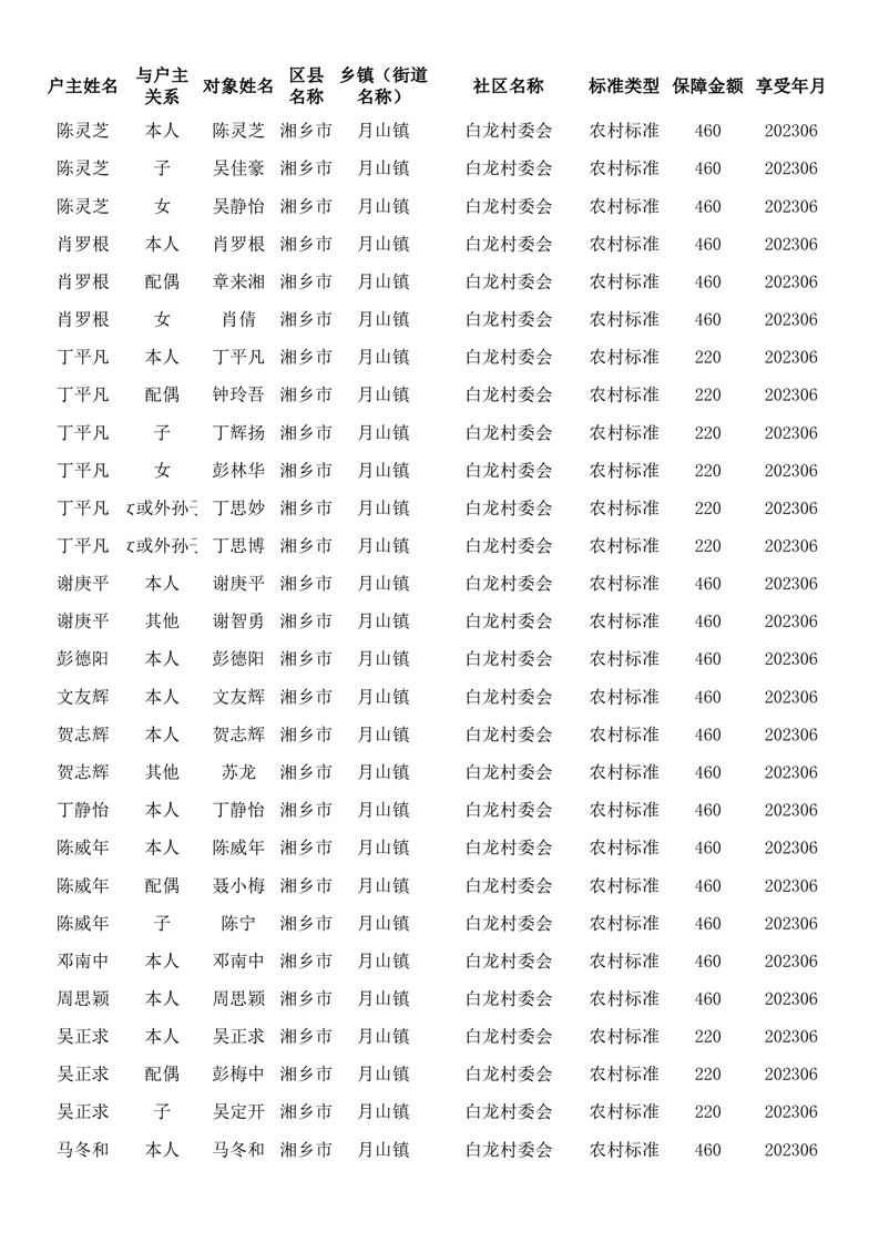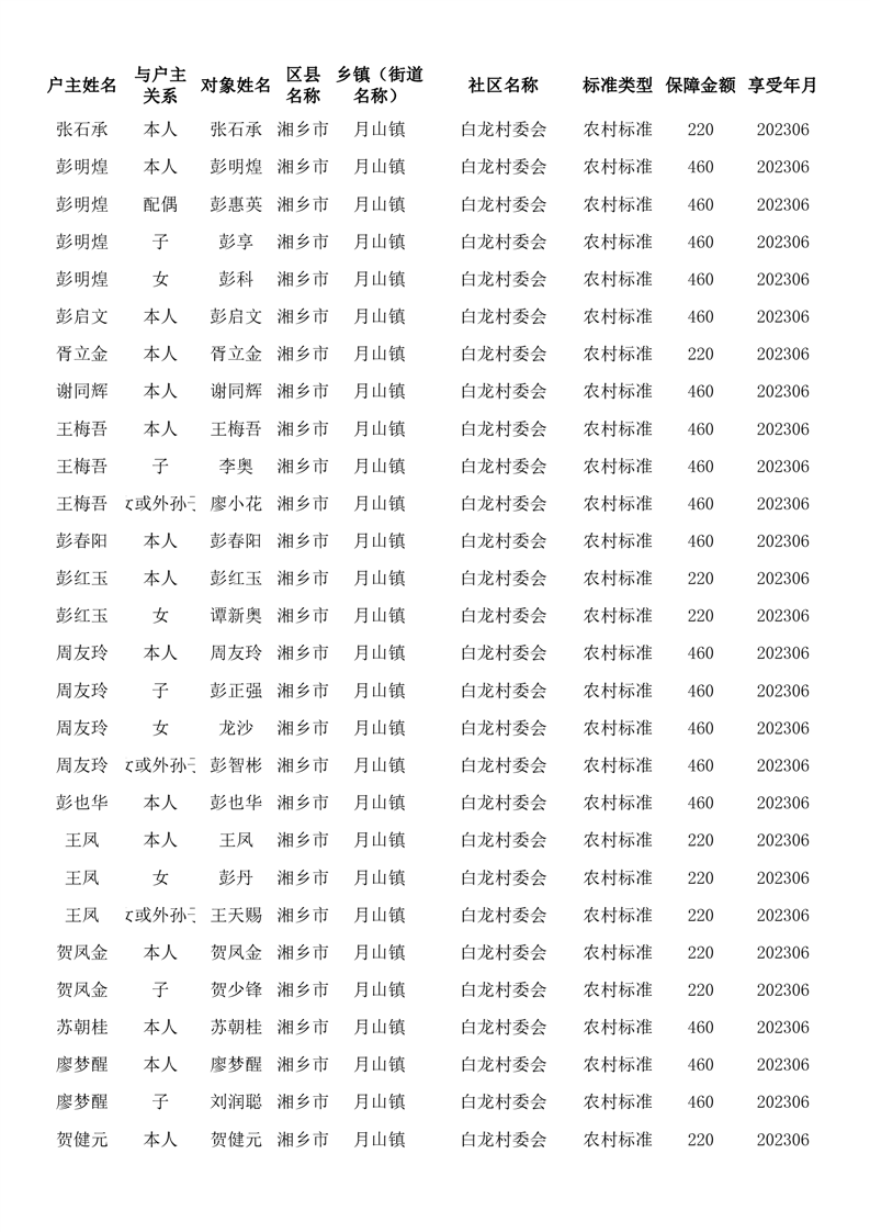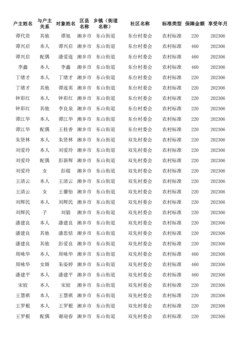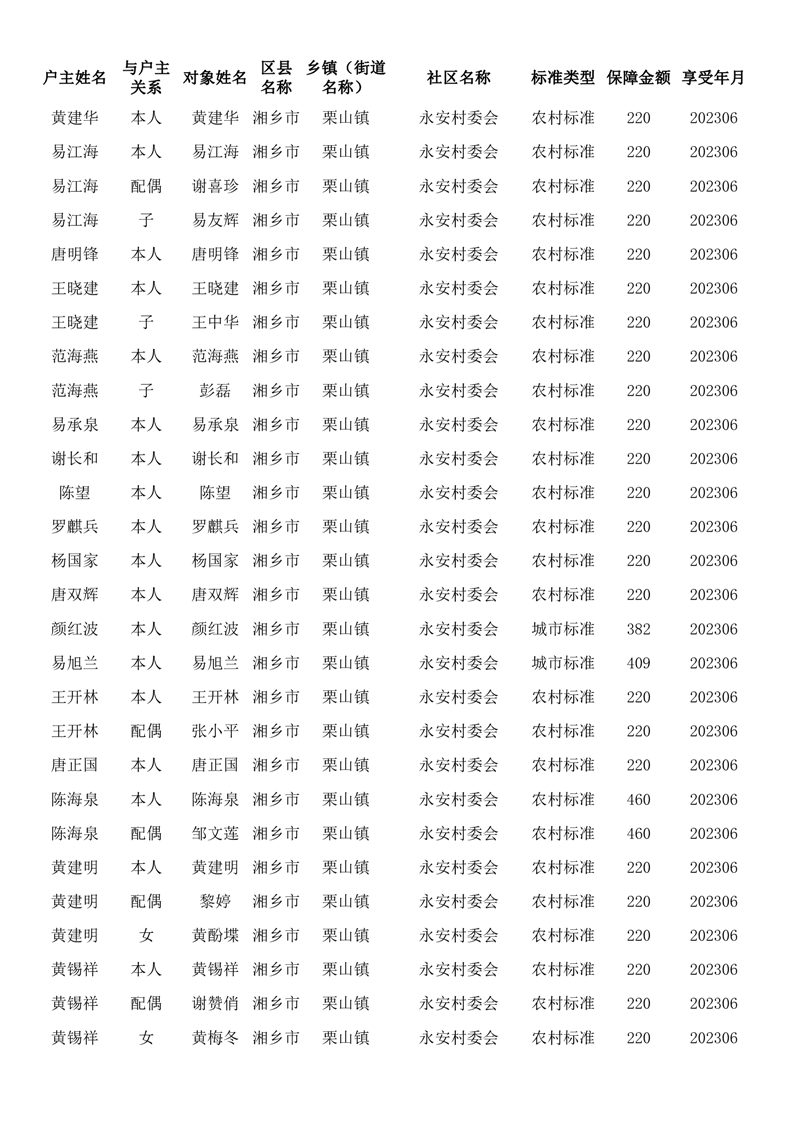 湘鄉(xiāng)市2023年6月城鄉(xiāng)低保救助對象審批匯總表
