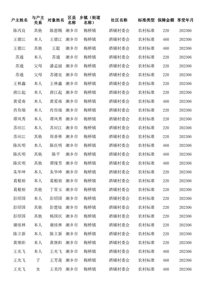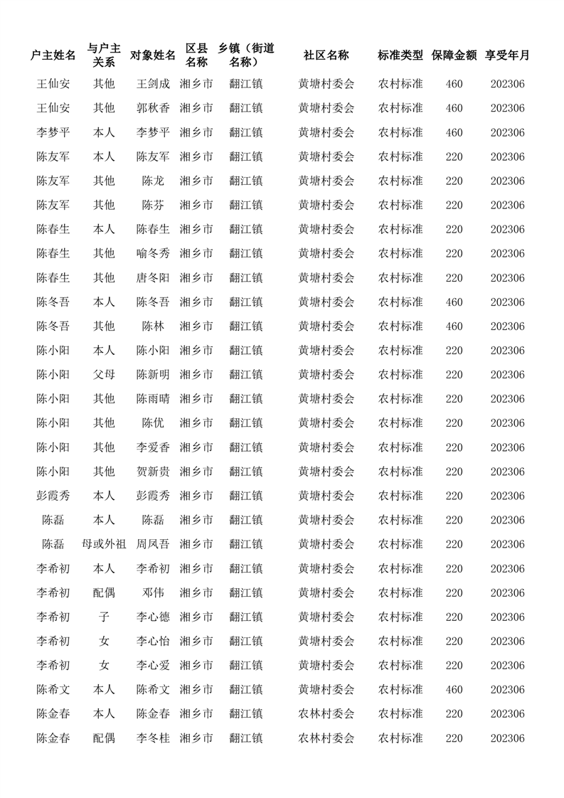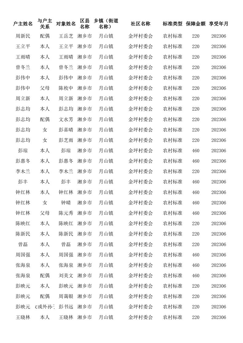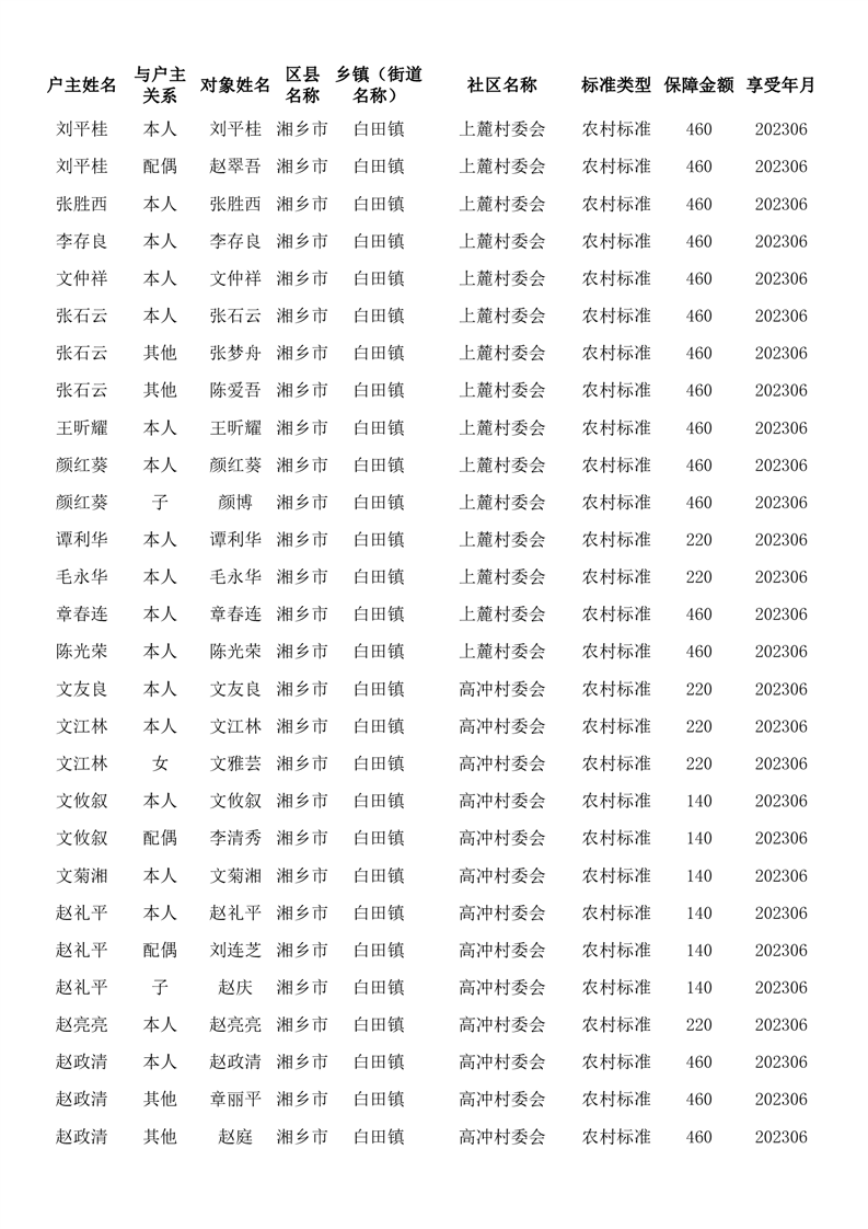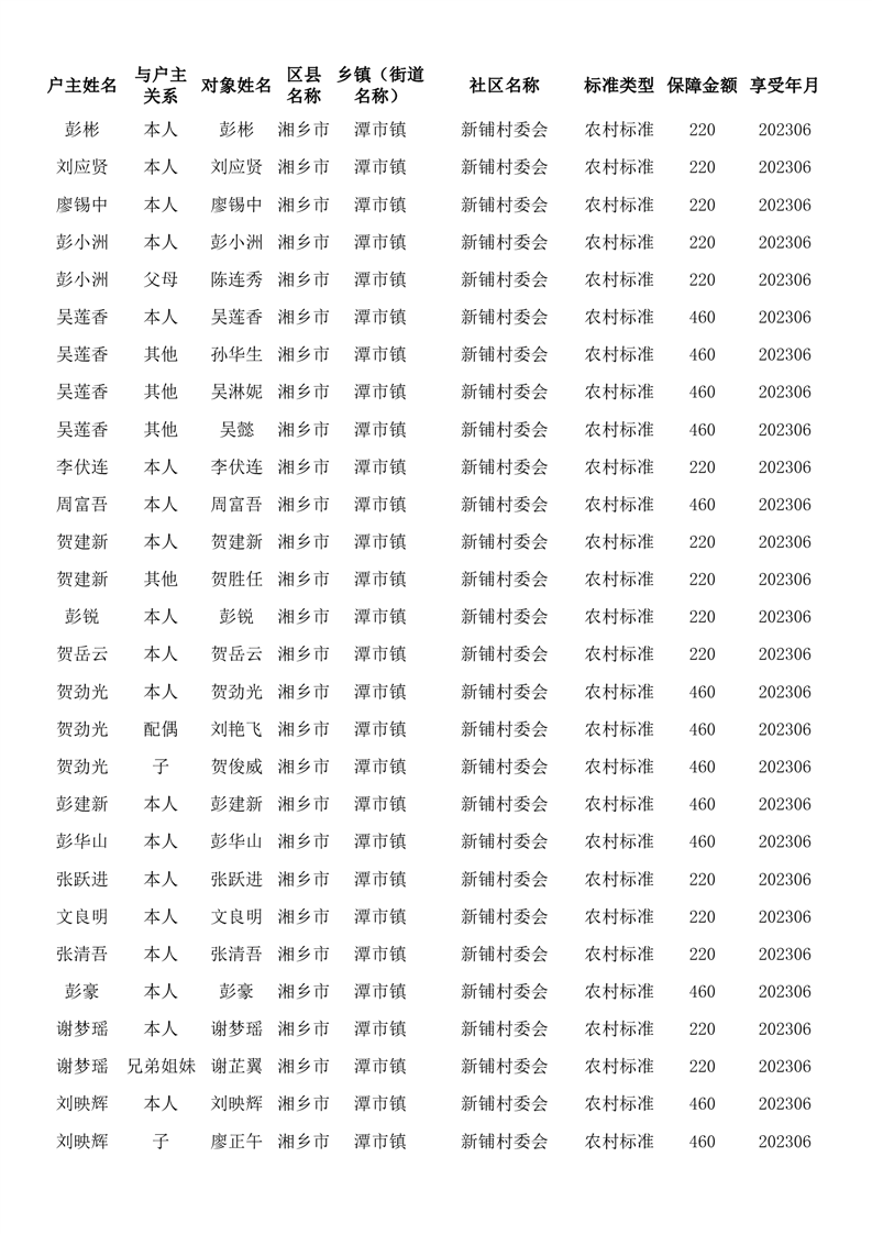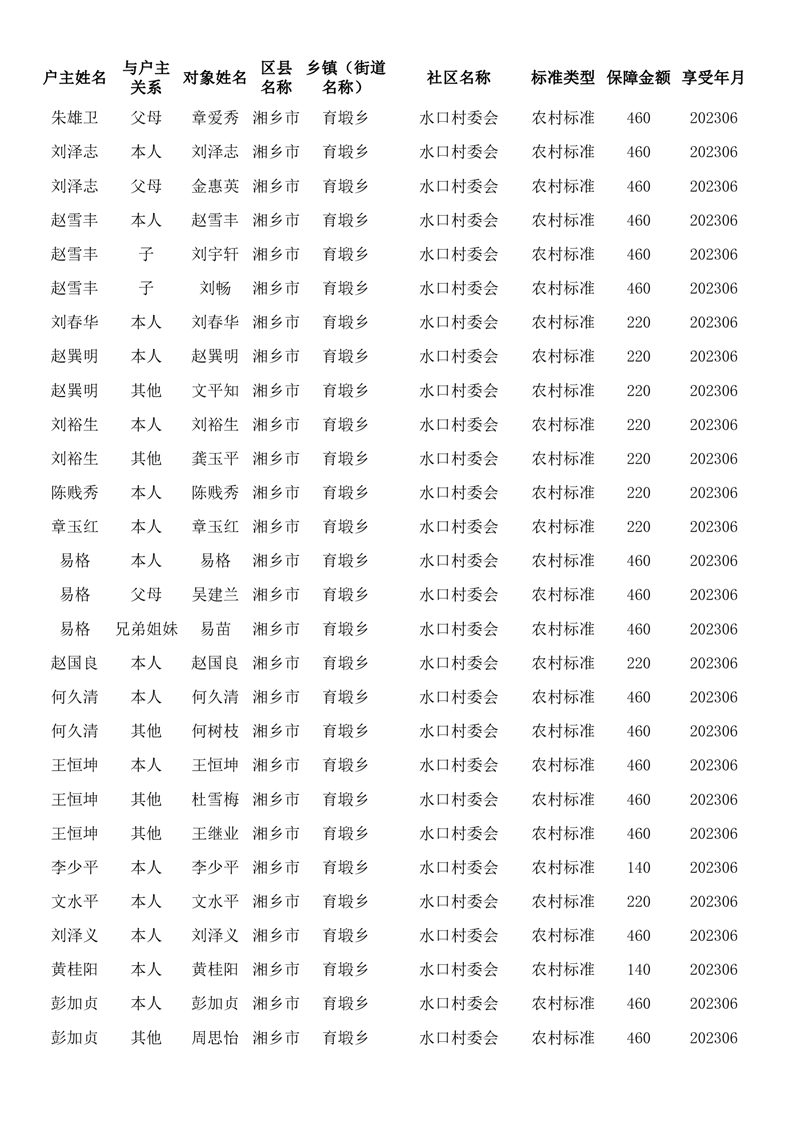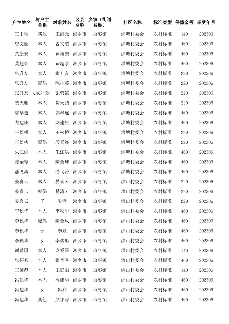 湘鄉(xiāng)市2023年6月城鄉(xiāng)低保救助對象審批匯總表