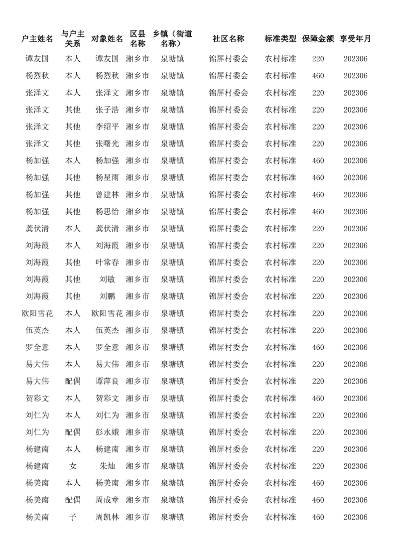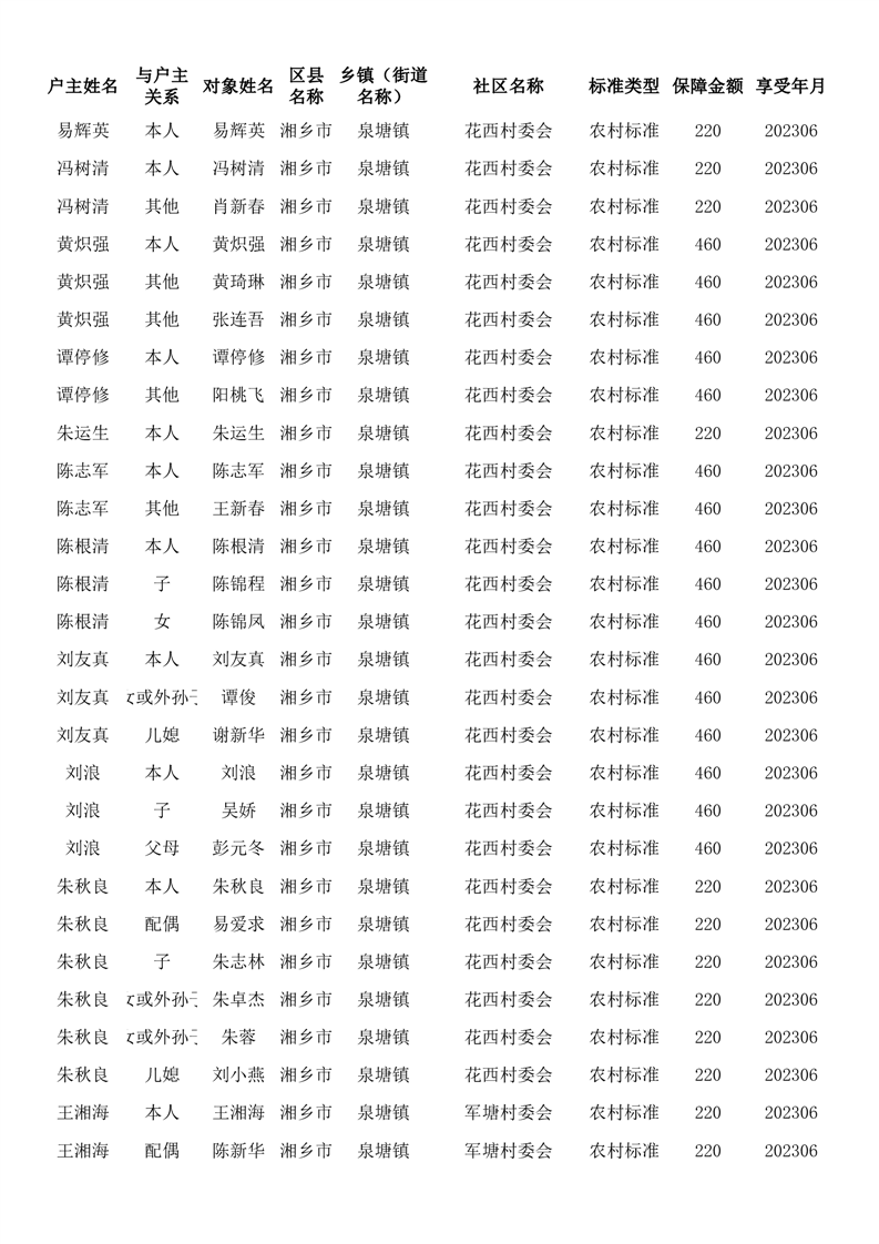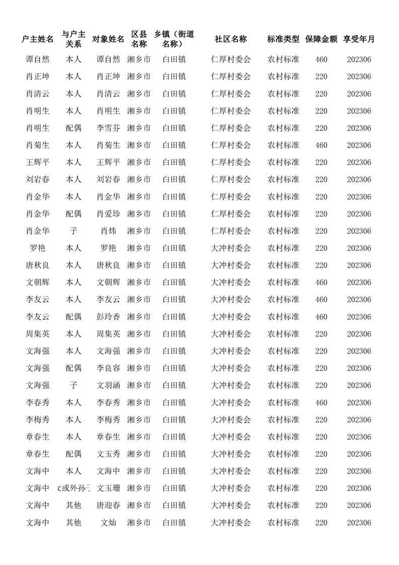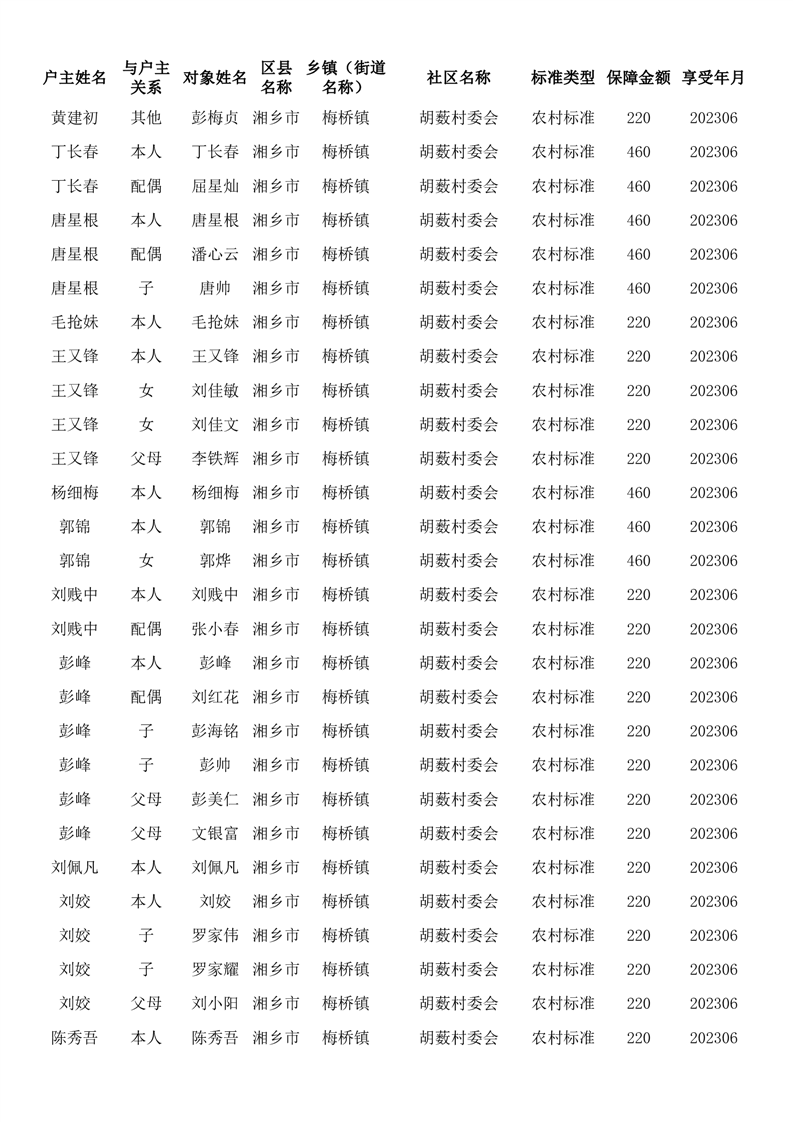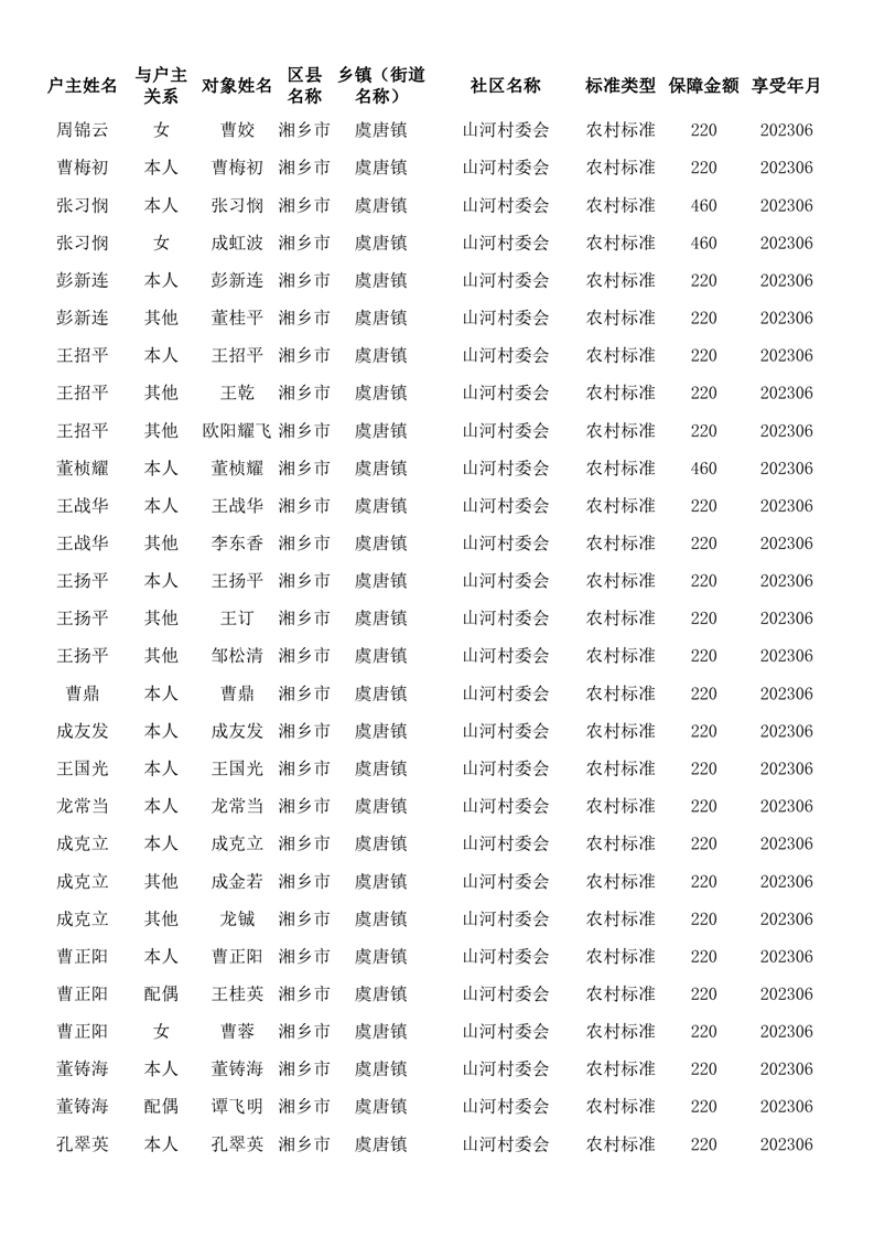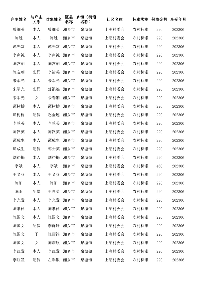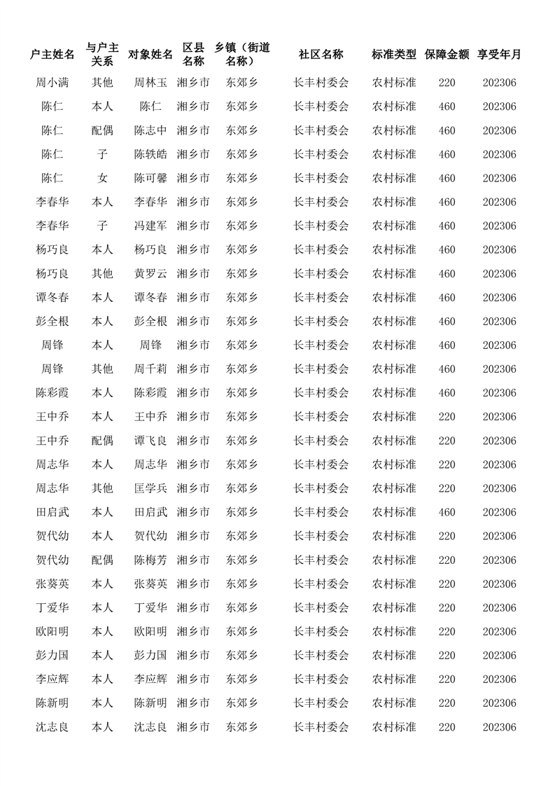 湘鄉(xiāng)市2023年6月城鄉(xiāng)低保救助對象審批匯總表