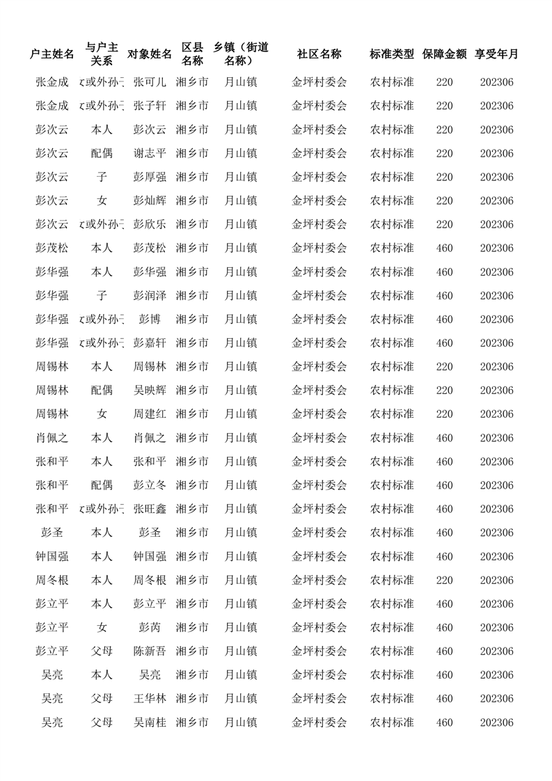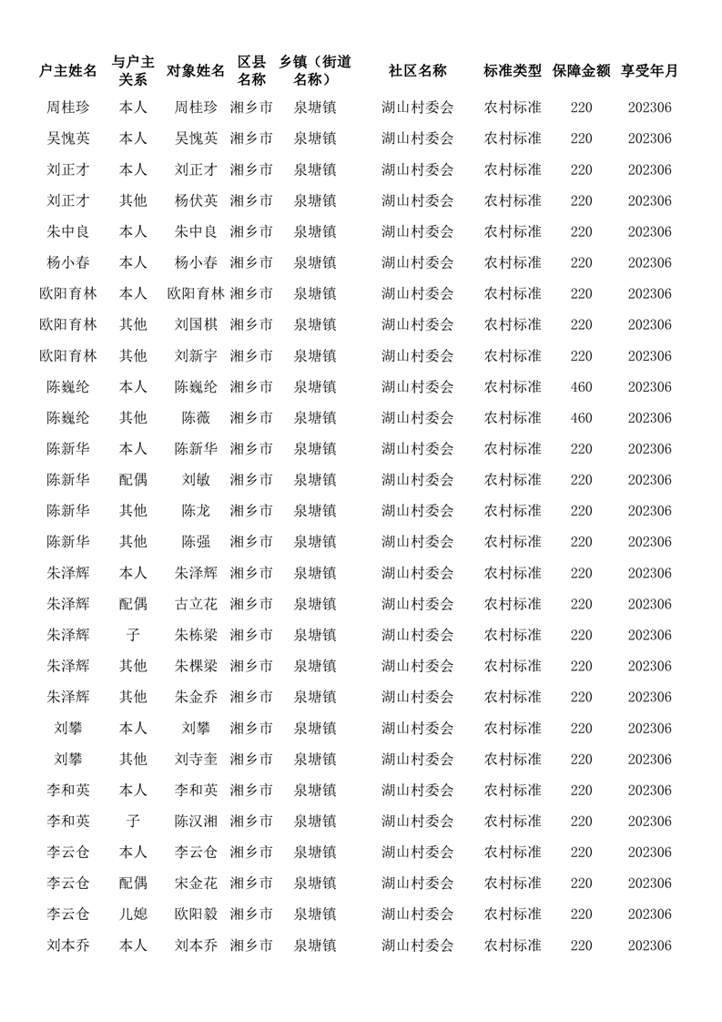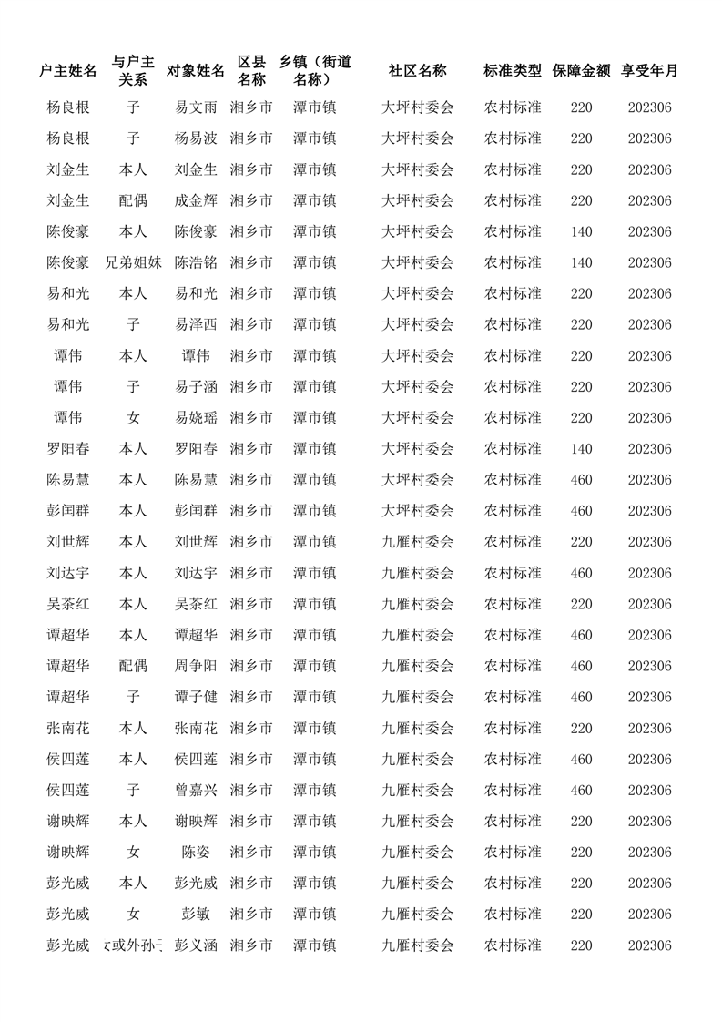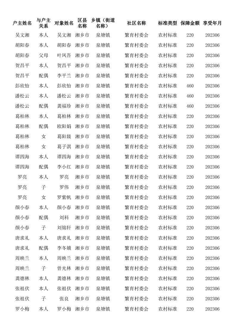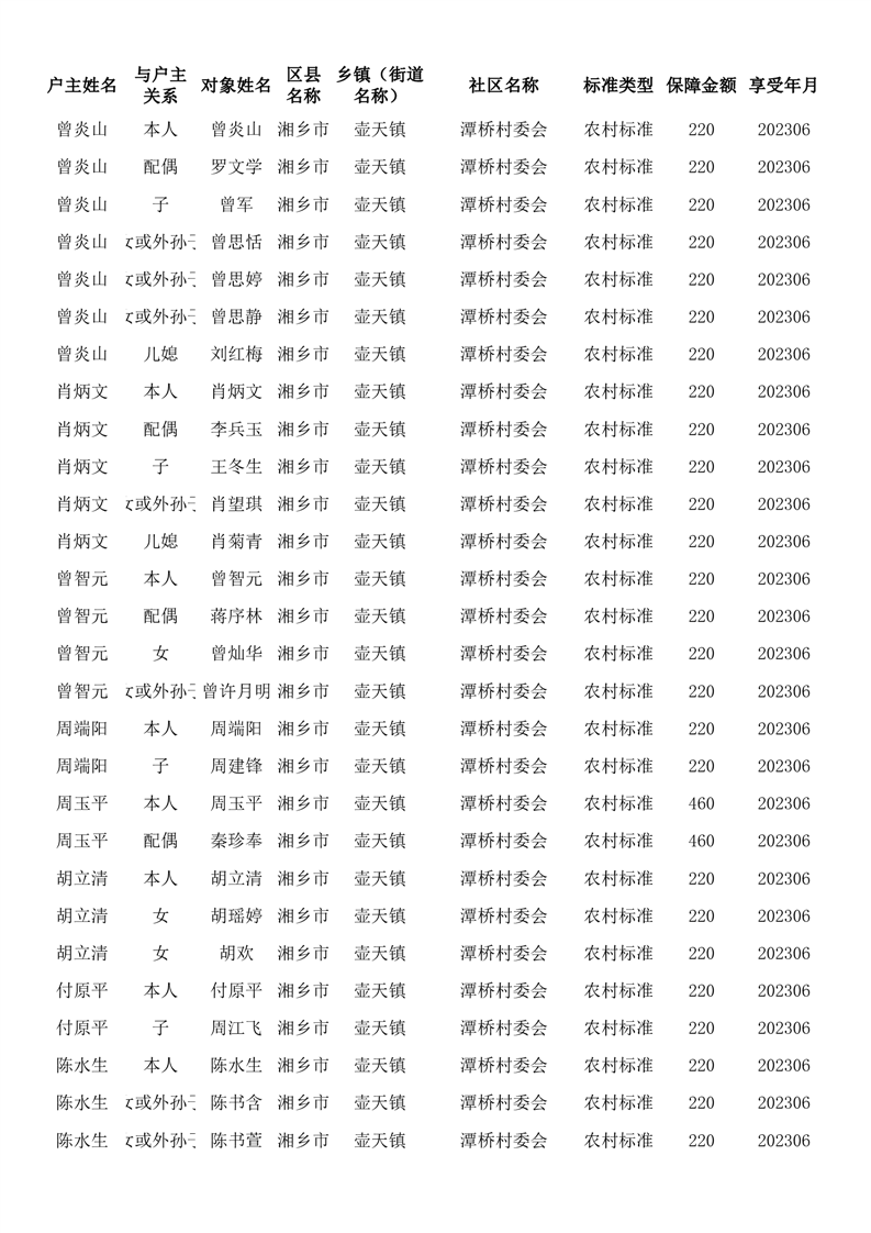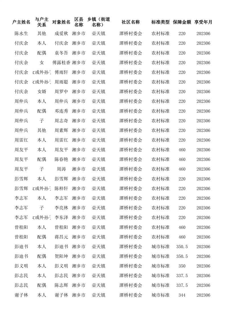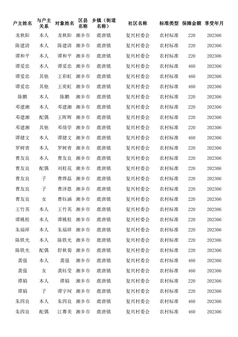 湘鄉(xiāng)市2023年6月城鄉(xiāng)低保救助對象審批匯總表