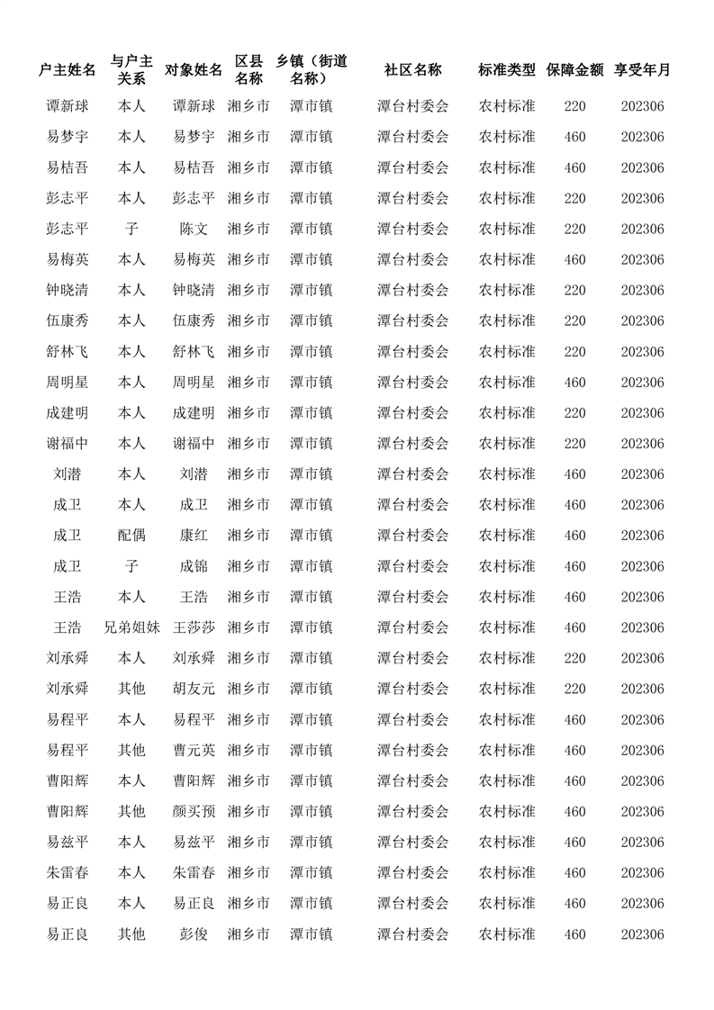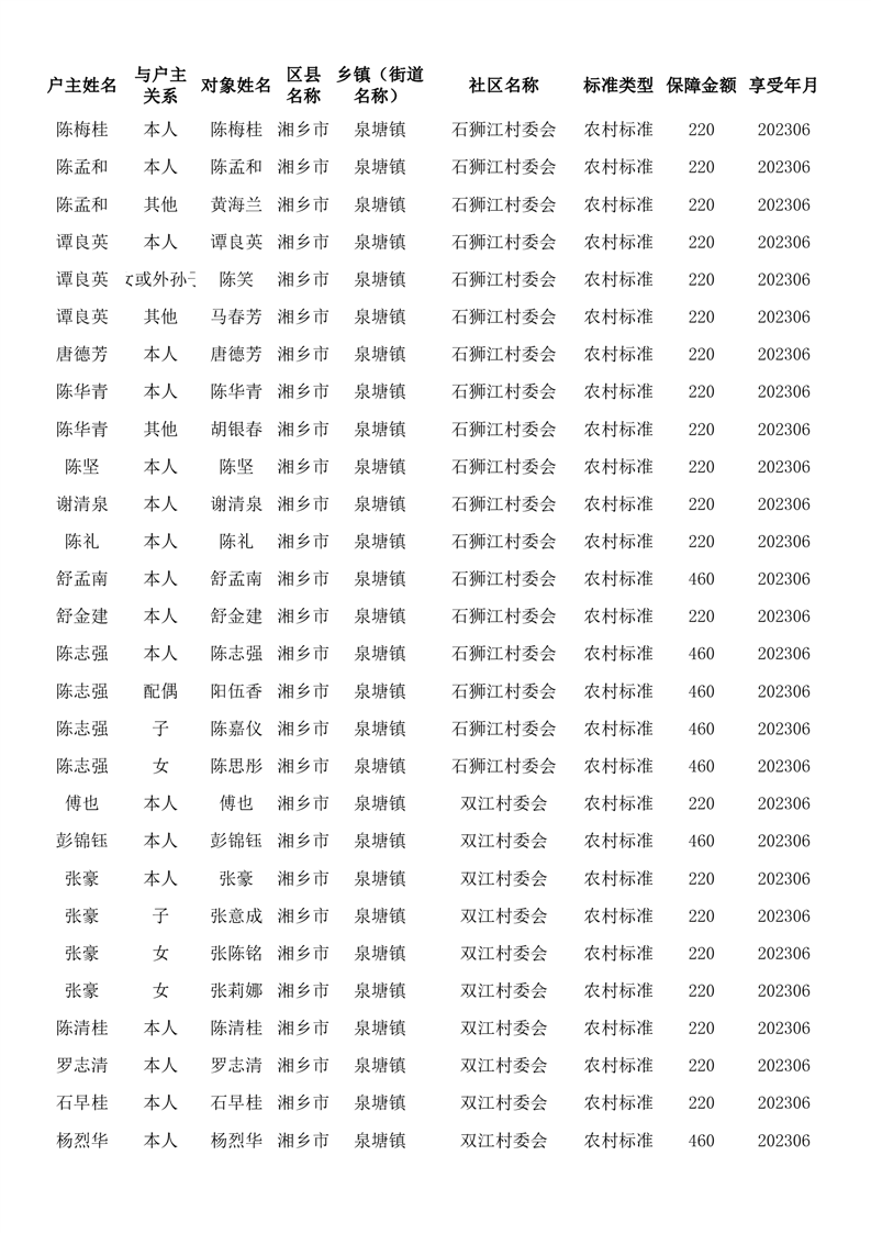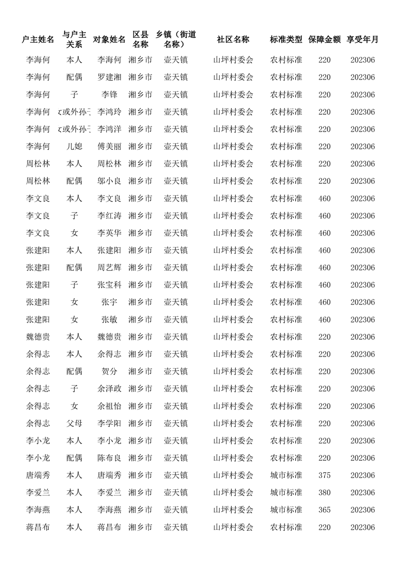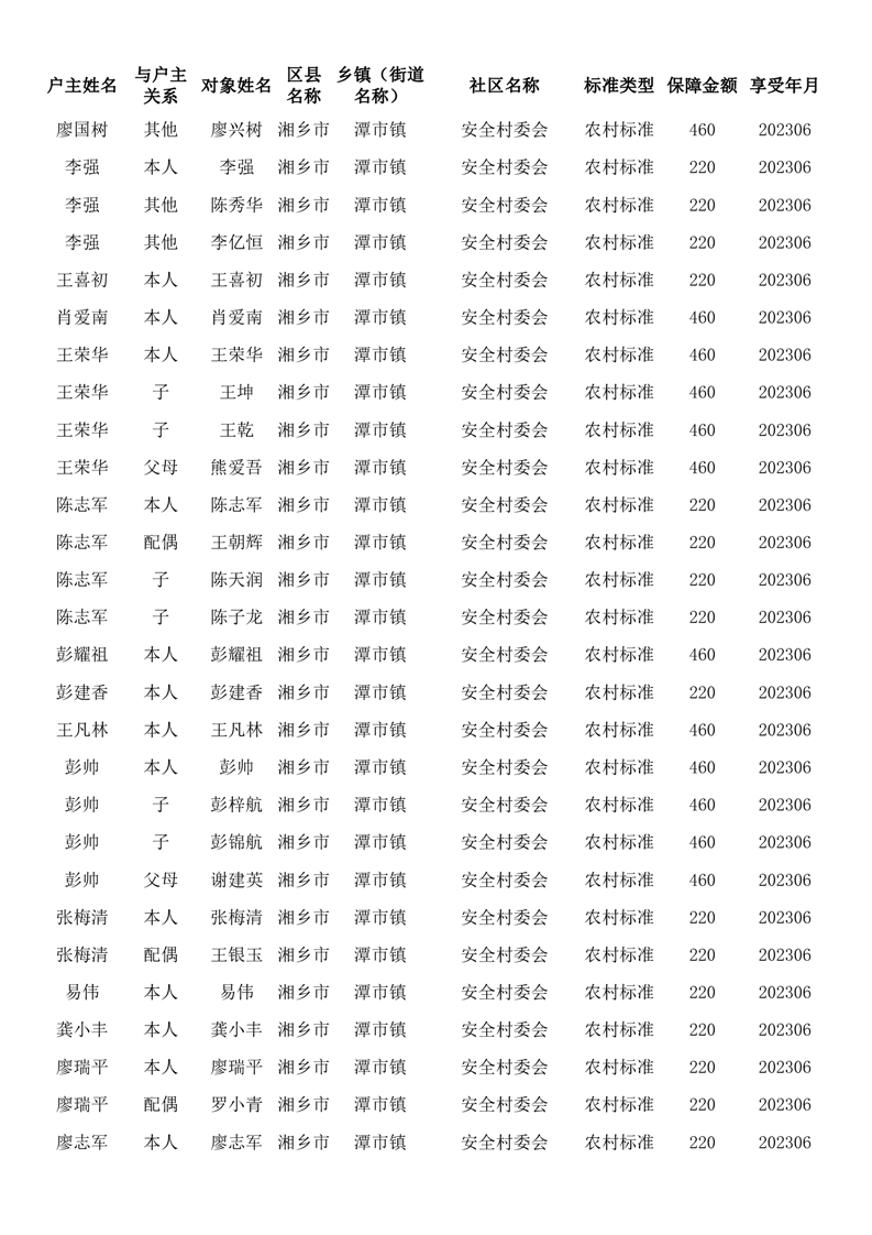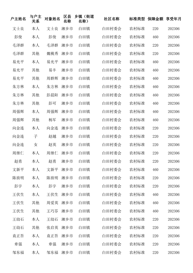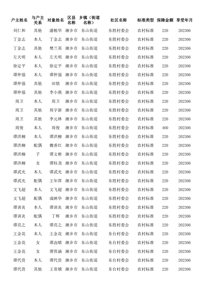 湘鄉(xiāng)市2023年6月城鄉(xiāng)低保救助對象審批匯總表