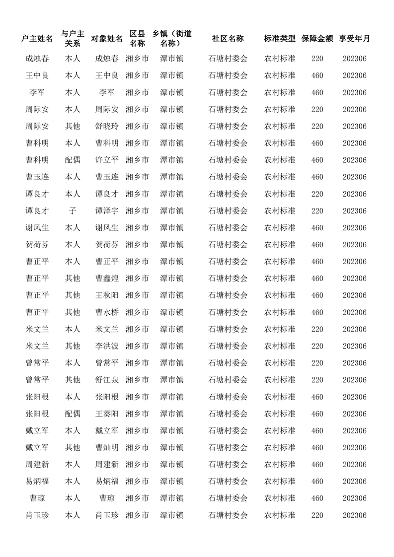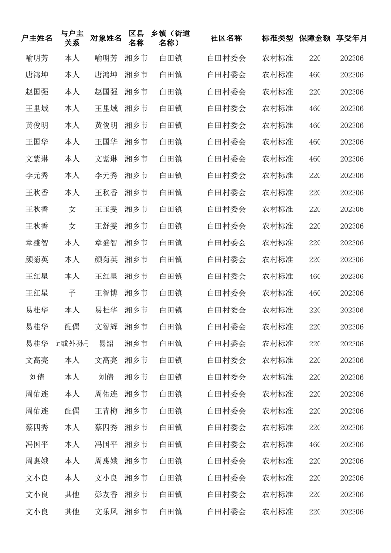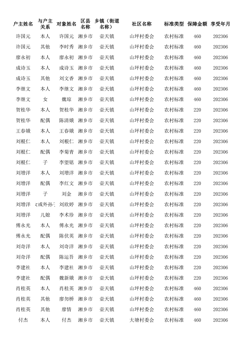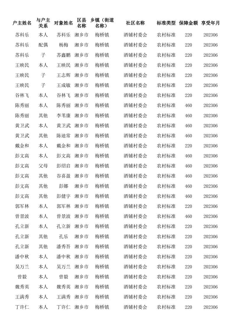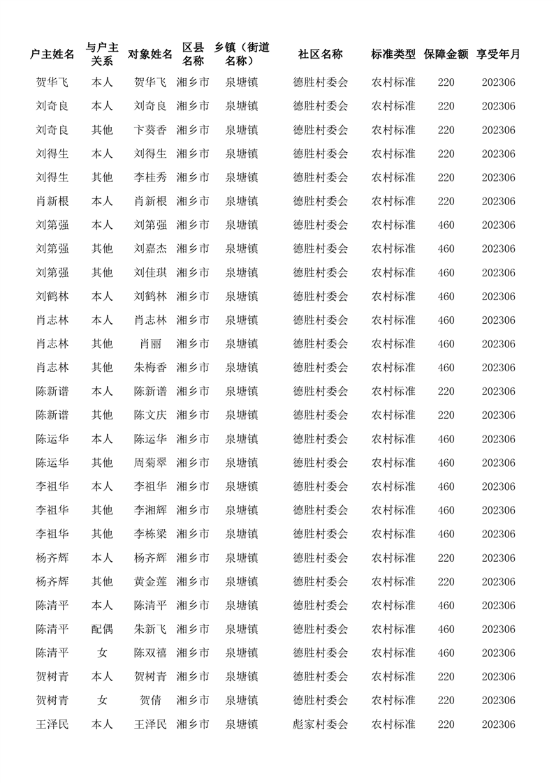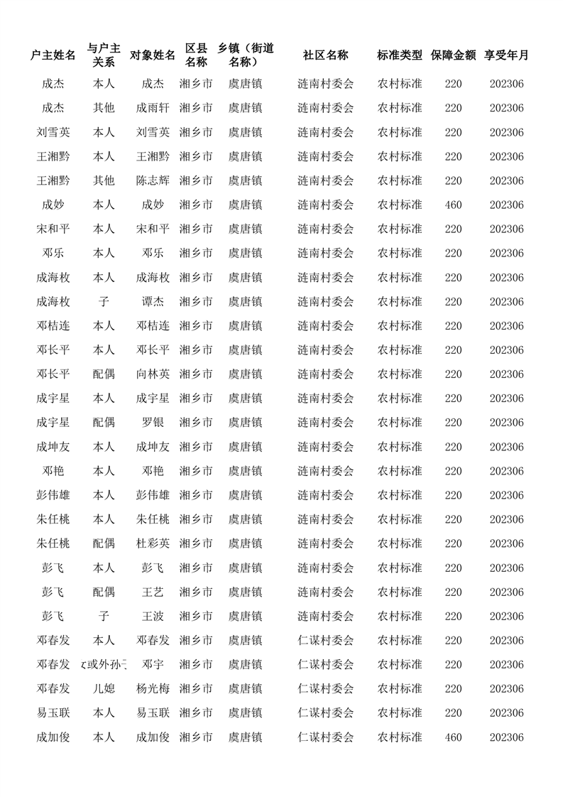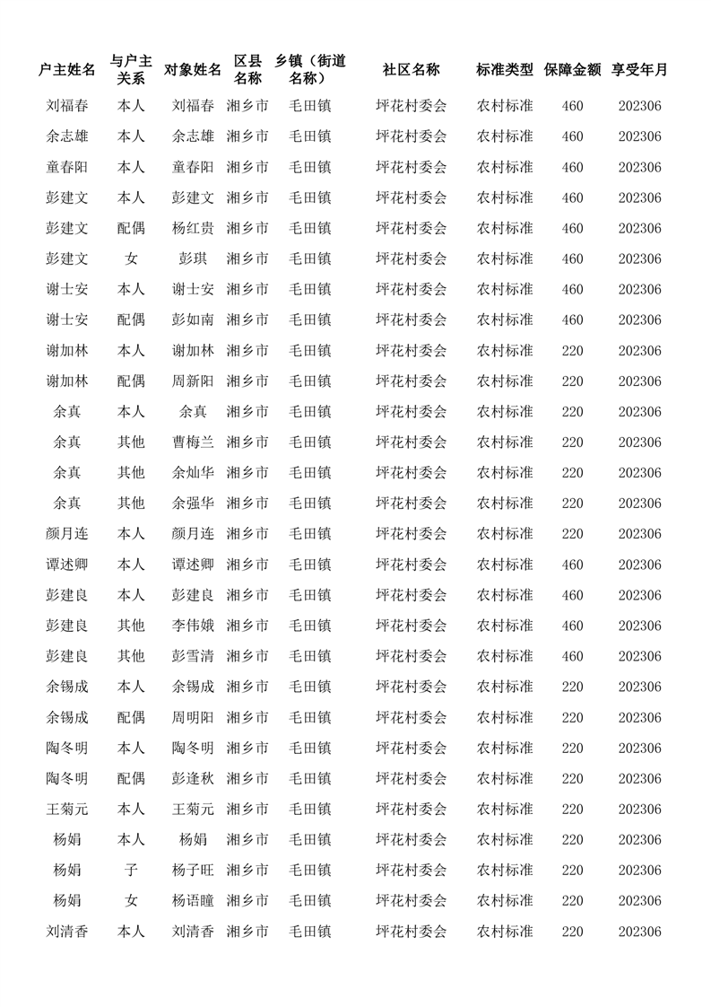 湘鄉(xiāng)市2023年6月城鄉(xiāng)低保救助對象審批匯總表