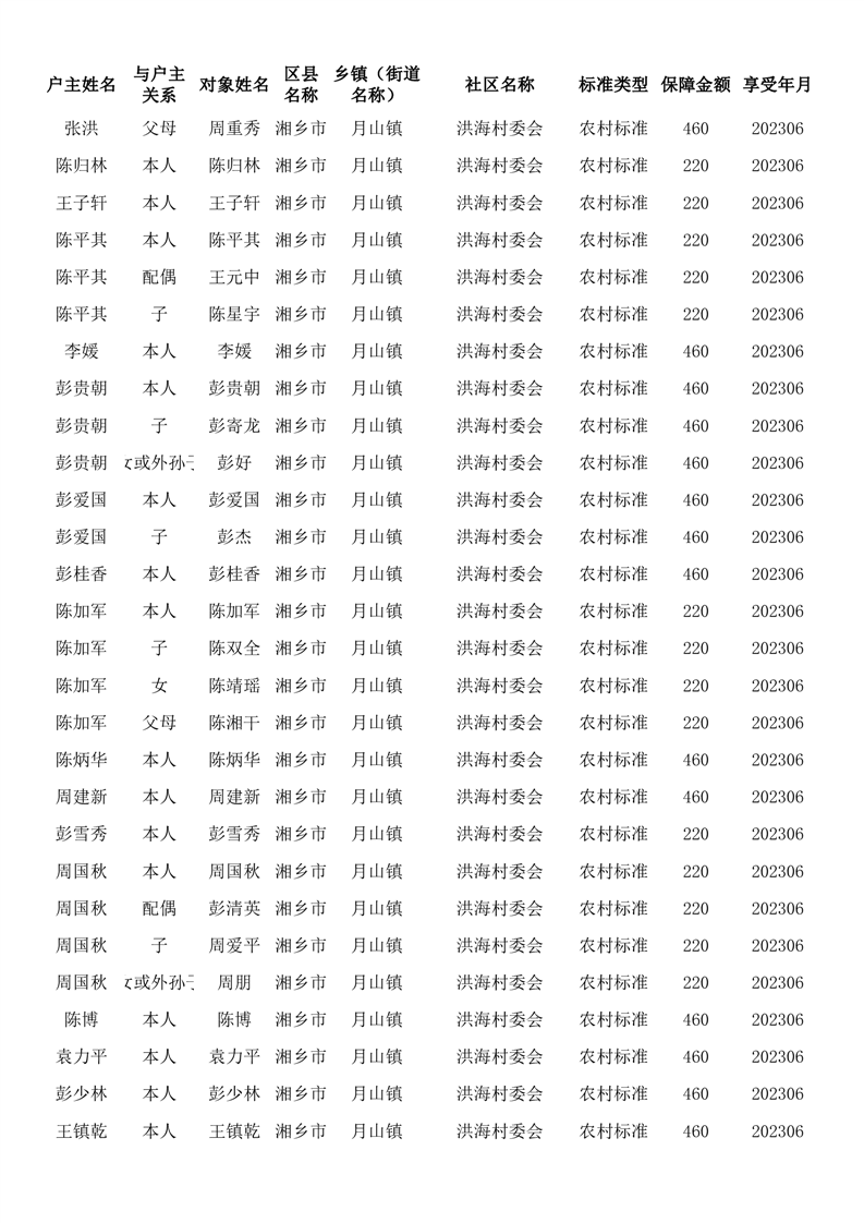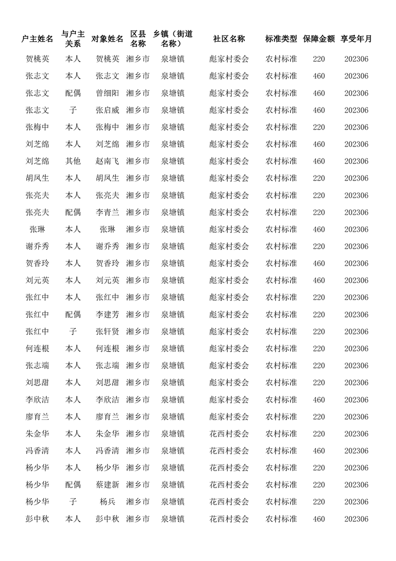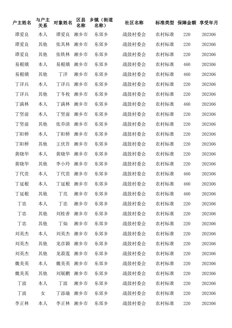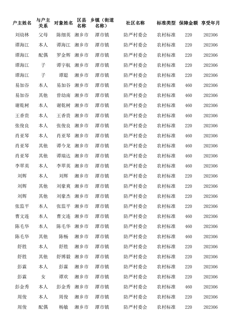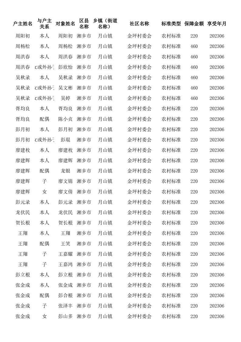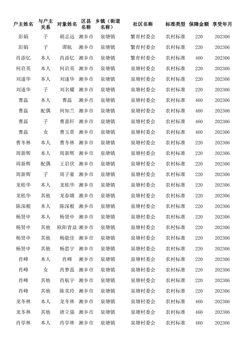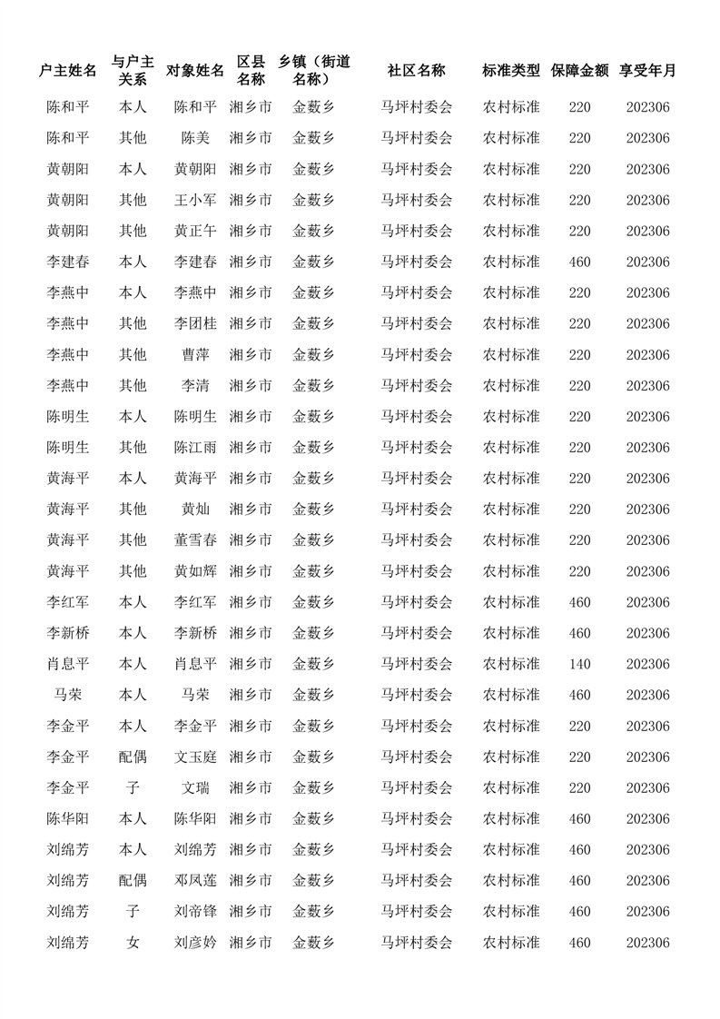 湘鄉(xiāng)市2023年6月城鄉(xiāng)低保救助對象審批匯總表