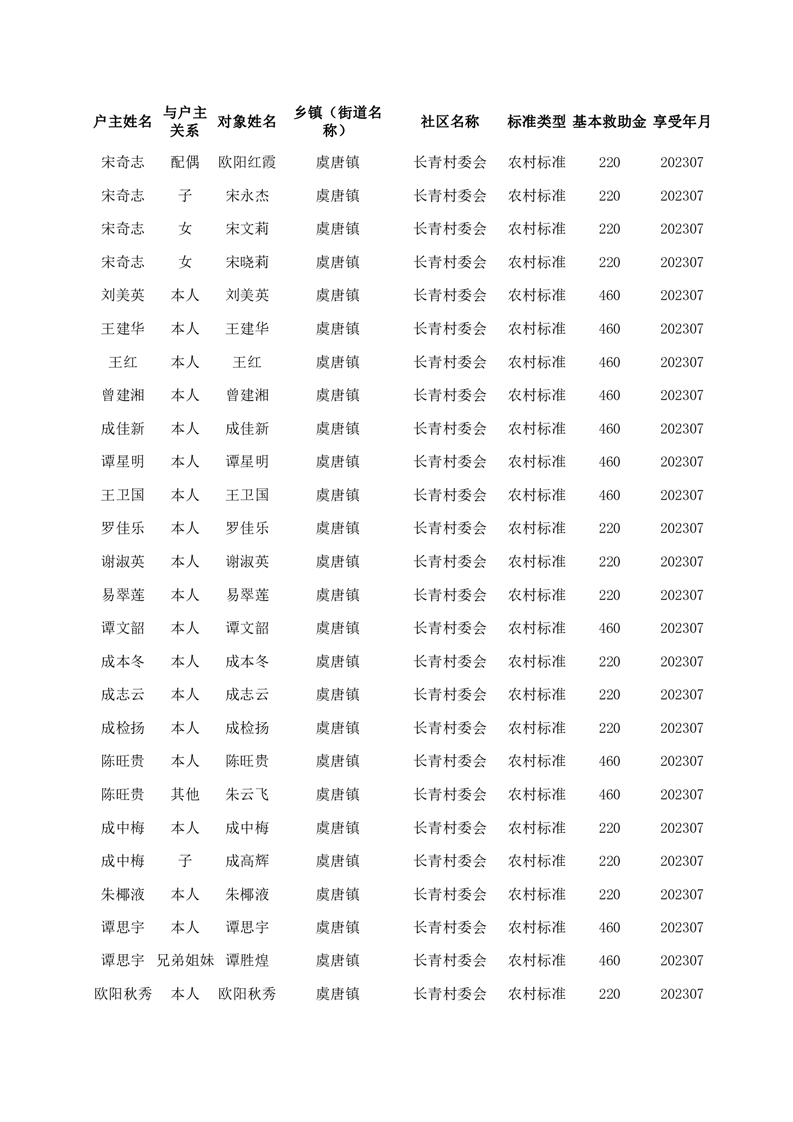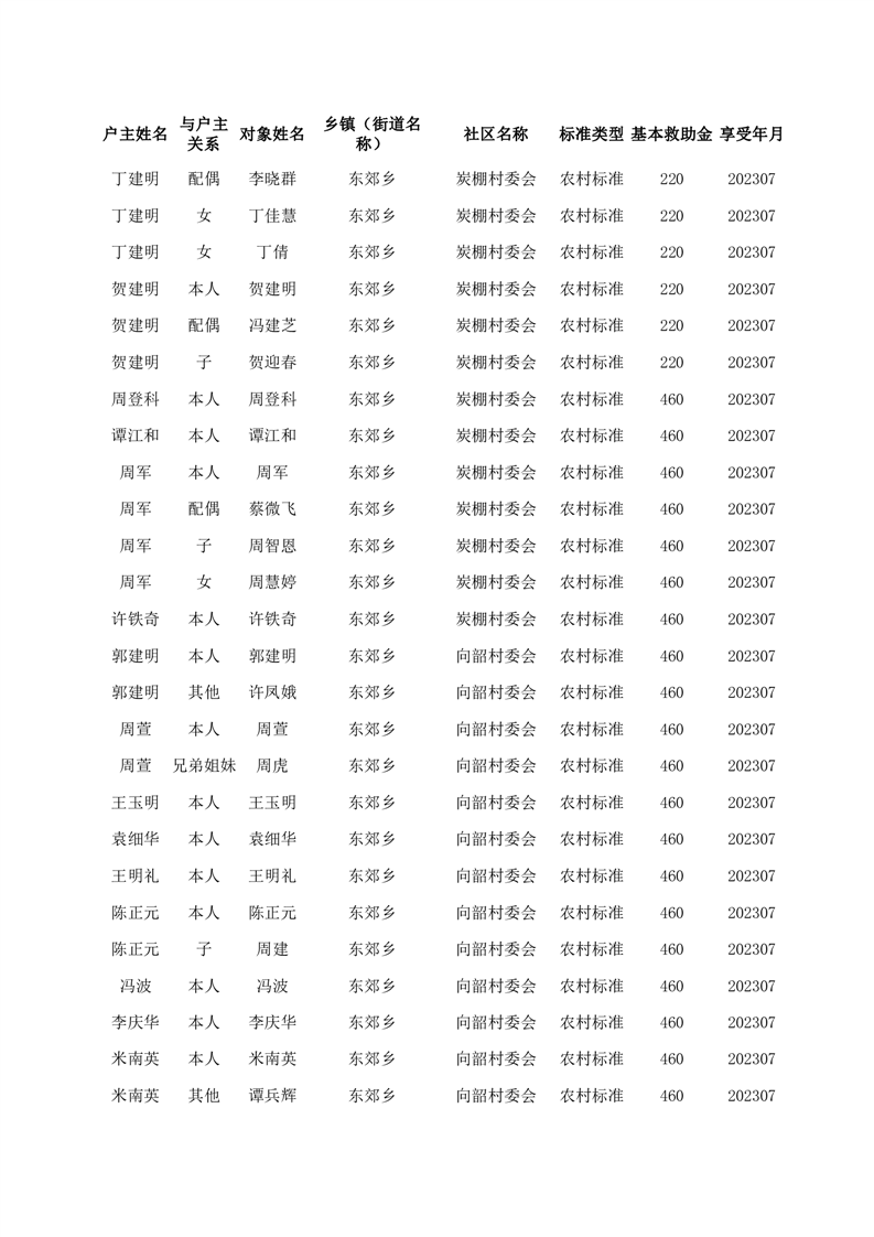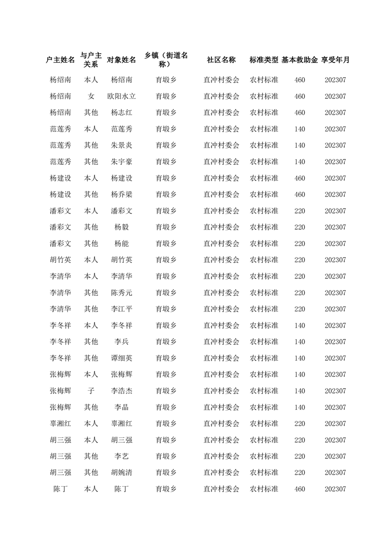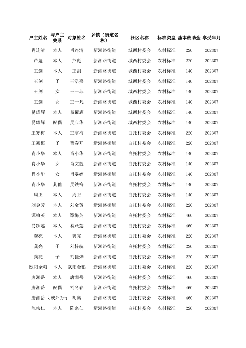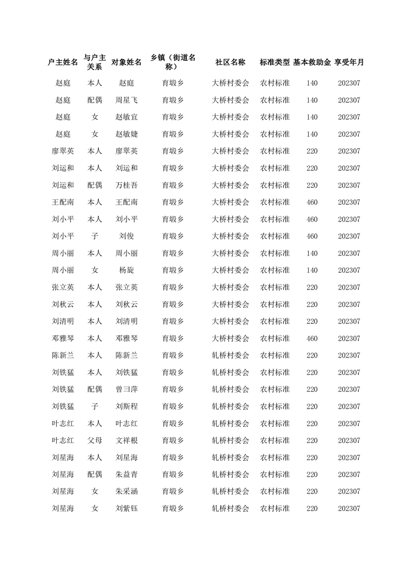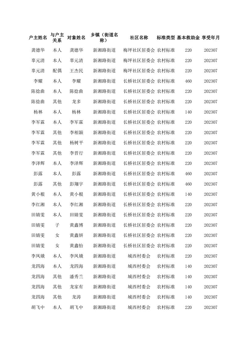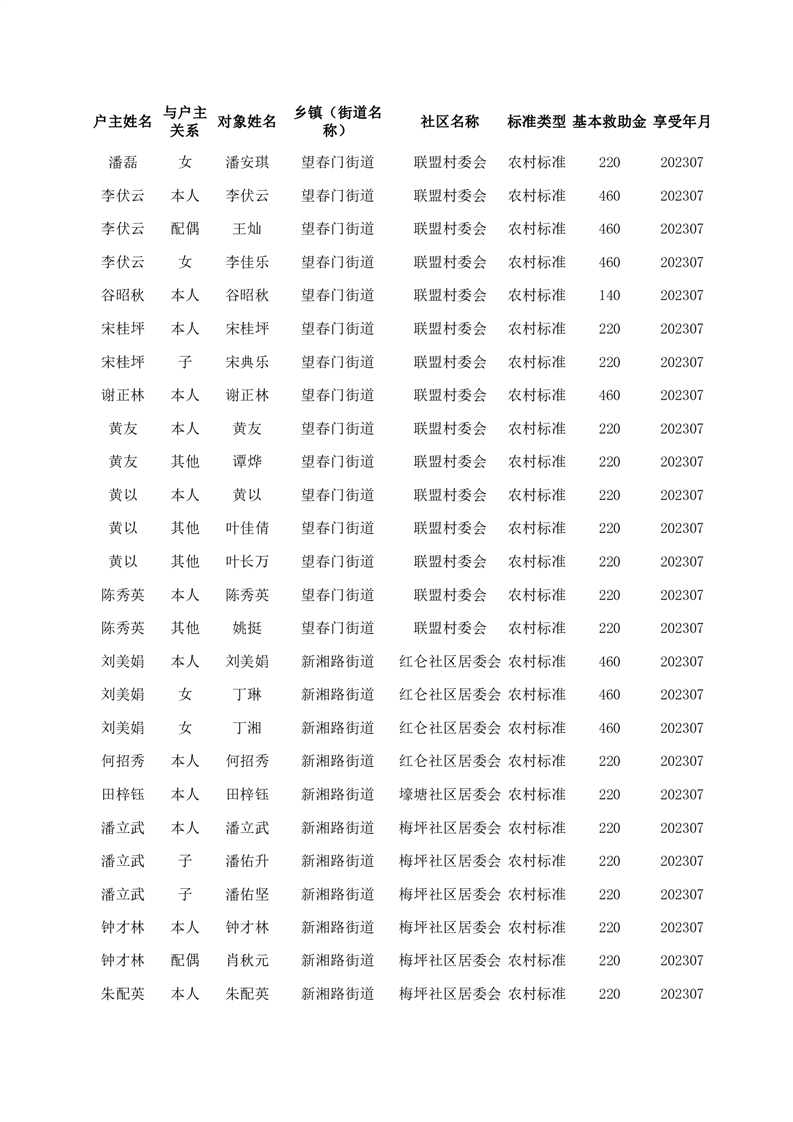 湘鄉市2023年7月份農村低保救助對象審批匯總表