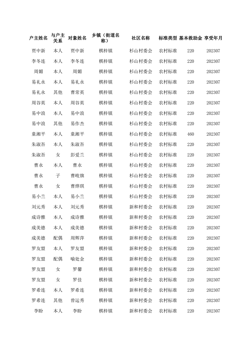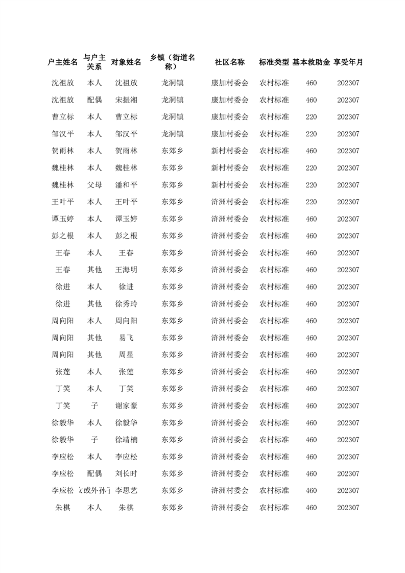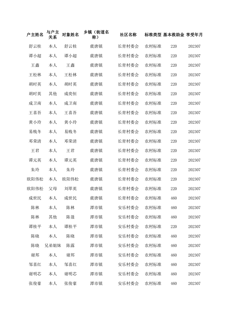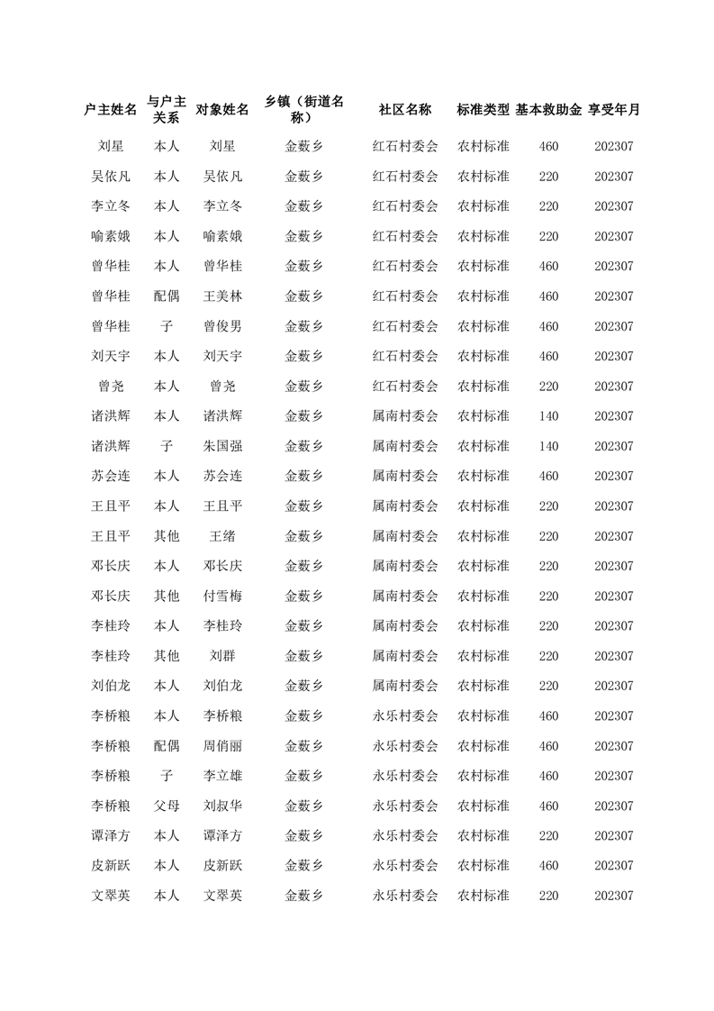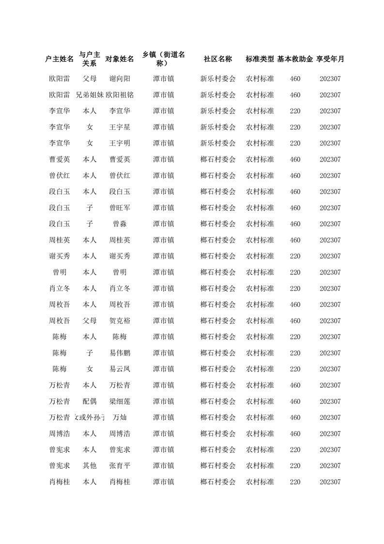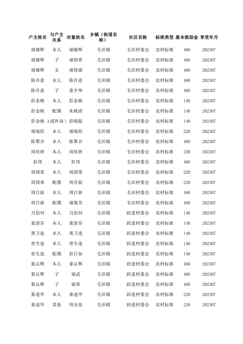 湘鄉市2023年7月份農村低保救助對象審批匯總表