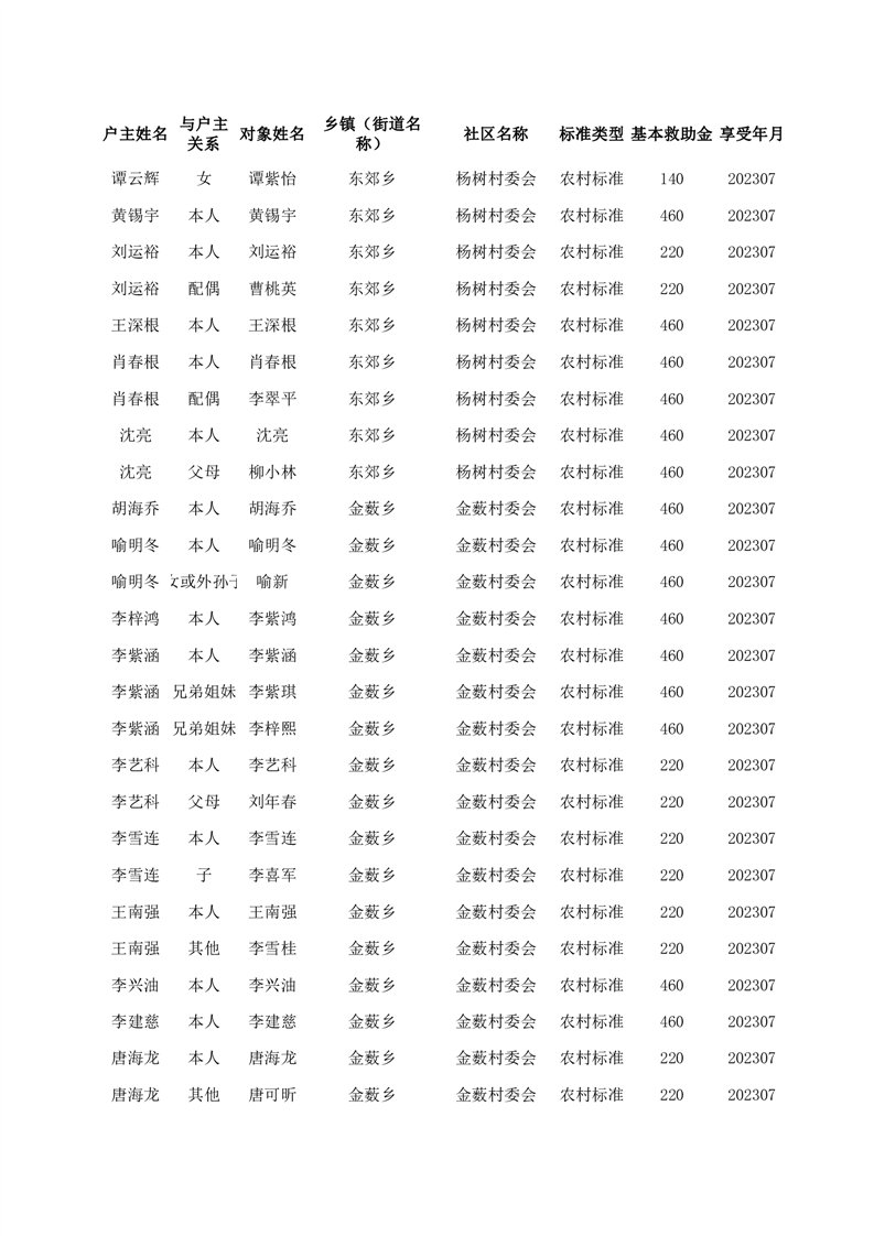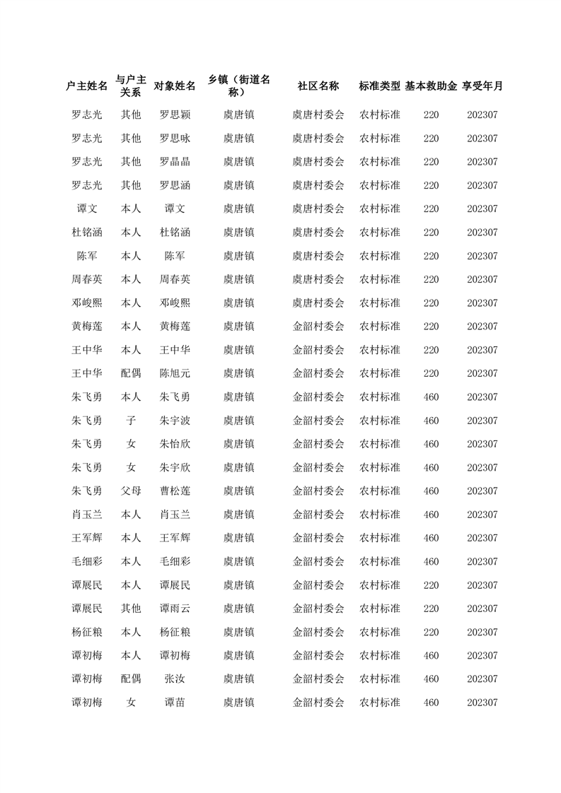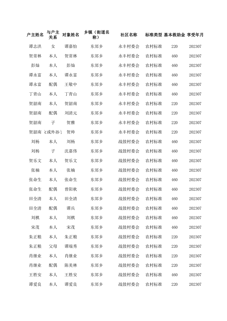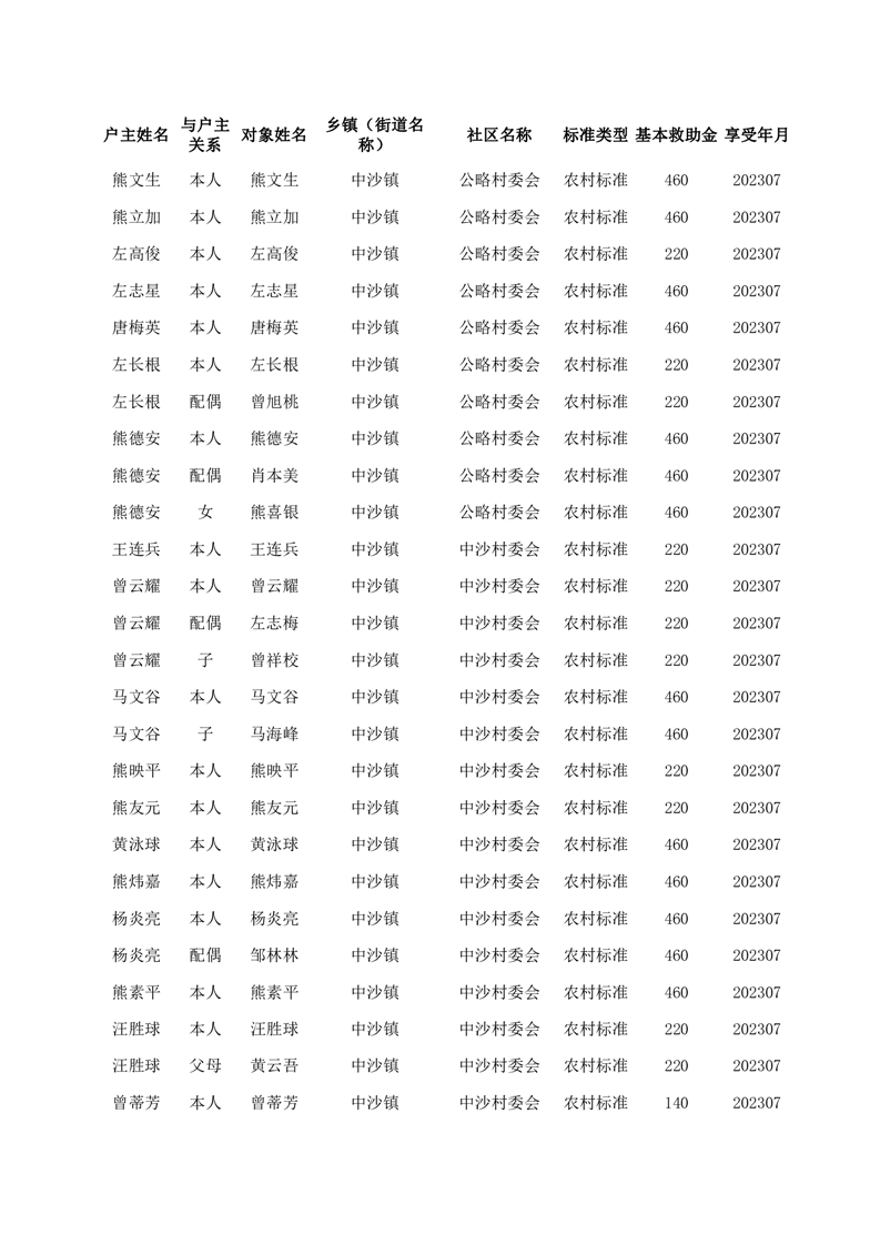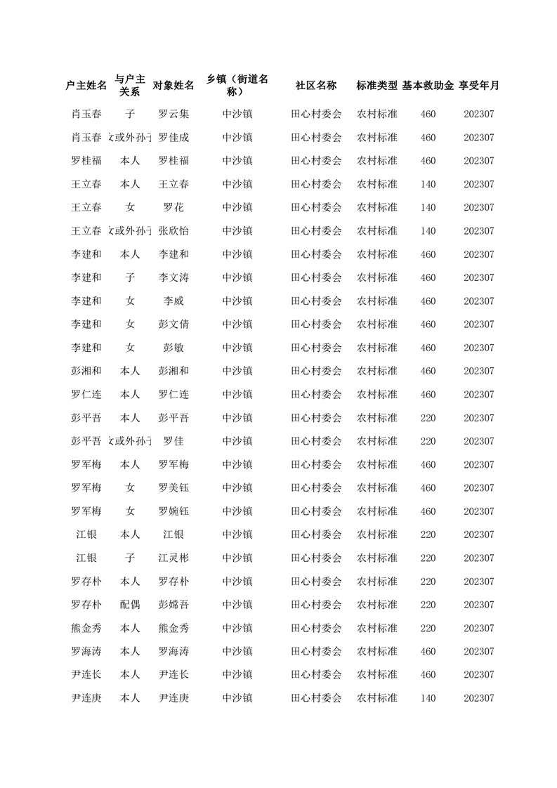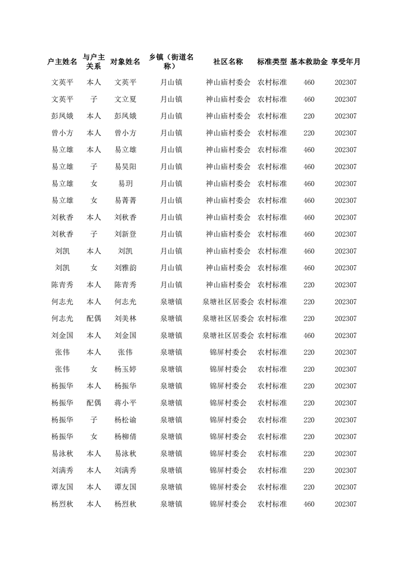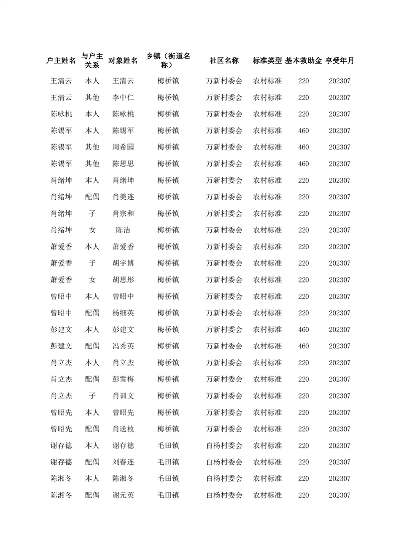 湘鄉市2023年7月份農村低保救助對象審批匯總表