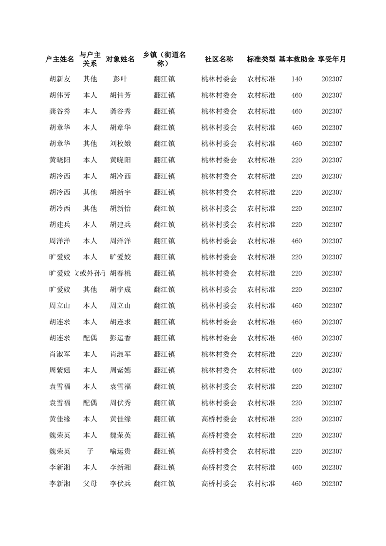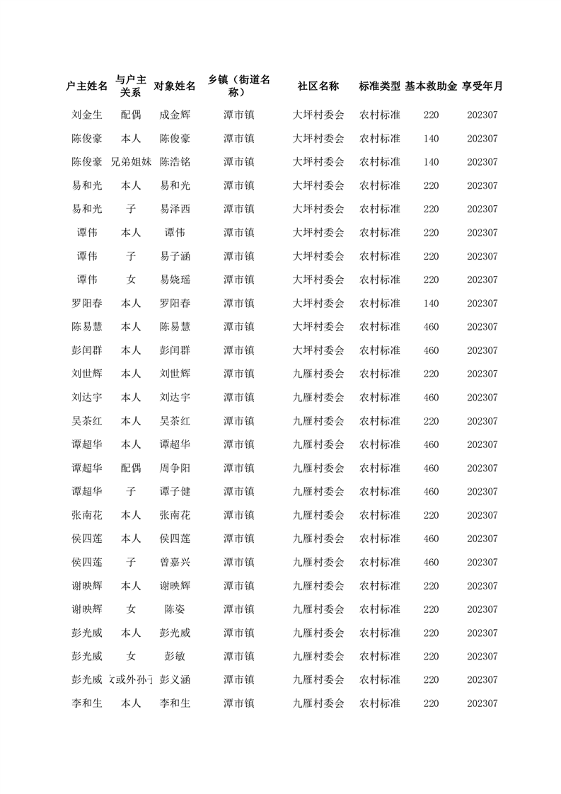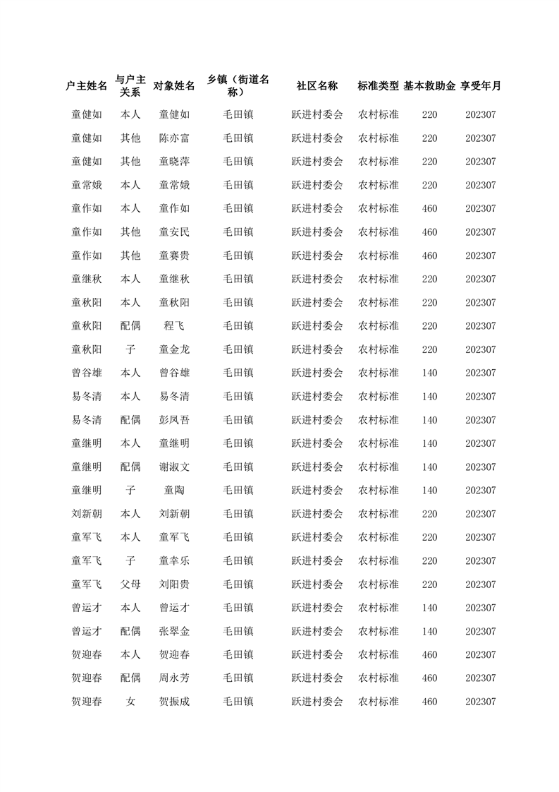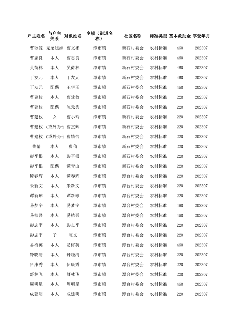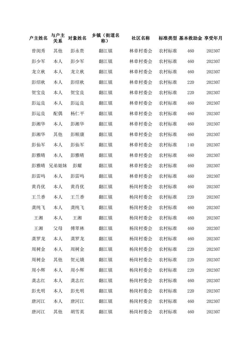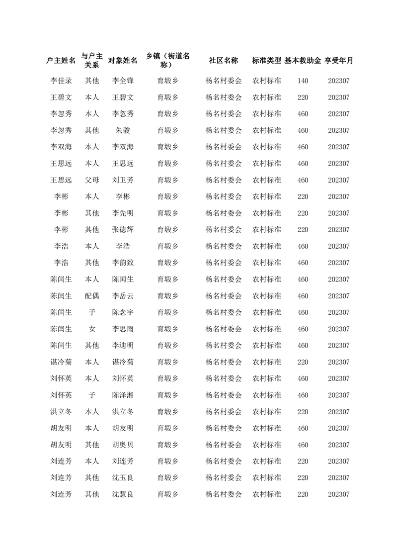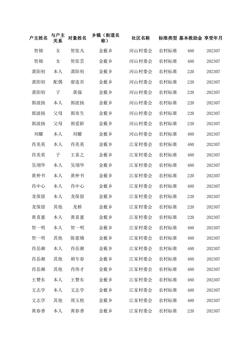 湘鄉市2023年7月份農村低保救助對象審批匯總表