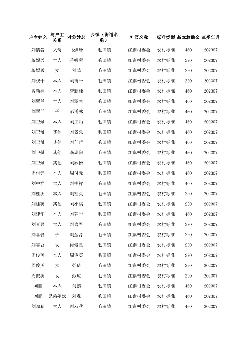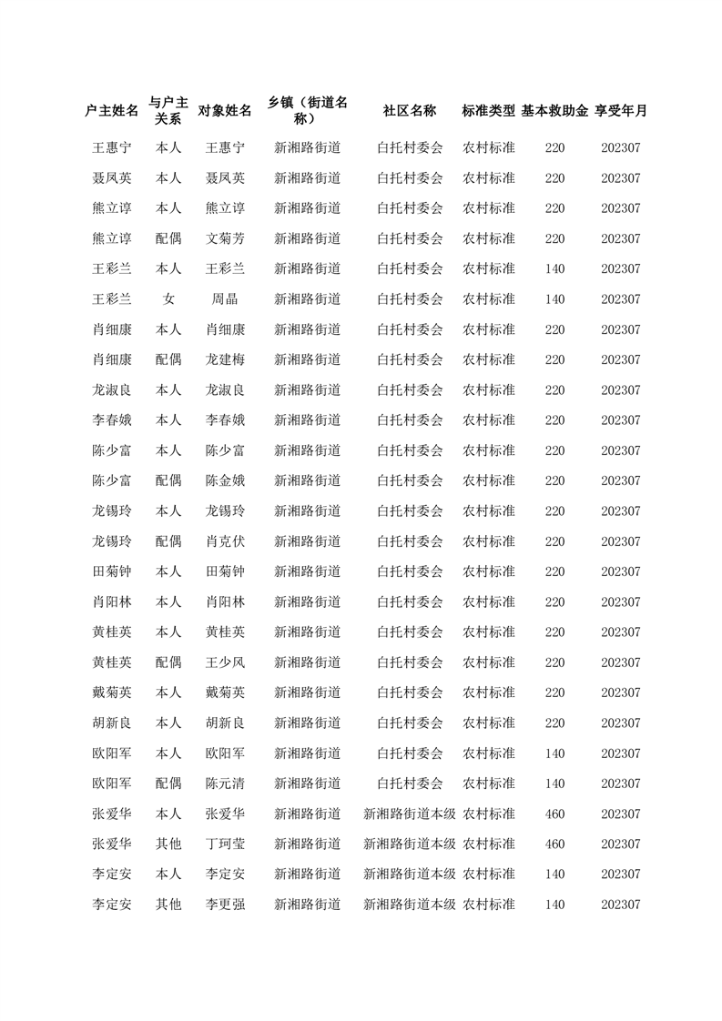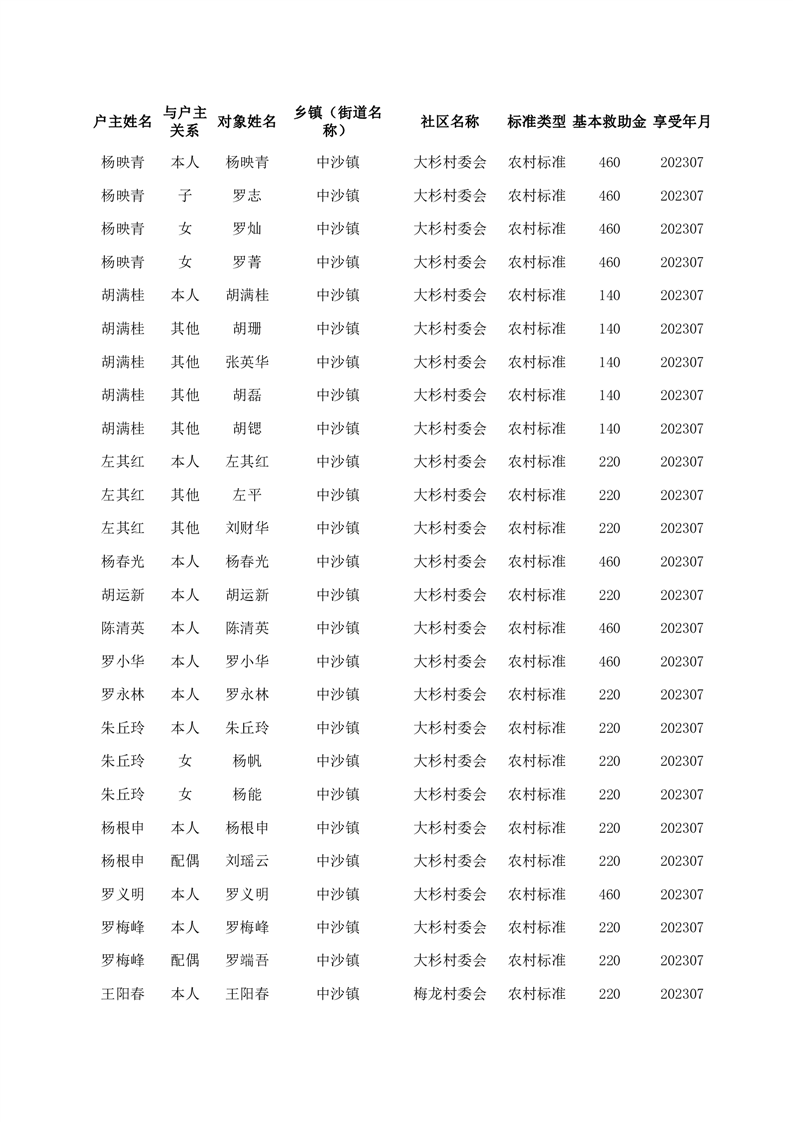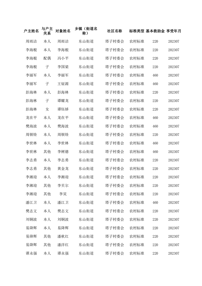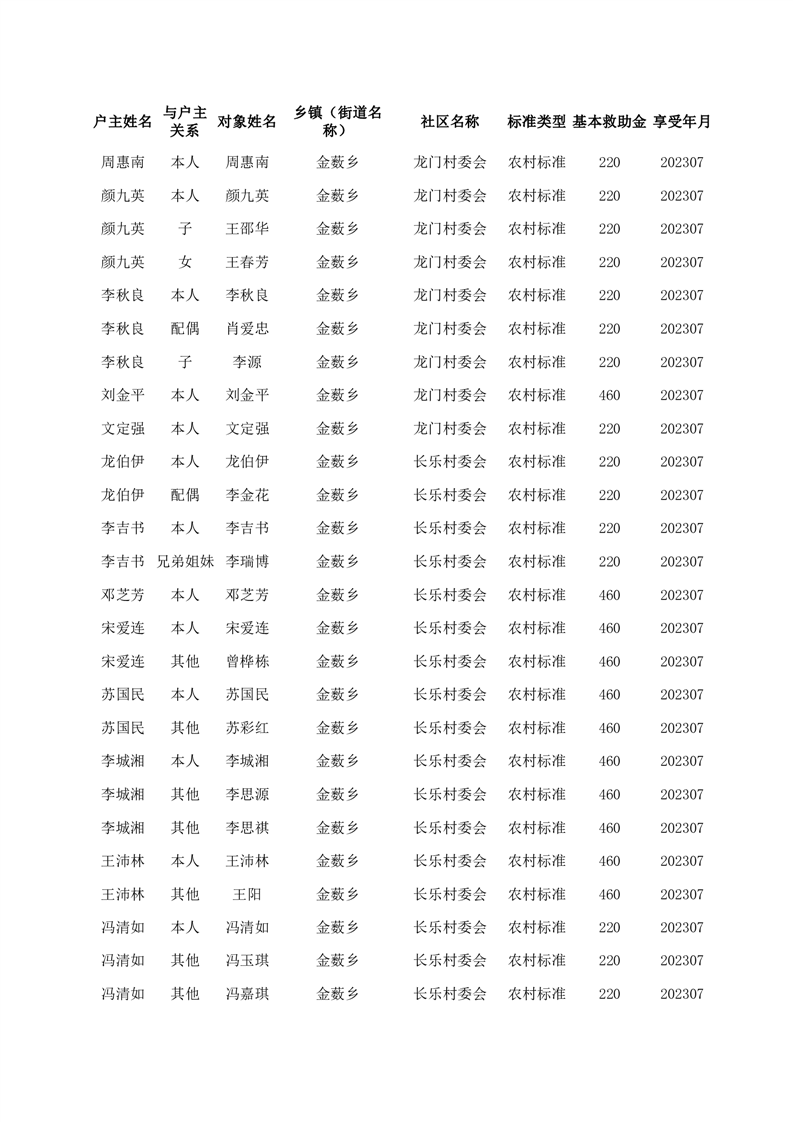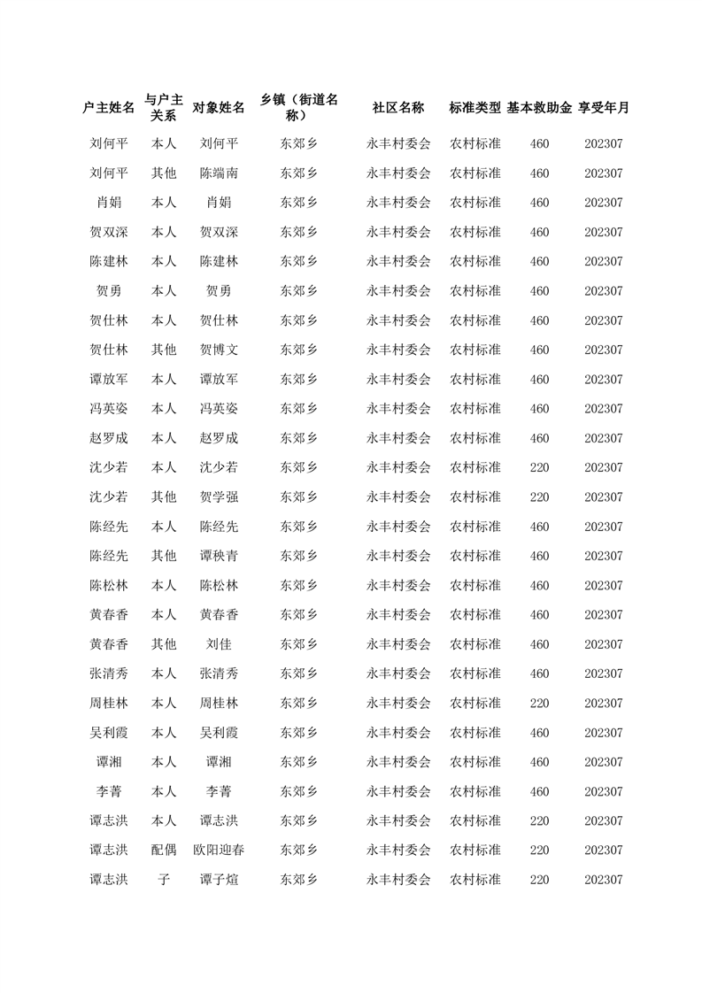 湘鄉市2023年7月份農村低保救助對象審批匯總表