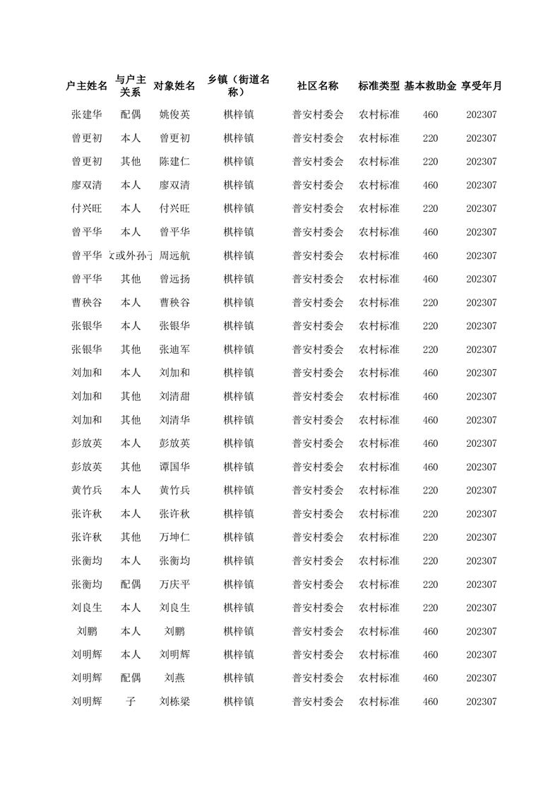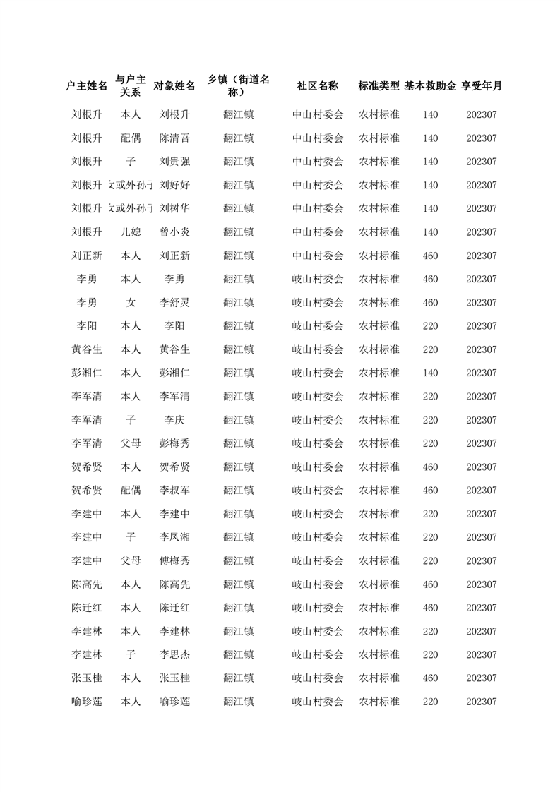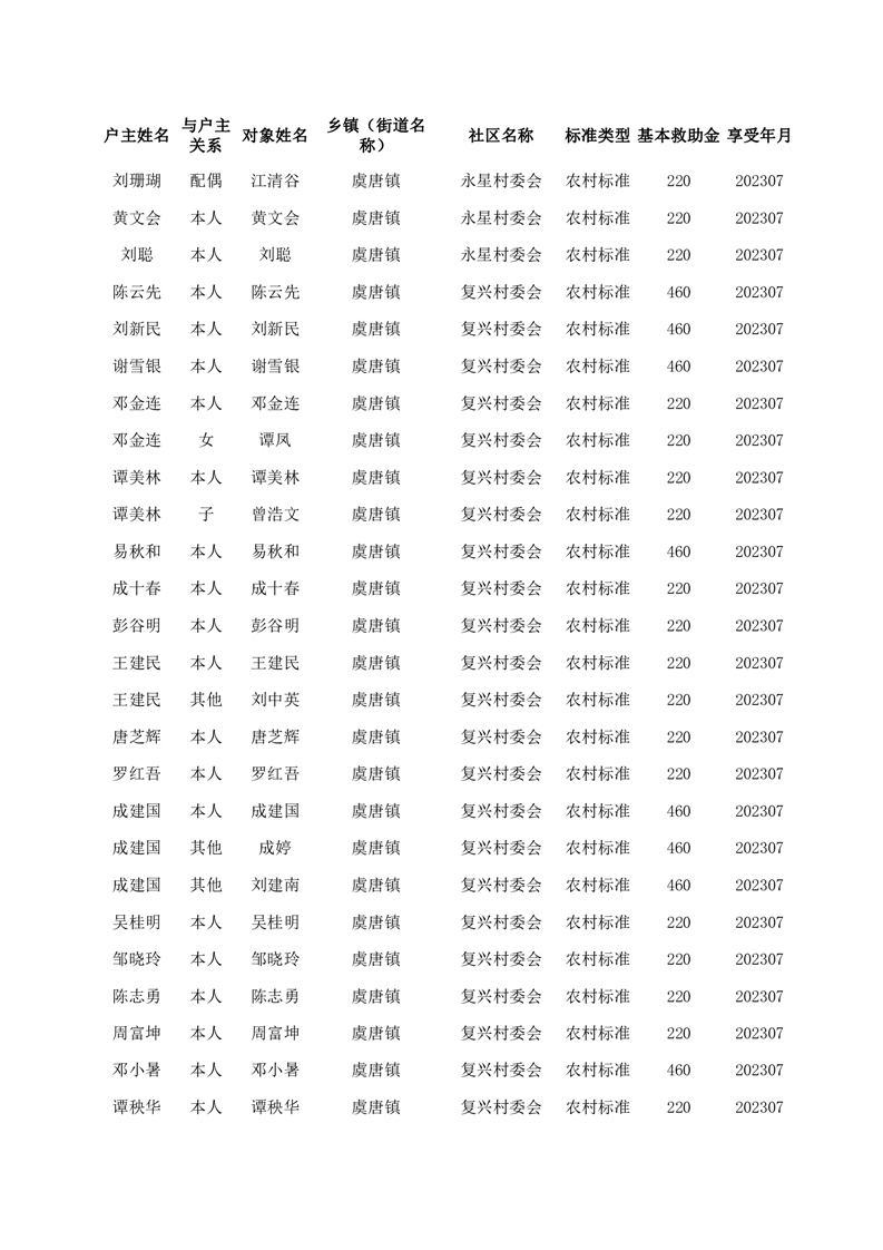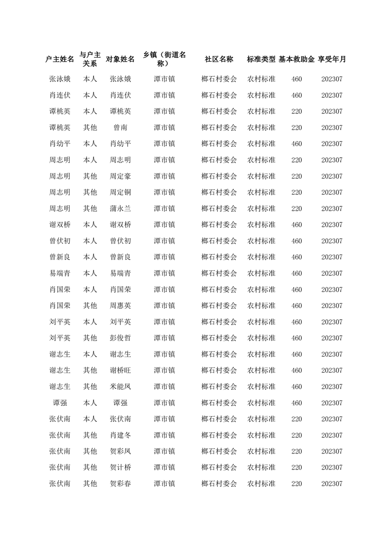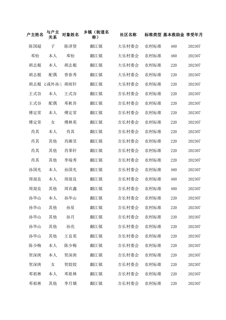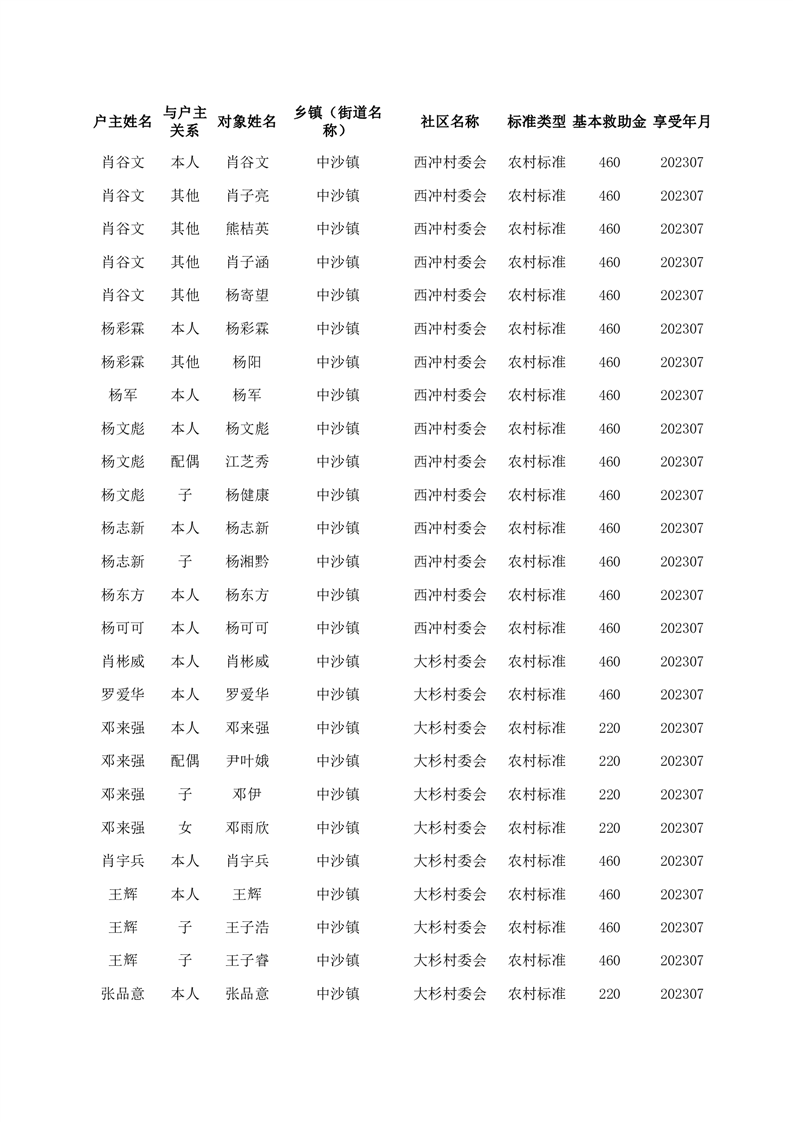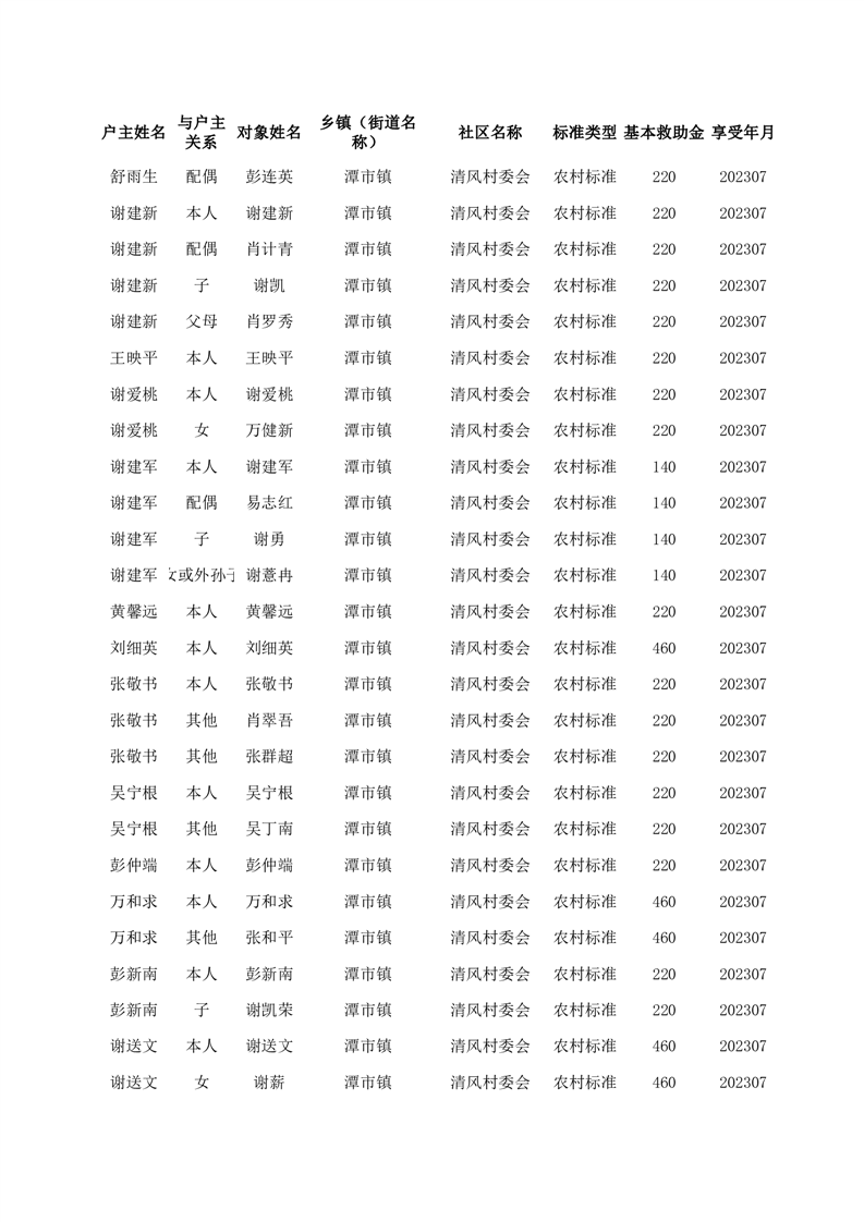 湘鄉市2023年7月份農村低保救助對象審批匯總表